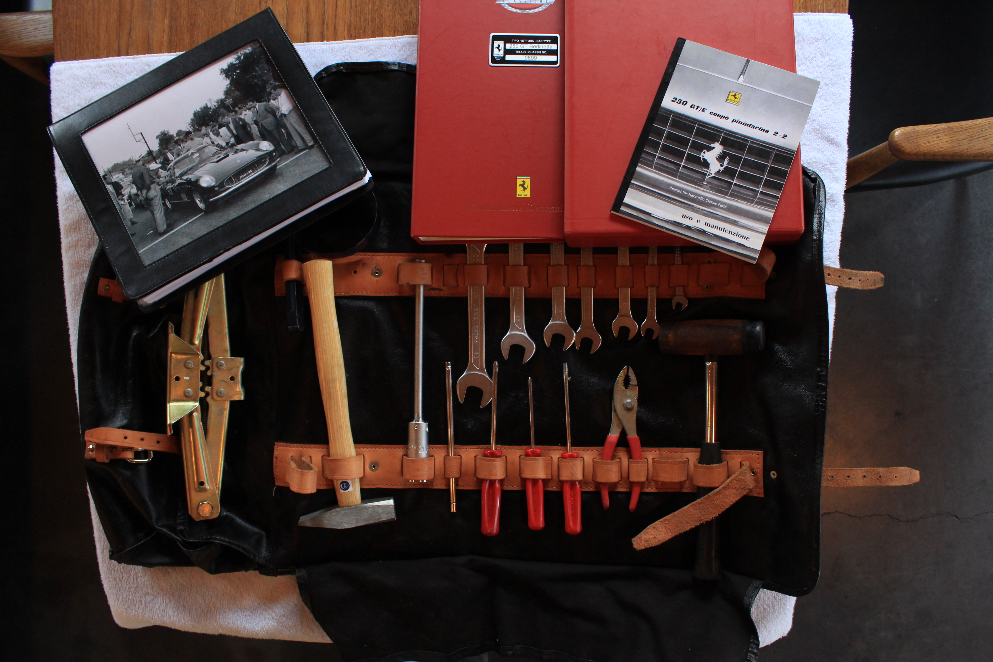 This exceptional Tour de France is accompanied by a tool roll and owner's manual, and an impressive collection of trophies, including the 2016 Concorso Italiano 'Best of Show' trophy, the 2016 Concorso Italiano ‘Best Ferrari” trophy, the 2016 Art Center 'Student Choice' trophy, and the 2017 Mar-a-Lago 'Excellence in Class' trophy. Also included is the impressive 1959 'Coppa San Marino' trophy from 0899 GT's 1959 3rd place finish. This Ferrari is presented with copious documentation first with the Ferrari Classiche Red Book, accompanied by a thick binder of vintage photos, former registration information, and former owner's correspondence. The restoration file is equally impressive, with an abundance of receipts from Ferrari Classiche totaling in excess of $700,000.00, Rex Nguyen, with records totaling over $130,000.00, Moto Technique, O’Rouke Coach Trimmers and UK Hide, totaling over $170,000.00, and Dennison International, Beckman, and FAI, totaling over $64,000.00. In all, recent restoration costs totaled an impressive and worthy $1,076,230.00