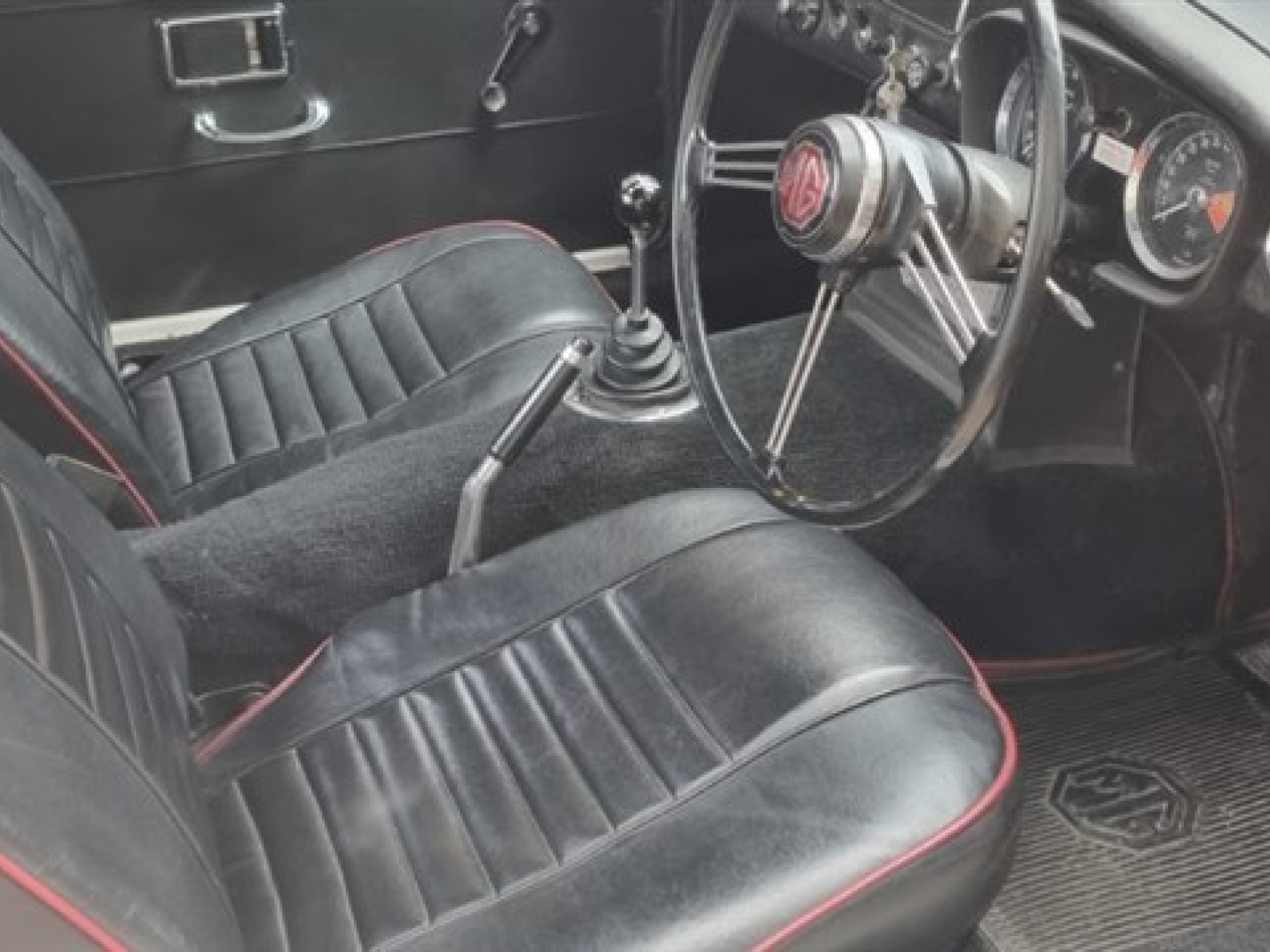 MG B Roadster MkII, Tartan Red, Wire wheels, Black piped in red interior.