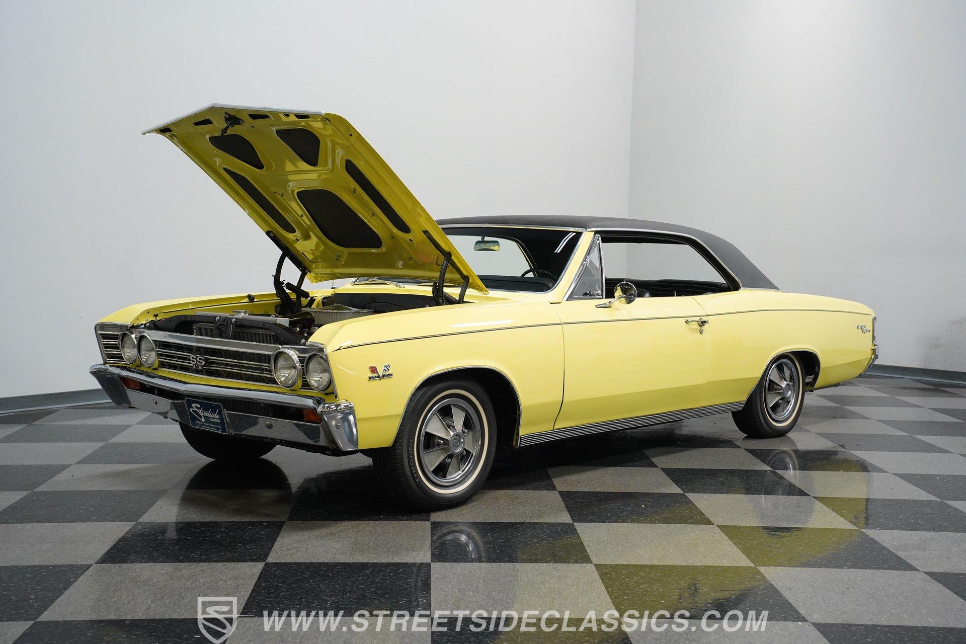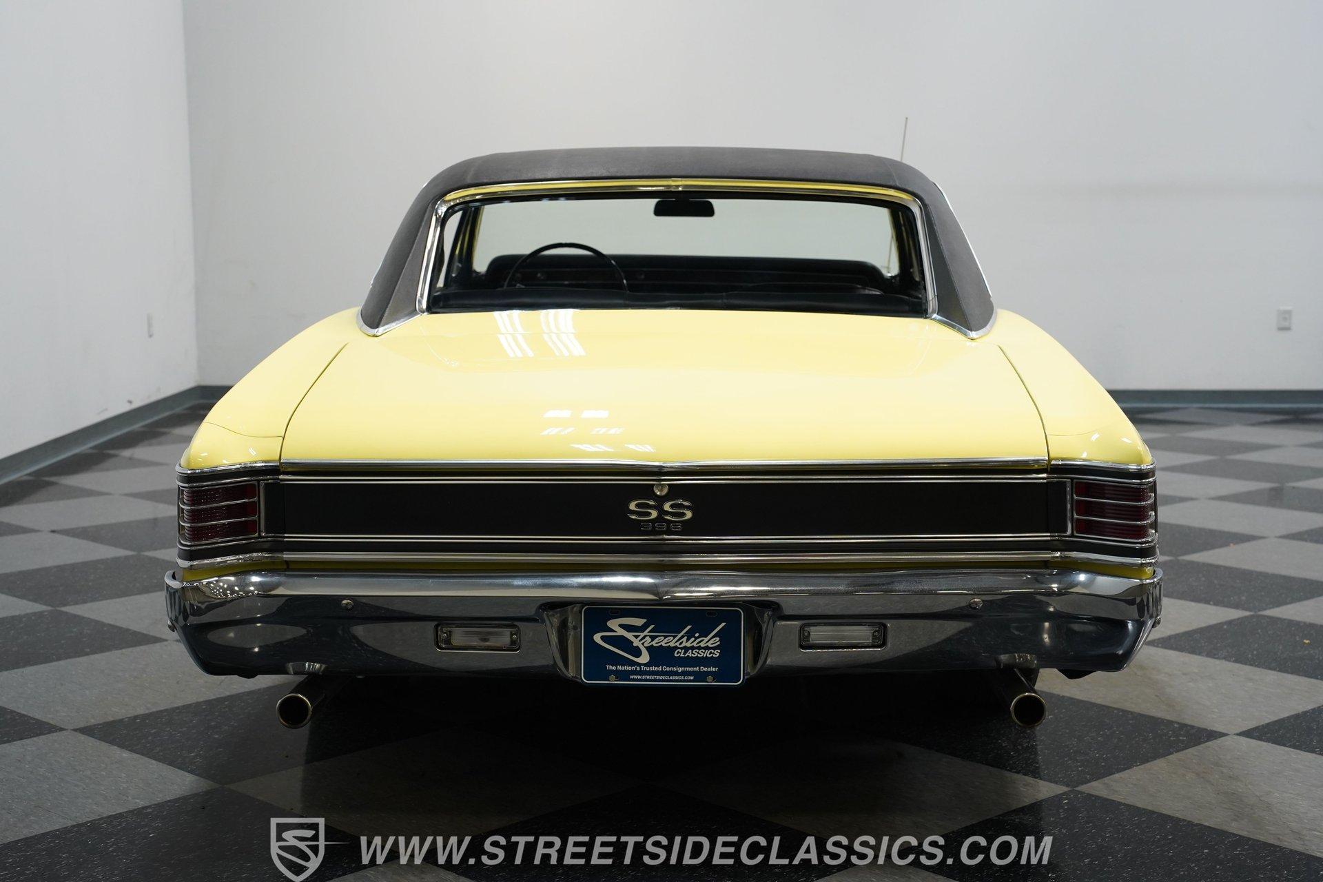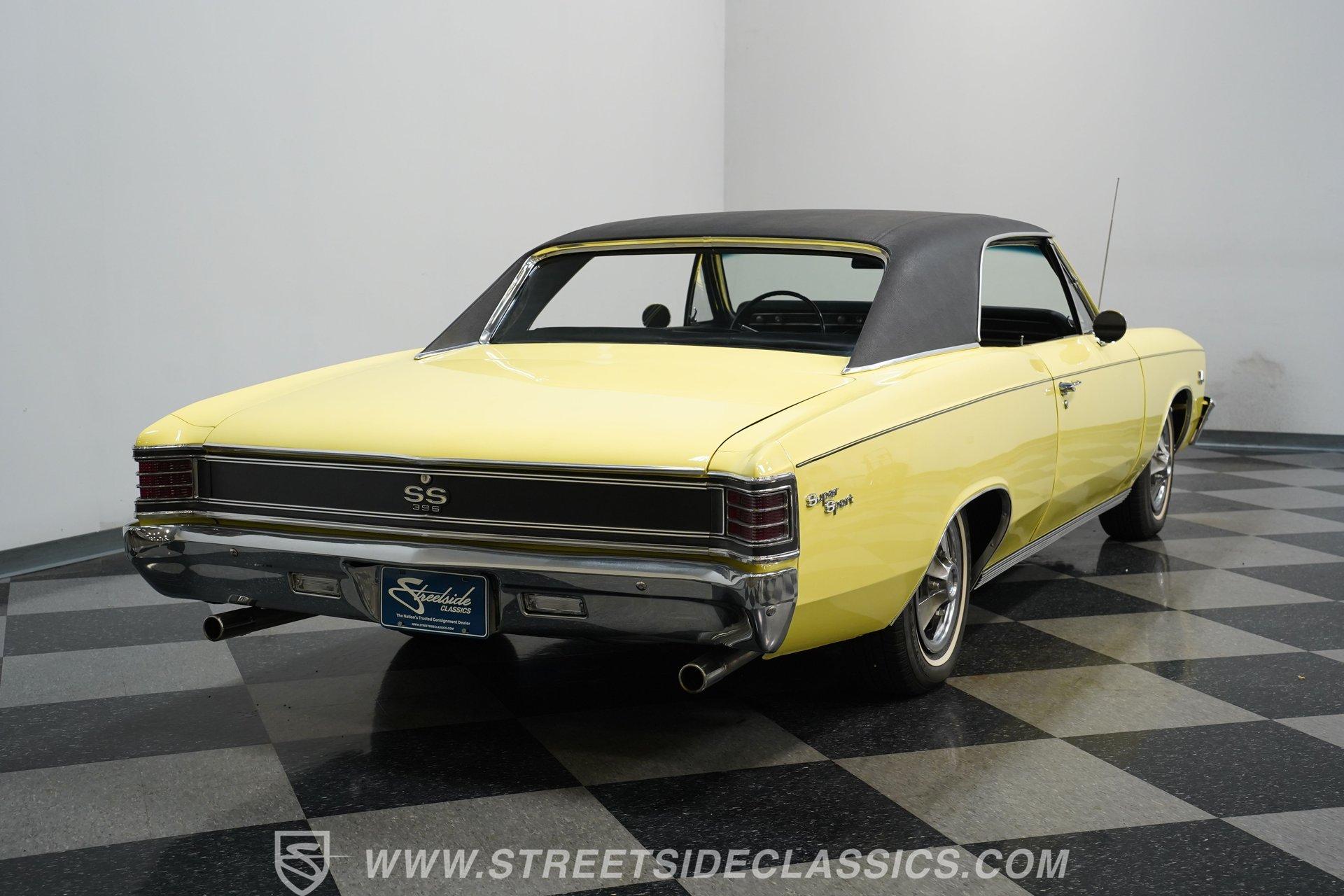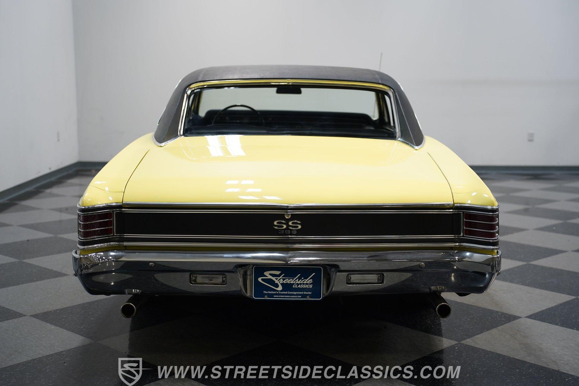 The 1967 Chevrolet Chevelle SS 396 Tribute is a testament to the golden era of American muscle cars. Its vibrant yellow exterior, complemented by a sleek black vinyl top, captures the essence of the 60s, a time when cars were more than just a mode of transportation; they were a statement of style and power. Inside, the black vinyl bucket seats provide a comfortable and sporty feel, enhanced by the presence of a center console. The nostalgic AM radio ensures that every drive is accompanied by the tunes of yesteryears, adding to the vintage ambiance of the vehicle. With a history of meticulous restoration and attention to detail, this Chevelle SS 396 Tribute stands as a symbol of passion for classic cars. Whether you're a seasoned collector or just starting out, this Chevelle is a timeless piece of automotive art, waiting to be driven and admired. HIGHLIGHTS: Vibrant Yellow Exterior with Classic Black Vinyl Top Sporty Black Vinyl Interior with Center Console Nostalgic AM Radio for Retro Vibes 14" Wheels for a Timeless Stance Dual Exhaust with Distinctive Aftermarket Mufflers Power Disc Front and Drum Rear Brakes for Safety Stock Suspension for an Authentic Ride Experience FEATURES: Vibrant Yellow Paint Black Vinyl Top 14" Classic Wheels Power Disc Front Brakes Power Drum Rear Brakes Dual Exhaust Aftermarket Mufflers Stock Suspension Nostalgic AM Radio Owner's Manual Included Experience the golden era of muscle cars with this 1967 Chevrolet Chevelle SS 396 Tribute. Boasting a 454 V8 engine, 2-speed automatic transmission, and a captivating yellow exterior, this Chevelle is a beautifully restored masterpiece that promises unmatched style and performance.