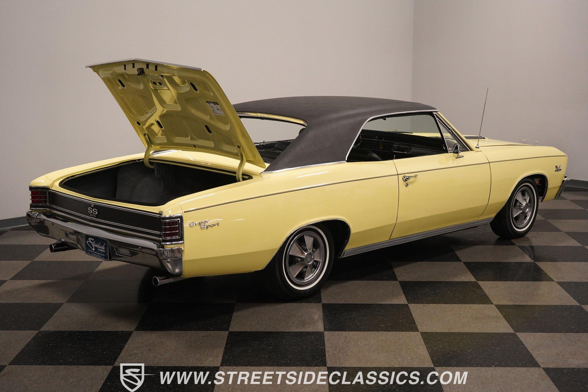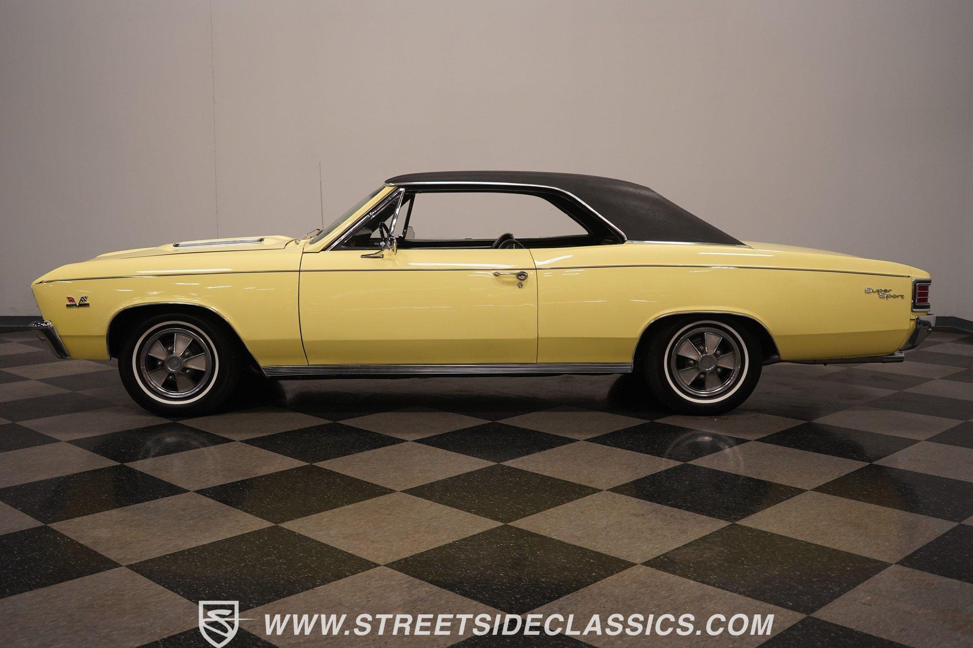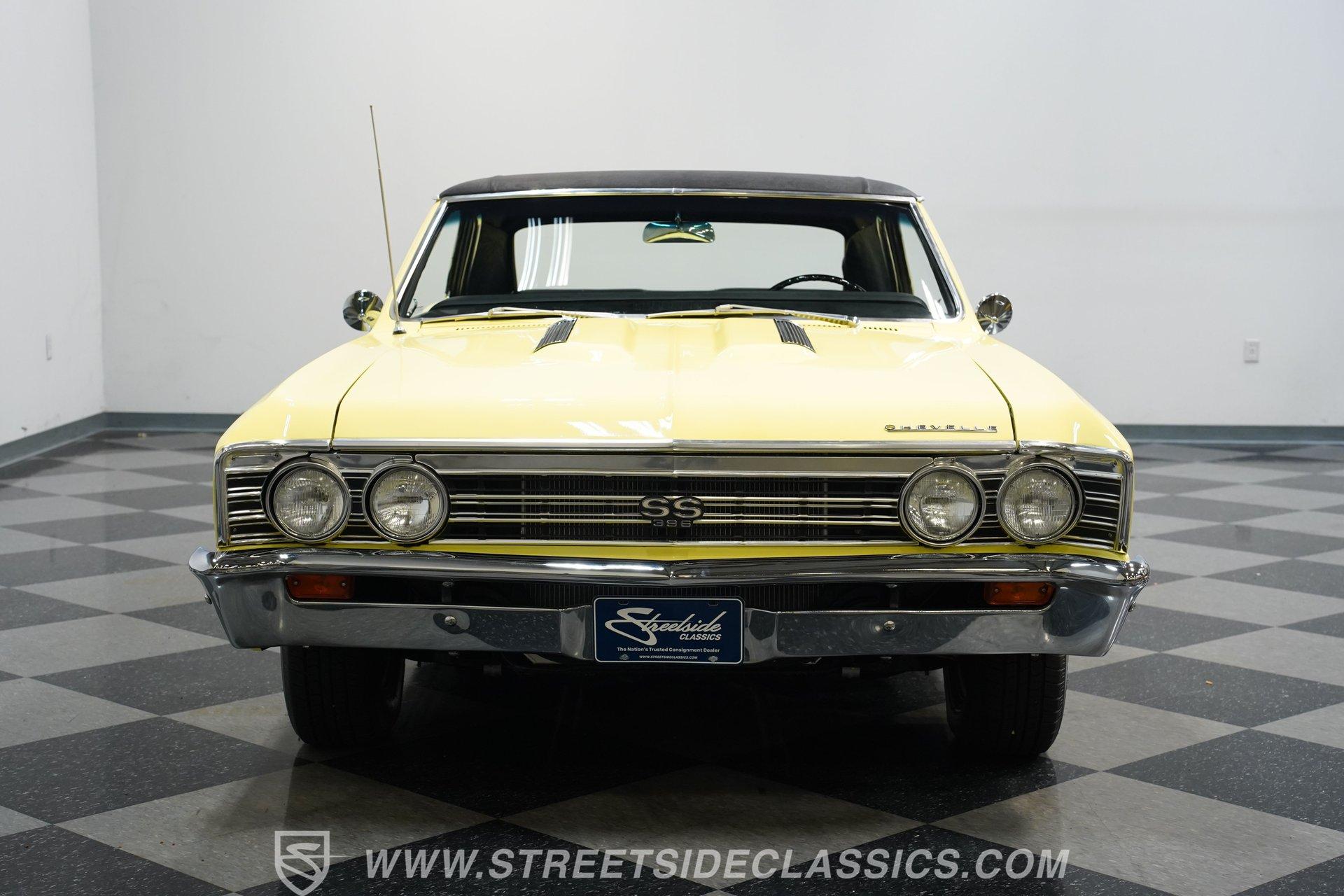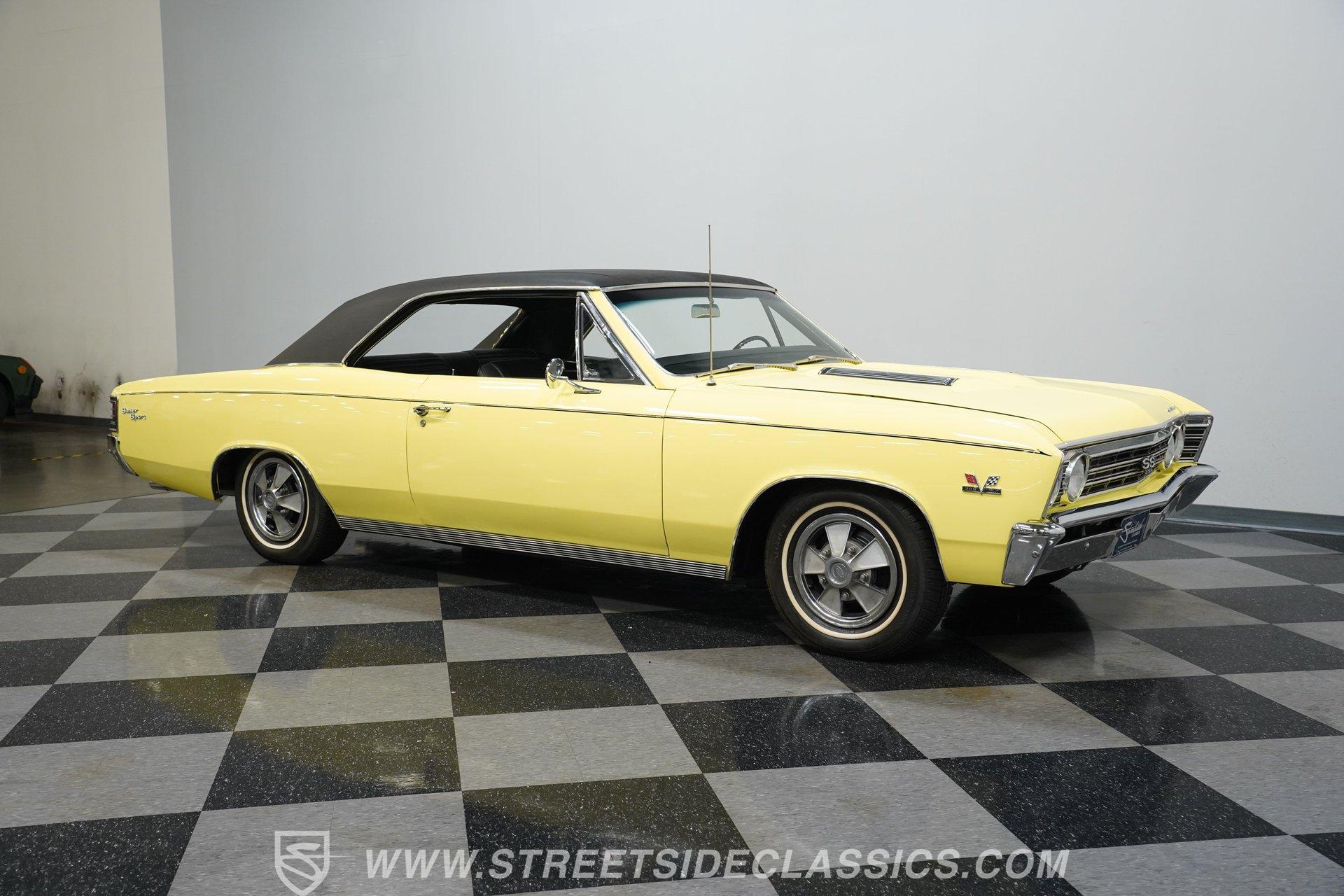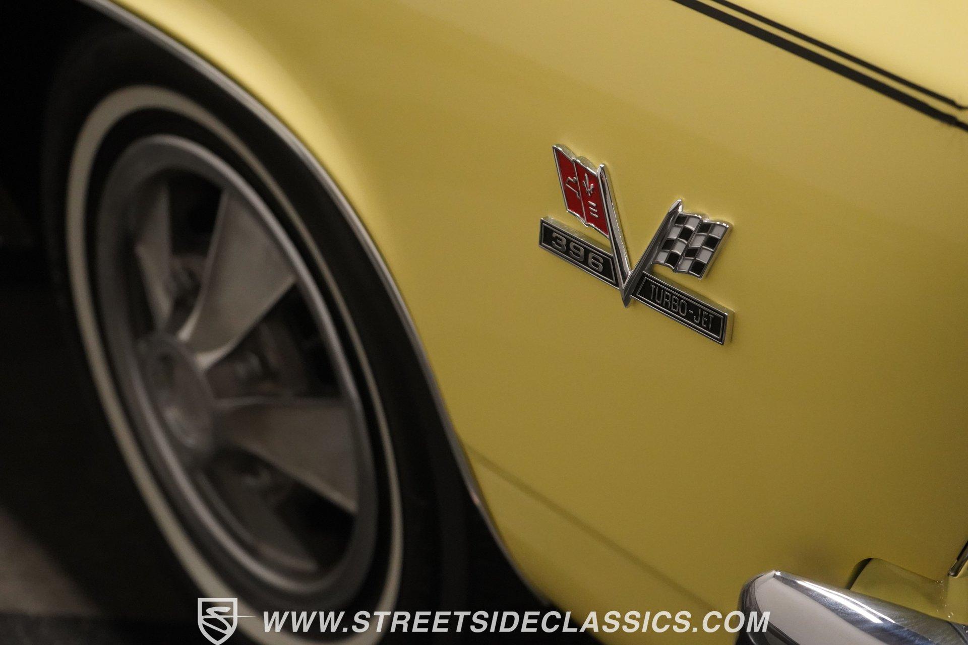 The 1967 Chevrolet Chevelle SS 396 Tribute is a testament to the golden era of American muscle cars. Its vibrant yellow exterior, complemented by a sleek black vinyl top, captures the essence of the 60s, a time when cars were more than just a mode of transportation; they were a statement of style and power. Inside, the black vinyl bucket seats provide a comfortable and sporty feel, enhanced by the presence of a center console. The nostalgic AM radio ensures that every drive is accompanied by the tunes of yesteryears, adding to the vintage ambiance of the vehicle. With a history of meticulous restoration and attention to detail, this Chevelle SS 396 Tribute stands as a symbol of passion for classic cars. Whether you're a seasoned collector or just starting out, this Chevelle is a timeless piece of automotive art, waiting to be driven and admired. HIGHLIGHTS: Vibrant Yellow Exterior with Classic Black Vinyl Top Sporty Black Vinyl Interior with Center Console Nostalgic AM Radio for Retro Vibes 14" Wheels for a Timeless Stance Dual Exhaust with Distinctive Aftermarket Mufflers Power Disc Front and Drum Rear Brakes for Safety Stock Suspension for an Authentic Ride Experience FEATURES: Vibrant Yellow Paint Black Vinyl Top 14" Classic Wheels Power Disc Front Brakes Power Drum Rear Brakes Dual Exhaust Aftermarket Mufflers Stock Suspension Nostalgic AM Radio Owner's Manual Included Experience the golden era of muscle cars with this 1967 Chevrolet Chevelle SS 396 Tribute. Boasting a 454 V8 engine, 2-speed automatic transmission, and a captivating yellow exterior, this Chevelle is a beautifully restored masterpiece that promises unmatched style and performance.
