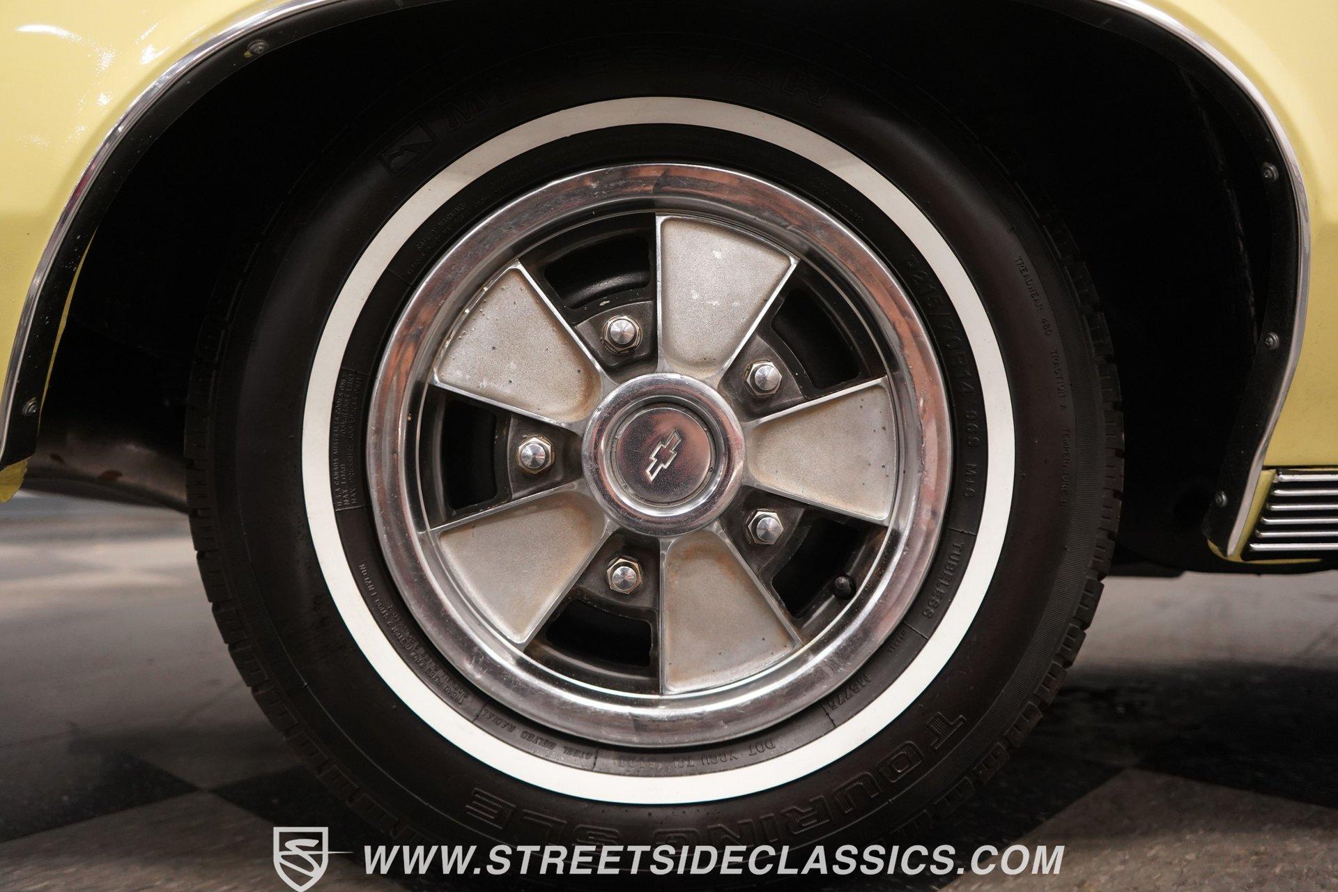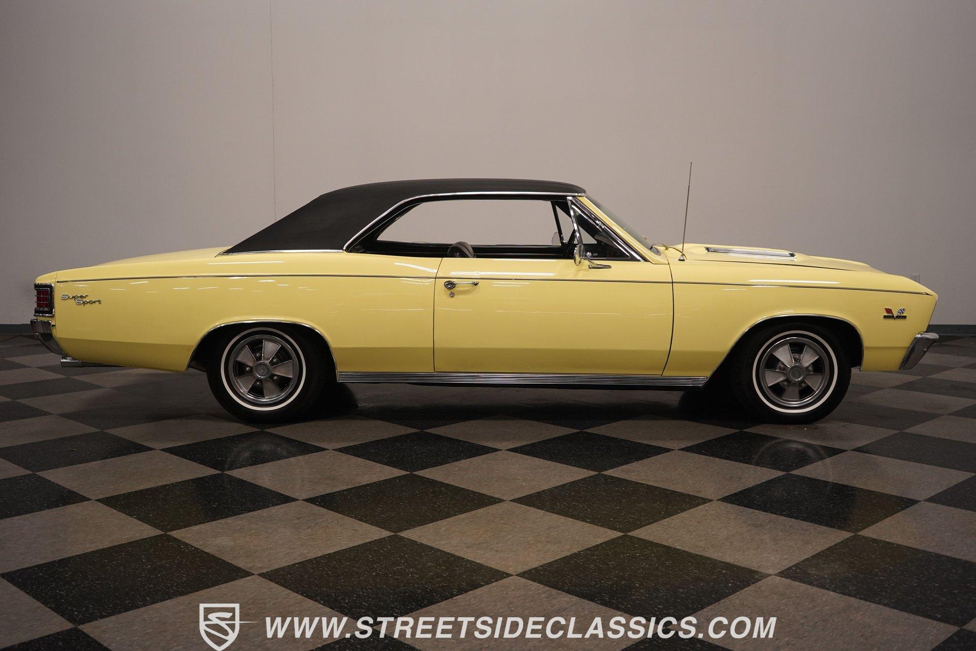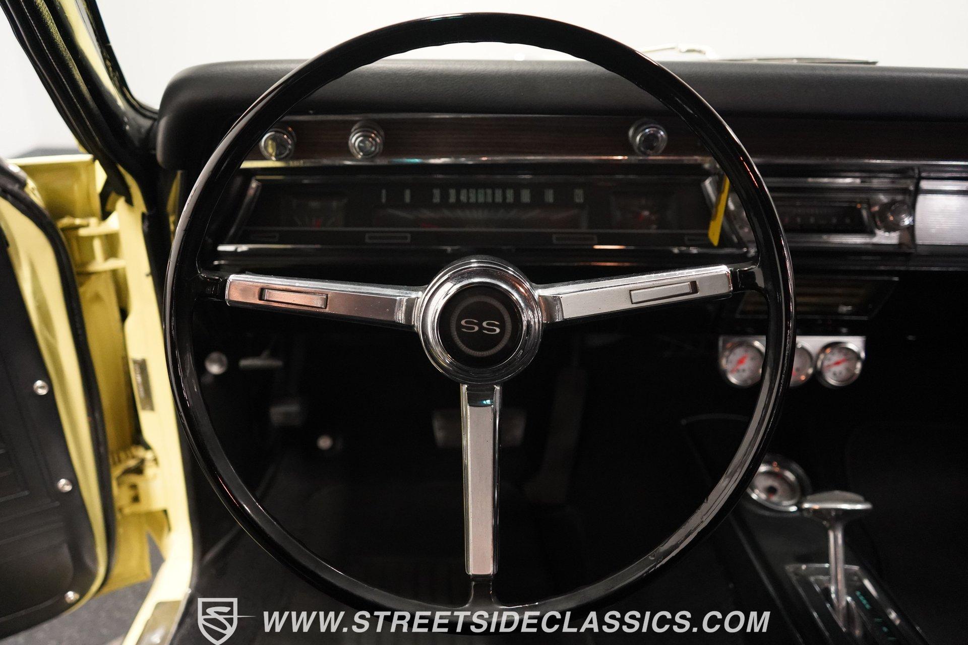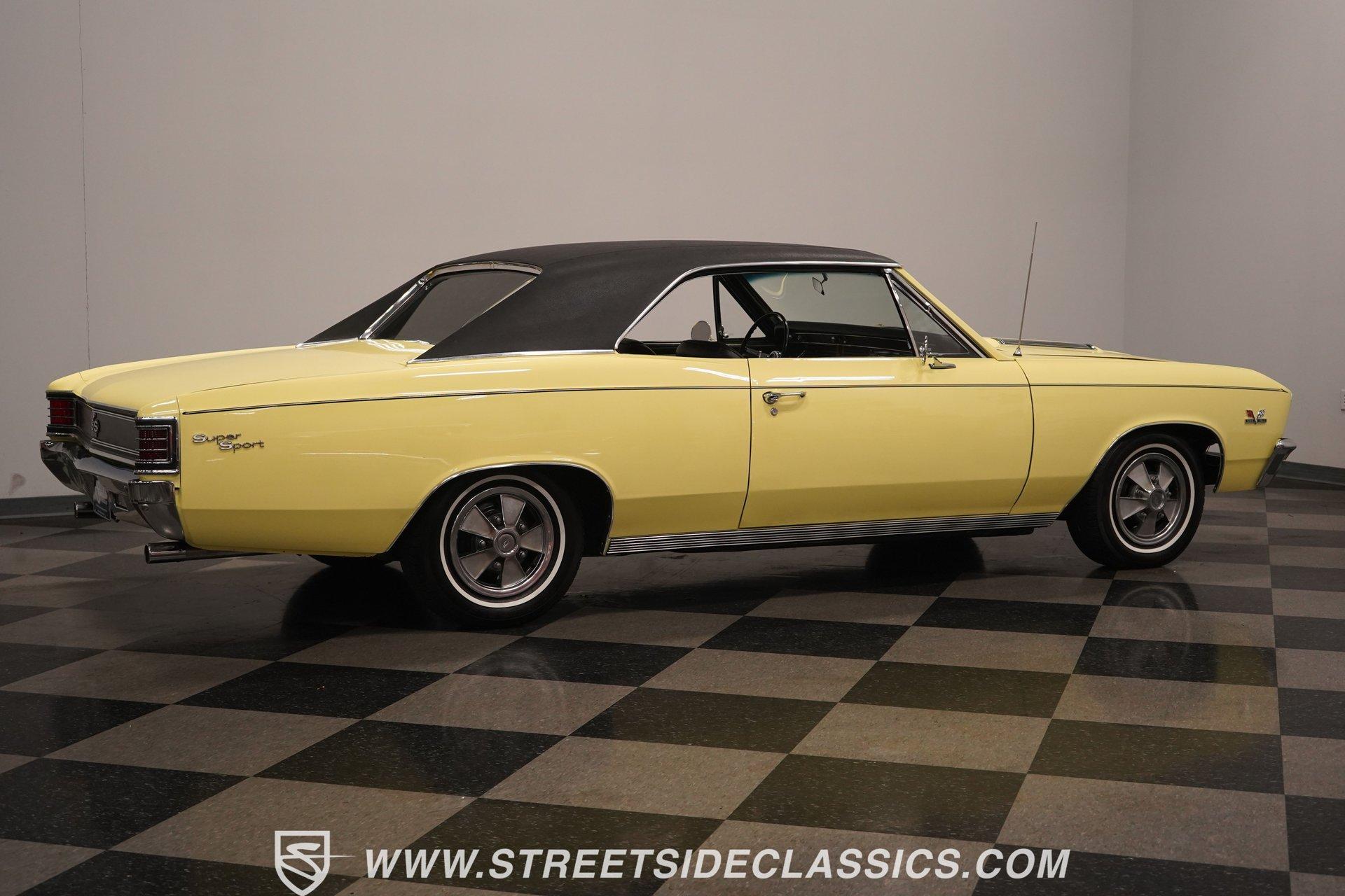 The 1967 Chevrolet Chevelle SS 396 Tribute is a testament to the golden era of American muscle cars. Its vibrant yellow exterior, complemented by a sleek black vinyl top, captures the essence of the 60s, a time when cars were more than just a mode of transportation; they were a statement of style and power. Inside, the black vinyl bucket seats provide a comfortable and sporty feel, enhanced by the presence of a center console. The nostalgic AM radio ensures that every drive is accompanied by the tunes of yesteryears, adding to the vintage ambiance of the vehicle. With a history of meticulous restoration and attention to detail, this Chevelle SS 396 Tribute stands as a symbol of passion for classic cars. Whether you're a seasoned collector or just starting out, this Chevelle is a timeless piece of automotive art, waiting to be driven and admired. HIGHLIGHTS: Vibrant Yellow Exterior with Classic Black Vinyl Top Sporty Black Vinyl Interior with Center Console Nostalgic AM Radio for Retro Vibes 14" Wheels for a Timeless Stance Dual Exhaust with Distinctive Aftermarket Mufflers Power Disc Front and Drum Rear Brakes for Safety Stock Suspension for an Authentic Ride Experience FEATURES: Vibrant Yellow Paint Black Vinyl Top 14" Classic Wheels Power Disc Front Brakes Power Drum Rear Brakes Dual Exhaust Aftermarket Mufflers Stock Suspension Nostalgic AM Radio Owner's Manual Included Experience the golden era of muscle cars with this 1967 Chevrolet Chevelle SS 396 Tribute. Boasting a 454 V8 engine, 2-speed automatic transmission, and a captivating yellow exterior, this Chevelle is a beautifully restored masterpiece that promises unmatched style and performance.
