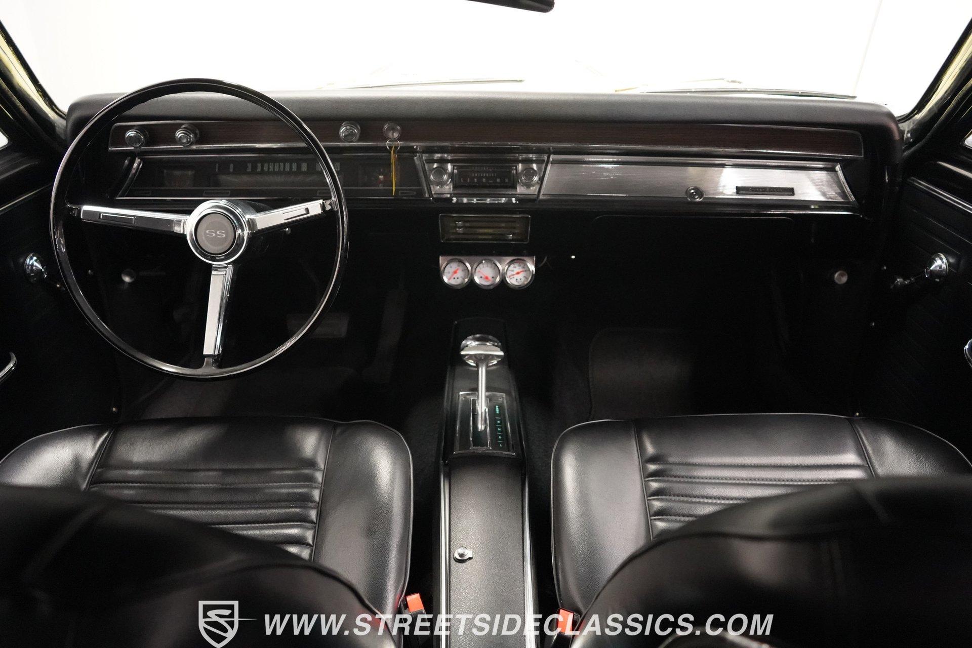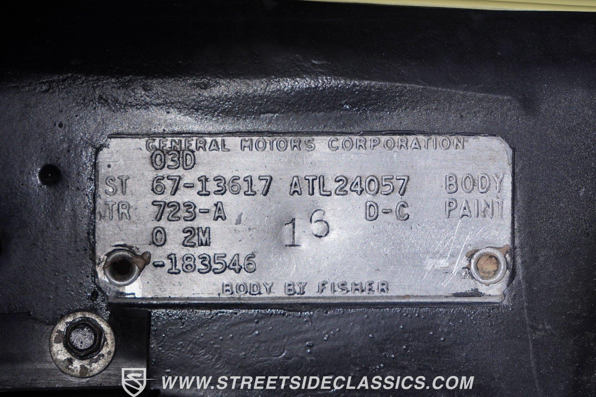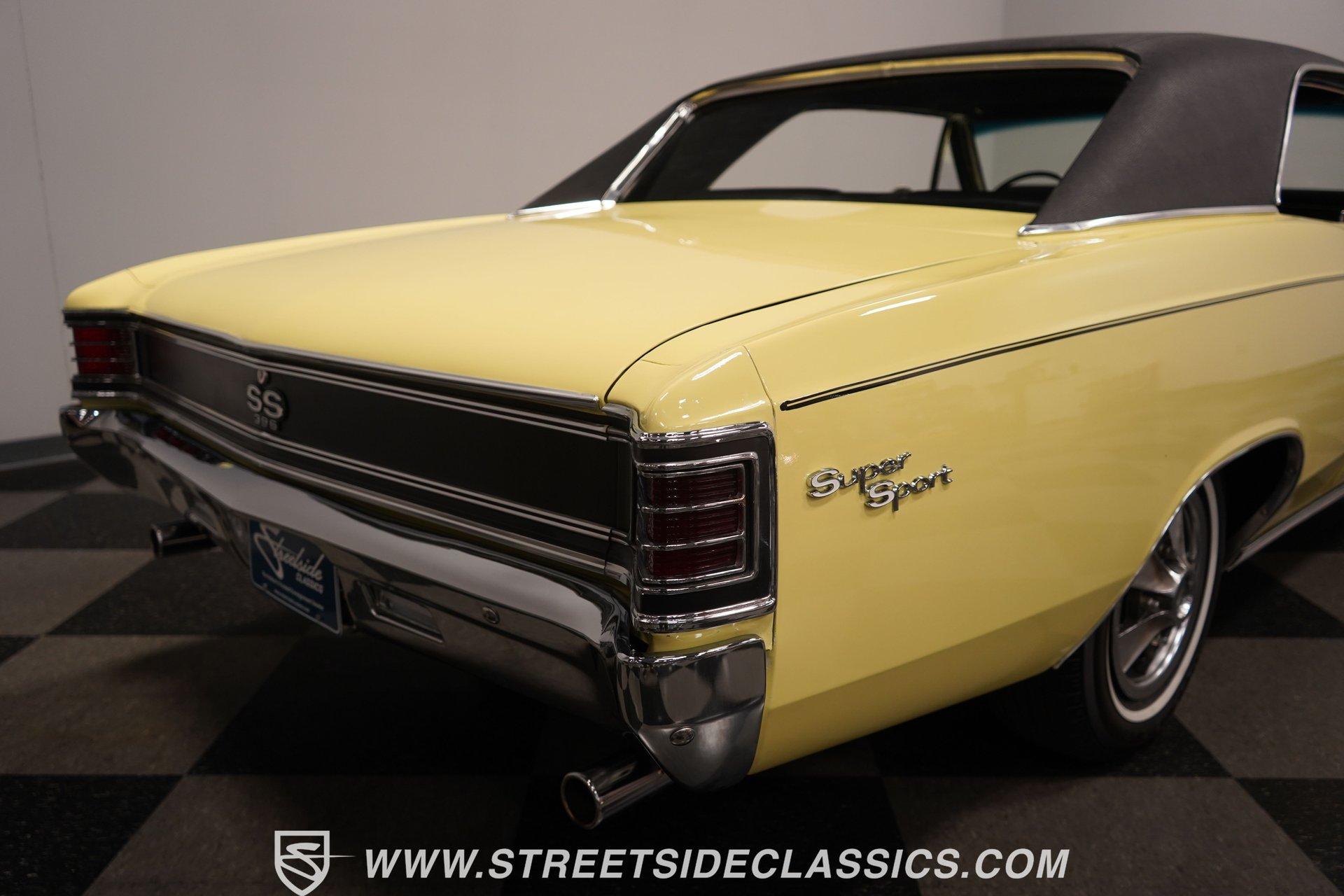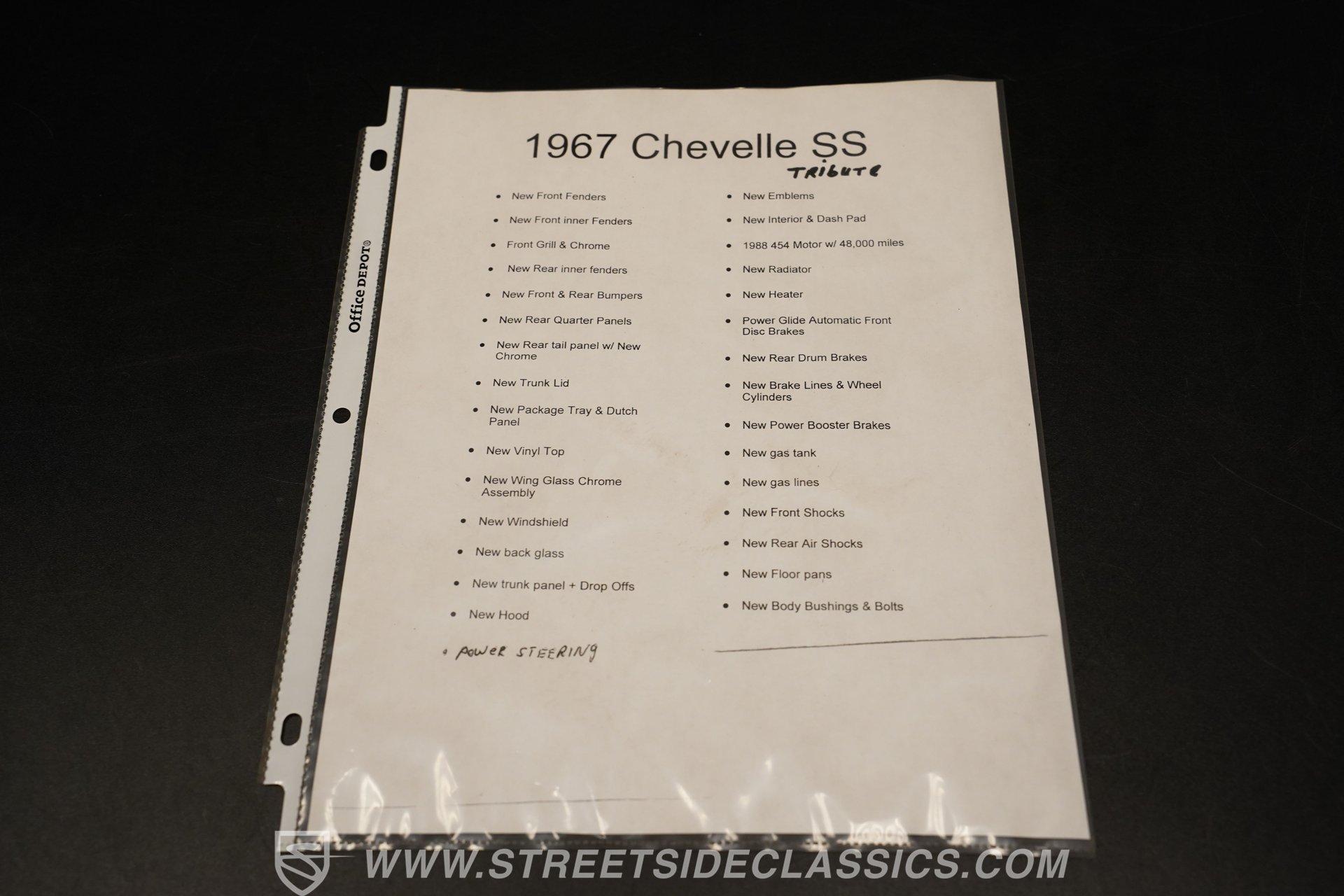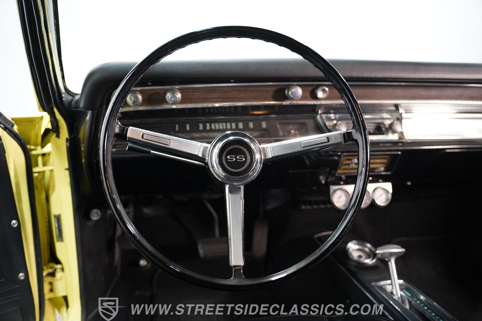 The 1967 Chevrolet Chevelle SS 396 Tribute is a testament to the golden era of American muscle cars. Its vibrant yellow exterior, complemented by a sleek black vinyl top, captures the essence of the 60s, a time when cars were more than just a mode of transportation; they were a statement of style and power. Inside, the black vinyl bucket seats provide a comfortable and sporty feel, enhanced by the presence of a center console. The nostalgic AM radio ensures that every drive is accompanied by the tunes of yesteryears, adding to the vintage ambiance of the vehicle. With a history of meticulous restoration and attention to detail, this Chevelle SS 396 Tribute stands as a symbol of passion for classic cars. Whether you're a seasoned collector or just starting out, this Chevelle is a timeless piece of automotive art, waiting to be driven and admired. HIGHLIGHTS: Vibrant Yellow Exterior with Classic Black Vinyl Top Sporty Black Vinyl Interior with Center Console Nostalgic AM Radio for Retro Vibes 14" Wheels for a Timeless Stance Dual Exhaust with Distinctive Aftermarket Mufflers Power Disc Front and Drum Rear Brakes for Safety Stock Suspension for an Authentic Ride Experience FEATURES: Vibrant Yellow Paint Black Vinyl Top 14" Classic Wheels Power Disc Front Brakes Power Drum Rear Brakes Dual Exhaust Aftermarket Mufflers Stock Suspension Nostalgic AM Radio Owner's Manual Included Experience the golden era of muscle cars with this 1967 Chevrolet Chevelle SS 396 Tribute. Boasting a 454 V8 engine, 2-speed automatic transmission, and a captivating yellow exterior, this Chevelle is a beautifully restored masterpiece that promises unmatched style and performance.