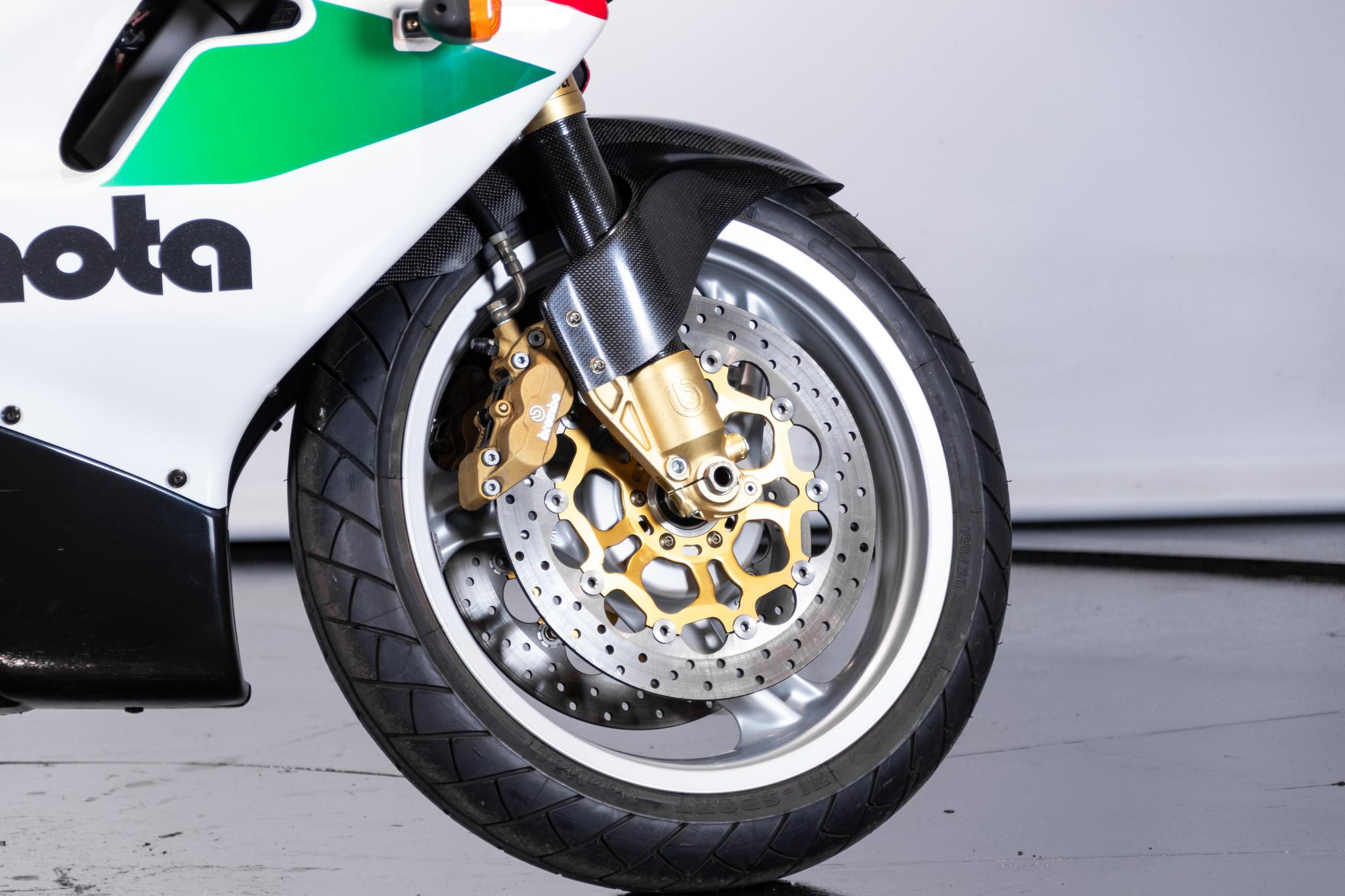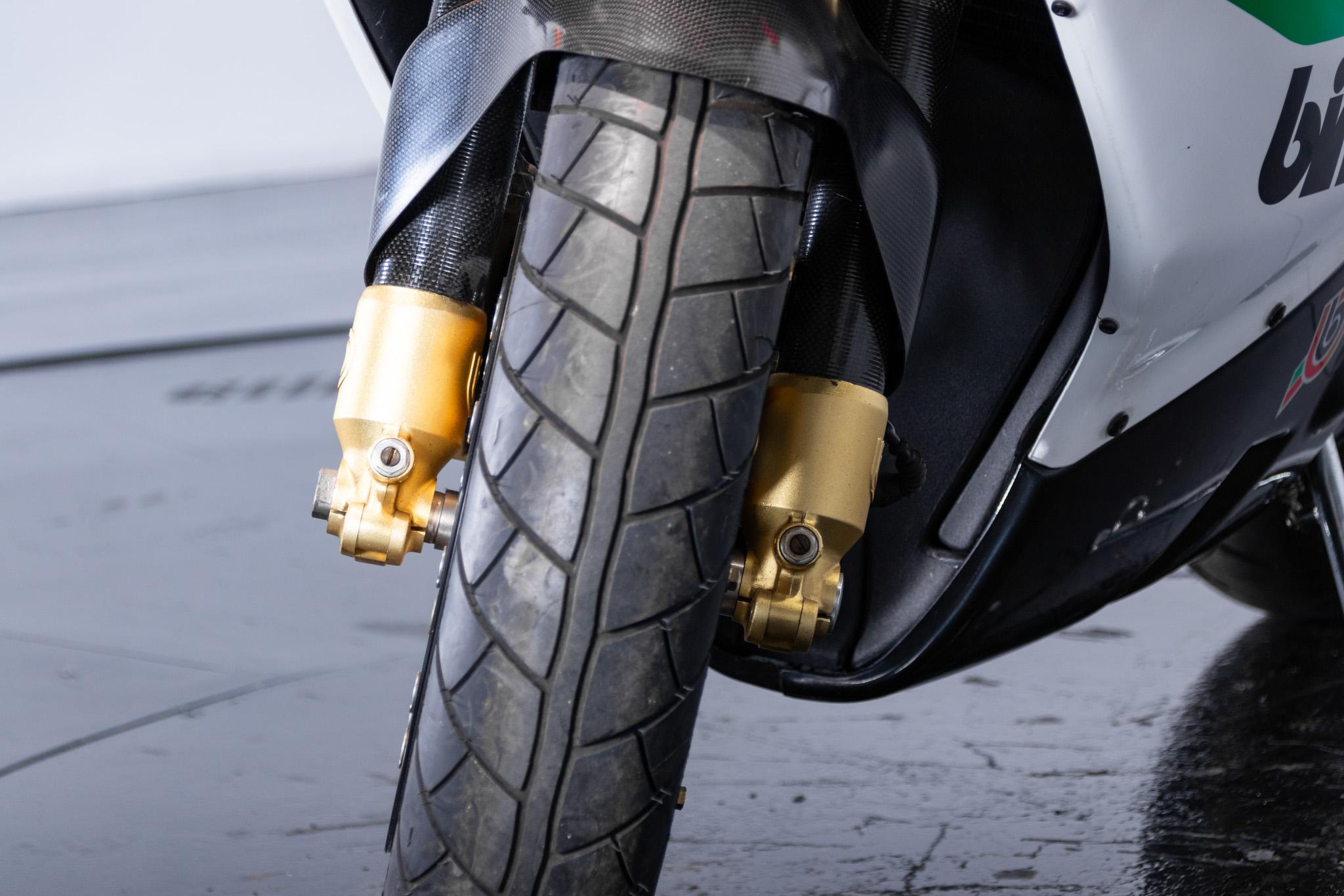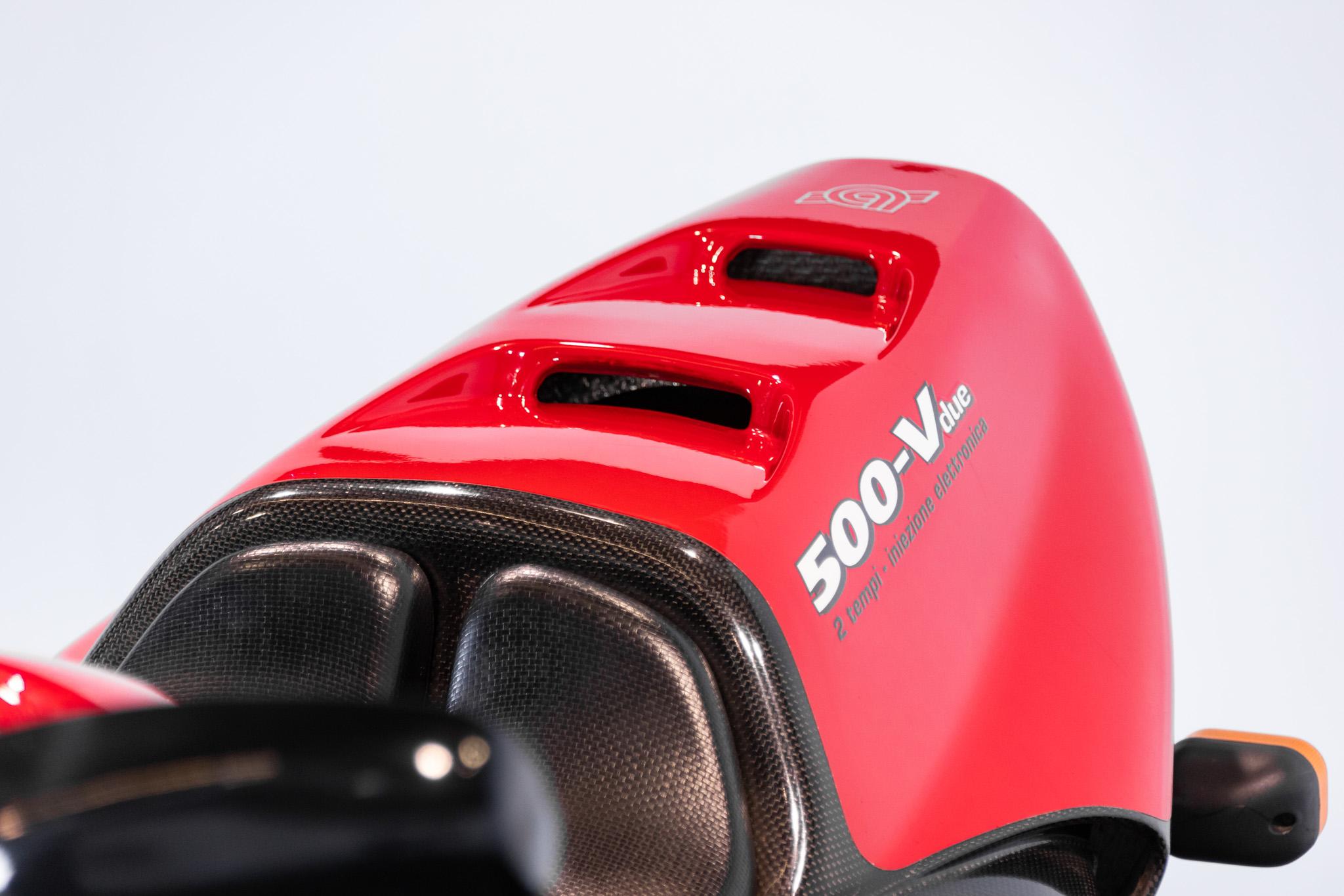 Nata nel 1993, interamente progettata a Rimini , Bimota 500 V- Due è l’ultima due tempi prodotta in serie. Nasce dall’idea, mai arrivata a traguardo, di far competere Bimota nel mondiale 500. Abbandonato il progetto mondiale per mancanza di fondi, la moto viene riconvertita ed omologata per la strada. Dopo RD 500 e Gamma 500, ecco lei. 164 kg, 110 cv a 9.000 giri. Bicilindrico a V di 90° con i cilindri entrambi rivolti in avanti, le dimensioni di una 125. Una 500 da gran premio, addomesticata e riadattata alla circolazione in strada. La componentistica ed il telaio sono al top, come da tradizione Bimota. Il telaietto posteriore è un monoscocca in alluminio. Lo scarico, con curvature uniche, e’ studiato per ridurre i buchi di erogazione di una 2 tempi da competizione. L’iniezione è elettronica . Prodotta in soli 150 esemplari. Diventata un oggetto di culto.