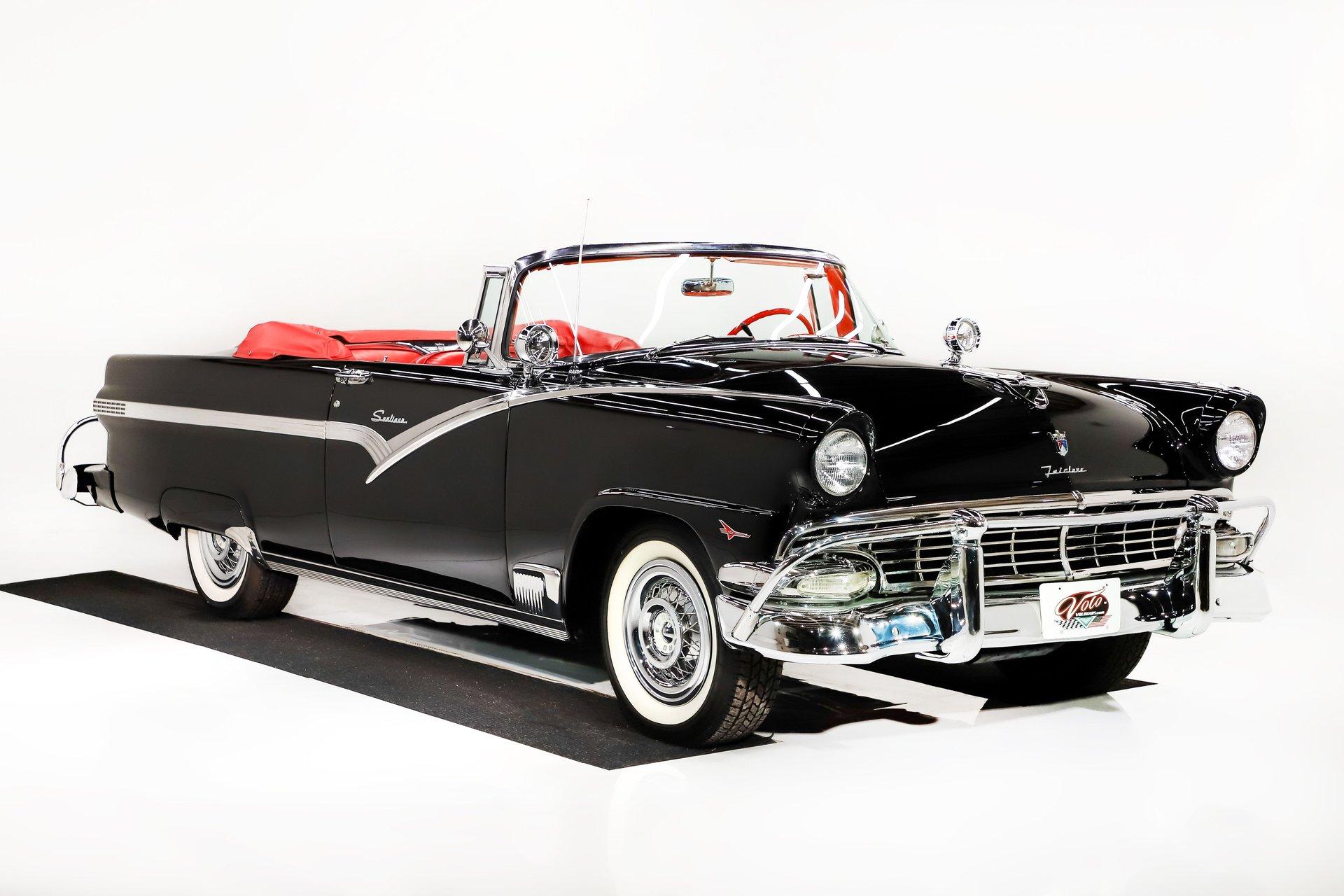 Wow, what a looker! Killer colors and it is fully decked out with accessories. Older body off frame restoration that still looks great. It features an automatic trans, power steering and brakes which makes easy peasy to drive. EXTERIOR: The body is straight, no rust or damage. According to the tag it is an original Raven Black car, it is like looking into a mirror. Loaded with accessories that really make it stand apart from the others. Up front it has the "cattle guard". On each side it has a spotlight, stone shields, rocker molding, fender skirts and door handle guards. In back is a "cattle guard", Continental kit with matching hubcap and dual exhaust coming through the bumper. All the chrome and trim is shiny and straight. On top is a power convertible upgraded with black cloth. On the ground is a set of radial white walls with optional wire basket hubcaps. INTERIOR: Awesome looking Red-White interior against the black paint. Reproduction upholstery and door panels. Red carpet and embroidered mats on the floor. Seatbelts in front. The metal trim is repainted smooth glossy red. The dash area is very clean looking. It has quartz movement in the clock, optional Town and Country radio and an owner's manual in the glovebox. ENGINE COMPARTMENT: Clean looking, stock engine compartment. It has a Teapot 4 barrel carb with correct choke tube, Thunderbird Special valve covers and oil bath air cleaner. It features power steering and brakes. 1956 was the first year for the 12 volt system. It's all painted up neatly. TRUNK COMPARTMENT: The continental kit swings out of the way to open the trunk. Under the trunk lid and the jamb are painted nicely. The weatherstrip, trunk mat and well liner are in excellent shape. It has a white wall spare on a painted rim with the jack assembly. UNDERSIDE: It looks like it was an older frame off restoration. The floors, rockers and braces are amazingly rust free clean metal painted semigloss black. The steering and suspension look to be in good shape, upgraded with air shocks in back. It has a polished stainless dual exhaust system. The fuel tank and straps have been replaced. Factory drum brakes at all four wheels, the e-brake is hooked up. Looking up at the motor it is clean. The Cruise-o-Matic transmission also looks clean. SERVICE: We inspected the car and gave it an oil change, tuned the carb, and set the timing. We fixed the wipers, replaced the brake light switch, repaired the spotlights, replaced the door lock cylinders, bled the power top system, lubed, and adjusted the hood latch, bled the brakes. CONCLUSION: There are other Sunliners out there, they are not this one! The colors, accessories and condition make this the one to have. Vehicles are displayed in a museum setting. Admission applies without an appointment and is refunded with purchase, including a one-year museum membership. 815 385 3644 9-5 central Sales@volocars.com Answered ASAP Power steering Power brakes Power top Engine dress up Dual spotlights Fender skirts Continental kit Cattle guard Wire hubcaps Whitewalls Rocker moldings Stone shields Door handle guards Cloth top Seatbelts T&C radio Embroidered mats 4 barrel carb Dual exhaust