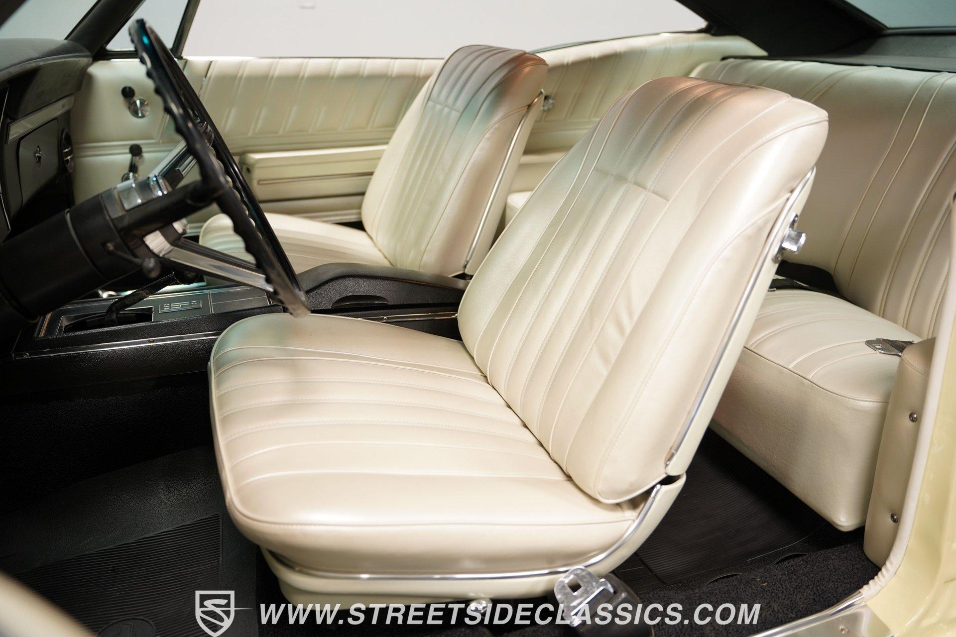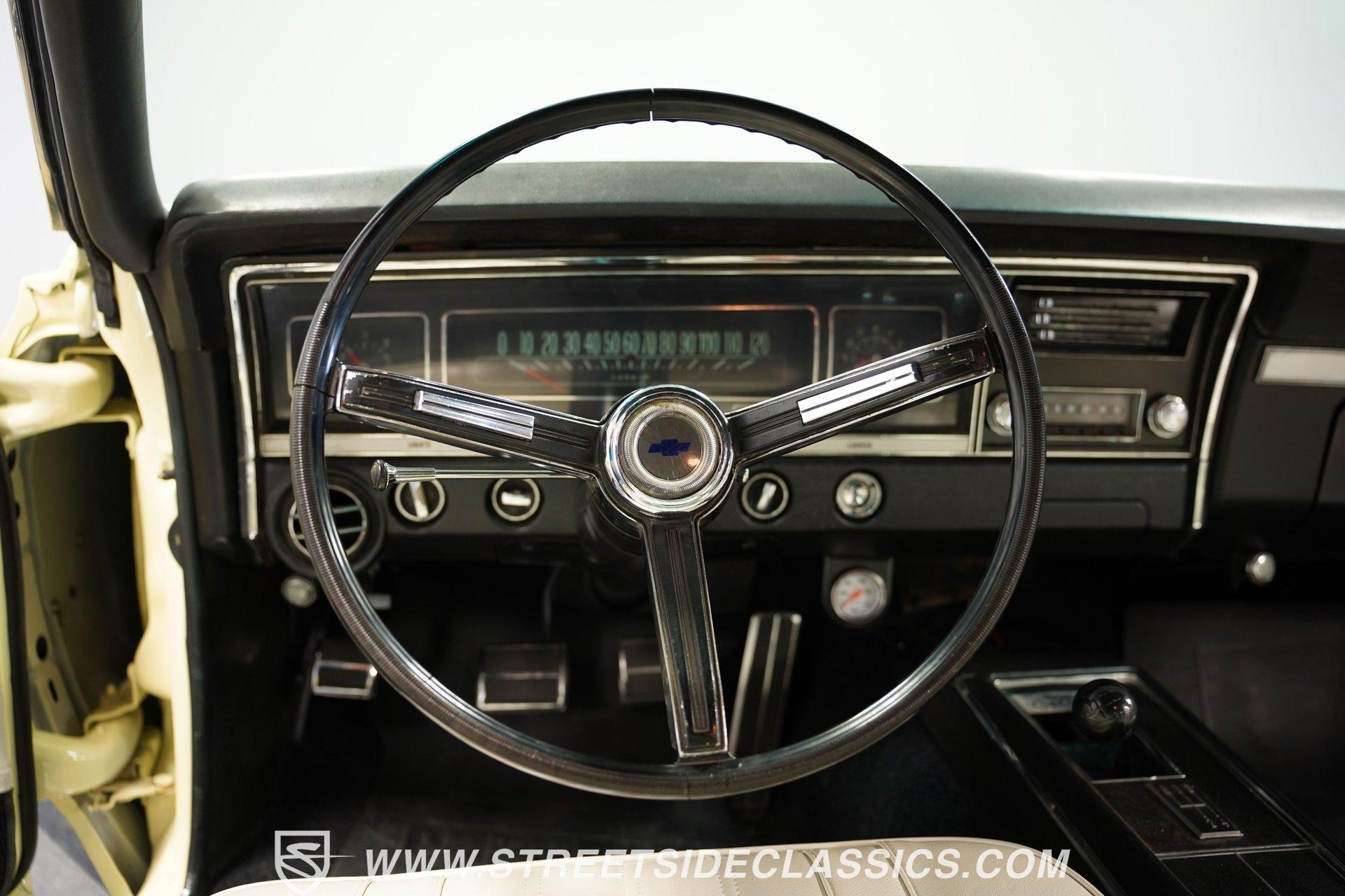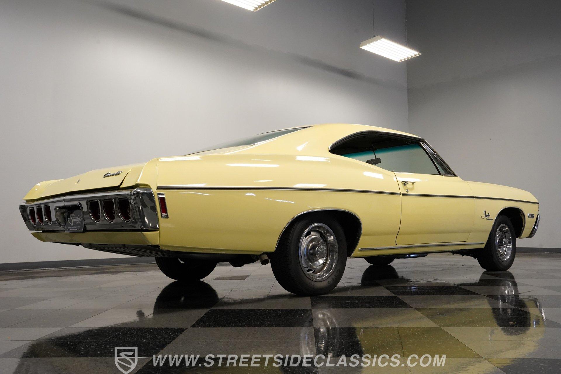 If you like big and fast cars, this 1968 Chevrolet Impala 427 is for you. Finished in its original factory color of Butternut Yellow (Code Y) with a Parchment interior, this classic Impala has been treated to a comprehensive, every-nut-and-bolt, frame-off restoration. The sleek, fastback styling makes this car look like it's going fast even when standing still. A set of 15-inch Chevrolet rally wheels adds to the sportiness of the design, as do the optional factory front corner lights at the front of each fender. The Parchment white interior is spotless and features rare optional factory bucket seats and a console that showcases the Hurst 4-speed shifter. The big story, of course, is under the hood. This Impala came from the factory with a big block engine and currently has a rare year correct ID Suffix code 425 horsepower 427 cubic inch engine out of a 1968 Impala, mated to a Muncie M-21 4-speed manual transmission. The L72 engine, built to factory spec, is 1 of 568 ever produced in that year. The engine bay and the rest of the car have been restored to a high level, with particular attention paid to authenticity and factory correctness. Attention to detail is evidenced everywhere, including using correct hoses, hose clamps, factory Winters aluminum intake manifold, spring-ring battery cables, proper decals, and more. This Impala also has both power steering and power brakes. The undercarriage is also highly detailed to factory specifications, with all the right paint colors and finishes. Highlights: Factory big bock car Fitted with correct L72, 427V8, 425 HP Impala engine RARE: 1 of 568 425/427's in that year Muncie M-21 4-speed 12-bolt rear end Rally wheels Bucket seats Factory console Exceptional frame-off restoration done to a high level This big and fast 1968 Impala 427 is restored to a standard rarely seen on an Impala of this vintage. With a high-horse 427 big bock and a 4-speed, it is ready to impress its next owner and everyone who sees it. Call today!