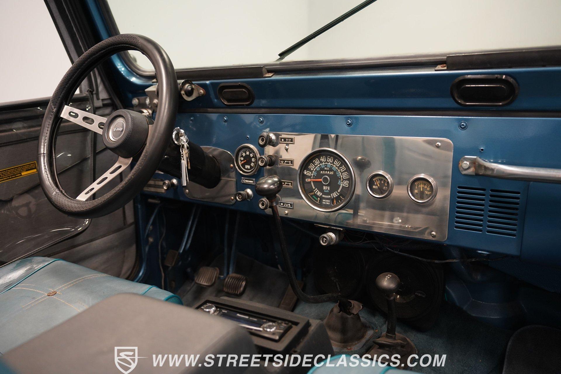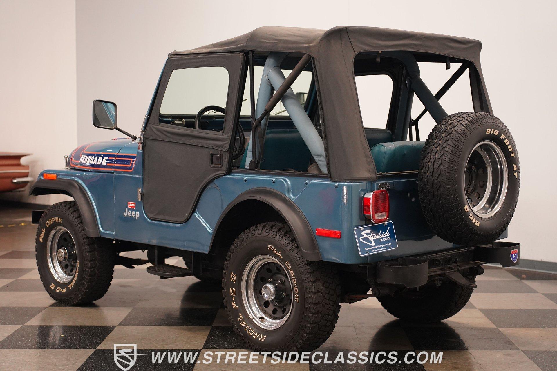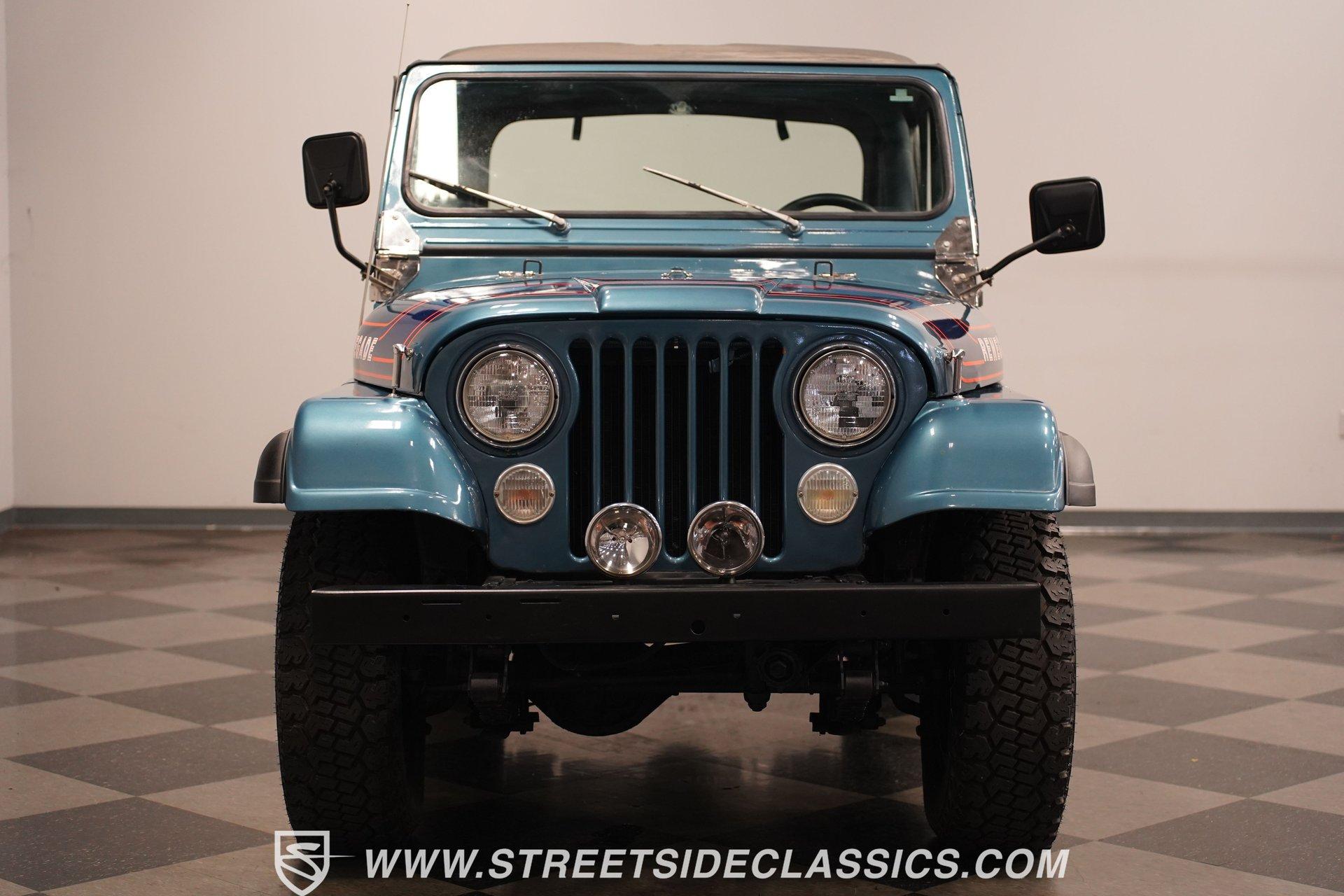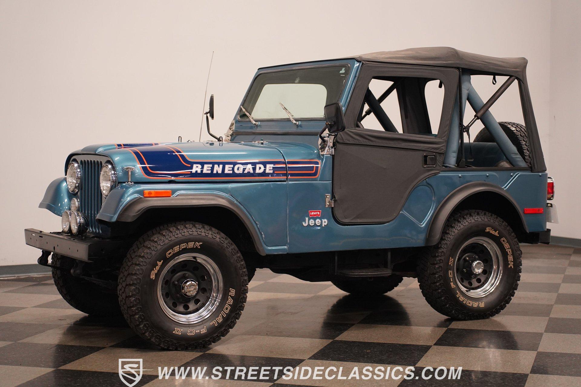 Bringing together the rugged allure of the Jeep CJ5 Renegade Levi Edition, this 1976 model revels in its Sienna Orange overhaul, which belies its vintage. Enthusiasts appreciate the precision of the detailed decals and the assertive stance provided by 15-inch wheels wrapped in 31x10.50R15LT Dick Cepek tires, ensuring it looks every bit the part of an off-road conqueror. This Jeep doesn't just sit pretty-it's a canvas of blue and orange, highlighting a journey filled with adventure. Stepping inside, the original blue Levi vinyl seats beckon with their distinctive charm, setting a vibrant contrast against the utilitarian dashboard. The addition of a Panasonic stereo system, coupled with extra speakers, enriches the cabin, ensuring that each drive is accompanied by a soundtrack as compelling as the landscapes it traverses. Mechanically, this CJ5 is equipped with a 258 CI Inline-6 Jasper engine, paired with a 4-speed manual transmission that commands respect on any terrain. The suspension, kept faithful with leaf springs and shocks, supports the vintage frame, providing a driving experience that's as authentic as it is thrilling. Despite its age, the Jeep runs with a gusto that matches its visual appeal, supported by a drum brake setup on all four corners. HIGHLIGHTS: 258 CI Inline-6 Engine 4-Speed Manual Transmission Leaf Springs w/ Shocks Suspension Drum Brakes Side Exit Exhaust Sienna Orange Full Repaint Blue Decals 15" Wheels 31x10.50R15LT Dick Cepek Tires Removable Soft Top and Doors Bikini Top by Bestop Rear Mounted Spare Blue Levi Vinyl Seats Panasonic Stereo Additional Speakers Vinyl Flooring Chiltons Manual Miscellaneous Maintenance Records dating back to the 90s This 1976 Jeep CJ5 Renegade Levi Edition, with its vintage engine and vibrant interior, encapsulates a spirit ready to tackle both roads and hearts. Combining rugged functionality with aesthetic appeal, this Jeep is not merely a vehicle, but a gateway to uncharted territories. Ready to make it yours? Call today!