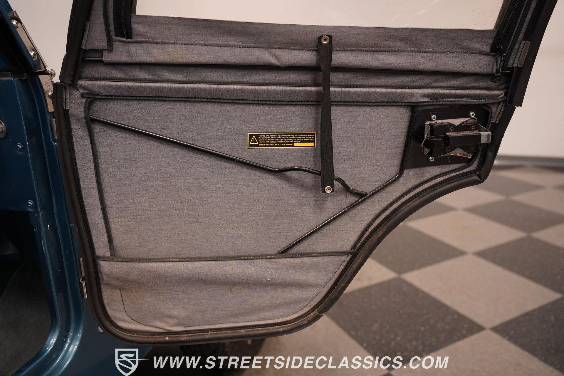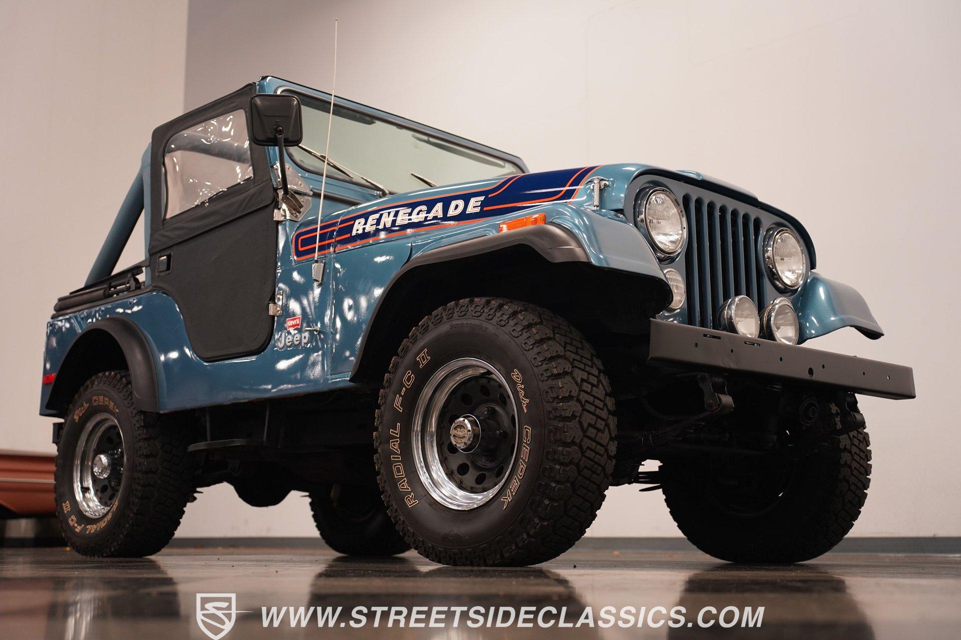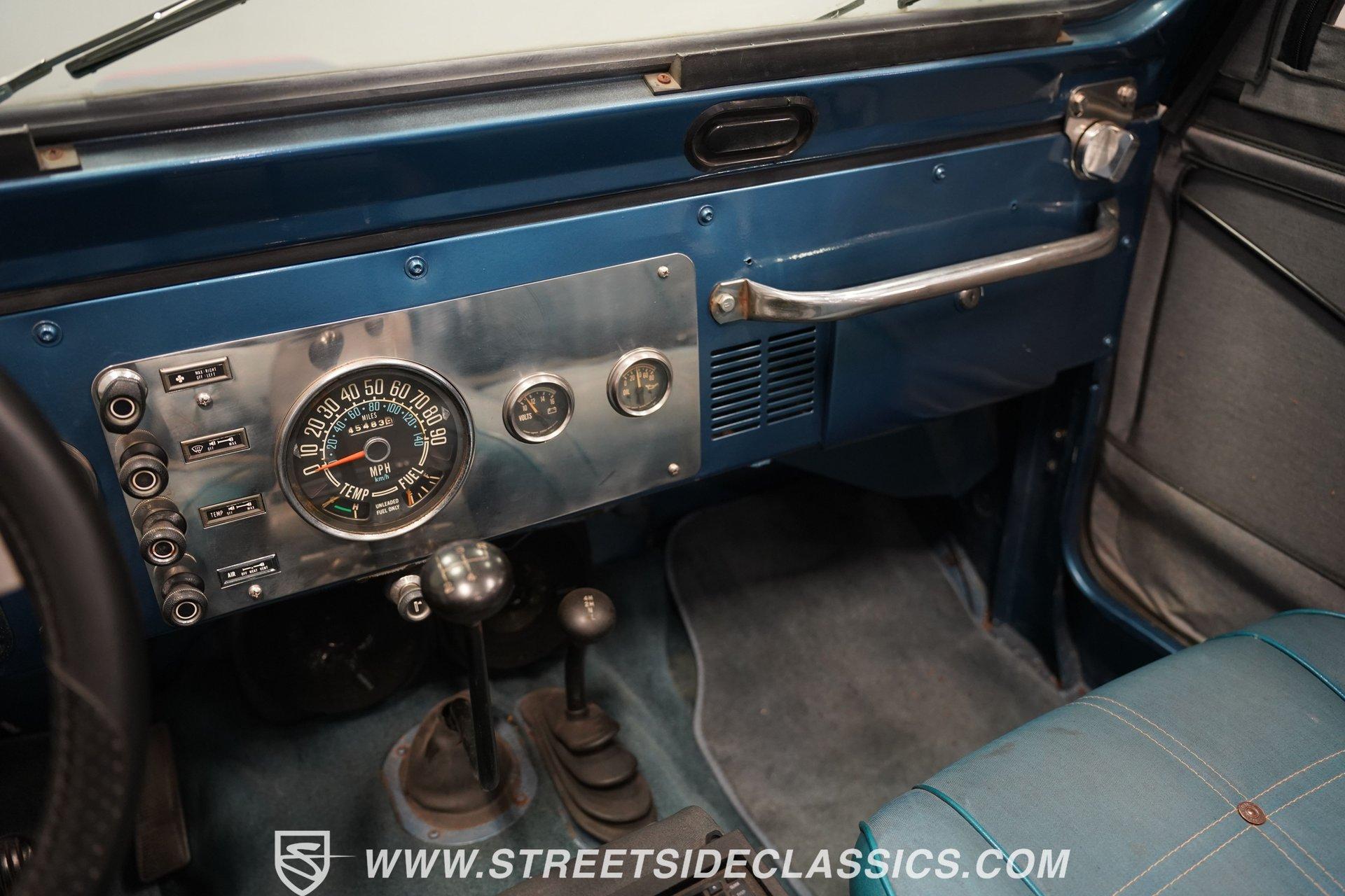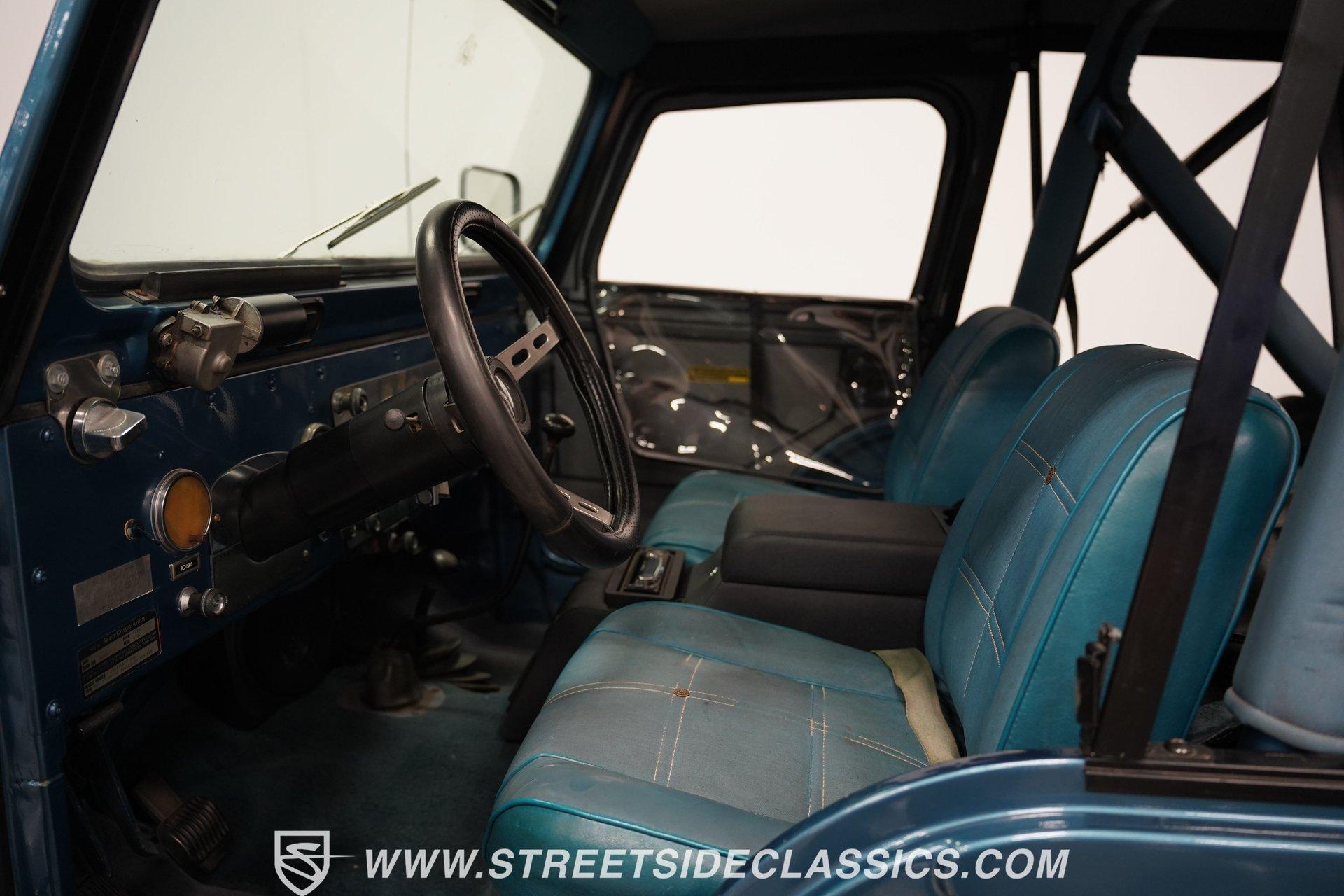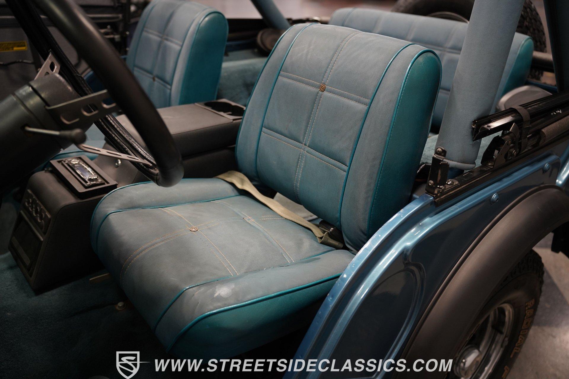 Bringing together the rugged allure of the Jeep CJ5 Renegade Levi Edition, this 1976 model revels in its Sienna Orange overhaul, which belies its vintage. Enthusiasts appreciate the precision of the detailed decals and the assertive stance provided by 15-inch wheels wrapped in 31x10.50R15LT Dick Cepek tires, ensuring it looks every bit the part of an off-road conqueror. This Jeep doesn't just sit pretty-it's a canvas of blue and orange, highlighting a journey filled with adventure. Stepping inside, the original blue Levi vinyl seats beckon with their distinctive charm, setting a vibrant contrast against the utilitarian dashboard. The addition of a Panasonic stereo system, coupled with extra speakers, enriches the cabin, ensuring that each drive is accompanied by a soundtrack as compelling as the landscapes it traverses. Mechanically, this CJ5 is equipped with a 258 CI Inline-6 Jasper engine, paired with a 4-speed manual transmission that commands respect on any terrain. The suspension, kept faithful with leaf springs and shocks, supports the vintage frame, providing a driving experience that's as authentic as it is thrilling. Despite its age, the Jeep runs with a gusto that matches its visual appeal, supported by a drum brake setup on all four corners. HIGHLIGHTS: 258 CI Inline-6 Engine 4-Speed Manual Transmission Leaf Springs w/ Shocks Suspension Drum Brakes Side Exit Exhaust Sienna Orange Full Repaint Blue Decals 15" Wheels 31x10.50R15LT Dick Cepek Tires Removable Soft Top and Doors Bikini Top by Bestop Rear Mounted Spare Blue Levi Vinyl Seats Panasonic Stereo Additional Speakers Vinyl Flooring Chiltons Manual Miscellaneous Maintenance Records dating back to the 90s This 1976 Jeep CJ5 Renegade Levi Edition, with its vintage engine and vibrant interior, encapsulates a spirit ready to tackle both roads and hearts. Combining rugged functionality with aesthetic appeal, this Jeep is not merely a vehicle, but a gateway to uncharted territories. Ready to make it yours? Call today!