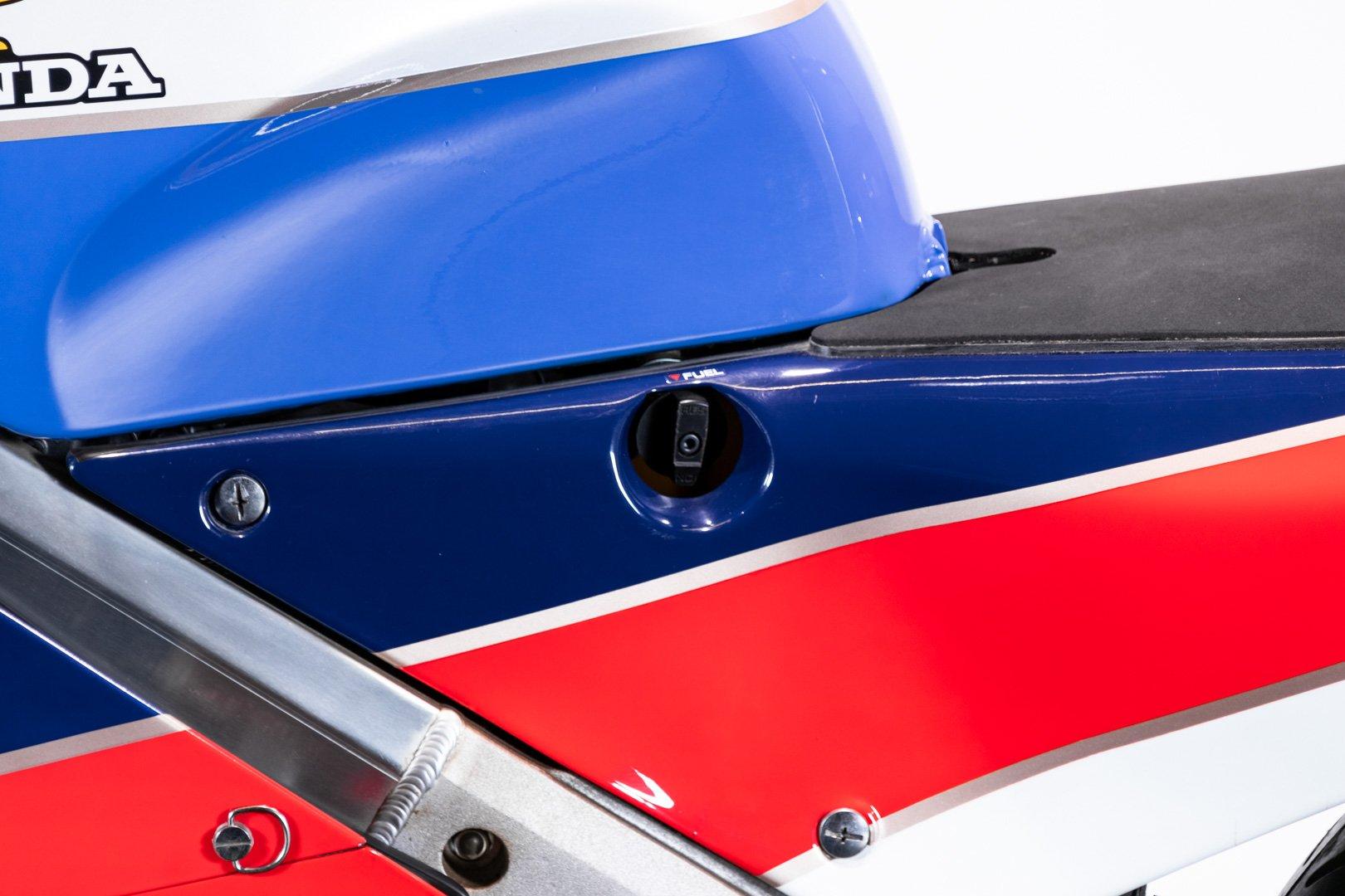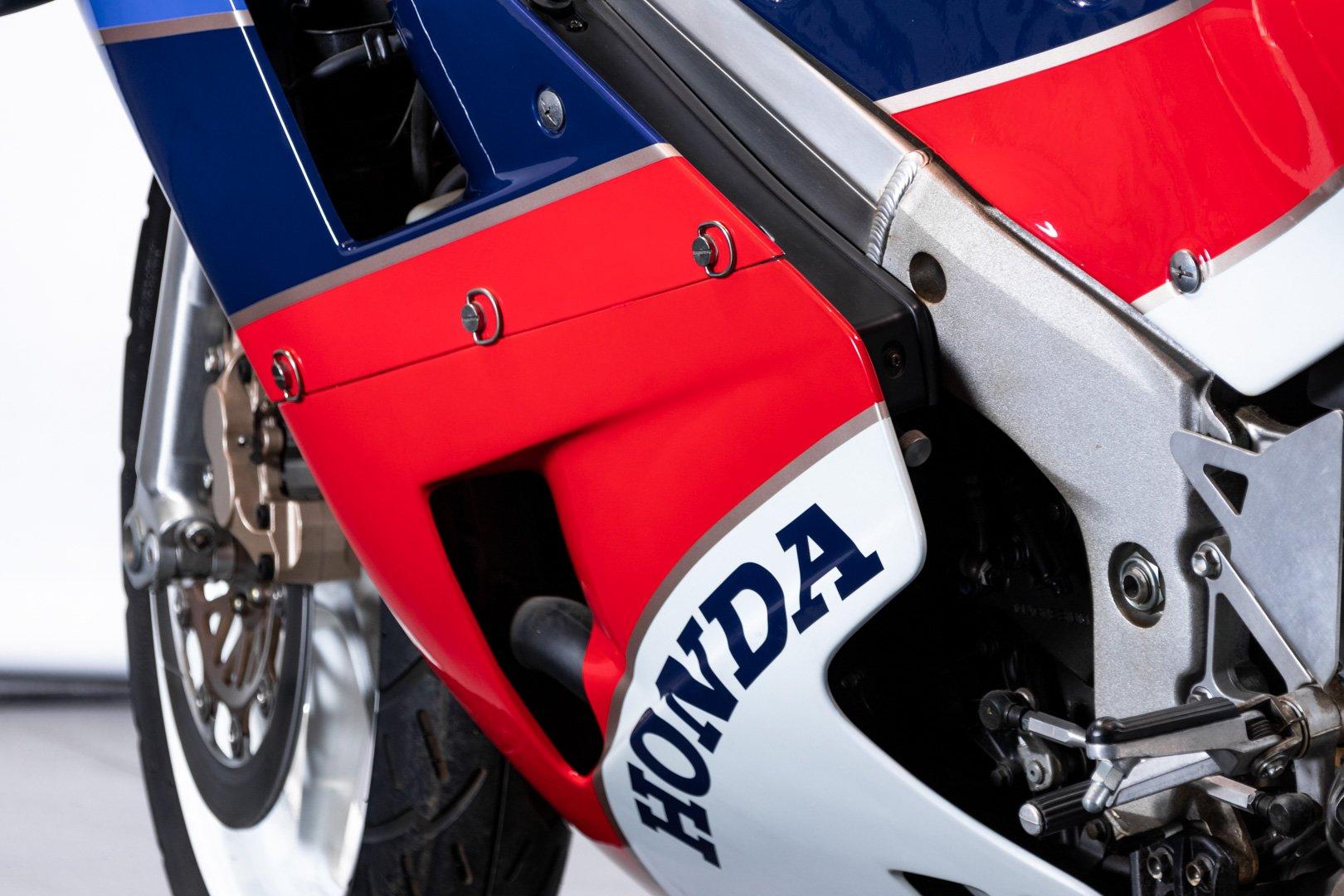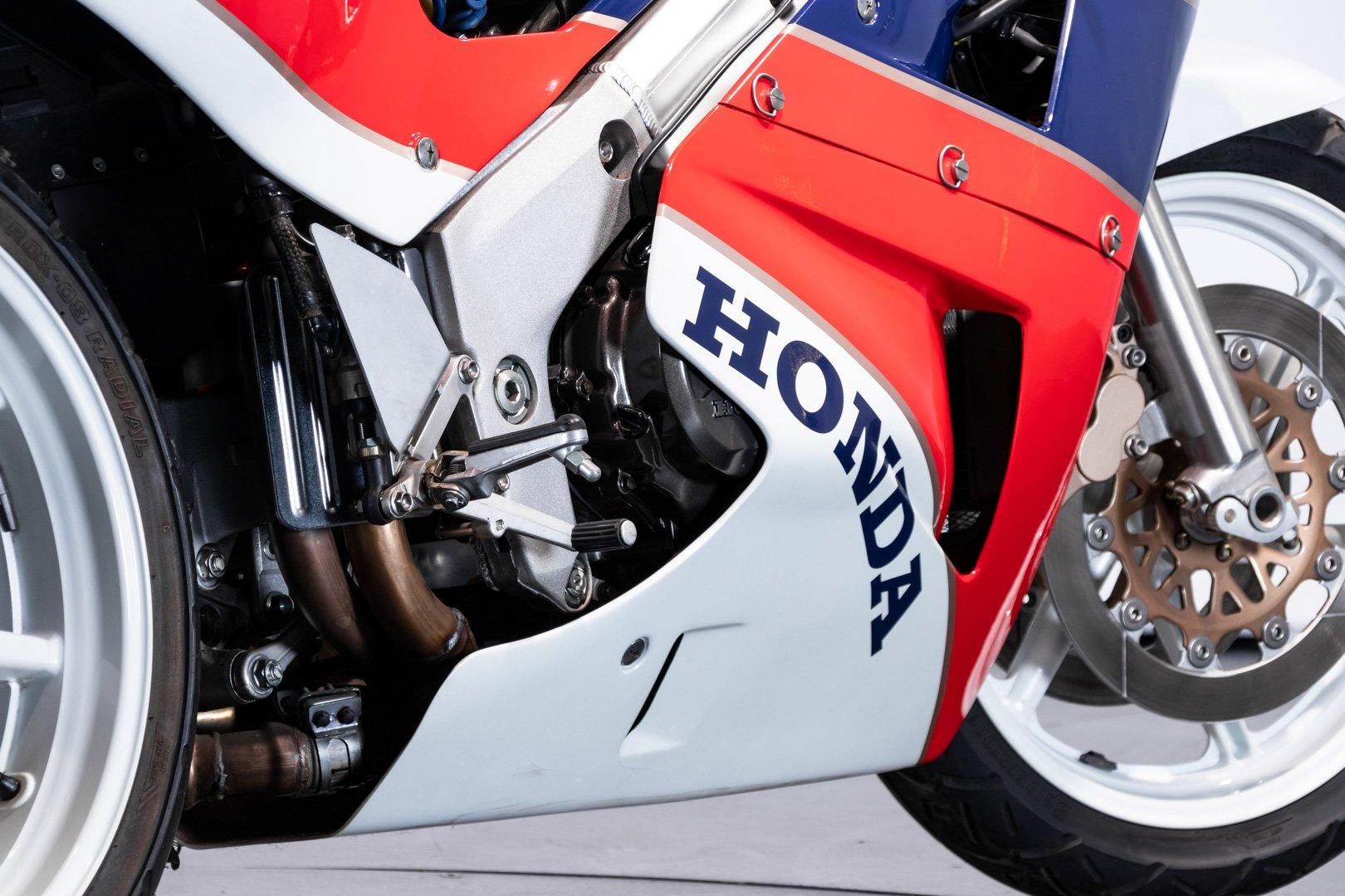 Presentata nel 1987, la Vfr750 r, meglio nota come RC30, entra di diritto tra le leggende assolute della storia del motociclismo. Raffinatezze tecniche ovunque, materiali pregiati, soluzioni innovative, una moto da gara targata. Vinse ovunque titoli mondiali e competizioni. Ancora oggi una moto eccezionale. 112 cv a 12.500 giri. Peso a secco 185 kg. , 96km reali. In italia ne arrivano circa 350. Questa, rarissima, è italiana, nuova ed ha avuto un unico proprietario.