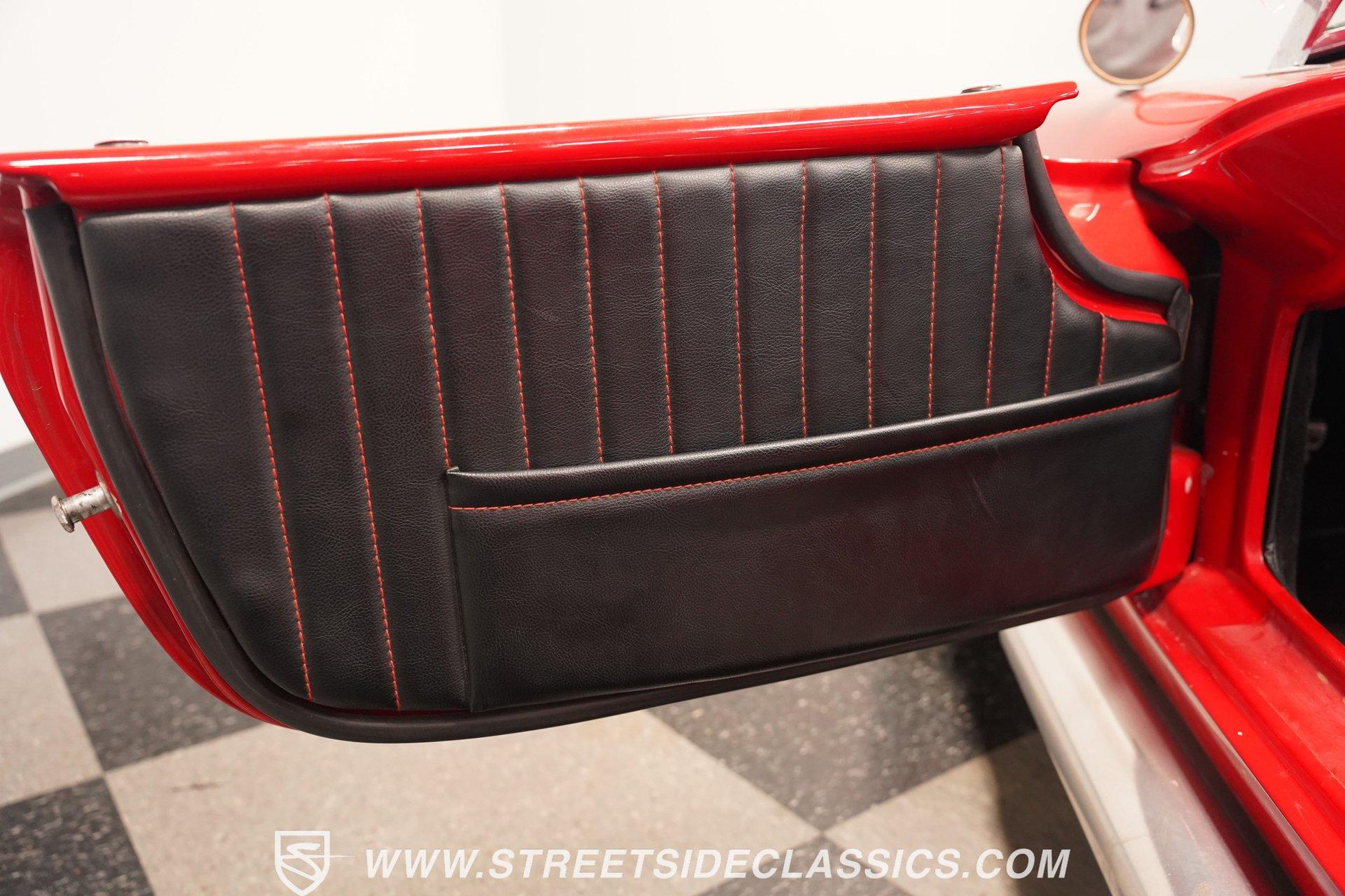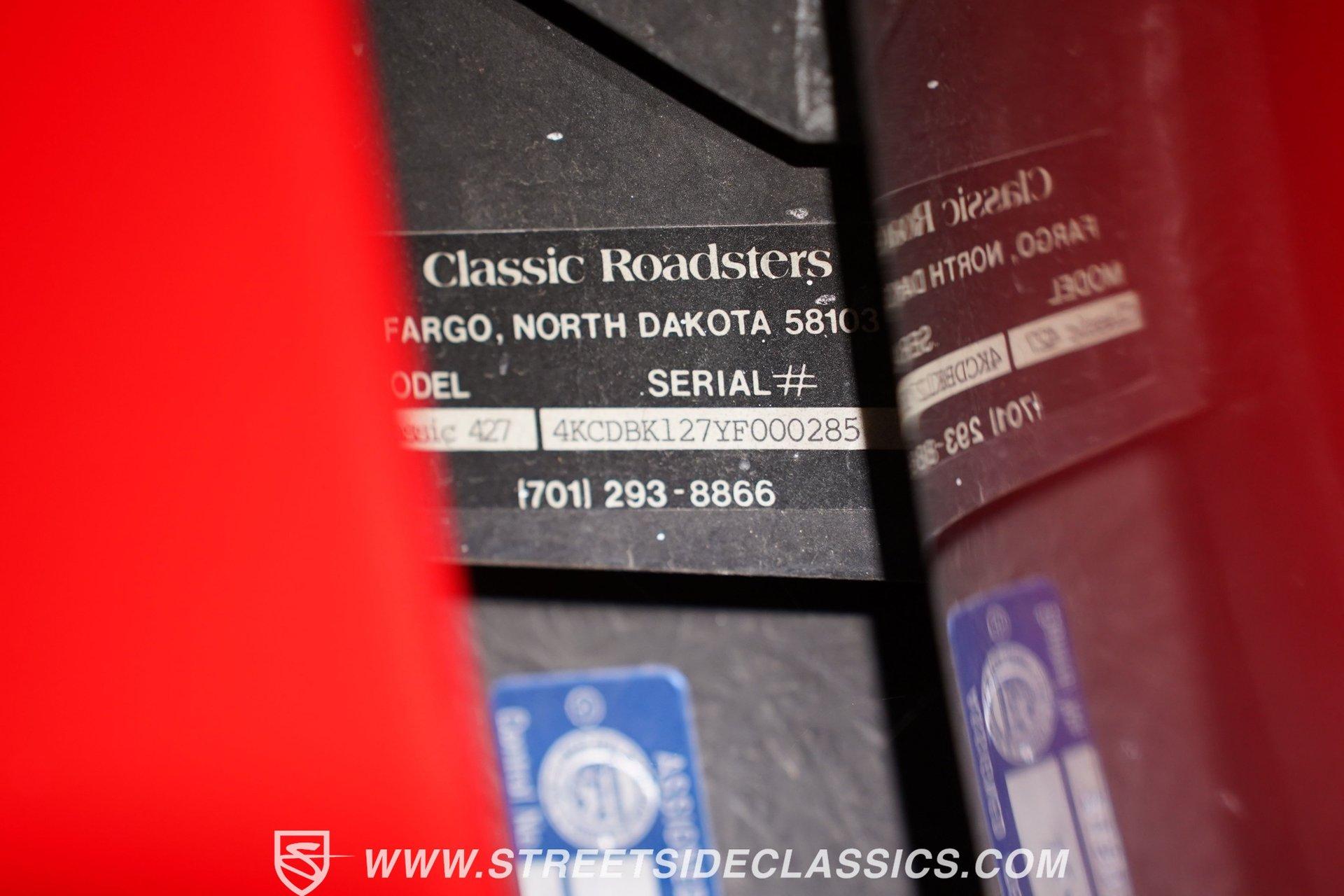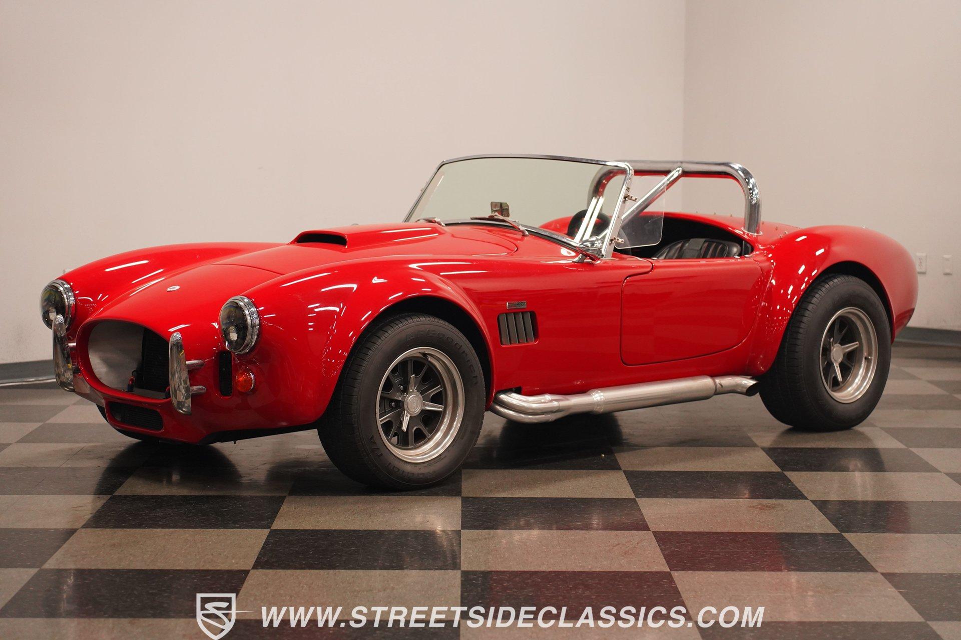 This 1966 Shelby Cobra by Classic Roadster LTD. is a bit more distinctive than most. There's an awesome shine to the paint and cool upgrades like the LED headlights. There are some nice extras inside like the attractive red contrast stitching and a full AM/FM/CD stereo system. But the coolest detail of them all is the motor. The 427 callouts are correct, which means you have one of the most desirable Ford motor displacements around... but this one is unique. While 427 is a legendary big block displacement, you actually are getting this in a lighter small block configuration. It has more performance-minded pieces like aluminum heads, ceramic-coated headers, and versatile fuel injection. So look over the full package that shows you how this roadster loves to own the road. HIGHLIGHTS *Unique 427 small block Electronic fuel injection Aluminum heads MSD ignition Aluminum radiator w/electric fan Cobra finned valve covers *Ceramic-coated headers feeding the rumbling side pipes *Extra-sleek red paint *Awesome stance with extra wide rear tires *American Racing Halibrand-style wheels *Well-done black interior with detailed red contrast stitching *Racing harnesses *Comprehensive roll hoop *Carbon fiber-style dash *Tilt column *AM/FM/CD stereo with amplified speakers *Four-speed automatic transmission *Tubular front A-arms *Adjustable coilovers all around *Four-wheel disc brakes There's a fresh look to this full build, right down to the undercarriage, and that means true driver confidence. So this sleek stunner also has a terrific road-ready robustness. In fact, you can really tell this was made to be a more thoughtful driver. The stereo is nice to have when you want an occasional break from the high-octane soundtrack of the side pipes. The tilt steering column, comprehensive roll hoop, and fully finished interior are worthwhile pieces you don't always get elsewhere. And while you're more likely to drive on the backroads than the interstates, the four-speed transmission with overdrive gives you better ratios for all-around enjoyment. So we absolutely love the cool setup of a lighter and powerful 427 fuel-injected Cobra, and the total package tells you they were thinking about making sure you can enjoy it to the fullest. Call today!!!