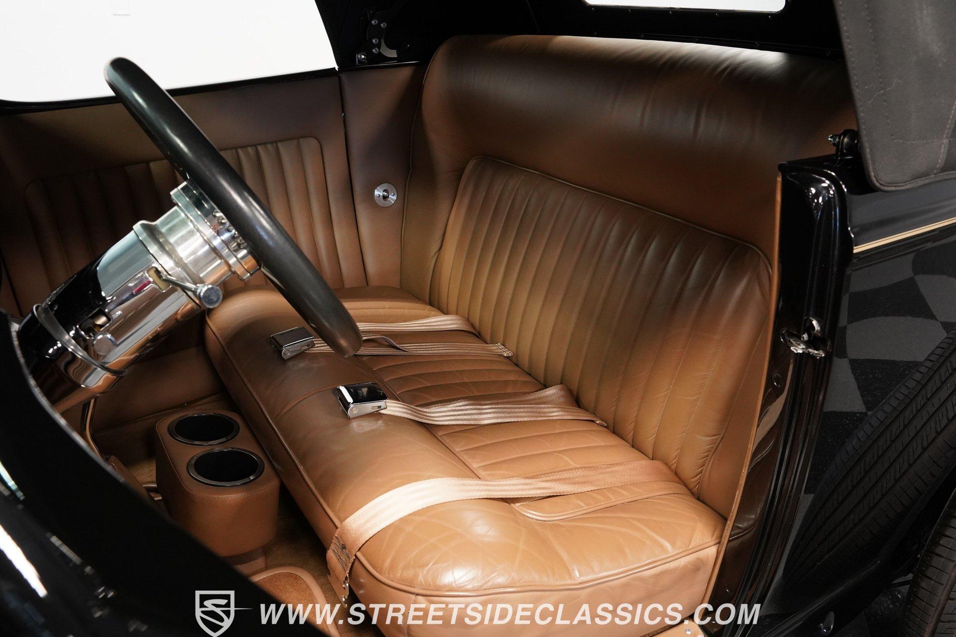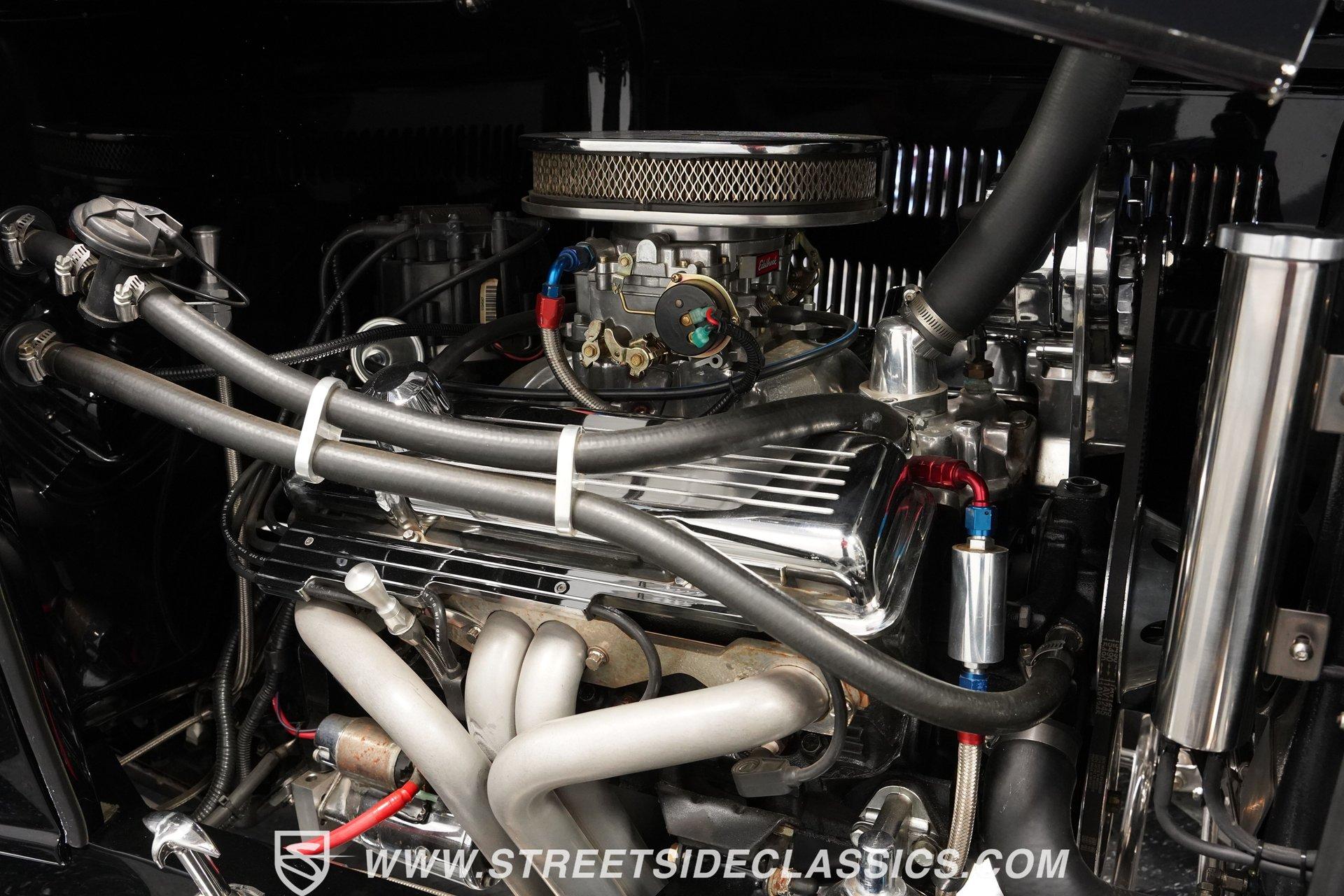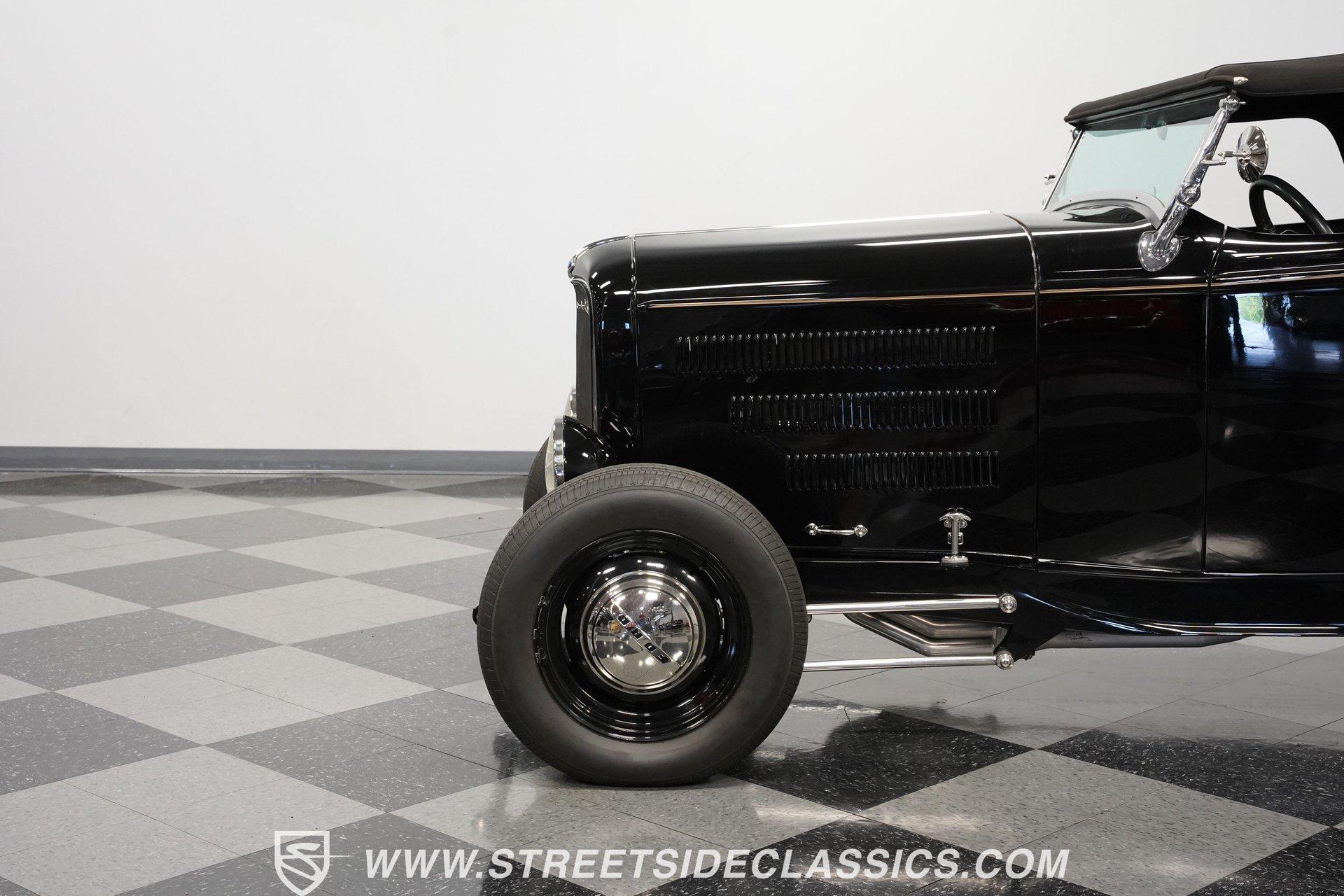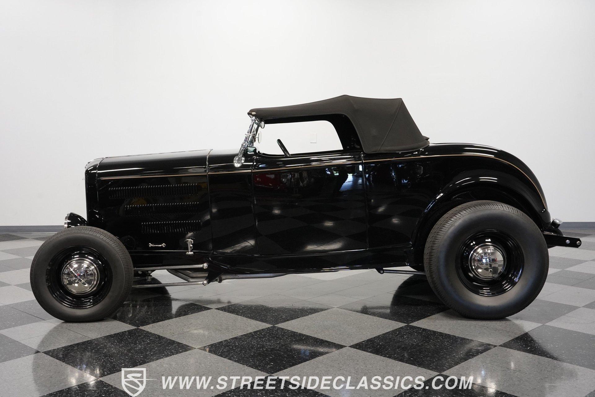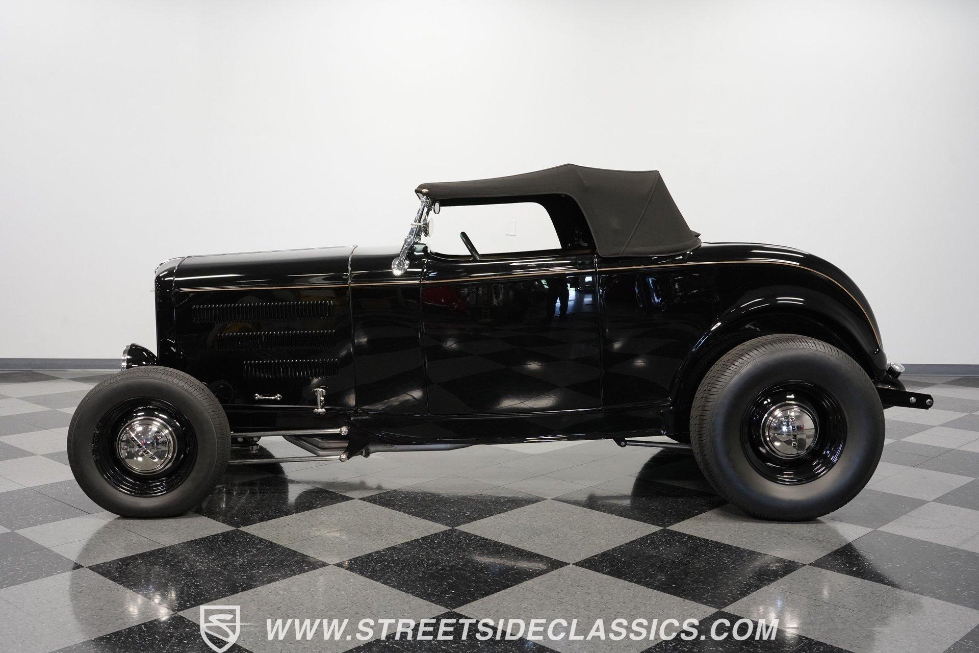 This 1932 Ford Highboy exudes a bold, unapologetic presence with its deep black paint and custom tan leather interior. It sits confidently on 15" front and 16" rear wheels, wrapped in 165/80R15 and 275/70R16 tires with a planted stance. Subtle pinstripes and blue dot taillights pay homage to the classic hot rod style, while the glossy finish reflects the car's modern build quality. The cockpit welcomes you with supple leather upholstery, expertly crafted by Holcomb in Knoxville. The bench seat, complete with matching cup holders, provides a comfortable perch for cruising. Unexpected amenities like a tilt column and functioning heater make this minimalist machine surprisingly livable. The classic instrument cluster, featuring a Classic Instruments knee knocker tach, sets the tone for an engaging drive. Power comes from a 350 V8 crate engine paired with a TH350 3-speed automatic transmission for effortless gear changes. Long tube headers feed a dual exhaust system with Dynomax mufflers, creating a distinct hot rod rumble. The Ford 9" rear axle, transverse leaf spring front suspension, and rear coilovers work together to deliver a well-balanced ride. Disc brakes up front provide confident stopping power. HIGHLIGHTS: 350 V8 Crate Engine TH350 3-Speed Automatic Transmission Ford 9" Rear Axle Front Disc Brakes Dual Exhaust with Dynomax Mufflers Long Tube Headers Electric Fan Glossy Black Paint Job Custom Pinstriping Louvered Hood Blue Dot Taillights 15" Front Wheels with 165/80R15 Tires 16" Rear Wheels with 275/70R16 Tires Black Canvas Convertible Top with Glass Rear Window Custom Tan Leather Upholstery by Holcomb Matching Leather Cup Holders Classic Instrument Gauges Tilt Steering Column Rat's Glass Body Constructed in 2005 on a sturdy TCI frame with a Rat's Glass body, this '32 Ford Highboy is a well-executed modern hot rod. With its 350 V8 power, custom leather interior, and eye-catching details like the louvered hood and rumbling dual exhaust, it's a standout cruiser that doesn't compromise comfort. Call today!