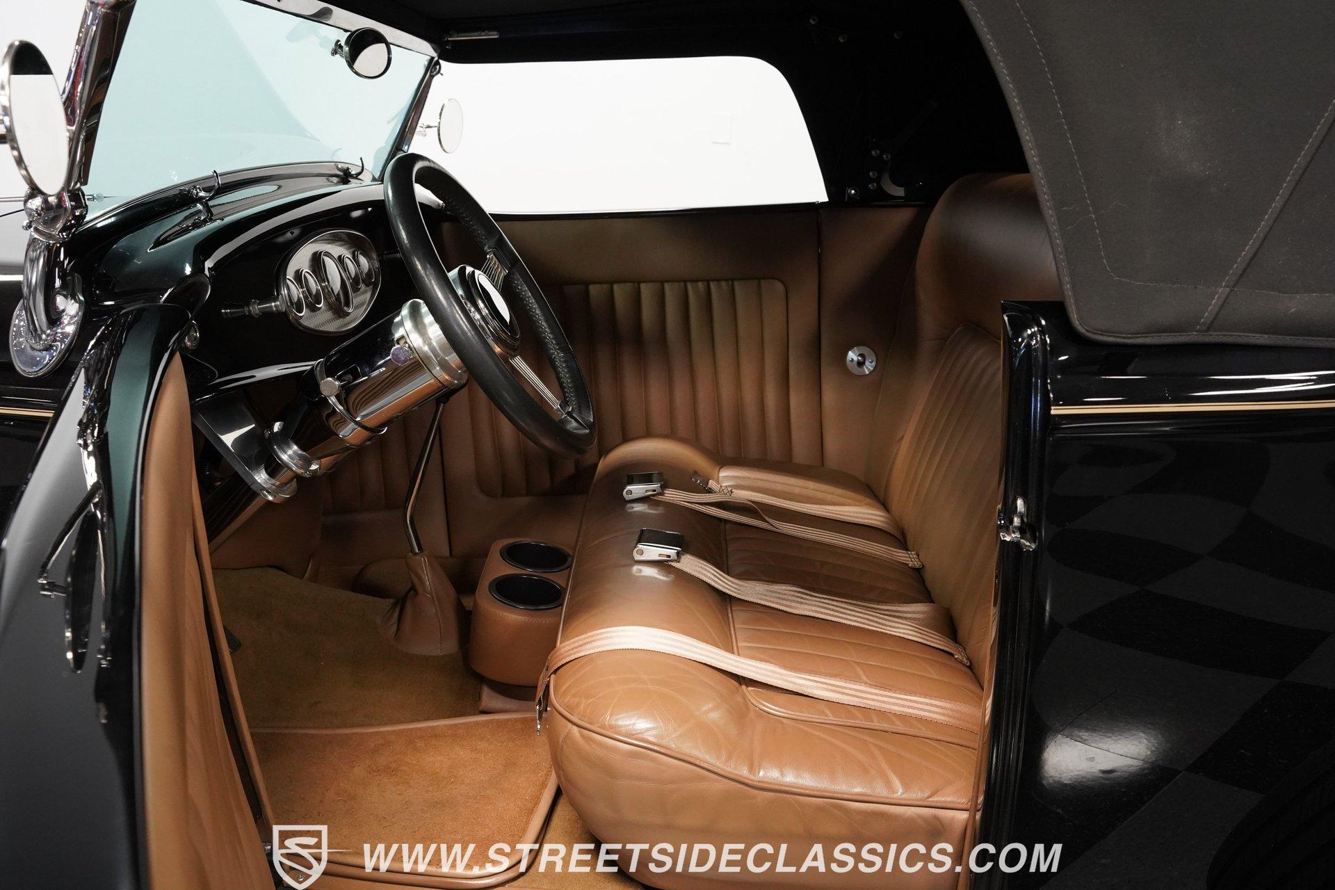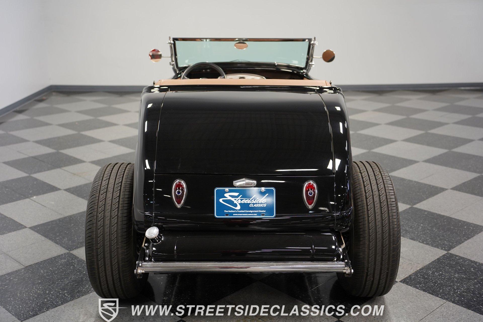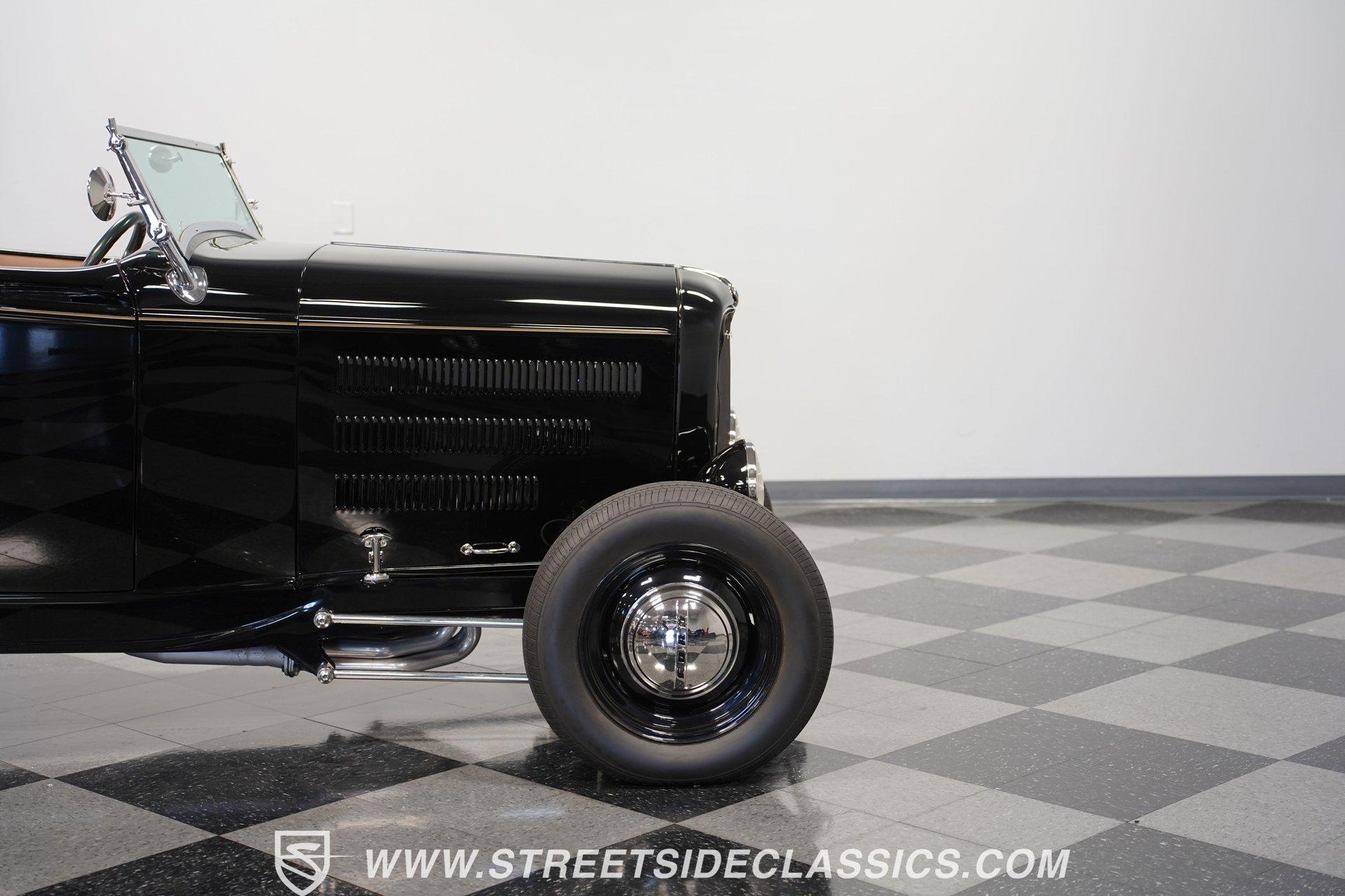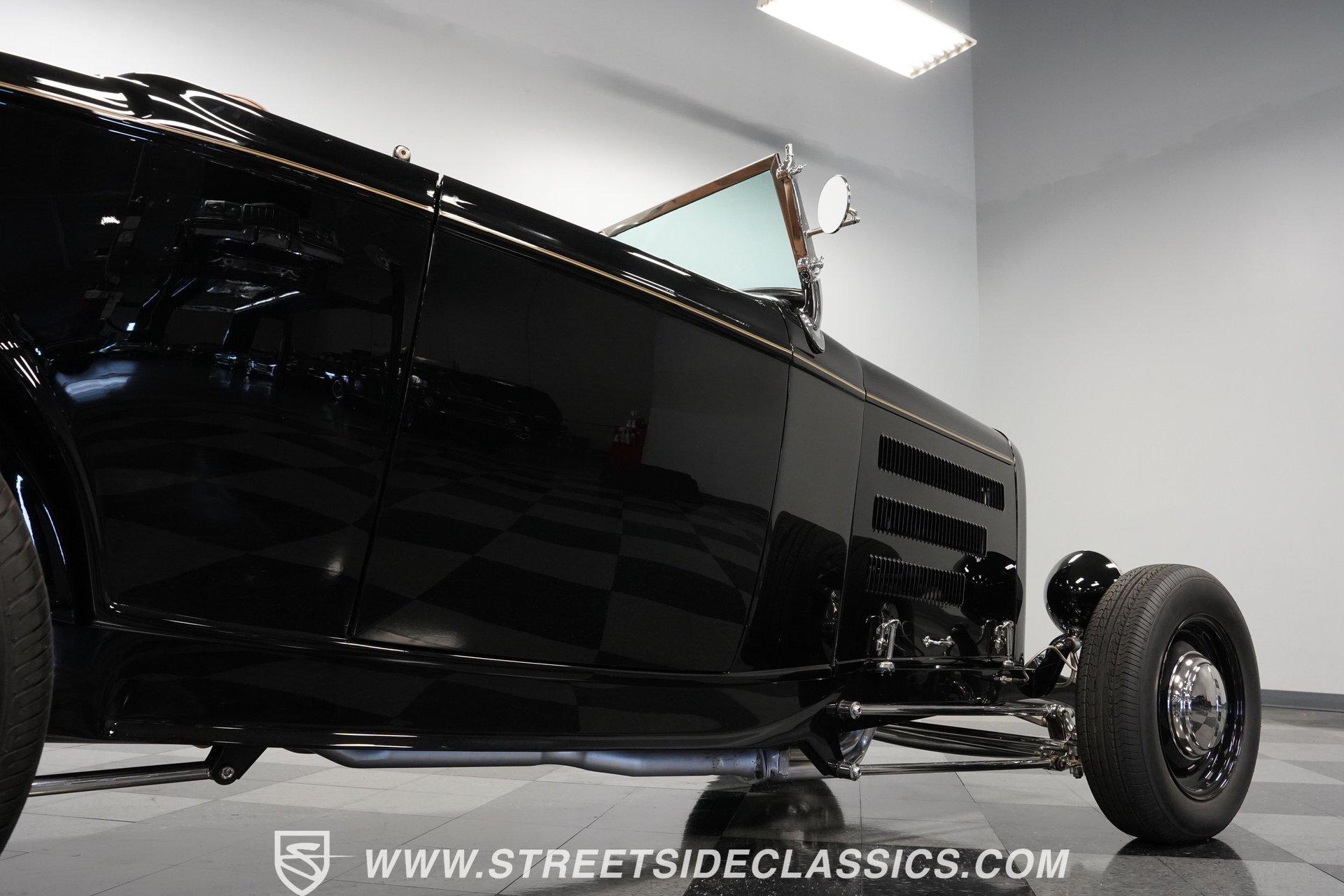 This 1932 Ford Highboy exudes a bold, unapologetic presence with its deep black paint and custom tan leather interior. It sits confidently on 15" front and 16" rear wheels, wrapped in 165/80R15 and 275/70R16 tires with a planted stance. Subtle pinstripes and blue dot taillights pay homage to the classic hot rod style, while the glossy finish reflects the car's modern build quality. The cockpit welcomes you with supple leather upholstery, expertly crafted by Holcomb in Knoxville. The bench seat, complete with matching cup holders, provides a comfortable perch for cruising. Unexpected amenities like a tilt column and functioning heater make this minimalist machine surprisingly livable. The classic instrument cluster, featuring a Classic Instruments knee knocker tach, sets the tone for an engaging drive. Power comes from a 350 V8 crate engine paired with a TH350 3-speed automatic transmission for effortless gear changes. Long tube headers feed a dual exhaust system with Dynomax mufflers, creating a distinct hot rod rumble. The Ford 9" rear axle, transverse leaf spring front suspension, and rear coilovers work together to deliver a well-balanced ride. Disc brakes up front provide confident stopping power. HIGHLIGHTS: 350 V8 Crate Engine TH350 3-Speed Automatic Transmission Ford 9" Rear Axle Front Disc Brakes Dual Exhaust with Dynomax Mufflers Long Tube Headers Electric Fan Glossy Black Paint Job Custom Pinstriping Louvered Hood Blue Dot Taillights 15" Front Wheels with 165/80R15 Tires 16" Rear Wheels with 275/70R16 Tires Black Canvas Convertible Top with Glass Rear Window Custom Tan Leather Upholstery by Holcomb Matching Leather Cup Holders Classic Instrument Gauges Tilt Steering Column Rat's Glass Body Constructed in 2005 on a sturdy TCI frame with a Rat's Glass body, this '32 Ford Highboy is a well-executed modern hot rod. With its 350 V8 power, custom leather interior, and eye-catching details like the louvered hood and rumbling dual exhaust, it's a standout cruiser that doesn't compromise comfort. Call today!
