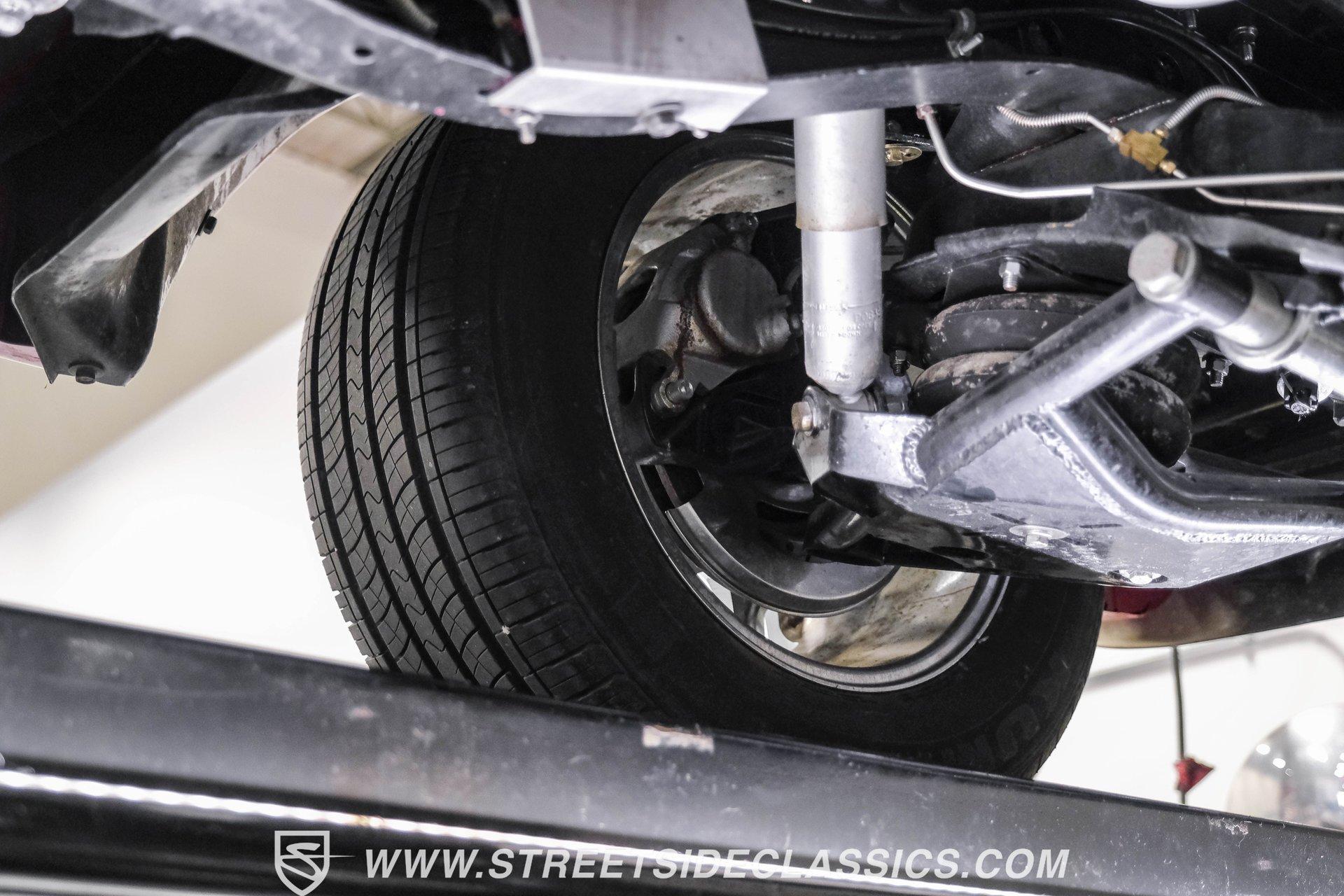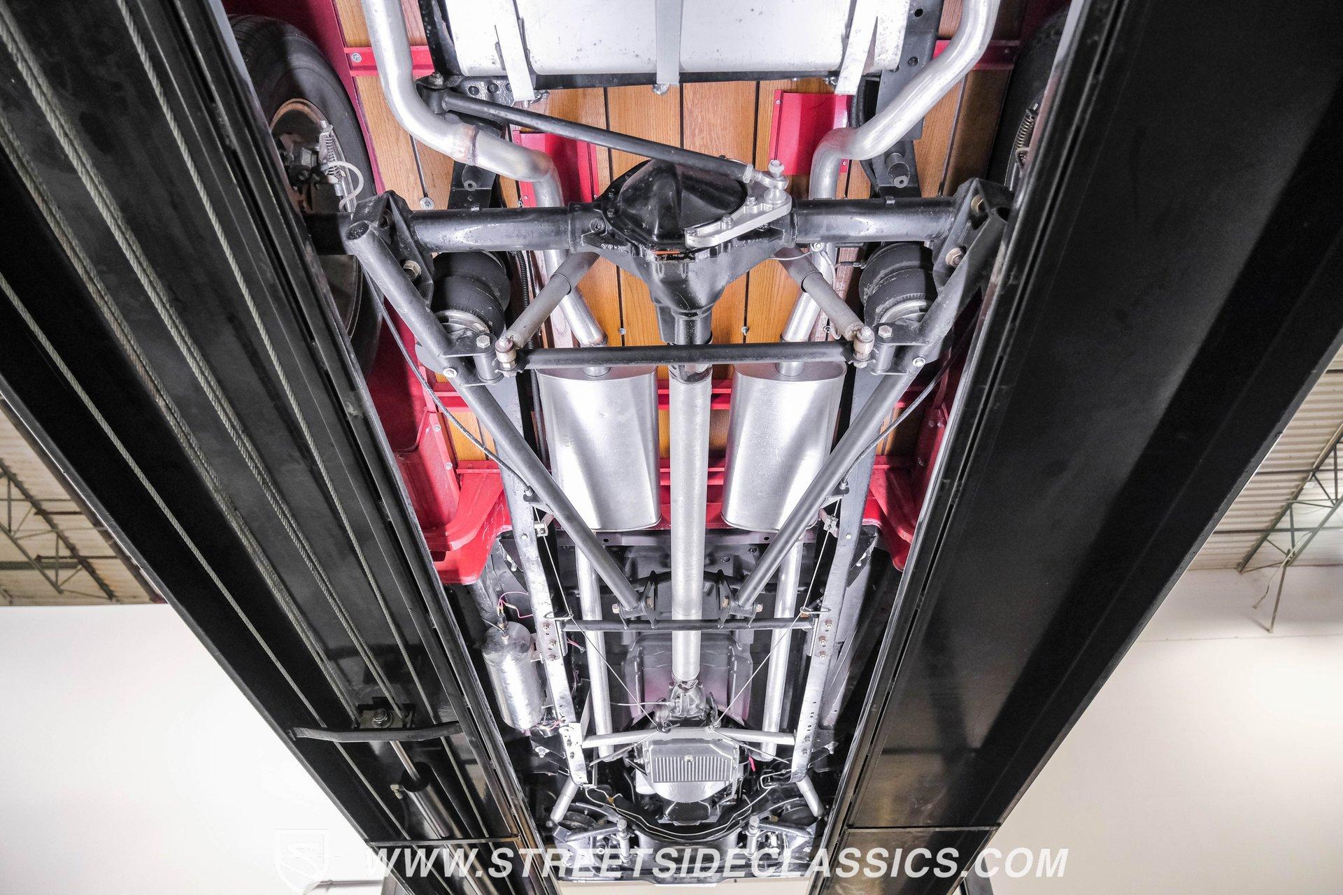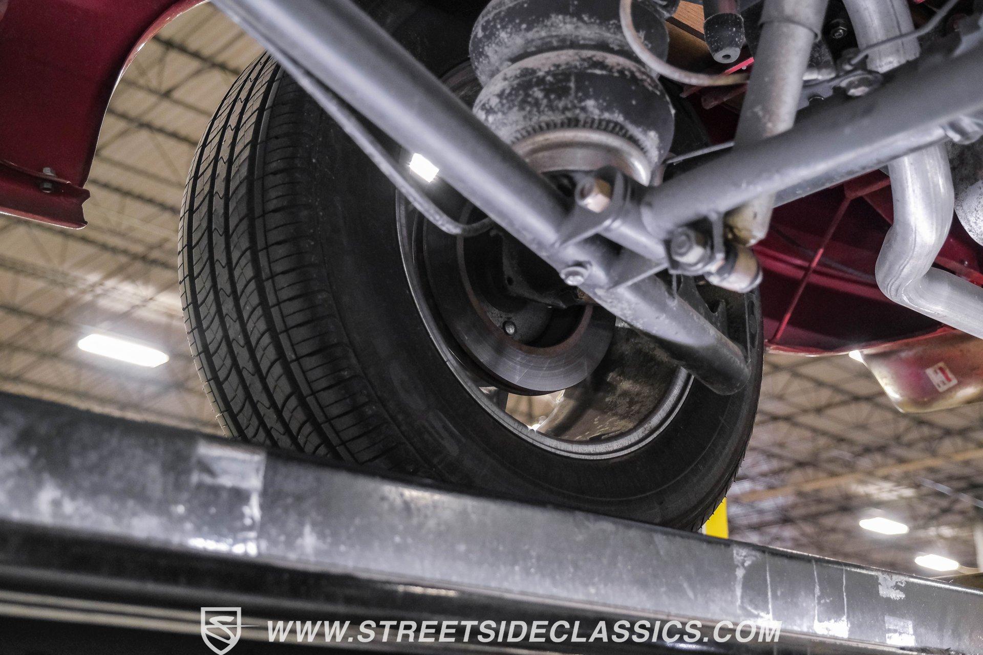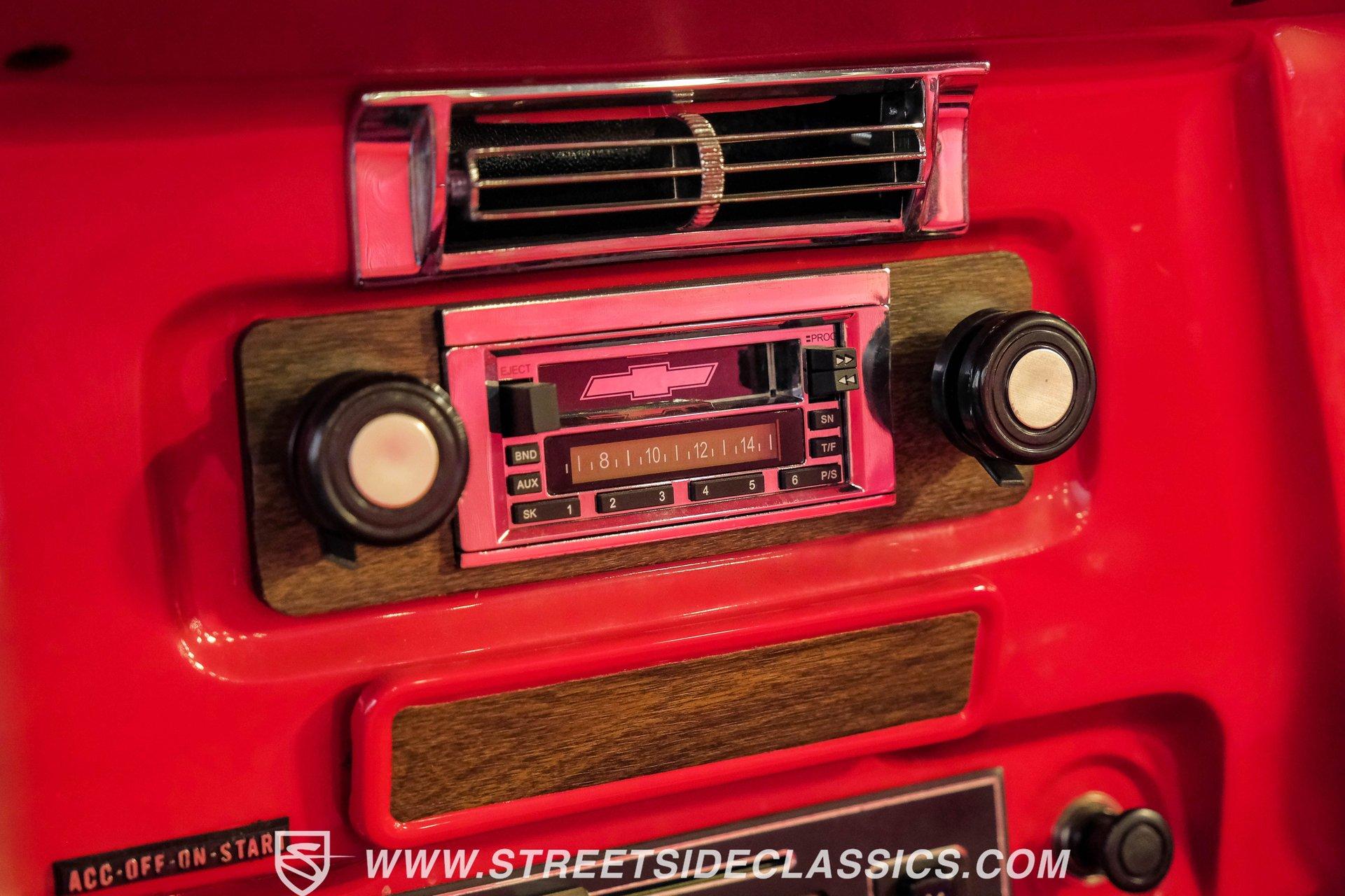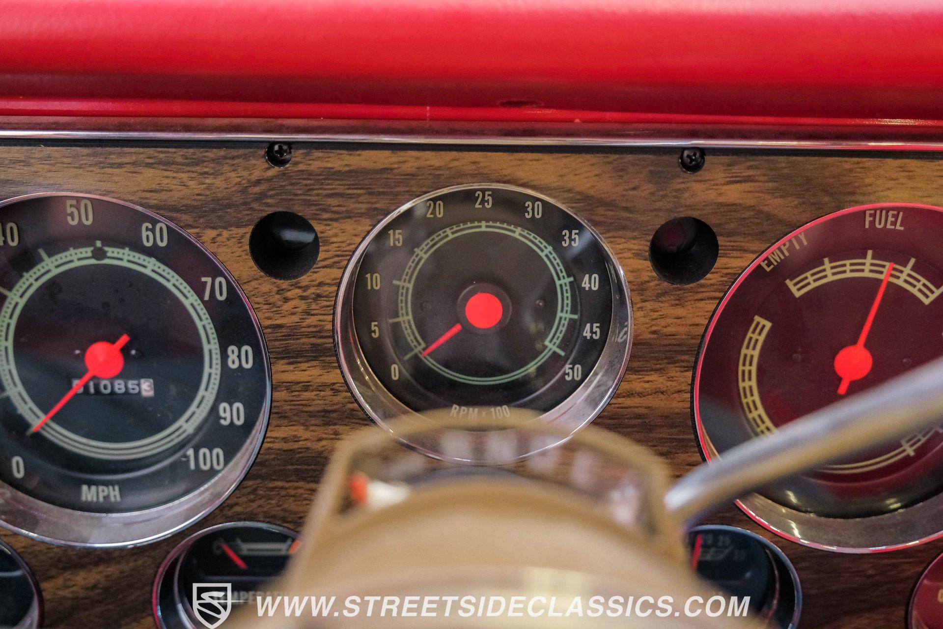 This 1969 Chevrolet C10 Stepside showcases a vibrant red exterior that exudes confidence accentuating the truck's classic lines and muscular profile. It rolls on 17-inch chrome wheels fitted with 255/60R17 tires, blending vintage aesthetics with modern road performance. The stepside bed features a rich wood floor, adding a touch of craftsmanship to the overall design. Inside, the cabin boasts a fresh red vinyl interior that complements the exterior. A spacious bench seat provides comfort for long drives, while the column shifter maintains a clean floor layout. The dash sports an attractive wood-grain finish, housing stock-style gauges and a retro AM/FM cassette player. Modern amenities include air conditioning with custom dash vents and power steering, enhancing the driving experience. A 350 V8 engine powers this C10, paired with a TH350 3-speed automatic transmission for smooth operation. An Edelbrock carburetor and shorty headers optimize performance, while the dual exhaust system produces a satisfying sound. The truck's stance is achieved through CCP tubular A-arm front suspension and a trailing arm rear setup, both featuring air ride for adjustable height. Four-wheel power disc brakes provide reliable stopping power. This C10 offers an appealing combination of classic truck style and upgraded performance. HIGHLIGHTS: 350 V8 engine TH350 3-speed automatic transmission Dual exhaust 12-bolt rear end CCP tubular A-arm front suspension with air ride Tubular trailing arm rear suspension with air bags and panhard bar Power steering Four-wheel power disc brakes Very sharp Red repaint Wood bed floor 17-inch chrome wheels in 255/60R17 tires Fuel tank relocated to rear of truck Red upholstery with Bench seat Air conditioning Retro-style AM/FM cassette player Air ride controls in dash 1,085 miles since build completion This 1969 Chevrolet C10 Stepside combines a potent 350 V8, a comfortable red interior, and numerous performance upgrades. With its air ride suspension and modernized running gear, this C10 delivers classic looks with enhanced drivability. Call today!