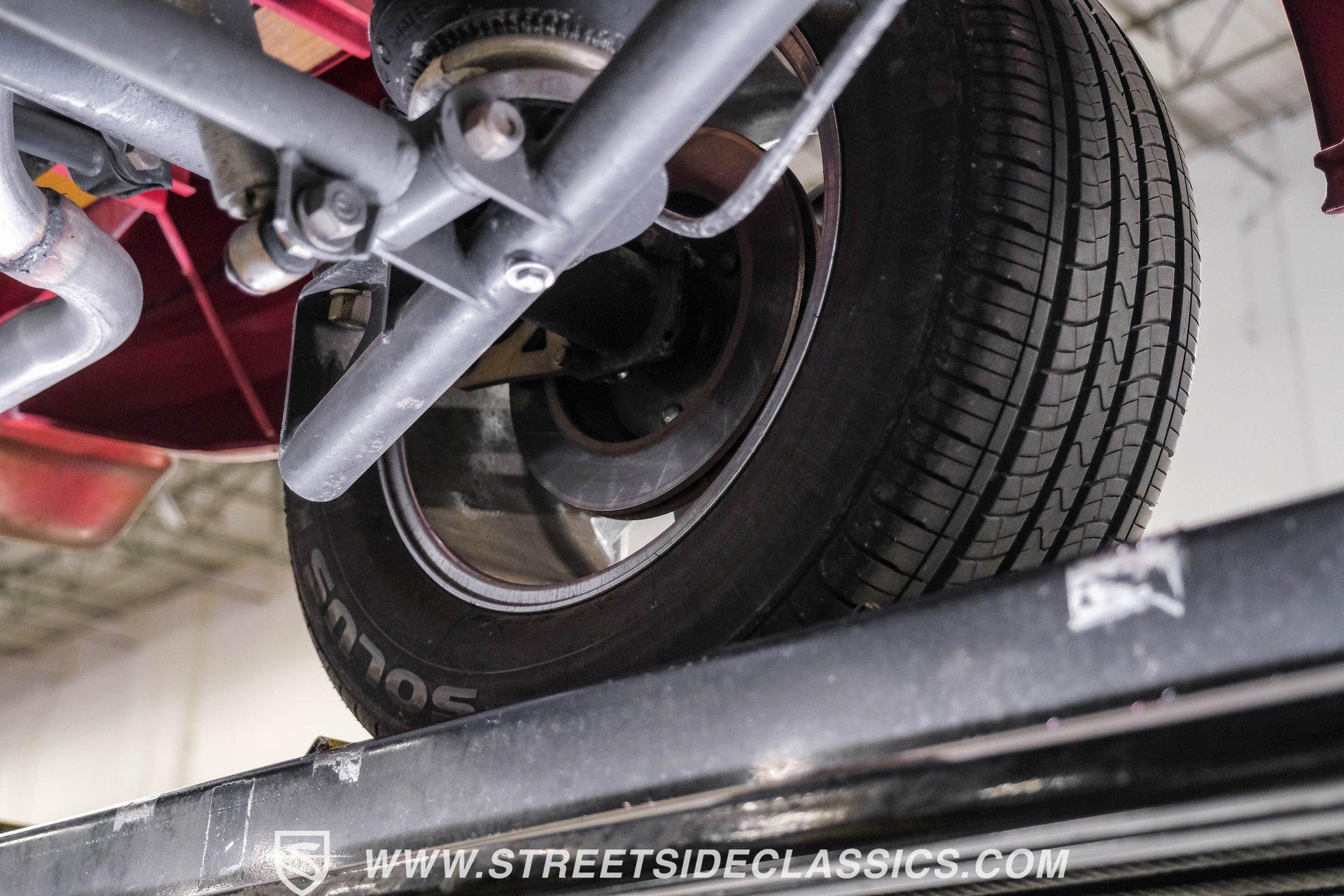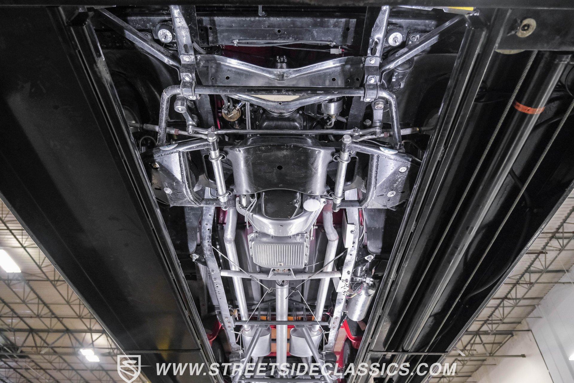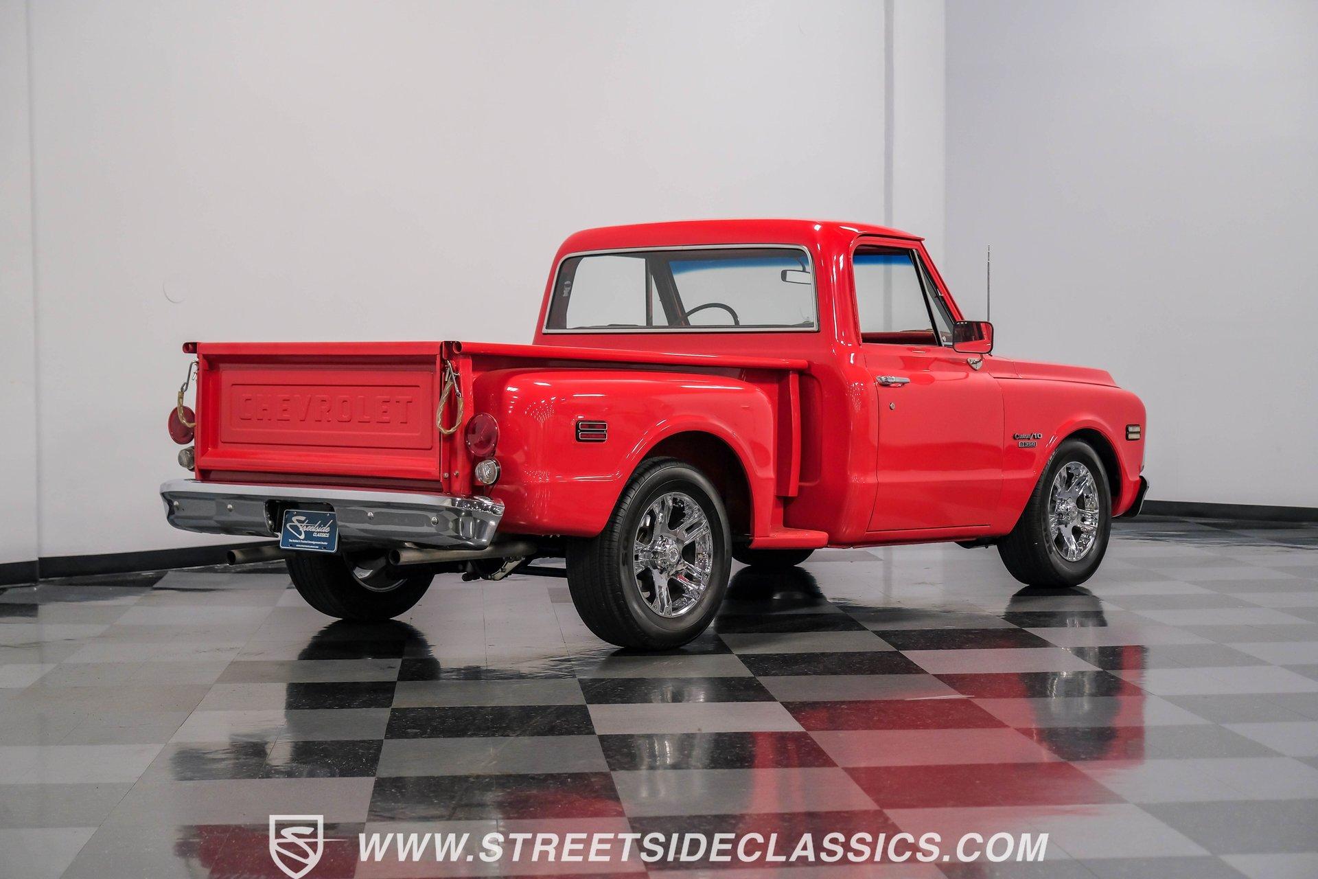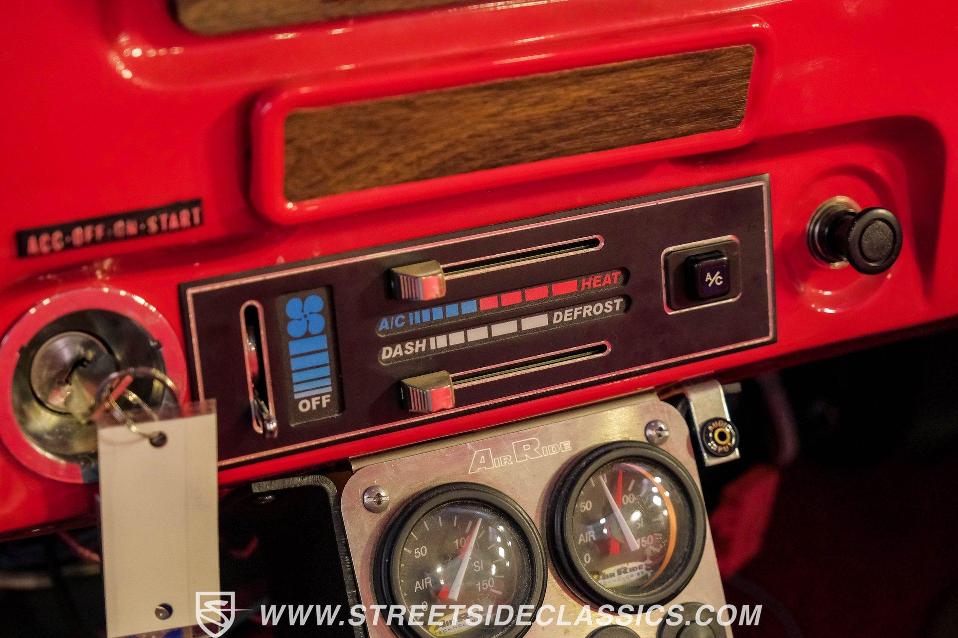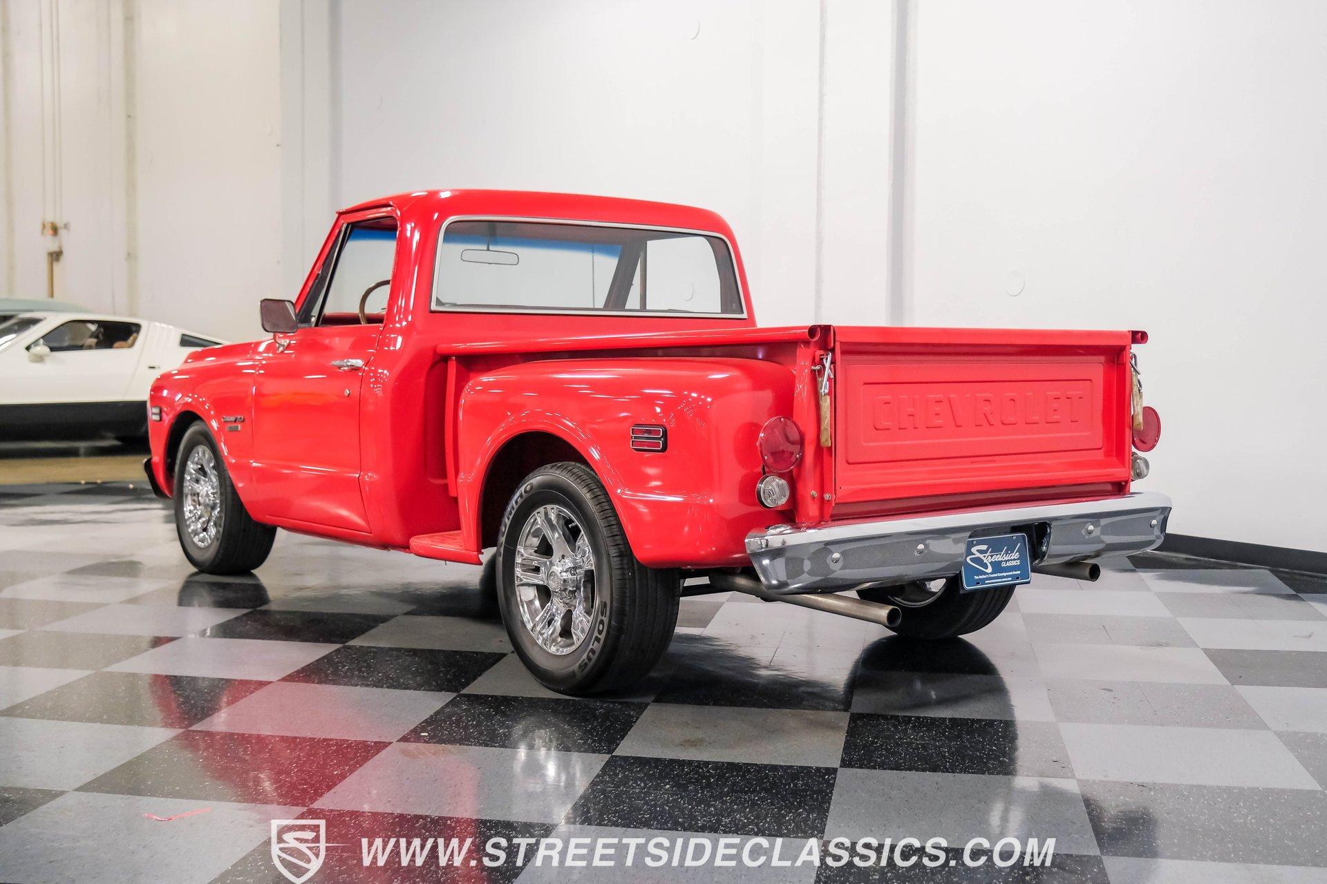 This 1969 Chevrolet C10 Stepside showcases a vibrant red exterior that exudes confidence accentuating the truck's classic lines and muscular profile. It rolls on 17-inch chrome wheels fitted with 255/60R17 tires, blending vintage aesthetics with modern road performance. The stepside bed features a rich wood floor, adding a touch of craftsmanship to the overall design. Inside, the cabin boasts a fresh red vinyl interior that complements the exterior. A spacious bench seat provides comfort for long drives, while the column shifter maintains a clean floor layout. The dash sports an attractive wood-grain finish, housing stock-style gauges and a retro AM/FM cassette player. Modern amenities include air conditioning with custom dash vents and power steering, enhancing the driving experience. A 350 V8 engine powers this C10, paired with a TH350 3-speed automatic transmission for smooth operation. An Edelbrock carburetor and shorty headers optimize performance, while the dual exhaust system produces a satisfying sound. The truck's stance is achieved through CCP tubular A-arm front suspension and a trailing arm rear setup, both featuring air ride for adjustable height. Four-wheel power disc brakes provide reliable stopping power. This C10 offers an appealing combination of classic truck style and upgraded performance. HIGHLIGHTS: 350 V8 engine TH350 3-speed automatic transmission Dual exhaust 12-bolt rear end CCP tubular A-arm front suspension with air ride Tubular trailing arm rear suspension with air bags and panhard bar Power steering Four-wheel power disc brakes Very sharp Red repaint Wood bed floor 17-inch chrome wheels in 255/60R17 tires Fuel tank relocated to rear of truck Red upholstery with Bench seat Air conditioning Retro-style AM/FM cassette player Air ride controls in dash 1,085 miles since build completion This 1969 Chevrolet C10 Stepside combines a potent 350 V8, a comfortable red interior, and numerous performance upgrades. With its air ride suspension and modernized running gear, this C10 delivers classic looks with enhanced drivability. Call today!