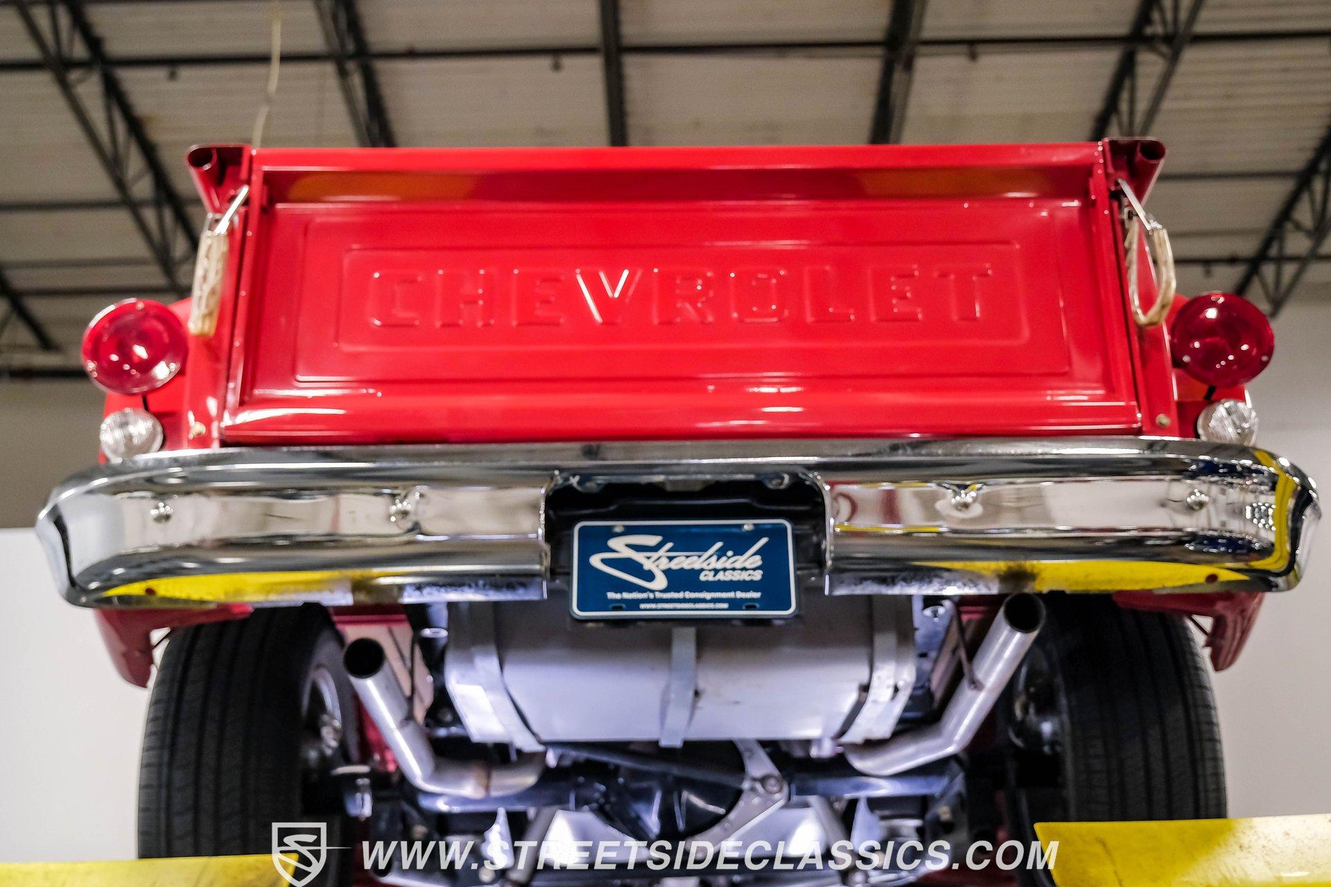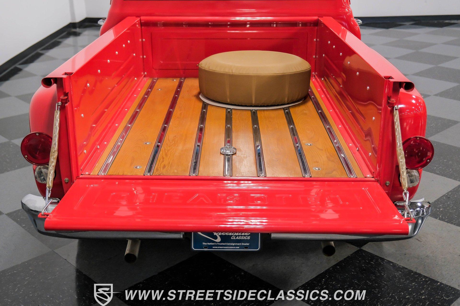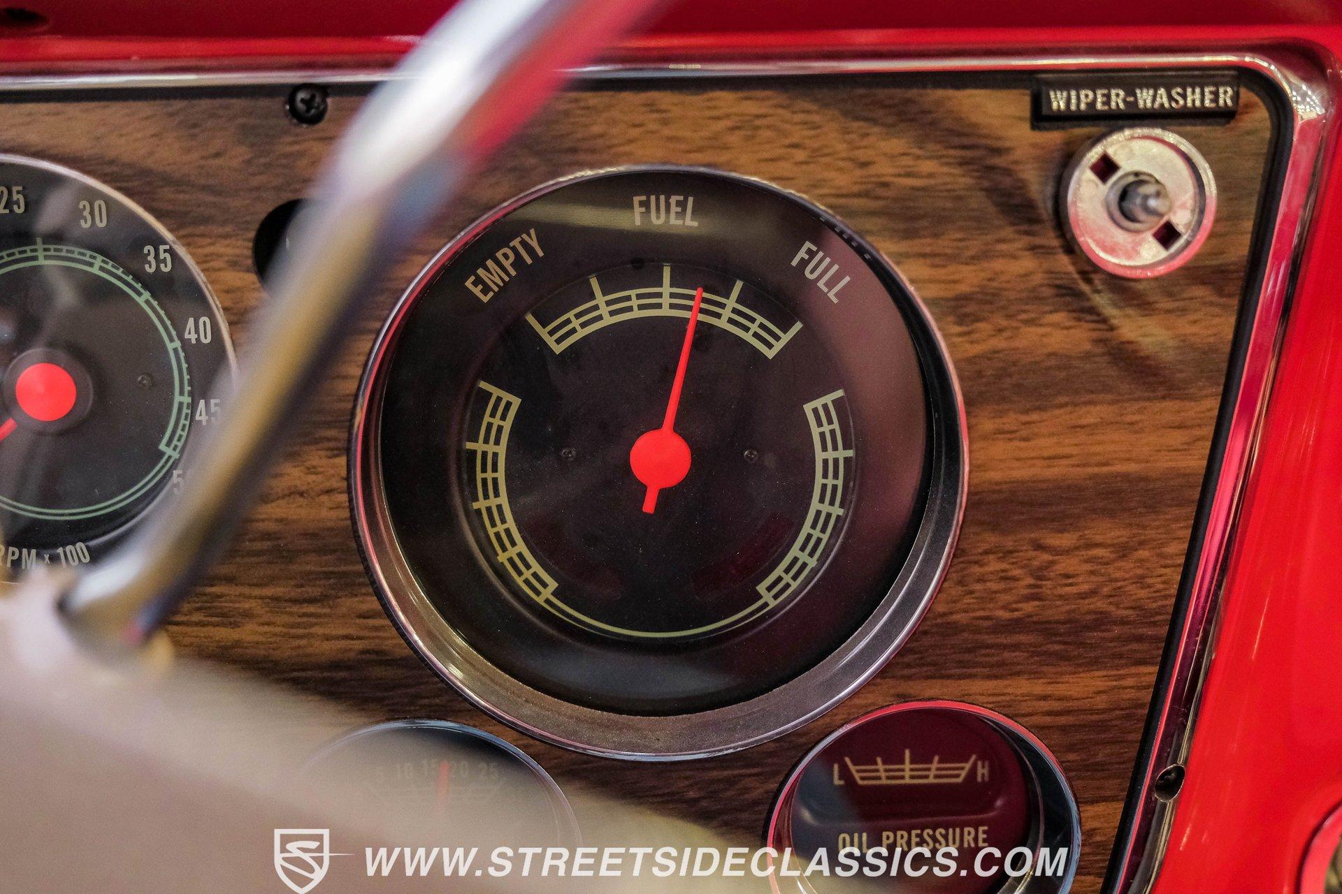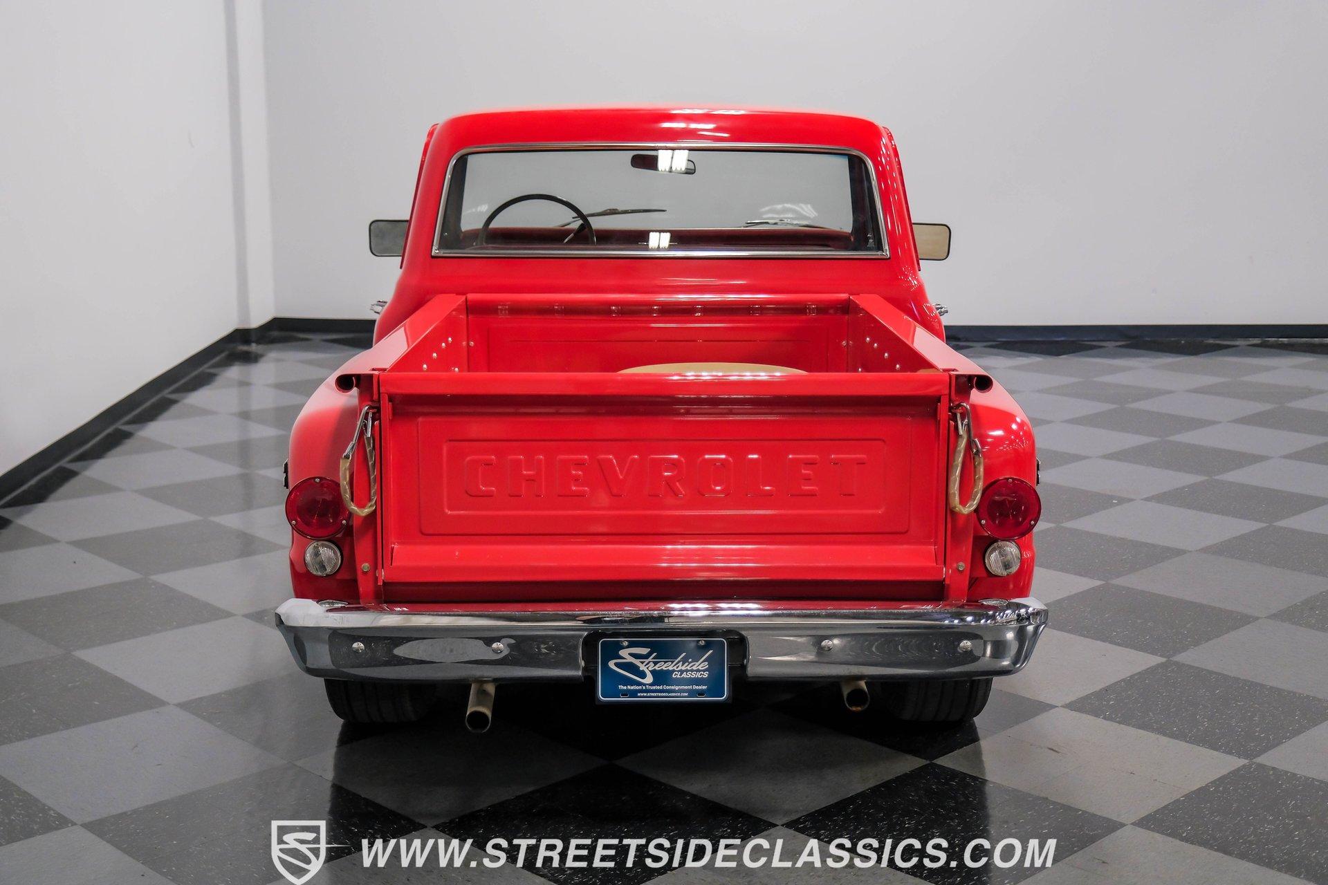 This 1969 Chevrolet C10 Stepside showcases a vibrant red exterior that exudes confidence accentuating the truck's classic lines and muscular profile. It rolls on 17-inch chrome wheels fitted with 255/60R17 tires, blending vintage aesthetics with modern road performance. The stepside bed features a rich wood floor, adding a touch of craftsmanship to the overall design. Inside, the cabin boasts a fresh red vinyl interior that complements the exterior. A spacious bench seat provides comfort for long drives, while the column shifter maintains a clean floor layout. The dash sports an attractive wood-grain finish, housing stock-style gauges and a retro AM/FM cassette player. Modern amenities include air conditioning with custom dash vents and power steering, enhancing the driving experience. A 350 V8 engine powers this C10, paired with a TH350 3-speed automatic transmission for smooth operation. An Edelbrock carburetor and shorty headers optimize performance, while the dual exhaust system produces a satisfying sound. The truck's stance is achieved through CCP tubular A-arm front suspension and a trailing arm rear setup, both featuring air ride for adjustable height. Four-wheel power disc brakes provide reliable stopping power. This C10 offers an appealing combination of classic truck style and upgraded performance. HIGHLIGHTS: 350 V8 engine TH350 3-speed automatic transmission Dual exhaust 12-bolt rear end CCP tubular A-arm front suspension with air ride Tubular trailing arm rear suspension with air bags and panhard bar Power steering Four-wheel power disc brakes Very sharp Red repaint Wood bed floor 17-inch chrome wheels in 255/60R17 tires Fuel tank relocated to rear of truck Red upholstery with Bench seat Air conditioning Retro-style AM/FM cassette player Air ride controls in dash 1,085 miles since build completion This 1969 Chevrolet C10 Stepside combines a potent 350 V8, a comfortable red interior, and numerous performance upgrades. With its air ride suspension and modernized running gear, this C10 delivers classic looks with enhanced drivability. Call today!