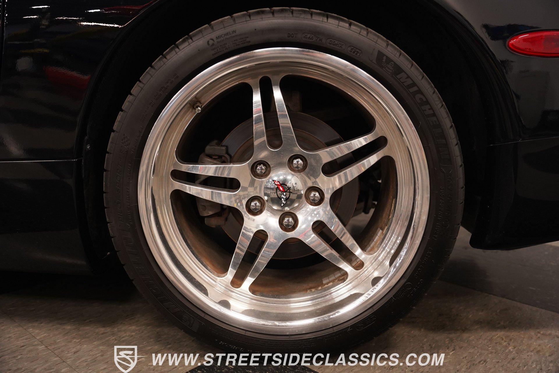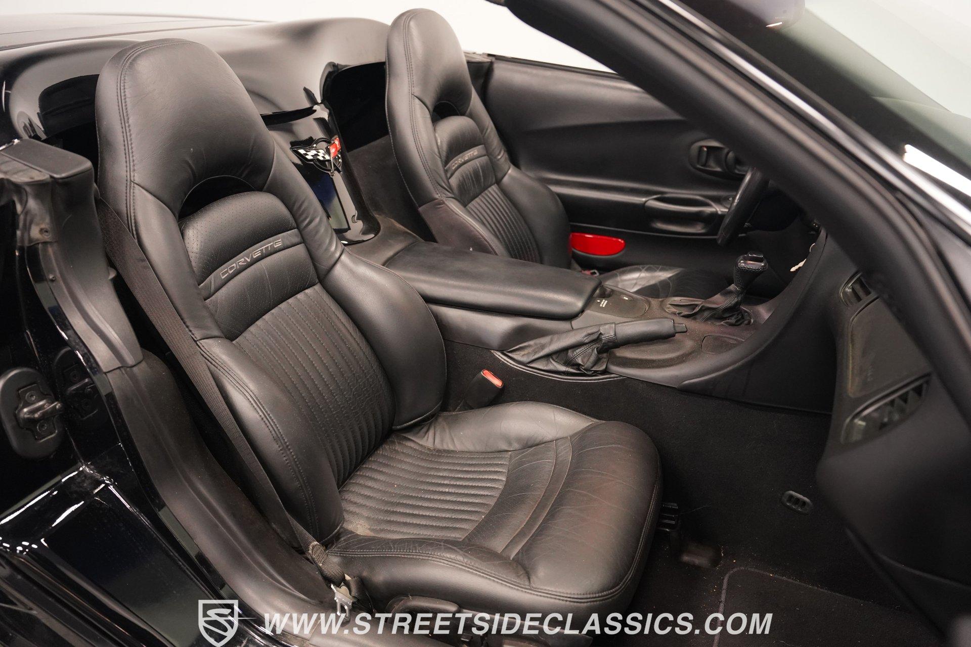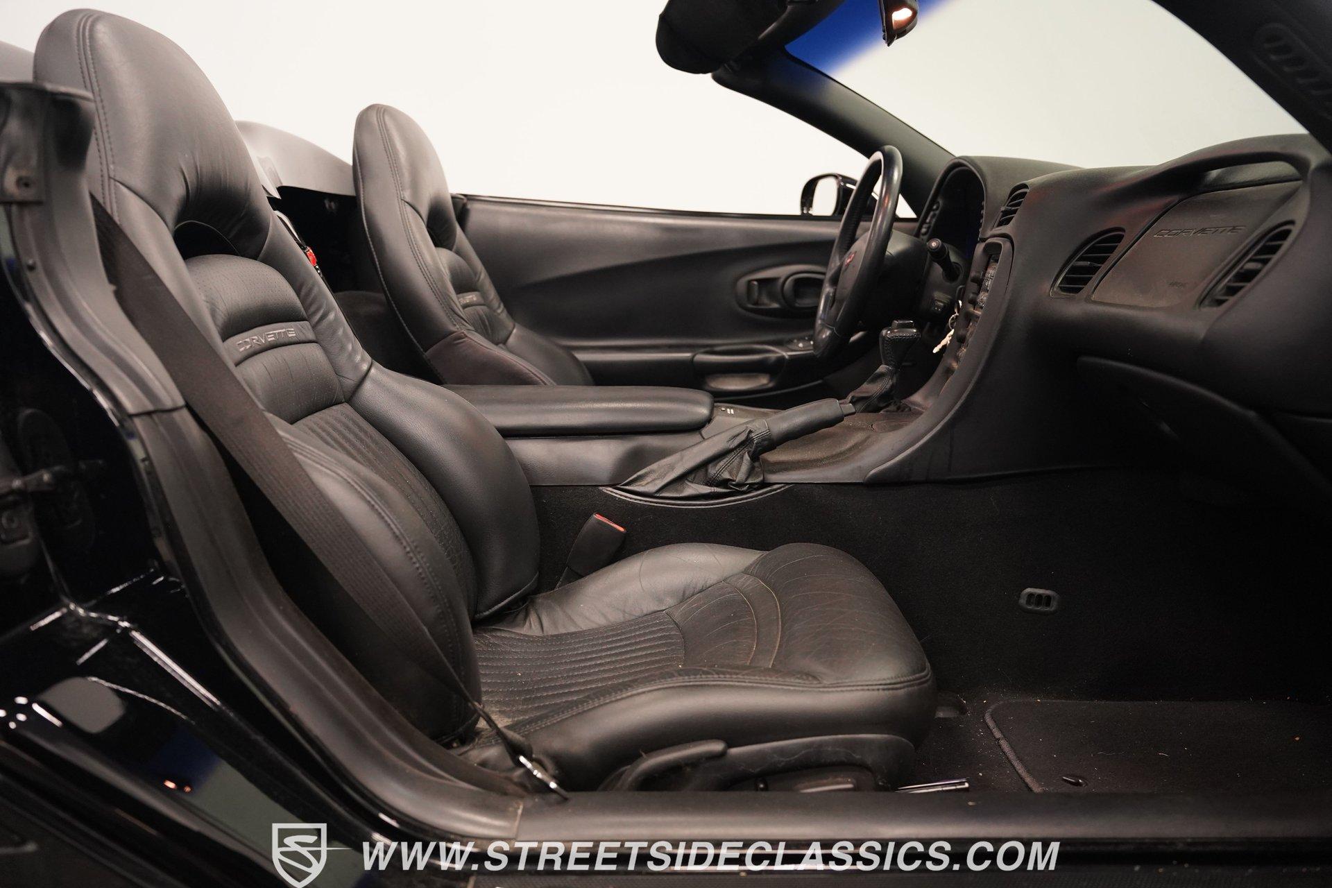 The Black paint of this 2000 Chevrolet Corvette Convertible shimmers with an understated intensity. Its sculpted lines exude timeless elegance and performance, free of any distracting stripes. This meticulously maintained Corvette has been carefully driven a mere 38,628 since it was new. Upgraded polished aluminum 19-inch custom wheels are wrapped in Michelin performance tires staggered 275/30ZR19 front and 305/30ZR19 rear, giving this Corvette a confident stance. The folding convertible top promises open-air thrills. Slide into the black leather bucket seats and discover a luxuriously appointed cabin. The interior exudes an air of refinement, with a Delco Electronics AM/FM CD stereo powered by Bose speakers, power steering, windows and locks, along with ice-cold air conditioning that ensure a comfortable ride, no matter the destination. Underneath its polished exterior lies the heart of this machine: a legendary 5.7L LS1 V8 engine paired with a smooth 4-speed automatic transmission. The upgraded suspension system equipped with Hotchkis sway bars and Blistein shocks promises razor-sharp handling. Effortless power flows to the rear wheels through a Bassani dual exhaust system with X pipe, providing the perfect balance of acceleration and aggressive exhaust note. HIGHLIGHTS: Only 36,628 miles 5.7L LS1 V8 Engine 4 Speed Automatic Transmission Bassani dual exhaust with X pipe Bilstein shocks Upgraded 19-inch wheels Power 4-Wheel Disc Brakes Dual Exhaust Black Leather Interior Delco Electronics AM/FM Cassette with Bose Speakers Air Conditioning Power Windows, Locks, Seats, Mirrors This 2000 Chevrolet Corvette Convertible encapsulates a perfect blend of performance and elegance. Its powerful engine, luxurious interior and the notable suspension upgrades make it a standout choice. Ready to make every drive an event to remember, it calls to those who appreciate a blend of classic style and modern technology. Call today!