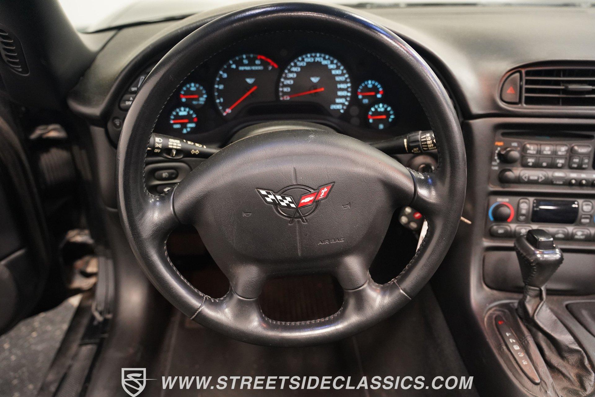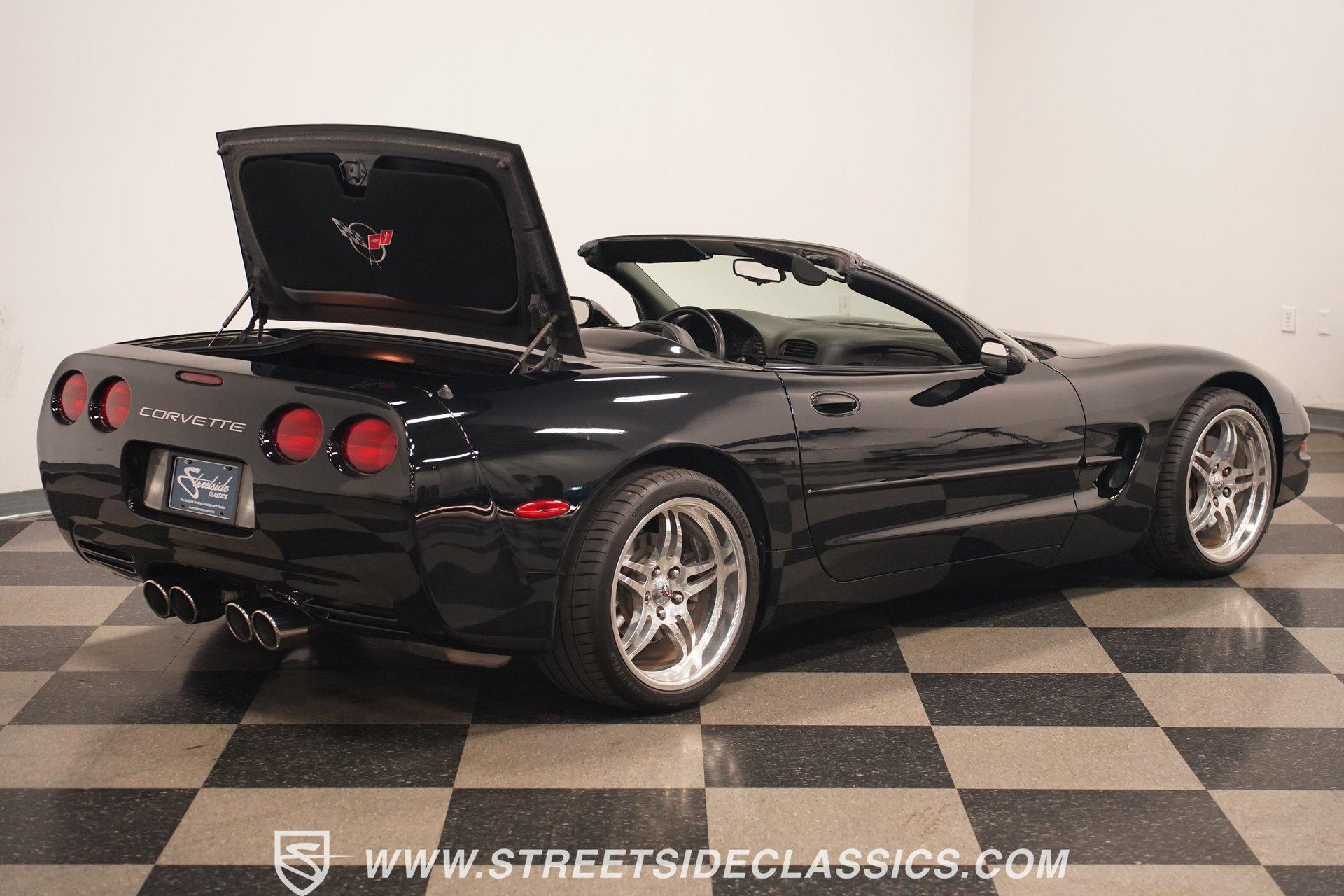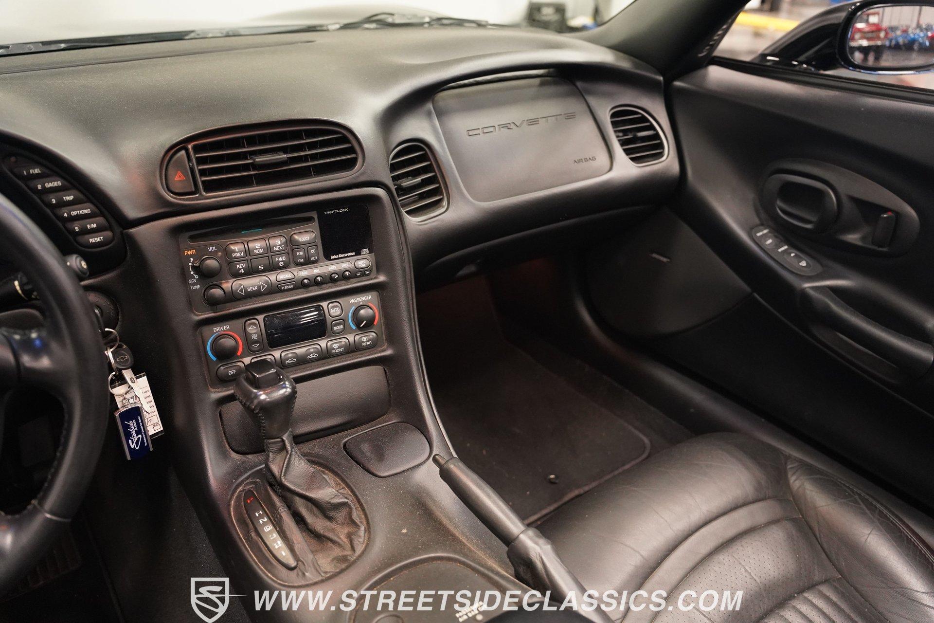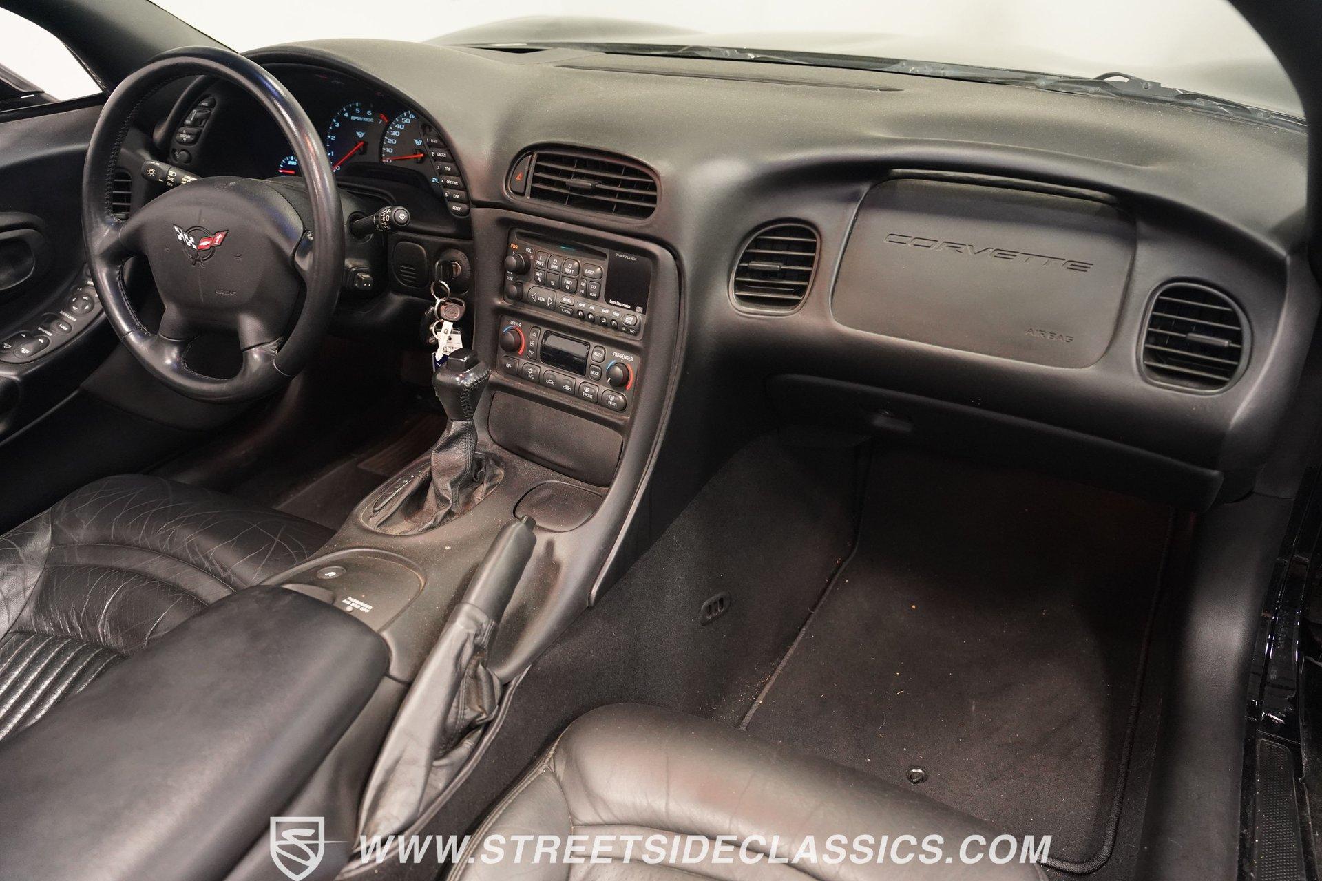 The Black paint of this 2000 Chevrolet Corvette Convertible shimmers with an understated intensity. Its sculpted lines exude timeless elegance and performance, free of any distracting stripes. This meticulously maintained Corvette has been carefully driven a mere 38,628 since it was new. Upgraded polished aluminum 19-inch custom wheels are wrapped in Michelin performance tires staggered 275/30ZR19 front and 305/30ZR19 rear, giving this Corvette a confident stance. The folding convertible top promises open-air thrills. Slide into the black leather bucket seats and discover a luxuriously appointed cabin. The interior exudes an air of refinement, with a Delco Electronics AM/FM CD stereo powered by Bose speakers, power steering, windows and locks, along with ice-cold air conditioning that ensure a comfortable ride, no matter the destination. Underneath its polished exterior lies the heart of this machine: a legendary 5.7L LS1 V8 engine paired with a smooth 4-speed automatic transmission. The upgraded suspension system equipped with Hotchkis sway bars and Blistein shocks promises razor-sharp handling. Effortless power flows to the rear wheels through a Bassani dual exhaust system with X pipe, providing the perfect balance of acceleration and aggressive exhaust note. HIGHLIGHTS: Only 36,628 miles 5.7L LS1 V8 Engine 4 Speed Automatic Transmission Bassani dual exhaust with X pipe Bilstein shocks Upgraded 19-inch wheels Power 4-Wheel Disc Brakes Dual Exhaust Black Leather Interior Delco Electronics AM/FM Cassette with Bose Speakers Air Conditioning Power Windows, Locks, Seats, Mirrors This 2000 Chevrolet Corvette Convertible encapsulates a perfect blend of performance and elegance. Its powerful engine, luxurious interior and the notable suspension upgrades make it a standout choice. Ready to make every drive an event to remember, it calls to those who appreciate a blend of classic style and modern technology. Call today!