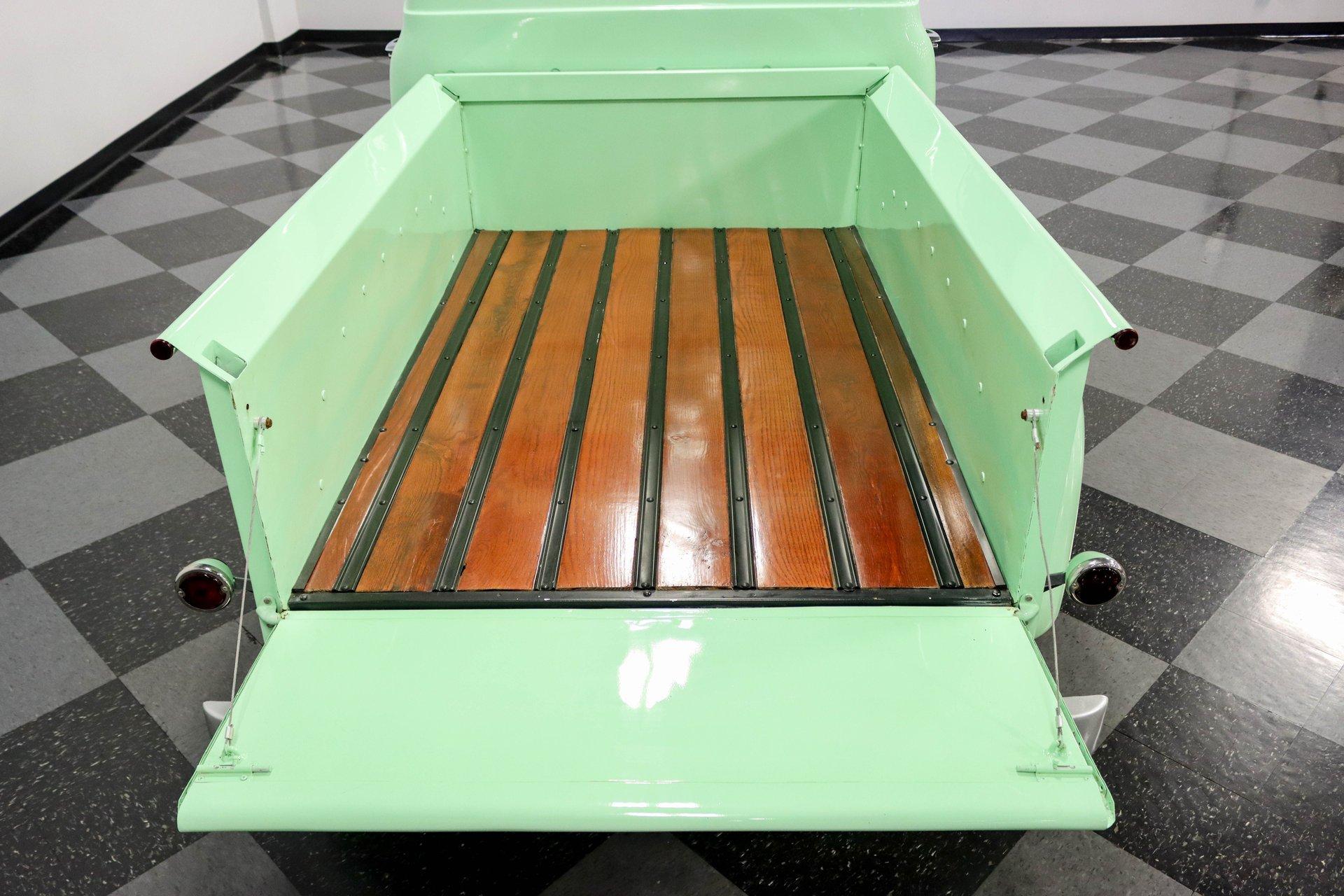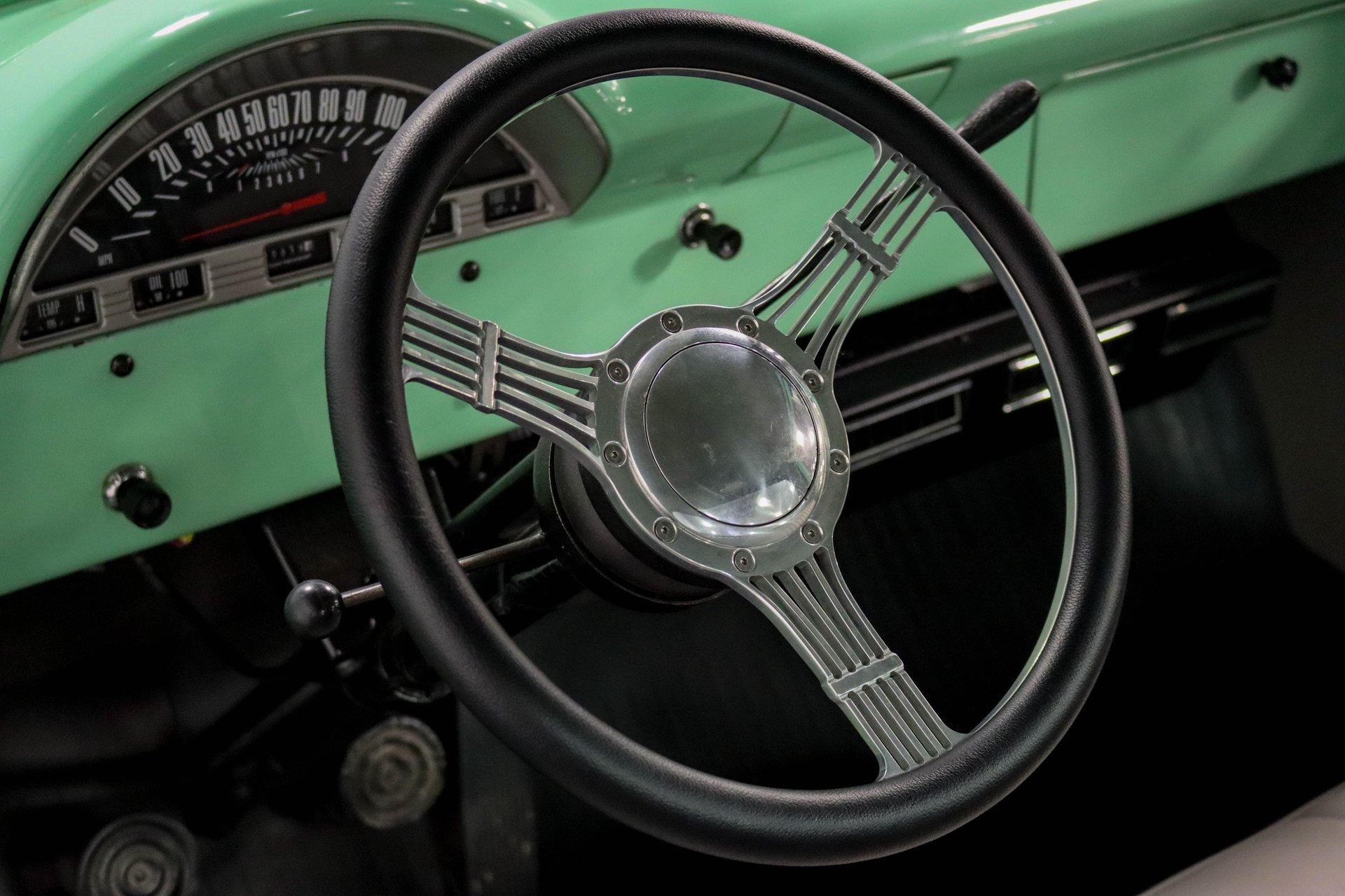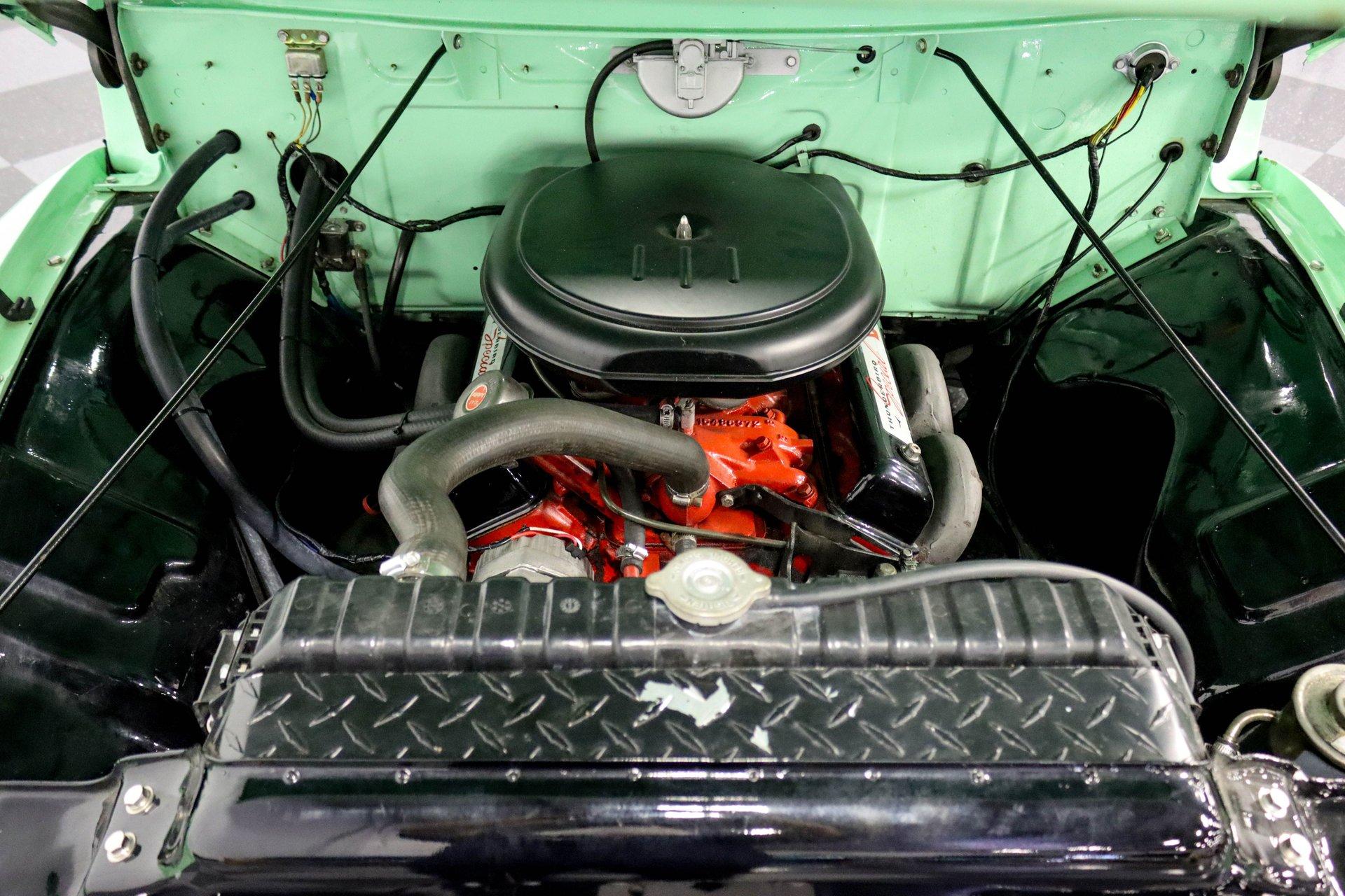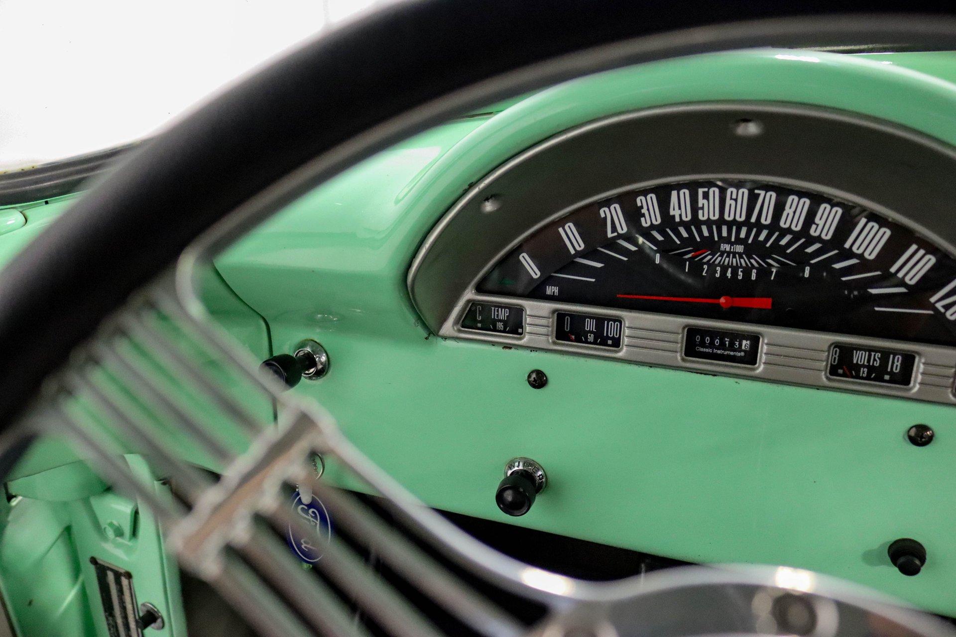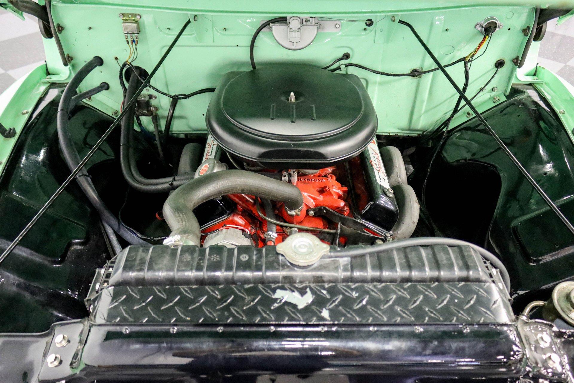 This 1956 Ford F-100 wears a coat of Meadow Mist Green, a factory-correct hue that paints a picture of wide-open Texas prairies. The truck's clean, flowing lines are enhanced by custom touches like an integrated fuel filler and streamlined tailgate. Sitting on 15-inch wheels wrapped in 235/75R15 tires, this F-100 cuts a striking figure, especially with its slightly lowered stance that gives it an extra dose of attitude. Inside, gray vinyl covers the bench seat and door panels, creating a crisp, period-appropriate interior. A banjo-style steering wheel adds a dash of style, while Classic Instruments gauges blend vintage looks with modern reliability. Power steering and under-dash air conditioning make this F-100 a joy to drive, whether you're cruising Main Street or heading out on the highway. The column-mounted shifter for the 3-speed manual transmission keeps things authentically old-school. Under the hood, Ford's 312 V8 takes center stage, breathing through an Edelbrock 4-barrel carburetor. The engine bay showcases a mix of original components and smart upgrades, including a Cadillac-style air grabber. An X-pipe dual exhaust system provides a muscular soundtrack, while power drum brakes at all four corners offer confident stopping power. This powertrain combo delivers plenty of get-up-and-go for cruising or hauling, staying true to the F-100's versatile nature. HIGHLIGHTS: 312 V8 engine 3-speed manual transmission Edelbrock 4-barrel carburetor X-pipe dual exhaust system Power steering Power brakes Lowered suspension Meadow Mist Green paint (factory correct) 15-inch wheels in 235/75R15 tires Custom smooth tailgate Integrated fuel filler in rear fender Vinyl "W" decal on doors Gray interior with bench seat Gray door panels Banjo-style steering wheel Classic Instruments gauges Under-dash air conditioning Body-off restoration This 1956 Ford F-100 combines classic style with subtle hot rod flair. From its potent V8 to its comfortable, upgraded interior, this truck offers an ideal blend of vintage appeal and modern drivability. Perfect for weekend cruises or daily drives, this F-100 is ready to hit the road. Call today!