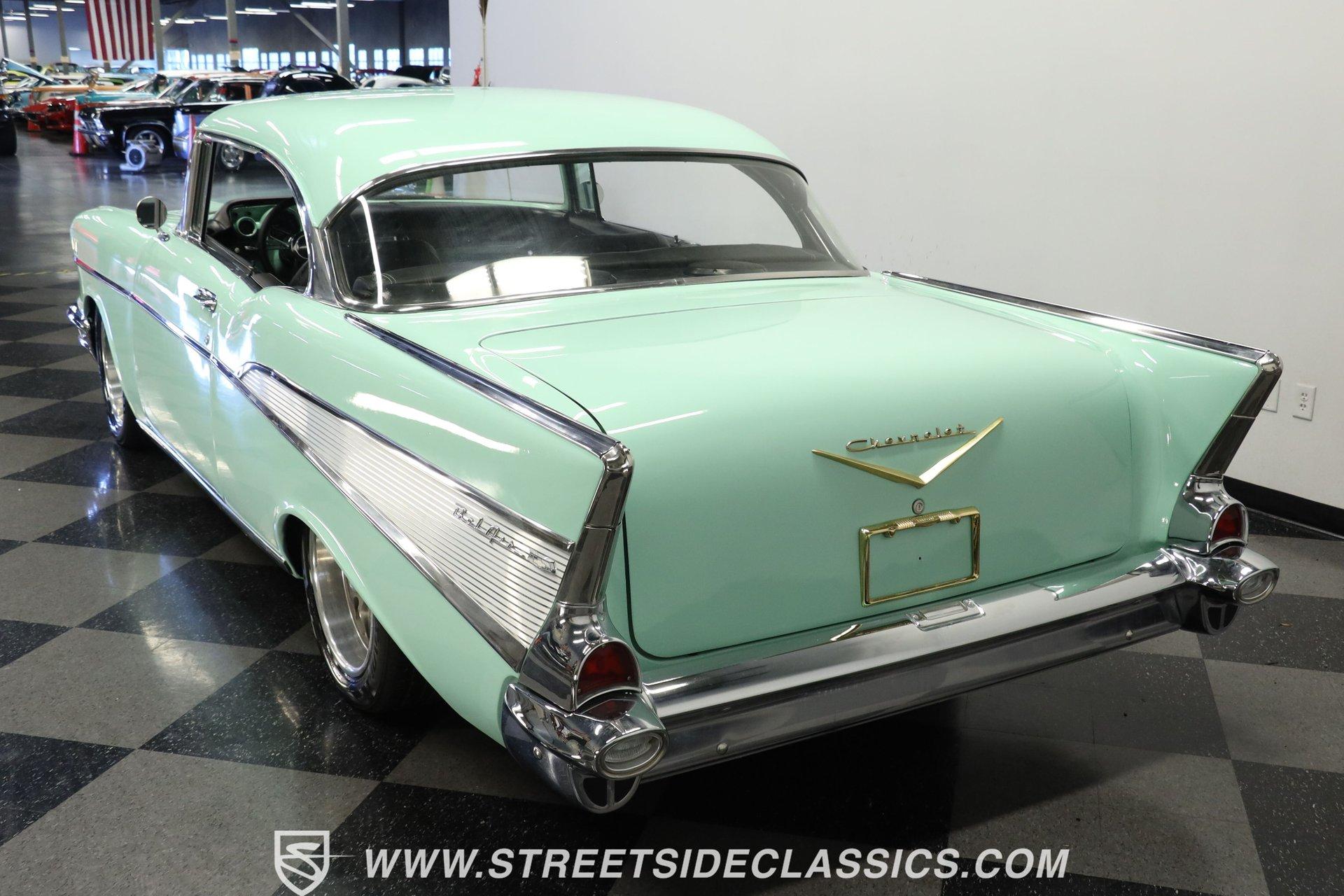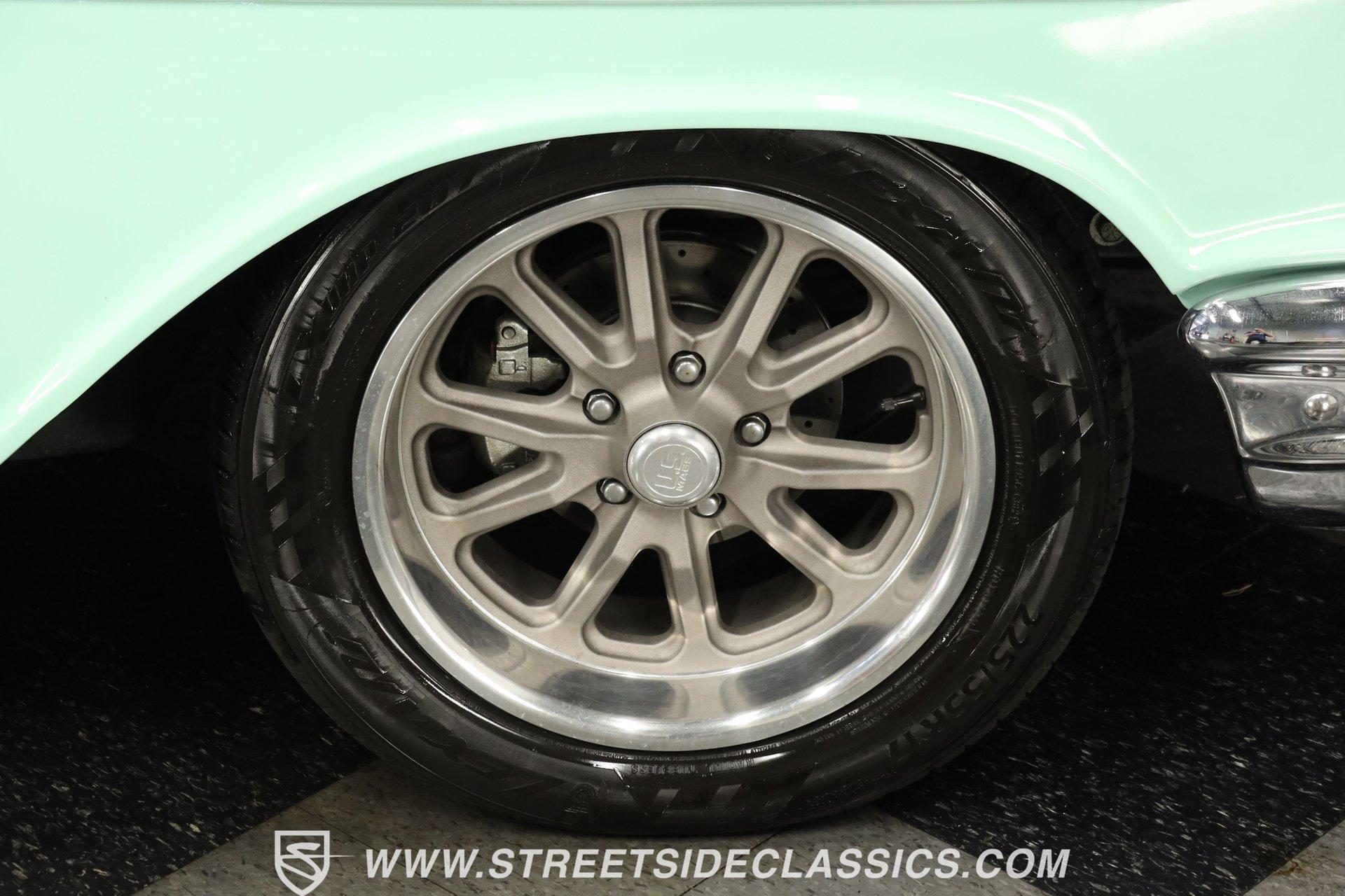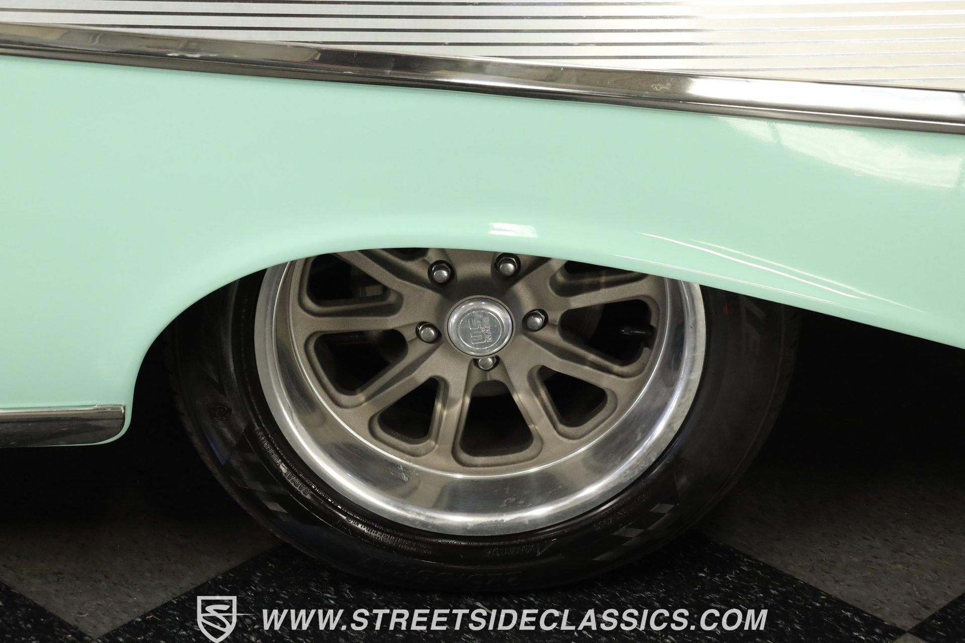 4723-TPA 1957 CHEVROLET BEL AIR LS3 RESTOMOD This 1957 Chevrolet Bel Air LS3 Restomod blends classic '50s styling with modern muscle. Its light green exterior gleams under showroom lights, showcasing the iconic '57 Chevy design. Chrome trim accentuates the sleek body lines, while 17-inch US Mag wheels wrapped in 225/55ZR17 tires provide a subtle yet aggressive stance. The hardtop silhouette maintains the car's timeless appeal, enhanced by well-preserved front and rear chrome, drip rails, and bumpers. Black vinyl TMI bucket seats and a matching rear bench dominate the interior, complemented by a custom center console housing a Hurst shifter. The dash, color-matched to the exterior, houses Dakota Digital gauges for a modern touch. A RetroSound radio and vintage AC controls blend old-school aesthetics with contemporary functionality. Power windows allow for easy operation of all side glass, adding convenience to the classic hardtop experience. Running with a 6.2-liter LS3 V8 engine, sourced from a 2018 Camaro. This powerhouse is mated to a Tremec T56 6-speed manual transmission, offering an exhilarating driving experience. The engine bay showcases ZZP coil packs and an upgraded aluminum radiator with electric fan assembly for improved cooling. A Wilwood brake master cylinder ensures confident stopping power through four-wheel disc brakes. The chassis benefits from A-arm front suspension with coilovers and leaf springs in the rear, striking a balance between classic feel and modern handling. HIGHLIGHTS: 6.2L LS3 V8 engine (2018 Camaro sourced) Tremec T56 6-speed manual transmission Power 4-wheel disc brakes Power steering Upgraded aluminum radiator with electric fan ZZP coil packs Wilwood brake master cylinder A-arm front suspension with coilovers Light green paint 17" US Mag wheels in 225/55ZR17 tires Chrome trim and bumpers 2-door hardtop body style Black vinyl bucket seats and rear bench Dakota Digital gauges Custom center console with Hurst shifter RetroSound radio Vintage AC controls Tilt steering column Power windows Optima Red Top battery (trunk-mounted) This 1957 Chevrolet Bel Air LS3 Restomod combines iconic '50s style with modern performance. With its potent LS3 V8, six-speed manual, and tasteful upgrades throughout, it delivers a driving experience that's both nostalgic and thrilling. Call today!
