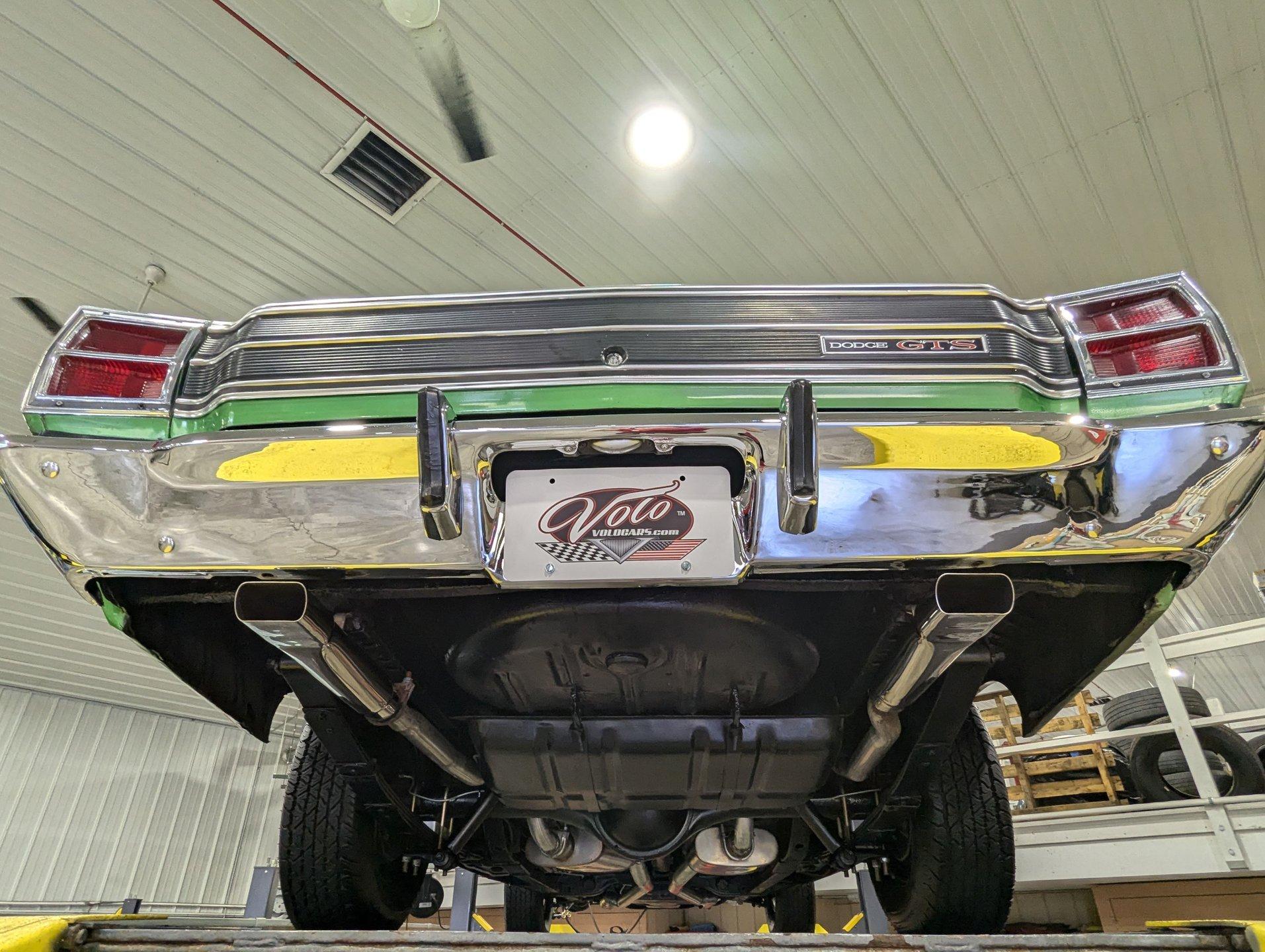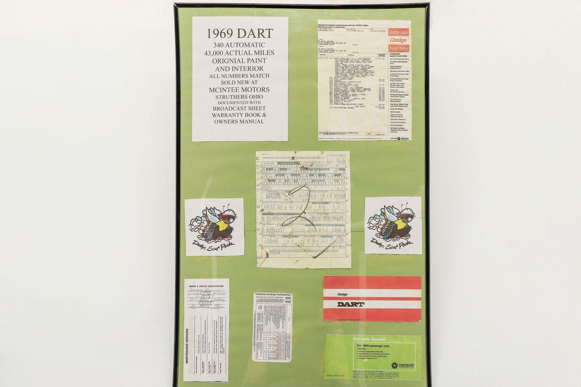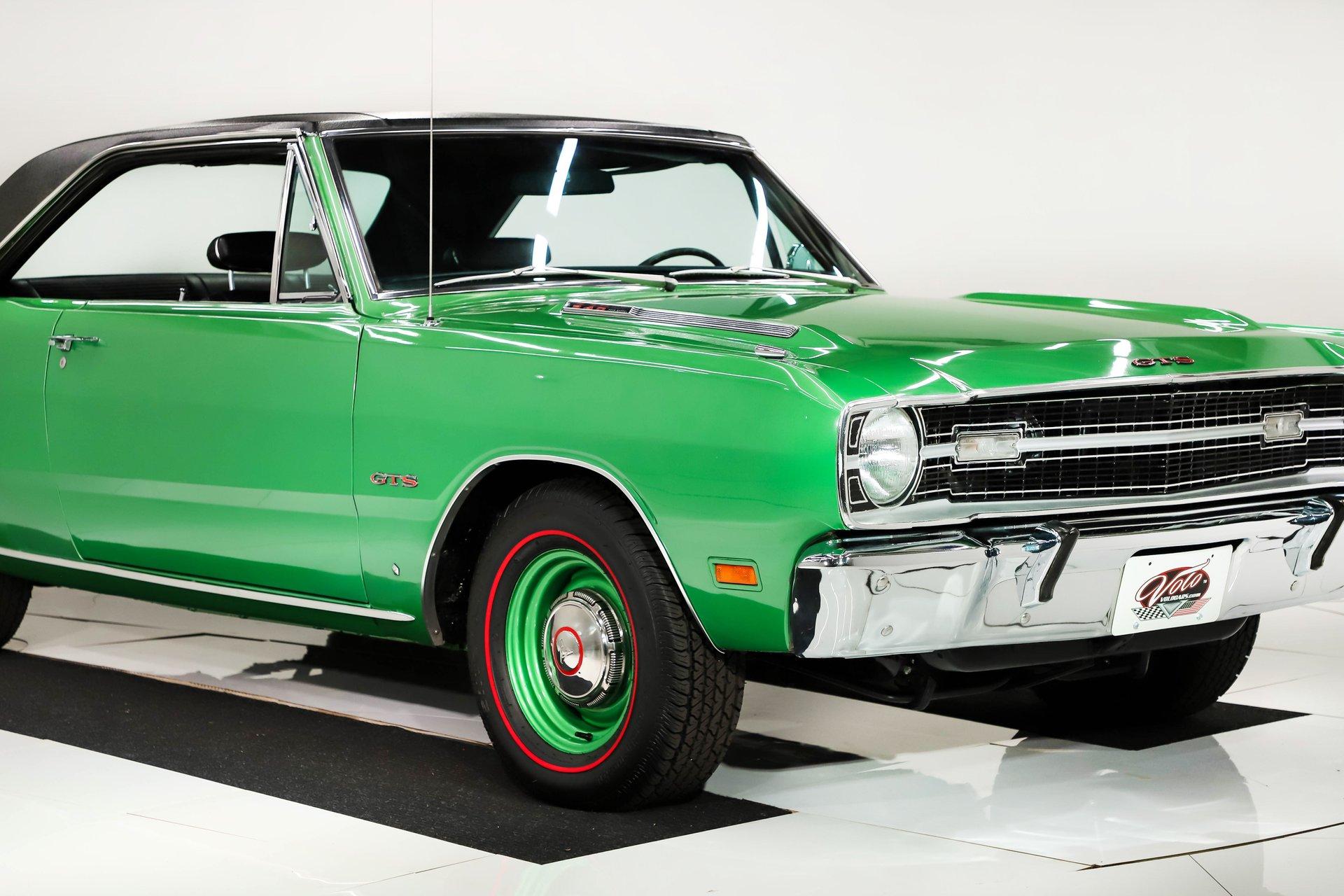 True survivor with 44,820 actual miles! Rare GT Sport with a spunky 340 four barrel and an impossible to find Bright Green color! #s matching, original paint, and interior. Documented with the original fender tag, build sheet and window sticker too. Remarkable condition for a 55 year old survivor muscle car! EXTERIOR: Believed to be the original paint! I just inspected it closely and other than a few minor blends I agree it is original paint. Overall, it shows great, with a gloss finish. Some of the edges are buffed thin. It has original glass including windshield which is a good indicator of low miles. Arguably the rarest of all Chrysler high impact colors Code F6 Bright Green was only available for a limited production run in the spring of 1969. The seasonal availability of the color not only makes it incredibly rare but also earned it the nickname "Spring Green". Even at the most prestigious of events, you'll be lucky to find a real deal "Spring Green" car. A new vinyl bumble bee stripe was just added. The original vinyl top presents well. The chrome and trim is exceptionally nice. The fender mounted turn signals are a very cool original option too. It's sitting on body color painted rims with poverty hubcaps and new BFG radial red line tires. INTERIOR: This interior is said to be all original and in outstanding condition! The front bucket seats and rear bench seat are still very comfortable and look great but have a couple minor imperfections. The center console and remote mirror are very nice factory options. It has a $1,000 vintage Sun Super tachometer on the column. It also has a vintage 8-track player that the previous spent a bundle rebuilding. There are currently 44,818 original miles on the odometer. The carpet, headliner, sun visors, and door panels are all in great shape too. The dome light even works. ENGINE COMPARTMENT: The original VIN number matching 340 cubic inch four barrel engine is still in place! The engine bay is detailed to factory specs. It has been freshened up with the correct paint and still has many of the original parts. It looks like the carburetor was rebuilt. It was equipped with power steering from the factory. The battery is properly secured and even the squirters are hooked up. The original fender tag is in place. TRUNK COMPARTMENT: The underside of the lid still has its original sticker. Under the mat is clean original metal that was painted black. It has a full-size body color painted rim with what appears to be the original spare tire still mounted. UNDERSIDE: This is a very clean original undercarriage that has been maintained as needed and professionally detailed! It has completely rust-free metal that has been prepped and freshened up with black paint. It has optional disc brakes in front, e-brake is hooked up. It has a Pypes exhaust system with stainless mufflers and correct chrome tips. Looking up at the motor it is fresh, starter looks new. The VIN matching number is by the oil pan, the casting codes on the block are correct too. It has its original #s matching 727 Torqueflite trans. A rebuilt driveshaft leads back to an 8 3/4" Sure Grip rear end with 3.23 gearing were both factory options. SERVICE: Our lead mechanic inspected this car and we installed a neutral safety harness, secured a trim piece, replaced the speedo gear, installed a passenger door lock knob, lubed the leaf spring bushings, and replaced the window rollers. CONCLUSION: If you like to collect rare and original survivors this car is for you! A Dart GTS with only 45,000 original miles and it's fully documented. Actual miles are indicated on the title. You can restore a car as many times as you want, you cannot make it original again. Opportunities like this hardly ever become available, don't let this one slip through your hands! I, Jay Grams, take pride in personally writing the descriptions for virtually every car for about the last 30 years now. A significant amount of effort goes into fact checking. What I am offering is my professional impression of the vehicle. Our salesmen are happy to assist with descriptions and making sure your questions are answered. One great suggestion is letting us do a walk around video that explains the car's condition in detail. **These cars are displayed in a museum. If interested in a particular car, make an appointment with a salesman to see that car. Without an appointment there is an admission fee to enter the showroom. If you buy a car, your admission will be refunded, and you will be given a 1 year membership. 815 385 3644 9-5 central Sales@volocars.com Answered ASAP Power steering Front disc brakes Sure Grip 3.23 rear Sport wheel Bucket seats Center console Remote mirror Vintage 8-track player Vintage tachometer Tinted glass Vinyl roof Bumper guards Fender turn signals Bumble bee stripe Poverty hubcaps Radial redline tires Original window sticker Build sheet