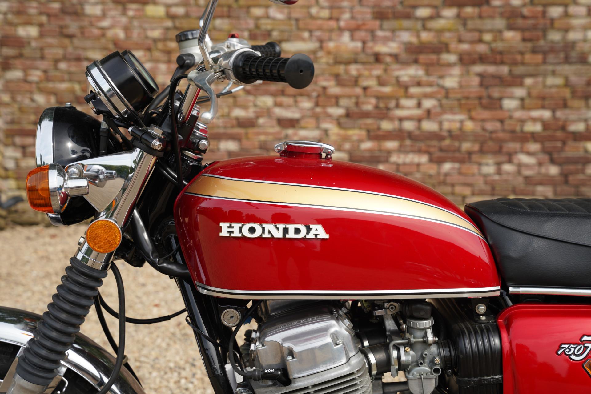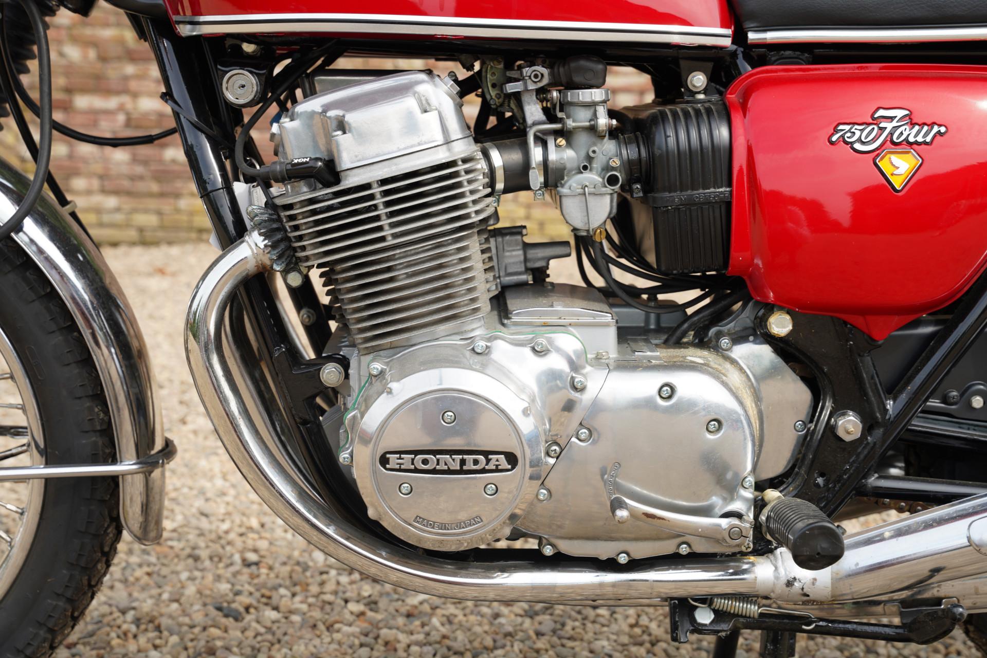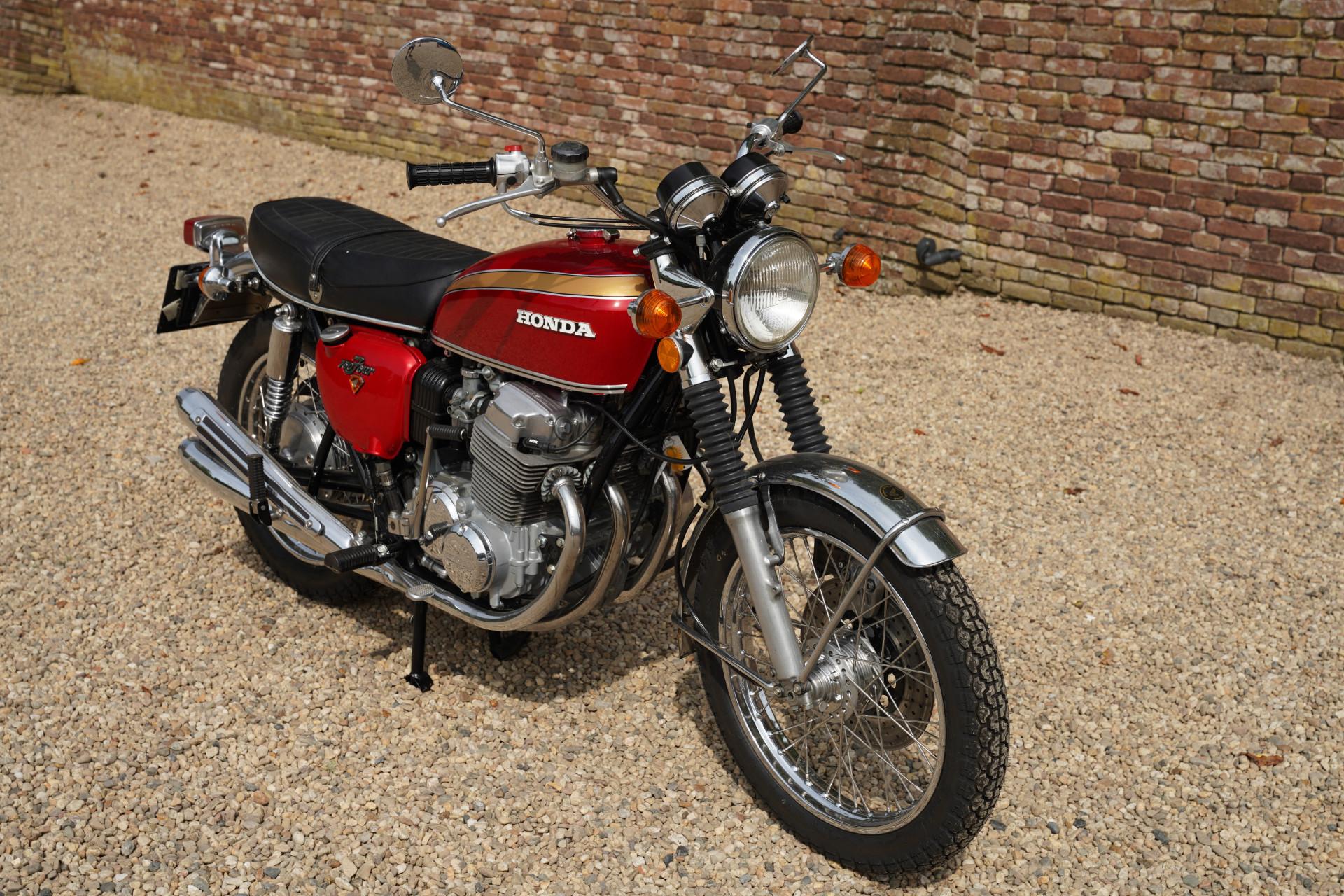 This Honda CB750 has undergone a comprehensive restoration and overhaul. The Honda is finished in the beautiful color Candy Ruby Red, a shade that perfectly complements the timeless lines of the CB750. Both the paint and the chrome work shine beautifully, and the engine is in good condition. The restoration has been carried out with great care by an enthusiastic collector, and it shows in every detail.