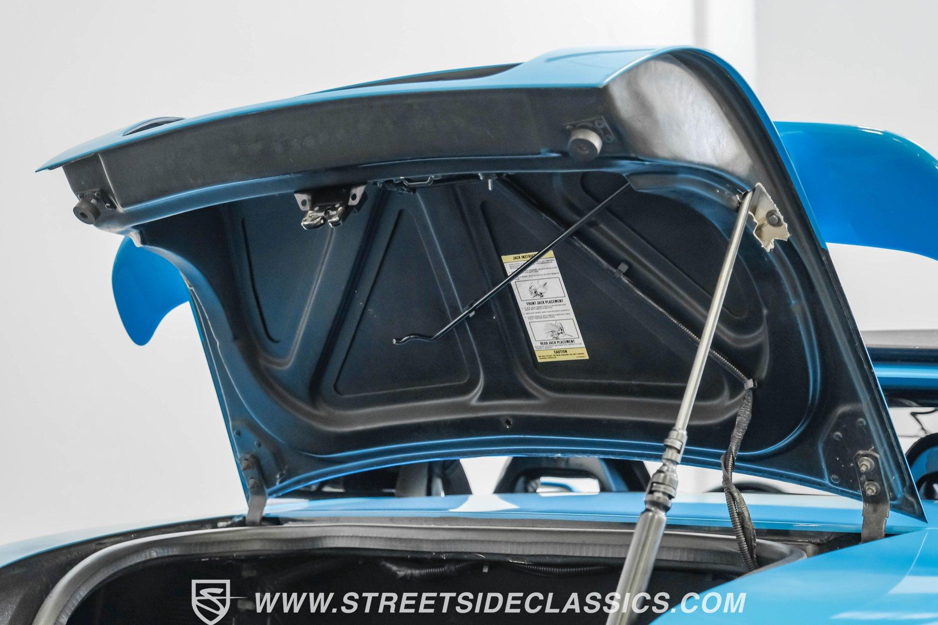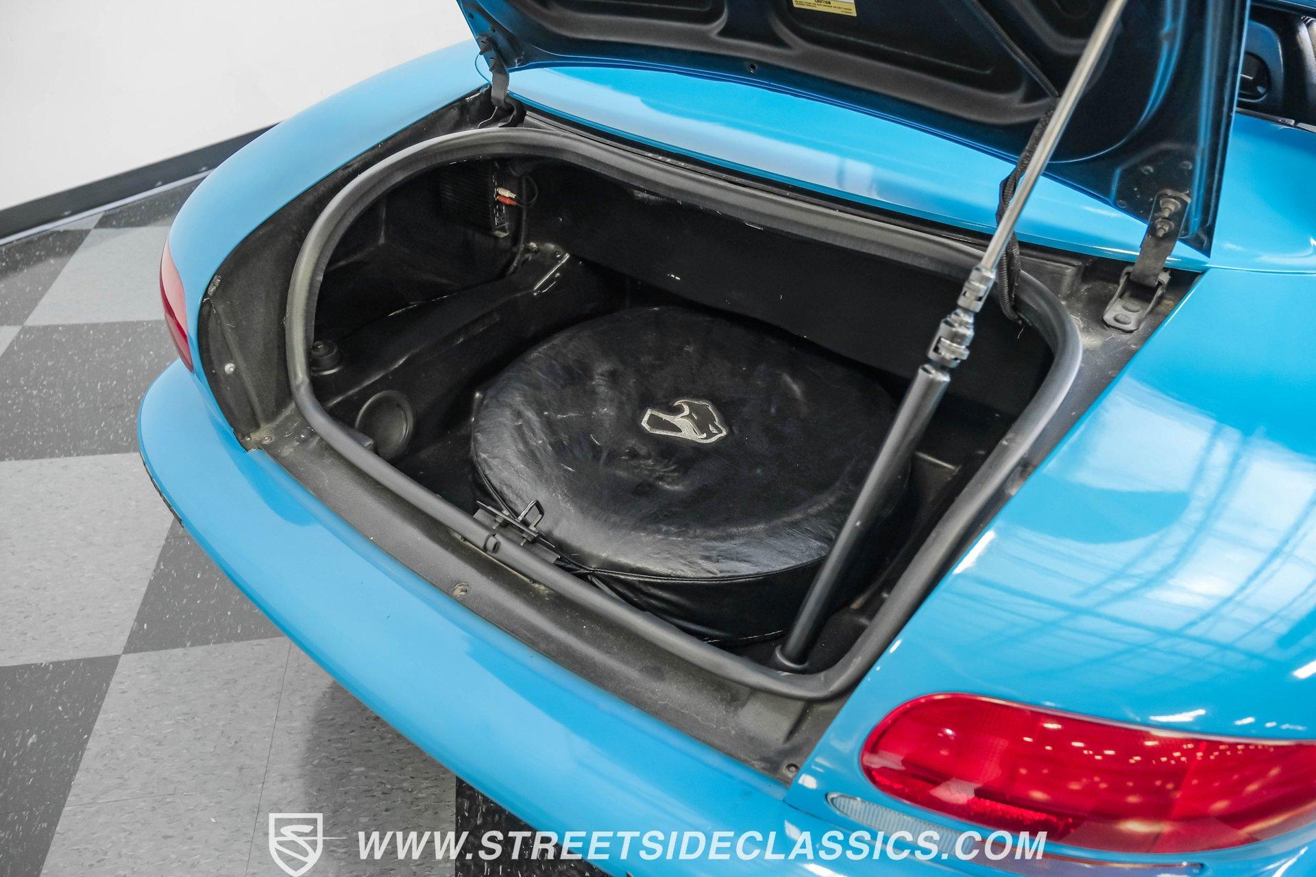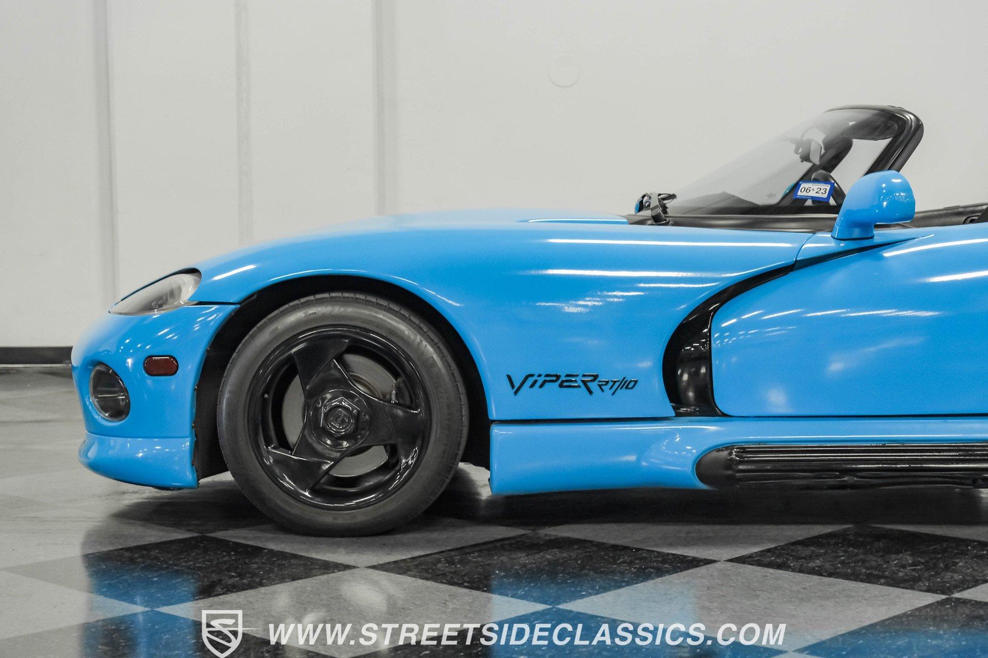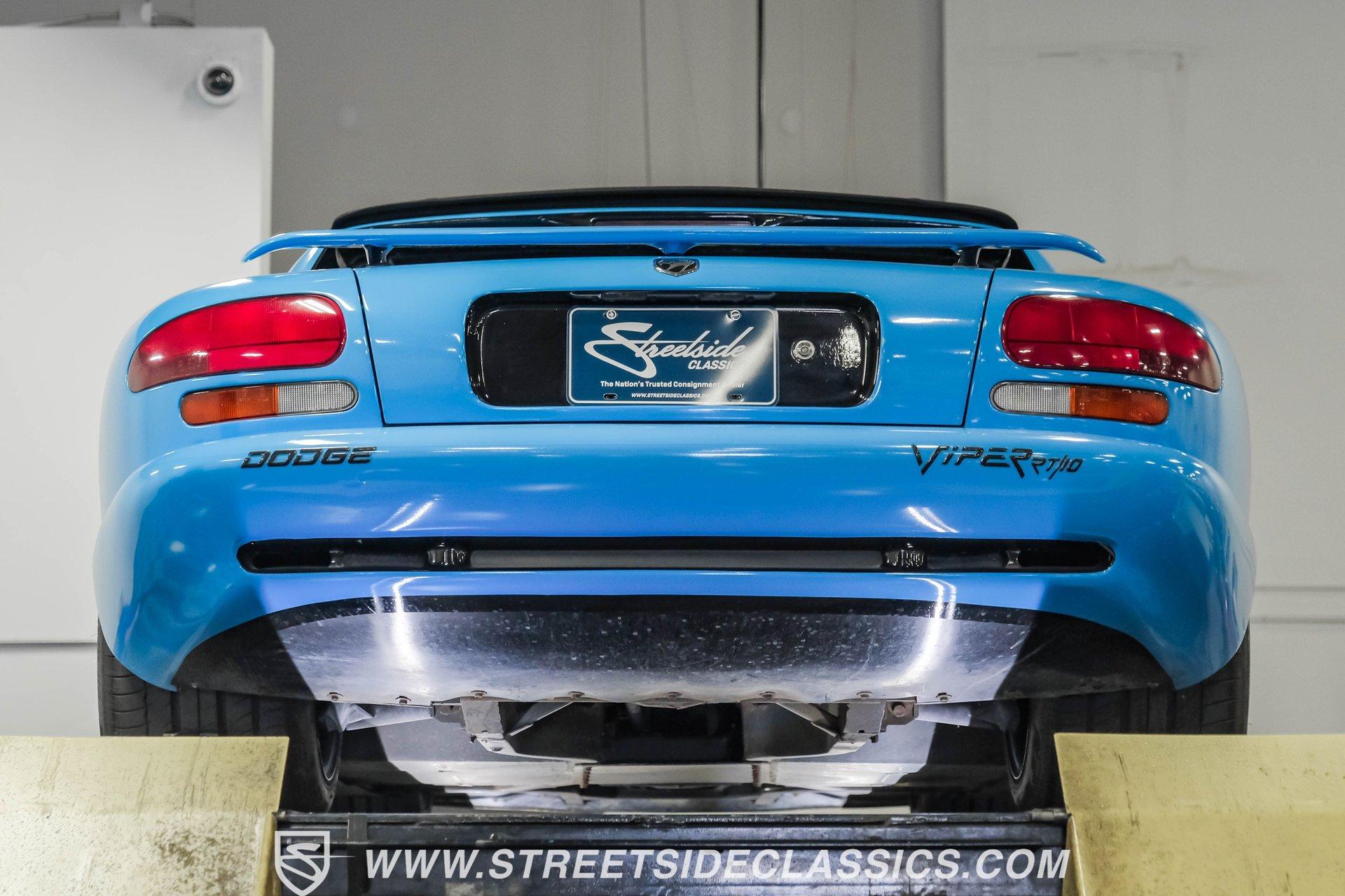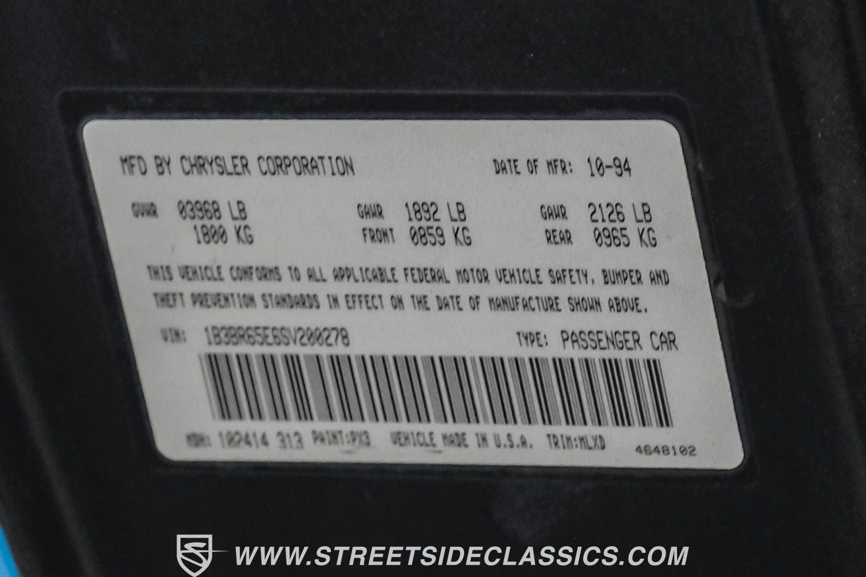 This 1995 Dodge Viper RT-10 roars to life with only 51,004 original miles on the odometer. The exterior flaunts a striking blue vinyl wrap, giving this American muscle icon a modern edge. Black 17-inch wheels create a stark contrast against the vibrant body, amplifying its aggressive stance. The side-pipe shield, emblems, and wheels all sport a sleek black finish, adding to the car's formidable presence. A removable targa top with a black cloth roof and detachable side and rear glass offers the freedom to choose between open-air thrills or closed-cabin comfort. Michelin tires (275/40ZR17 front, 335/35ZR17 rear) provide the grip needed to tame this powerhouse. Inside showcases a custom brown leather interior that exudes luxury and sophistication. Expertly crafted bucket seats cradle driver and passenger, while the leather-wrapped steering wheel and floor-mounted shifter put complete control at your fingertips. The tilt column allows for the perfect driving position, essential for harnessing the Viper's raw power. An Alpine AM/FM/CD player, paired with strategically placed Alpine speakers between the seats, ensures your drive has a soundtrack to match the Viper's performance. The center console and air conditioning add comfort to this high-performance machine. Open the clamshell hood to reveal the massive 8.0-liter V10 engine. This powerhouse is mated to a 6-speed manual transmission, delivering an engaging and visceral driving experience. The independent suspension system, both front and rear, coupled with power disc brakes at all four corners, ensures that this Viper handles curves as adeptly as it dominates straightaways. Power steering adds precision to every maneuver. The side-exit exhaust system not only looks incredible but produces a thunderous growl that announces your arrival with authority. HIGHLIGHTS: 8.0 Liter V10 Engine 6 Speed Manual Transmission Electronic Fuel Injection Independent Front & Rear Suspension Power Disc Brakes Power Steering Side-Exit Exhaust System Blue Vinyl Wrap 17" Black Wheels 275/40ZR17 Front, 335/35ZR17 Rear Michelin Tires Black Side-Pipe Shield Black Emblems Removable Targa Top Removable Side and Rear Glass Custom Brown Leather Interior with Bucket Seats Leather-Wrapped Steering Wheel Tilt Steering Column Floor-Mounted Shifter Air Conditioning Alpine AM/FM/CD Player Alpine Speakers Owner's Manual 51,004 Original Miles This 1995 Dodge Viper RT-10 exemplifies American muscle car excellence. Its custom blue wrap, luxurious brown leather interior, and the raw power of the V10 engine create an unparalleled driving experience. Call today!