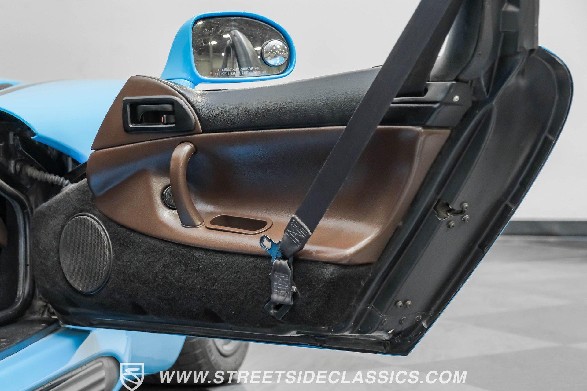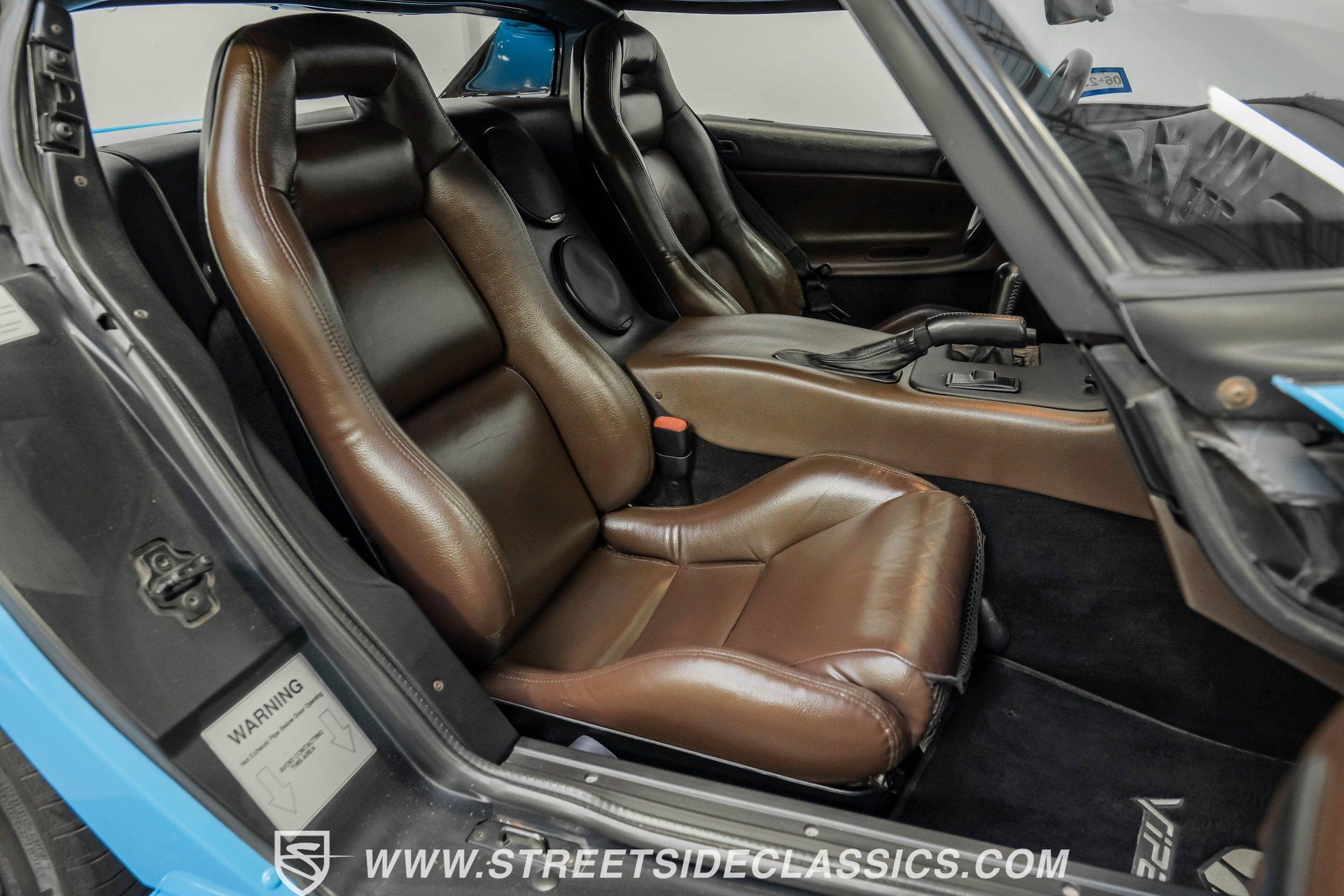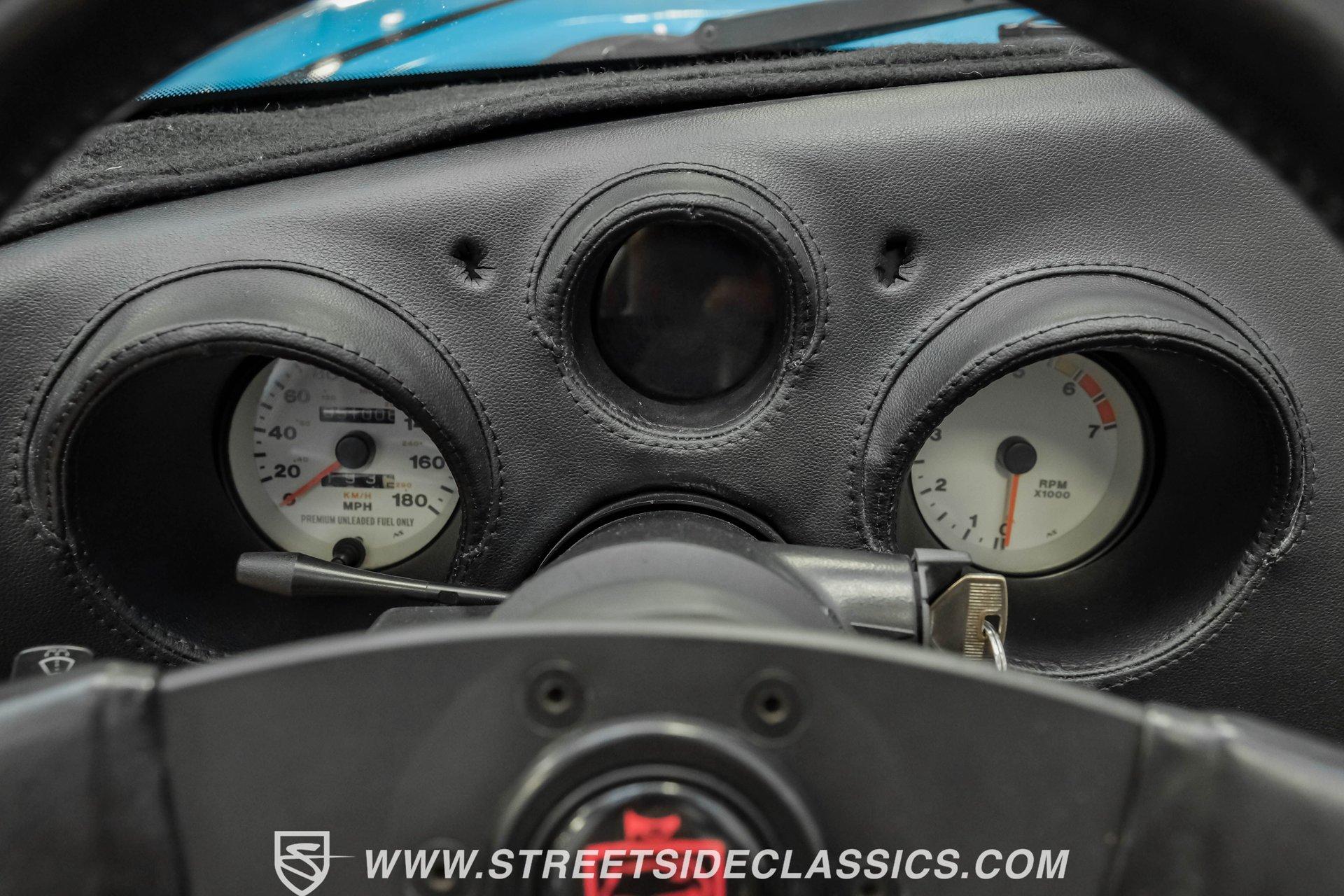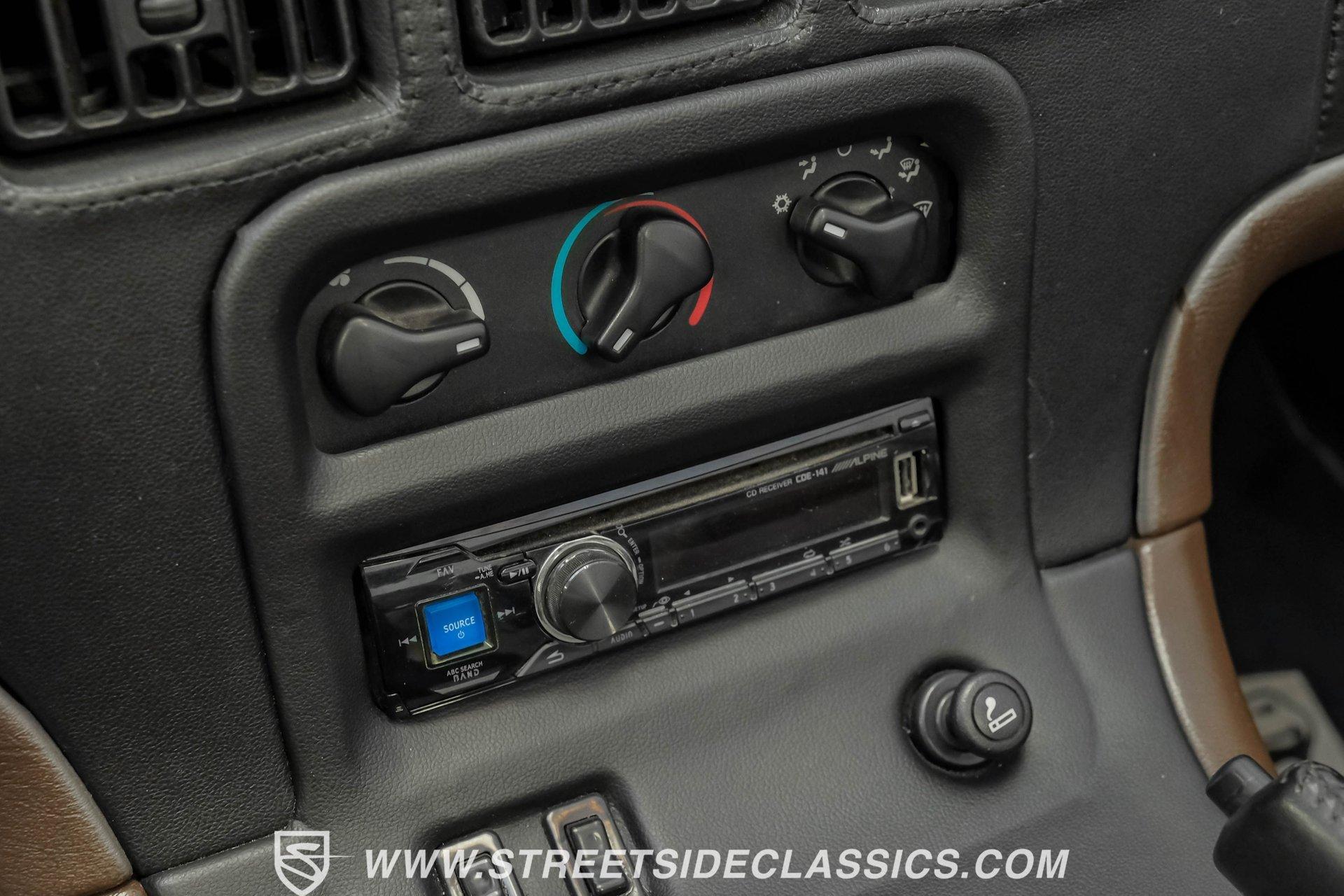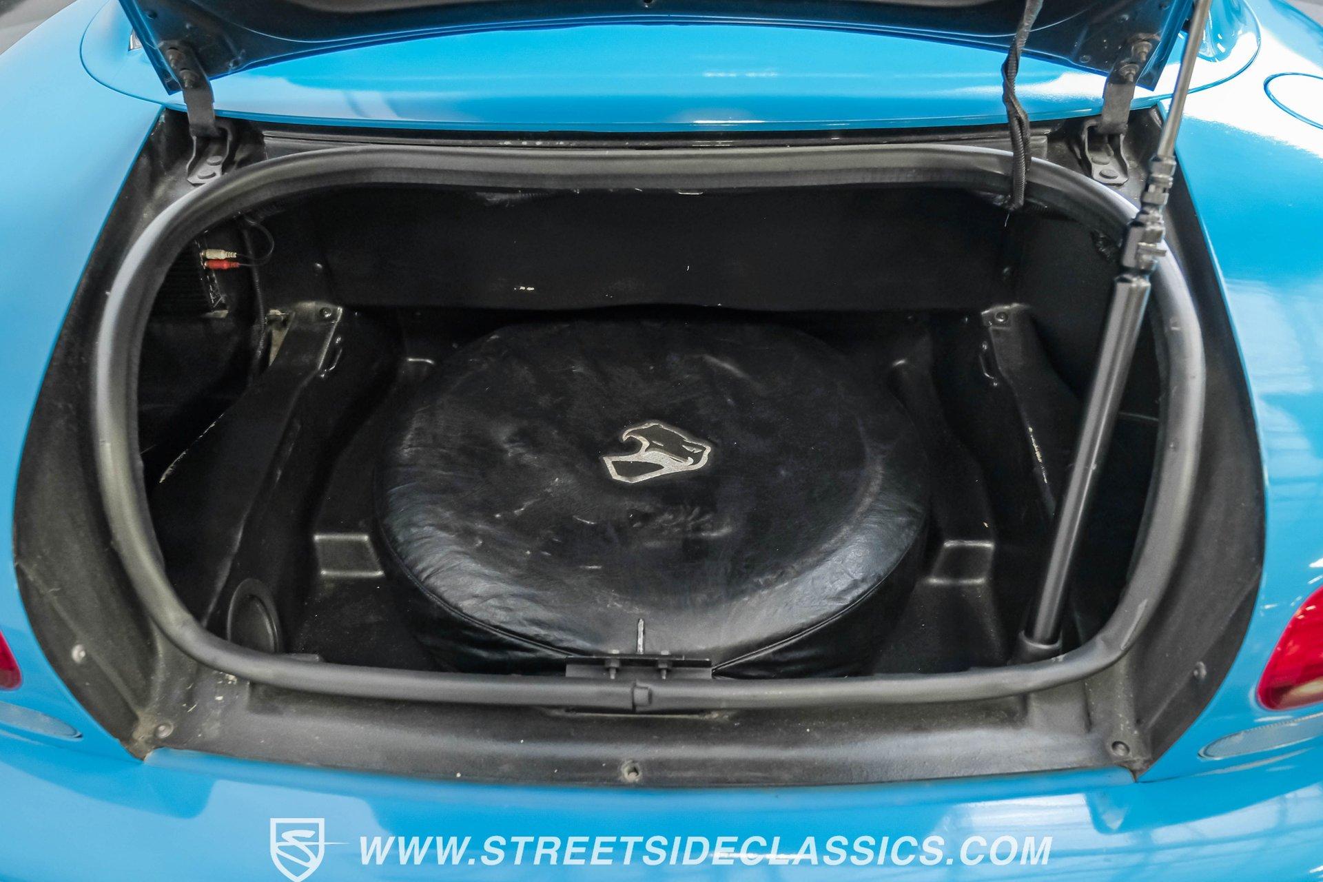 This 1995 Dodge Viper RT-10 roars to life with only 51,004 original miles on the odometer. The exterior flaunts a striking blue vinyl wrap, giving this American muscle icon a modern edge. Black 17-inch wheels create a stark contrast against the vibrant body, amplifying its aggressive stance. The side-pipe shield, emblems, and wheels all sport a sleek black finish, adding to the car's formidable presence. A removable targa top with a black cloth roof and detachable side and rear glass offers the freedom to choose between open-air thrills or closed-cabin comfort. Michelin tires (275/40ZR17 front, 335/35ZR17 rear) provide the grip needed to tame this powerhouse. Inside showcases a custom brown leather interior that exudes luxury and sophistication. Expertly crafted bucket seats cradle driver and passenger, while the leather-wrapped steering wheel and floor-mounted shifter put complete control at your fingertips. The tilt column allows for the perfect driving position, essential for harnessing the Viper's raw power. An Alpine AM/FM/CD player, paired with strategically placed Alpine speakers between the seats, ensures your drive has a soundtrack to match the Viper's performance. The center console and air conditioning add comfort to this high-performance machine. Open the clamshell hood to reveal the massive 8.0-liter V10 engine. This powerhouse is mated to a 6-speed manual transmission, delivering an engaging and visceral driving experience. The independent suspension system, both front and rear, coupled with power disc brakes at all four corners, ensures that this Viper handles curves as adeptly as it dominates straightaways. Power steering adds precision to every maneuver. The side-exit exhaust system not only looks incredible but produces a thunderous growl that announces your arrival with authority. HIGHLIGHTS: 8.0 Liter V10 Engine 6 Speed Manual Transmission Electronic Fuel Injection Independent Front & Rear Suspension Power Disc Brakes Power Steering Side-Exit Exhaust System Blue Vinyl Wrap 17" Black Wheels 275/40ZR17 Front, 335/35ZR17 Rear Michelin Tires Black Side-Pipe Shield Black Emblems Removable Targa Top Removable Side and Rear Glass Custom Brown Leather Interior with Bucket Seats Leather-Wrapped Steering Wheel Tilt Steering Column Floor-Mounted Shifter Air Conditioning Alpine AM/FM/CD Player Alpine Speakers Owner's Manual 51,004 Original Miles This 1995 Dodge Viper RT-10 exemplifies American muscle car excellence. Its custom blue wrap, luxurious brown leather interior, and the raw power of the V10 engine create an unparalleled driving experience. Call today!