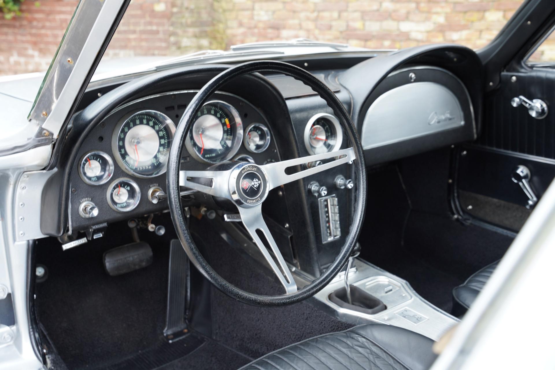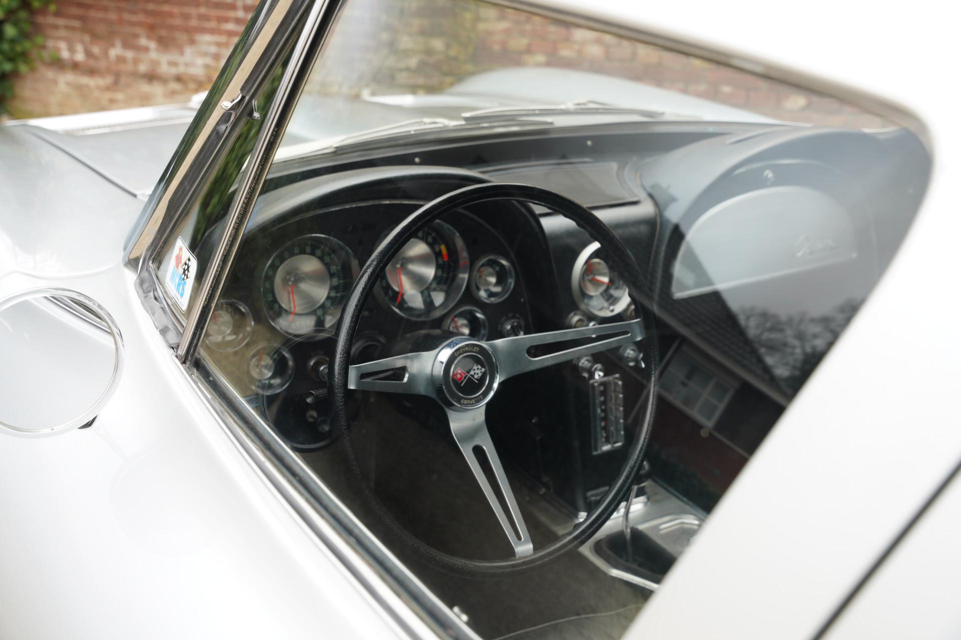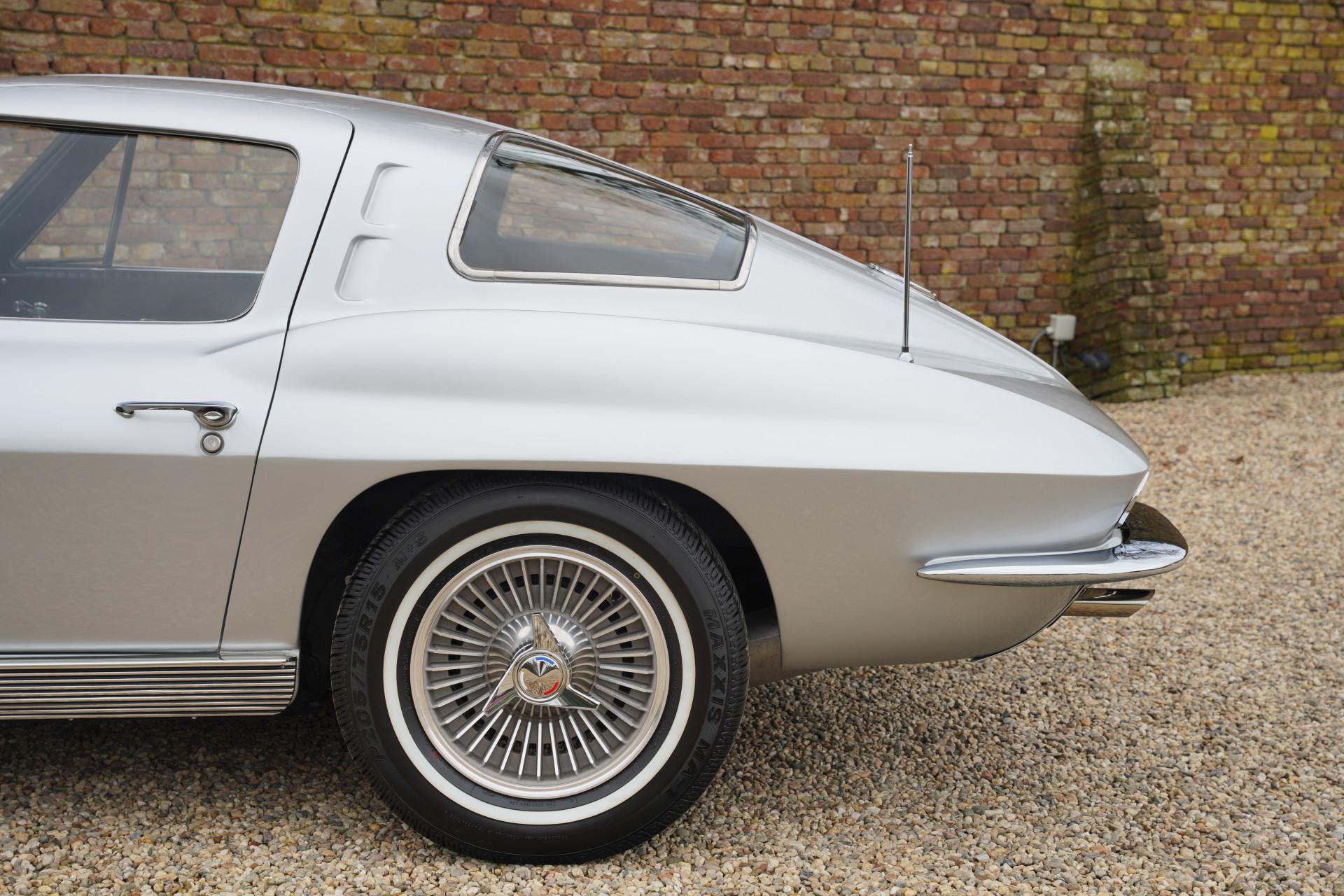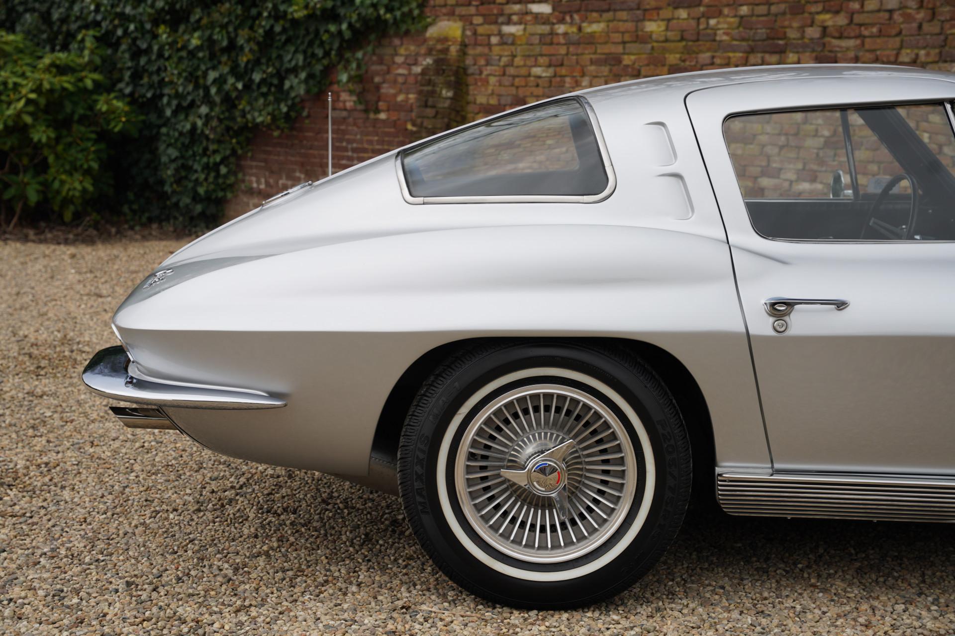 The Chevrolet Corvette is a well-known and sought-after car, and the second-generation Corvette Sting Ray, which we offer here, is a beautiful example of that. At the time, the new model was considered a 'sexy' aerodynamic design. We still think so! The C2, as this model is also called, received a completely redesigned chassis, and this was the first Corvette with independent suspension, developed by Zora Arkus-Duntov. Also, new was the very first production of the Corvette coupe, which was immediately recognisable by its split rear window, hence the name 'split-window'. 1963 was the only year that Chevrolet equipped the Corvette with this now famous rear window, so it is obvious today when we come across a closed Corvette with a 'split-window' that it is from 1963.