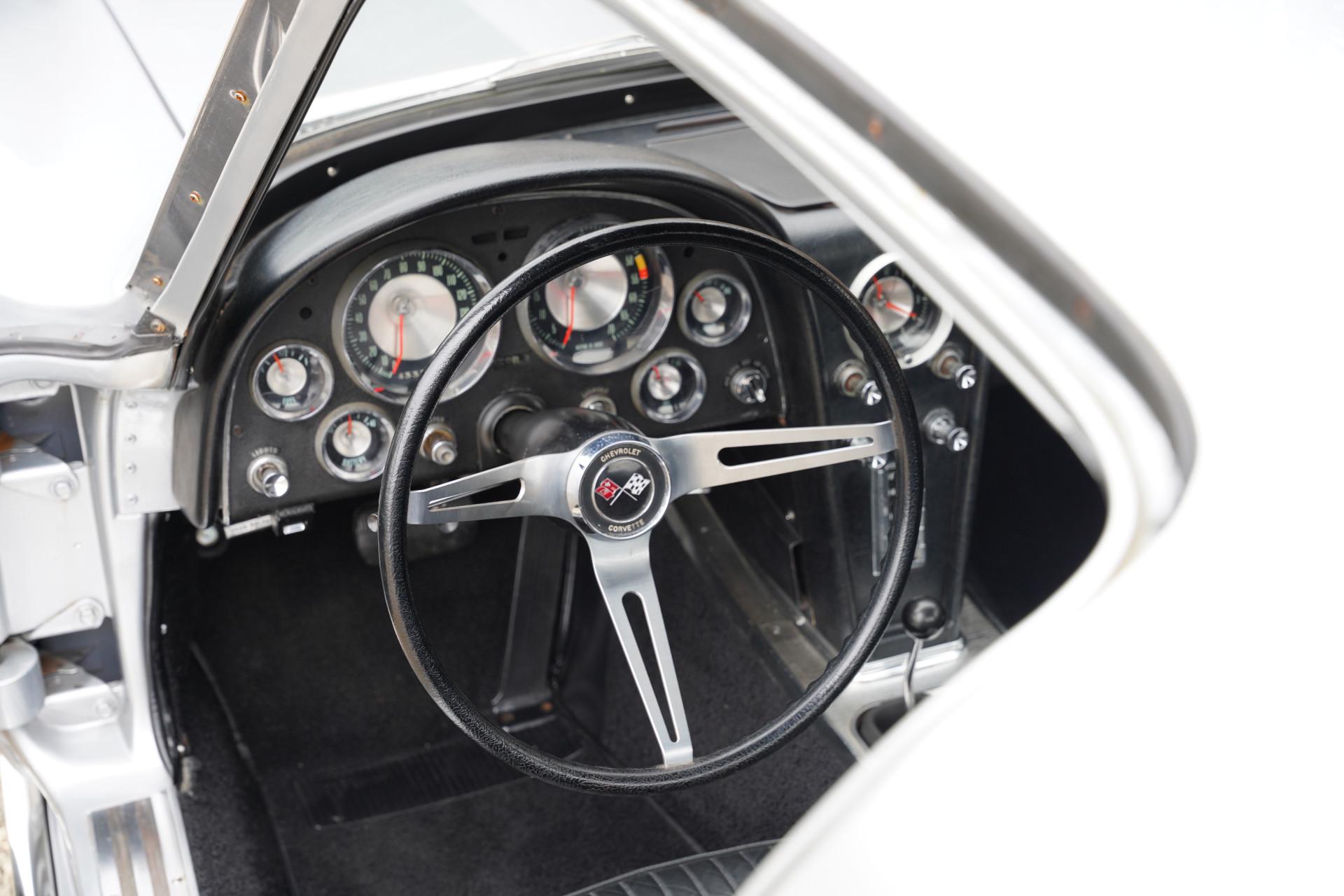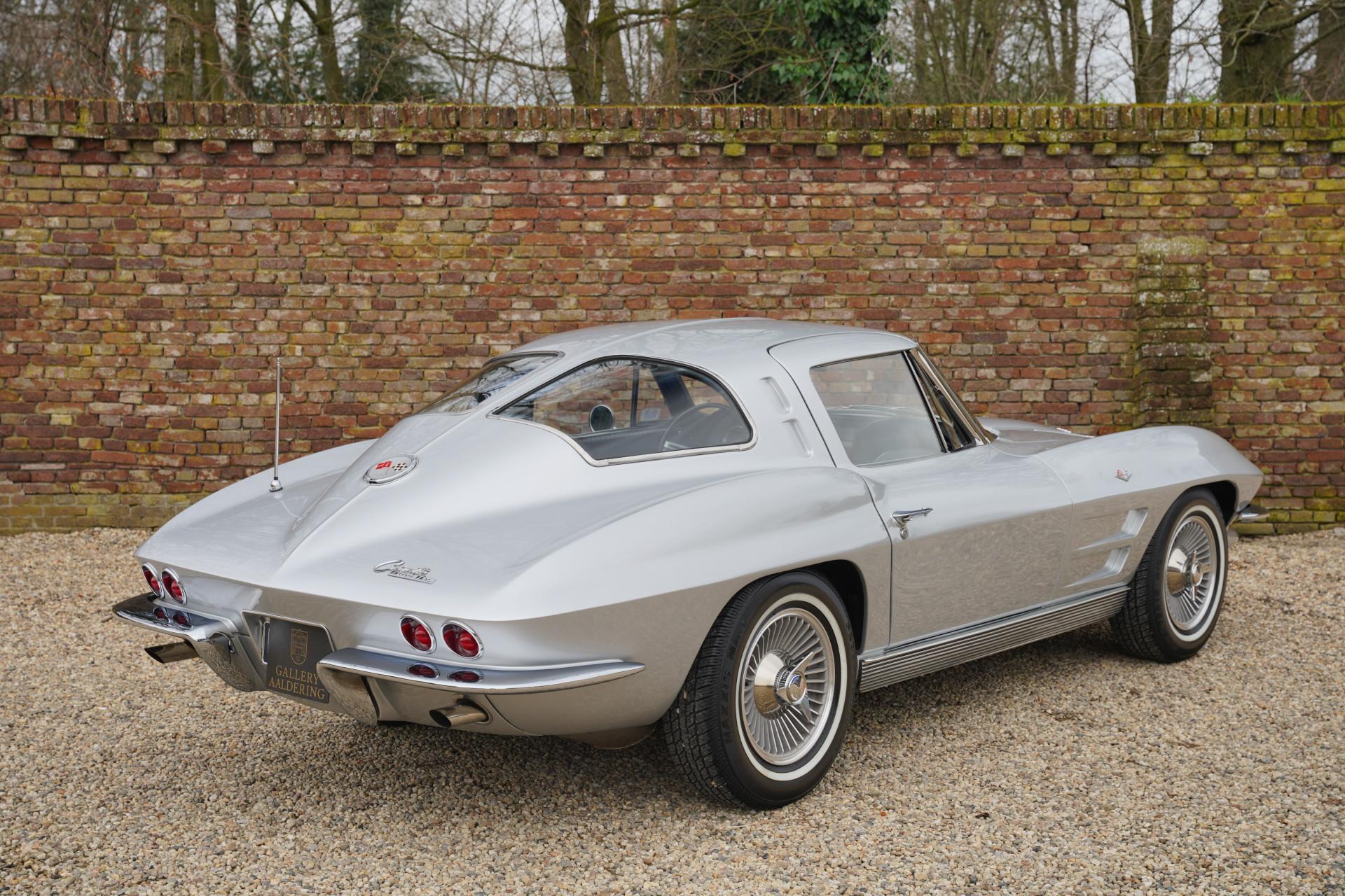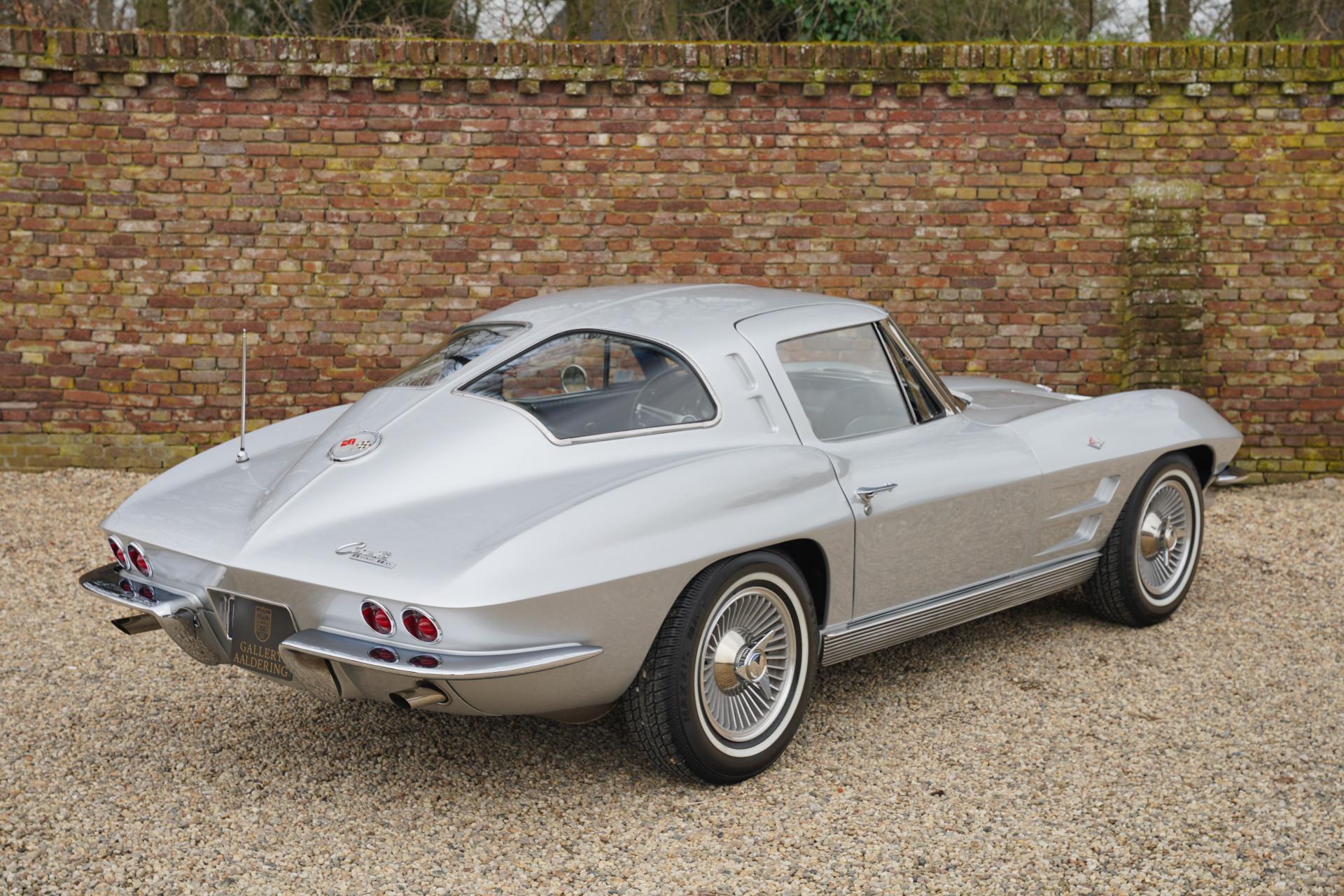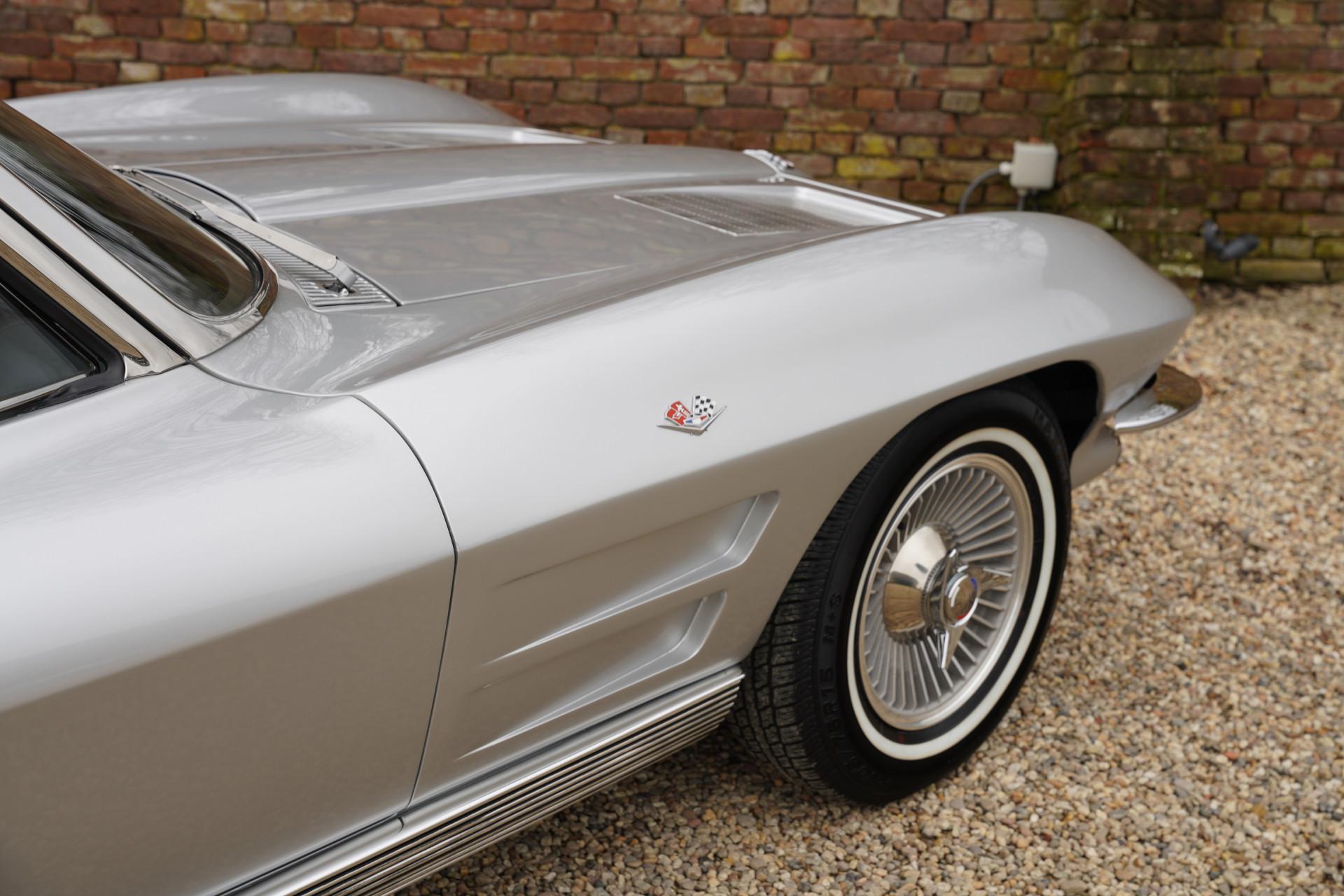 The Chevrolet Corvette is a well-known and sought-after car, and the second-generation Corvette Sting Ray, which we offer here, is a beautiful example of that. At the time, the new model was considered a 'sexy' aerodynamic design. We still think so! The C2, as this model is also called, received a completely redesigned chassis, and this was the first Corvette with independent suspension, developed by Zora Arkus-Duntov. Also, new was the very first production of the Corvette coupe, which was immediately recognisable by its split rear window, hence the name 'split-window'. 1963 was the only year that Chevrolet equipped the Corvette with this now famous rear window, so it is obvious today when we come across a closed Corvette with a 'split-window' that it is from 1963.