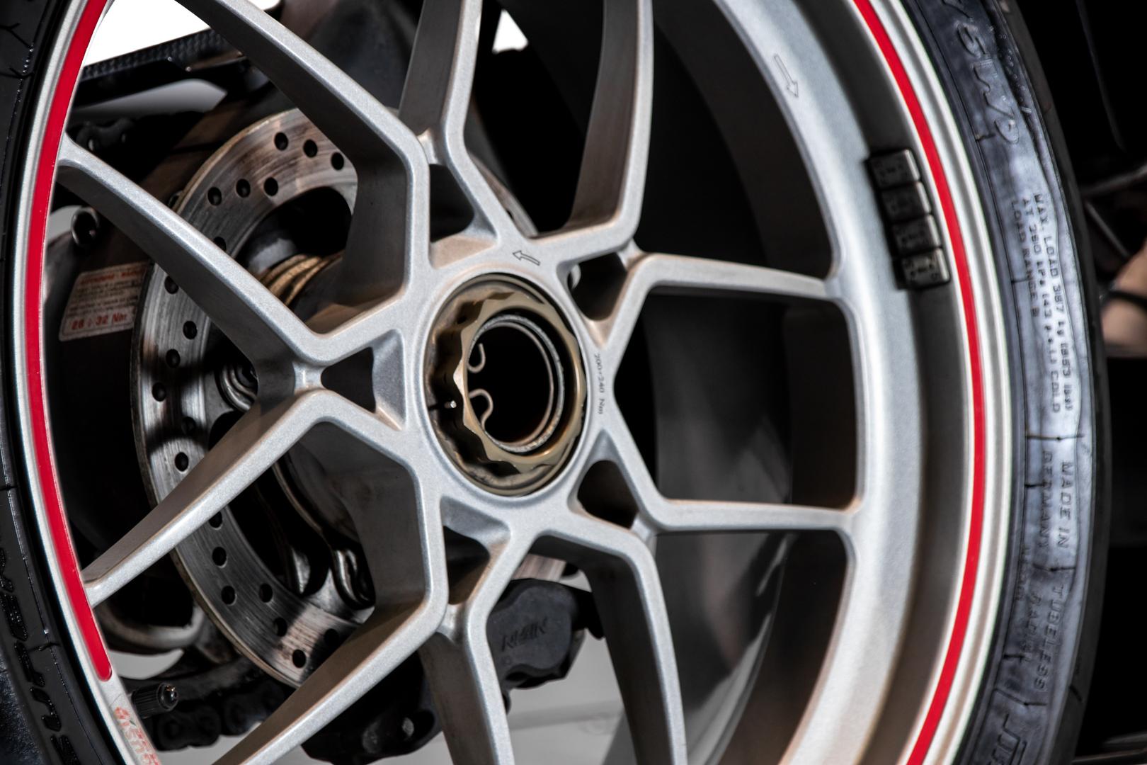 Una piccola targa in argento sulla testa di sterzo indica il numero e la sigla del velivolo a cui ognuna delle moto è associata.