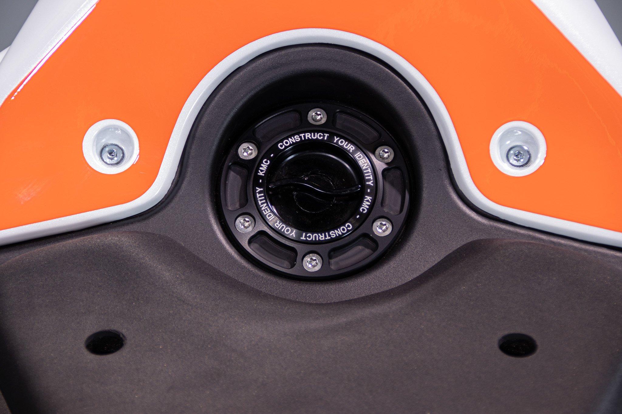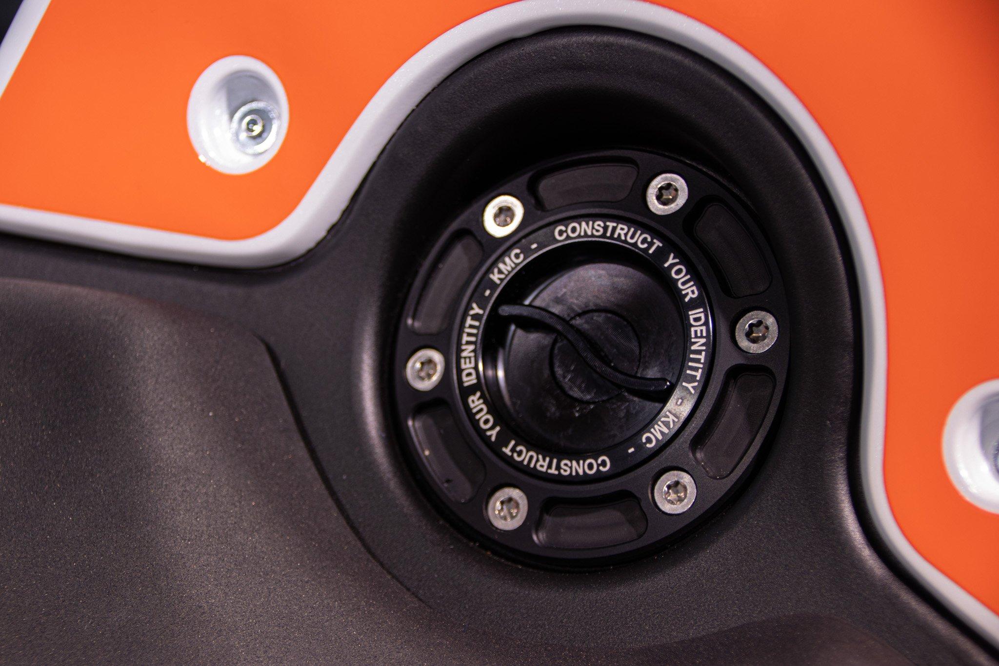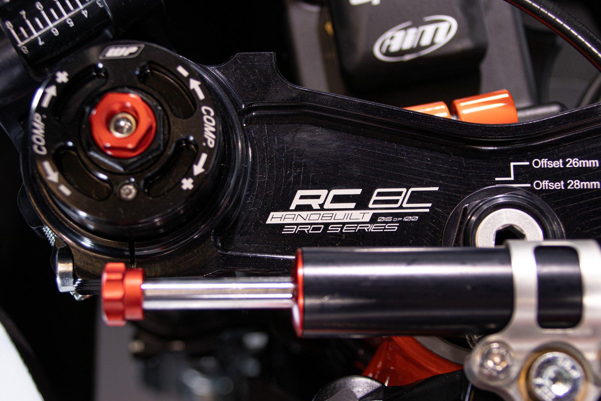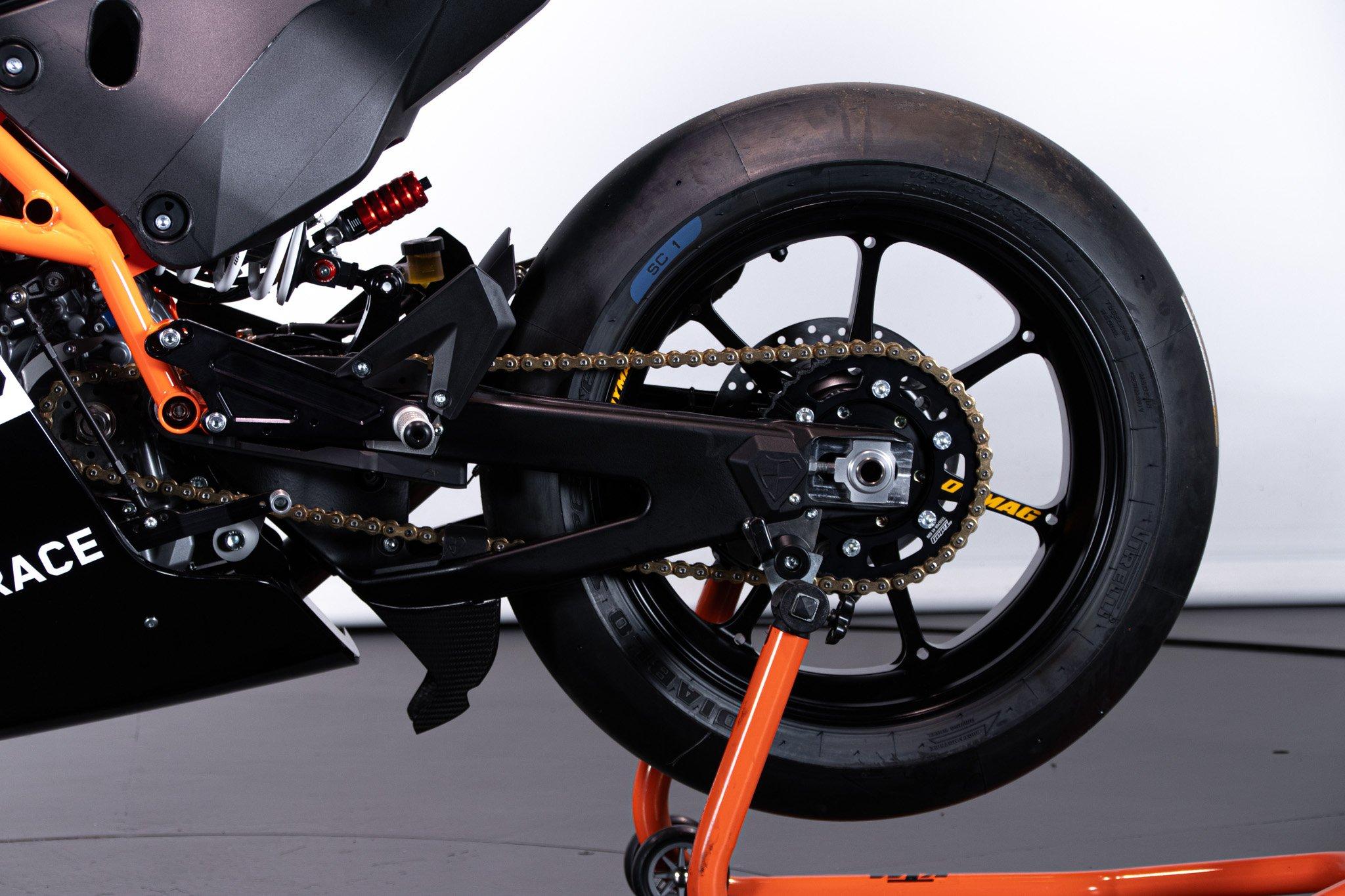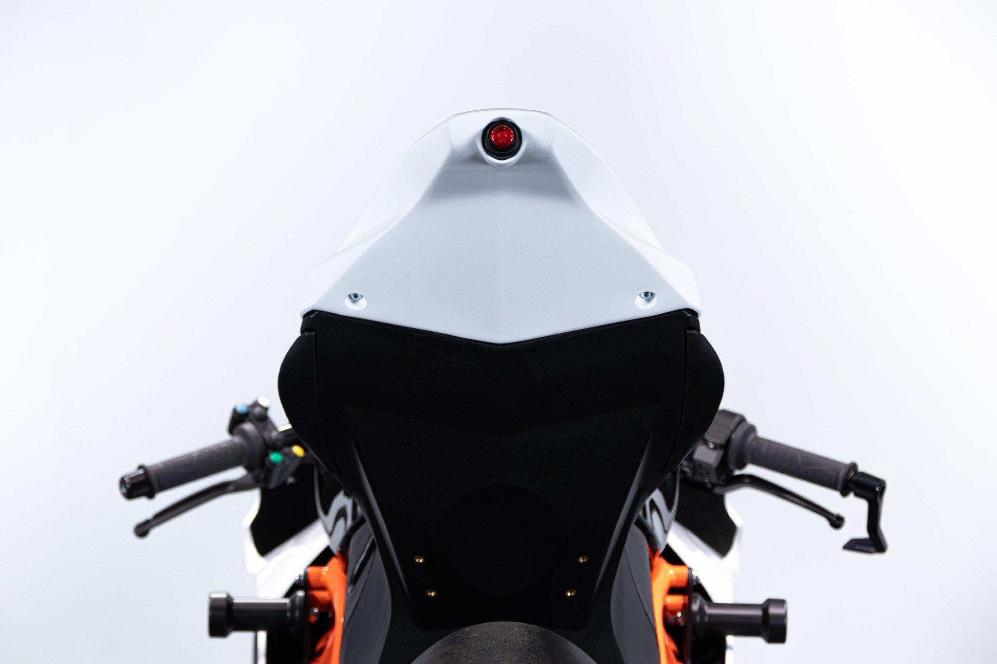 "Built in only 100 units, the KTM RC 8C is the perfect embodiment of the 'Ready to Race' slogan. Born for racing and a result of KTM's track experience, this model is racing in every detail: • Aerodynamic kit, front wings, 'spoon' on the swingarm, fairings made of fiberglass reinforced with carbon and Kevlar; • Engine and performance: 889cc twin-cylinder producing 135 hp at 12,000 rpm, oversized radiators, and many engine parts made of titanium; • Chassis and suspension: latest generation WP suspension, forged aluminum wheels, and the classic orange tubular frame (chrome-molybdenum); • Rear-integrated fuel tank; • Weighs only 142 kg! One of the last units available on the market, for KTM enthusiasts and all lovers of extreme performance; the result of the collaboration between Ruote da Sogno and Fani Motors."
