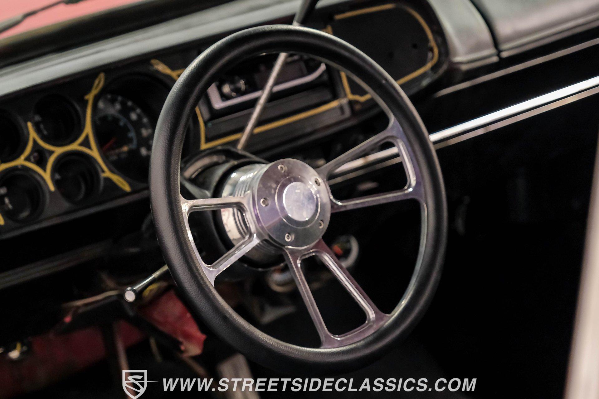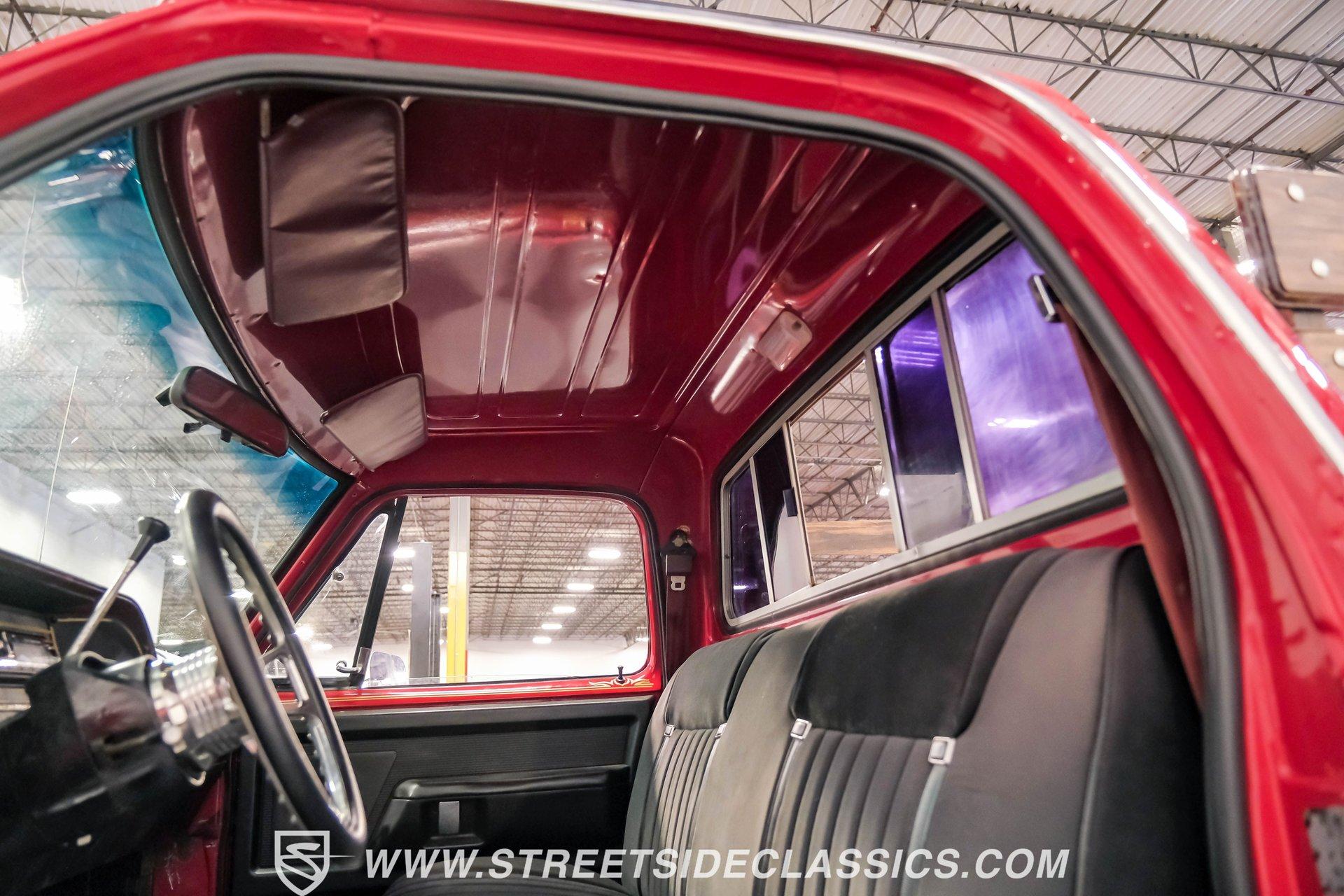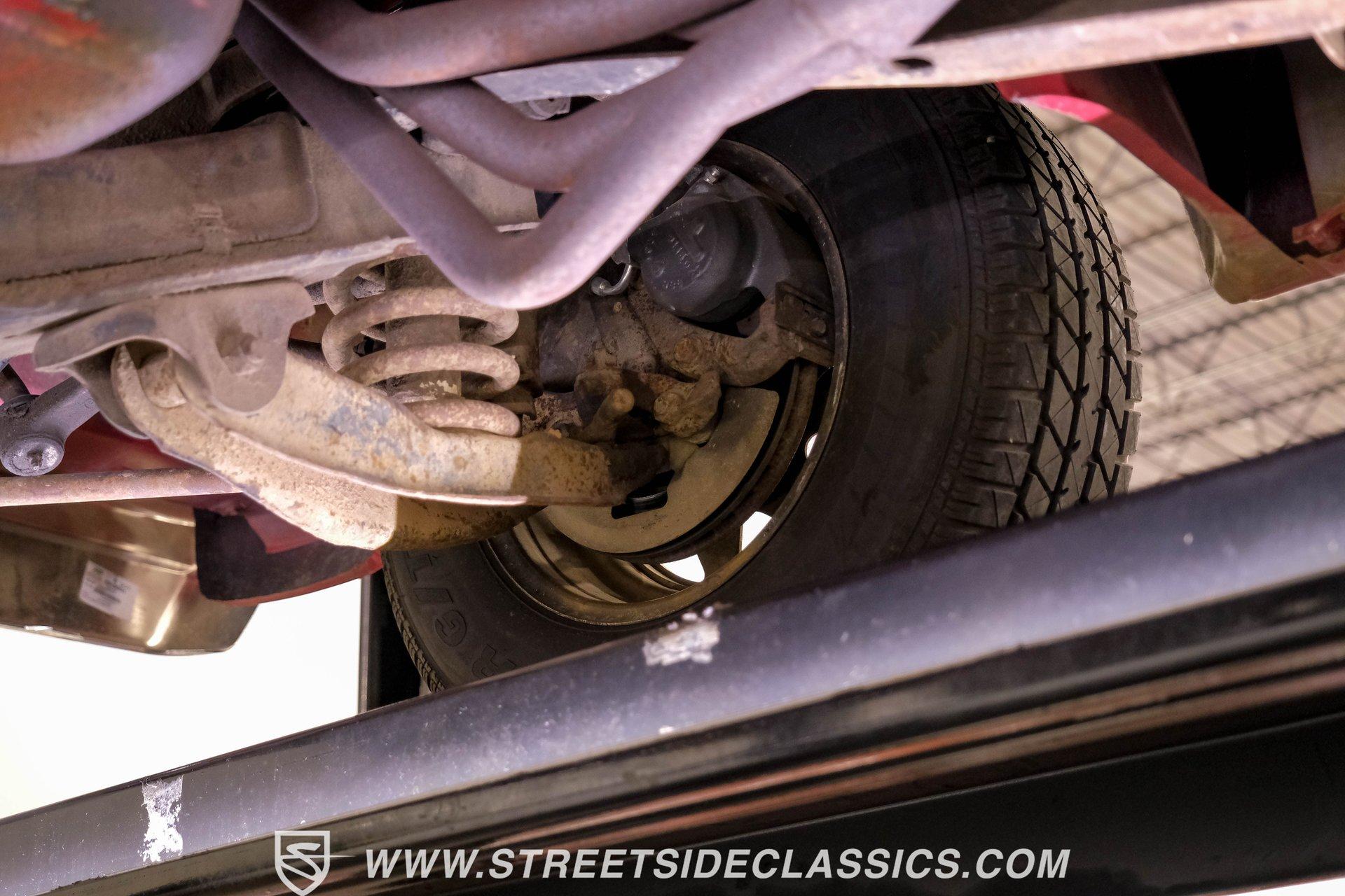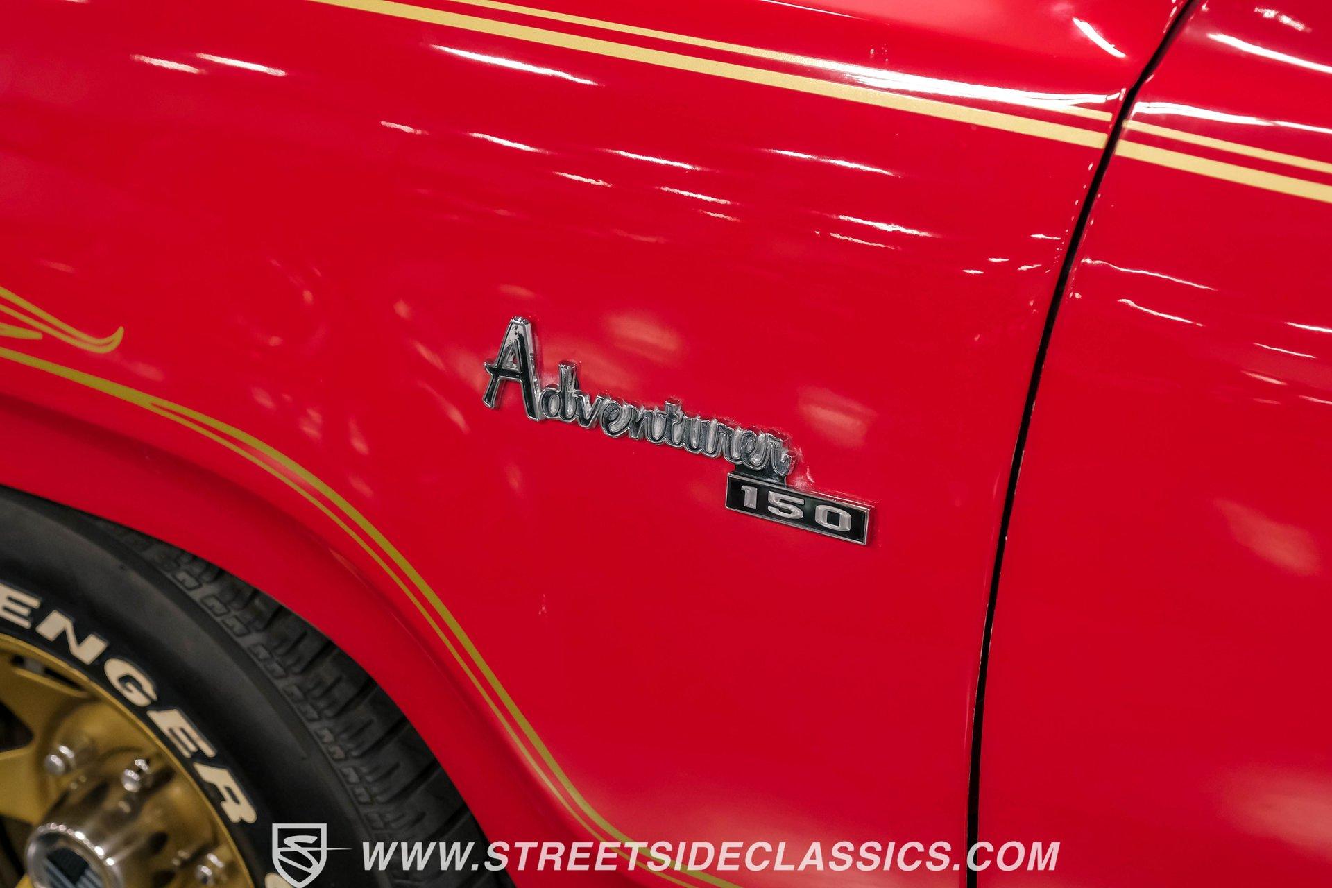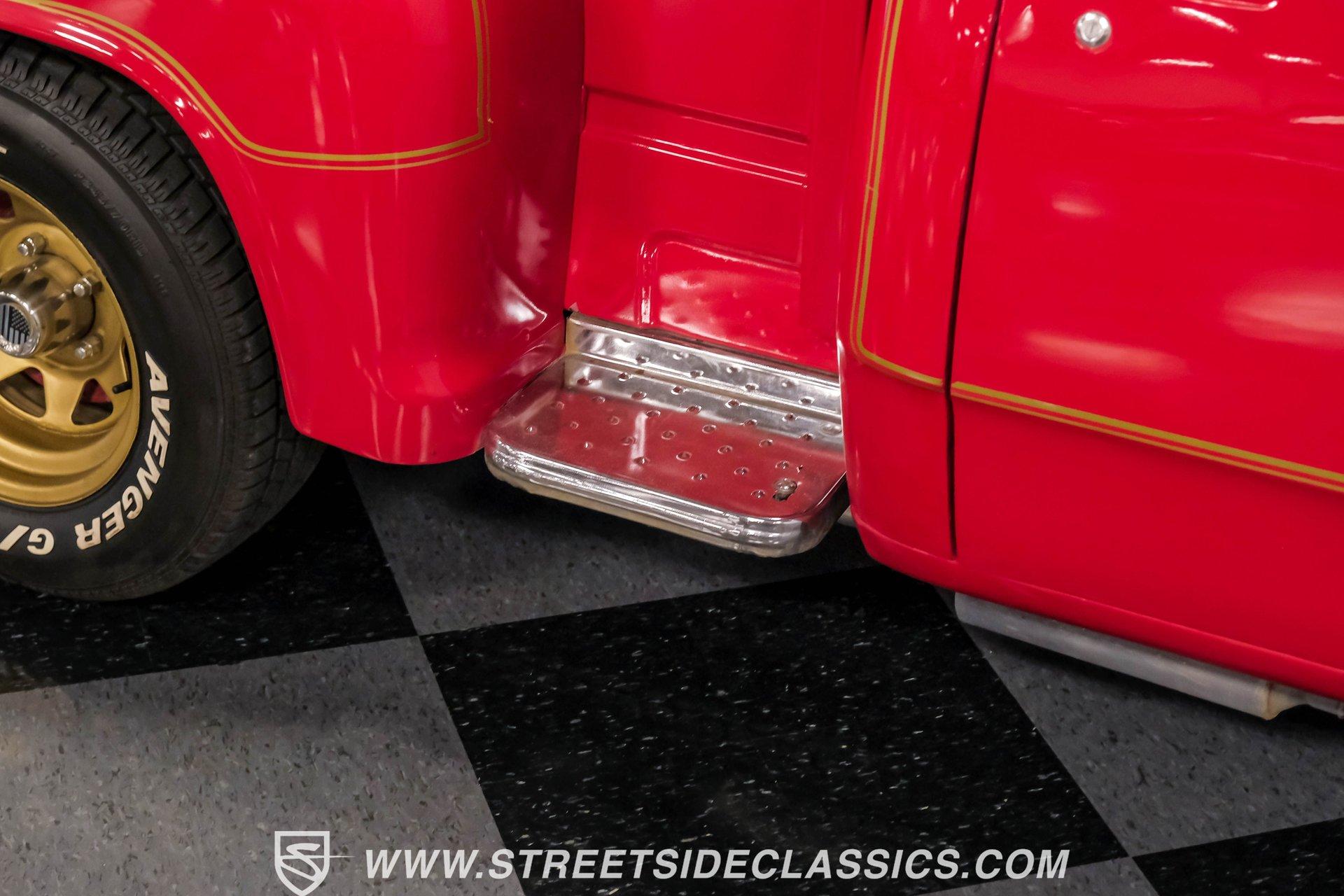 This 1979 Dodge D150 Warlock Tribute showcases a bold red paint job. Gold decals adorn the body, paying tribute to the iconic Warlock design. The truck rolls on 15" gold-painted rims wrapped in Avenger G/T 235/70R15 tires. A real wood bed adds authentic utility, while a sliding rear window and new front bumper complete the exterior upgrades. This D150's transformation from stock to custom creates a unique blend of classic truck styling and modern flair. Inside, the D150 features a black cloth bench seat accented by maroon seatbelts. An aftermarket steering wheel provides a firm grip for the driver. The dash sports yellow pinstriping, adding a custom touch to the interior. Black carpet and door panels maintain a clean, cohesive look throughout the cabin. For audio enthusiasts, a dual AM/FM radio with USB and AUX ports offers modern connectivity in a vintage setting. The engine bay houses a 360 V8 engine with an RV cam, a significant upgrade from the original 318. An Edelbrock 4-barrel carburetor feeds the engine while the A727 Torqueflite 3-speed automatic transmission handles gear changes. Power steering eases maneuverability, while power brakes with front discs provide stopping power. A Flowmaster dual exhaust system completes the powertrain upgrades and the suspension features coil springs with shocks up front and a solid axle with leaf springs and shocks in the rear. HIGHLIGHTS: 360 V8 Engine (originally 318) Edelbrock 4-Barrel Carburetor RV Cam A727 Torqueflite 3-Speed Automatic Transmission Power Steering Power Front Disc Brakes Flowmaster Dual Exhaust Red Paint w/ Gold Warlock Tribute Decals 15" Wheels in Avenger G/T 235/70R15 Tires Real Wood Bed Sliding Rear Window New Front Bumper Black Interior with Bench Seat Aftermarket Steering Wheel Dual AM/FM Radio with USB and AUX Ports This 1979 Dodge D150 Warlock Tribute combines classic truck styling with modern upgrades. With its powerful 360 V8, custom exterior, and comfortable interior, it's ready for the road or show. Call today!