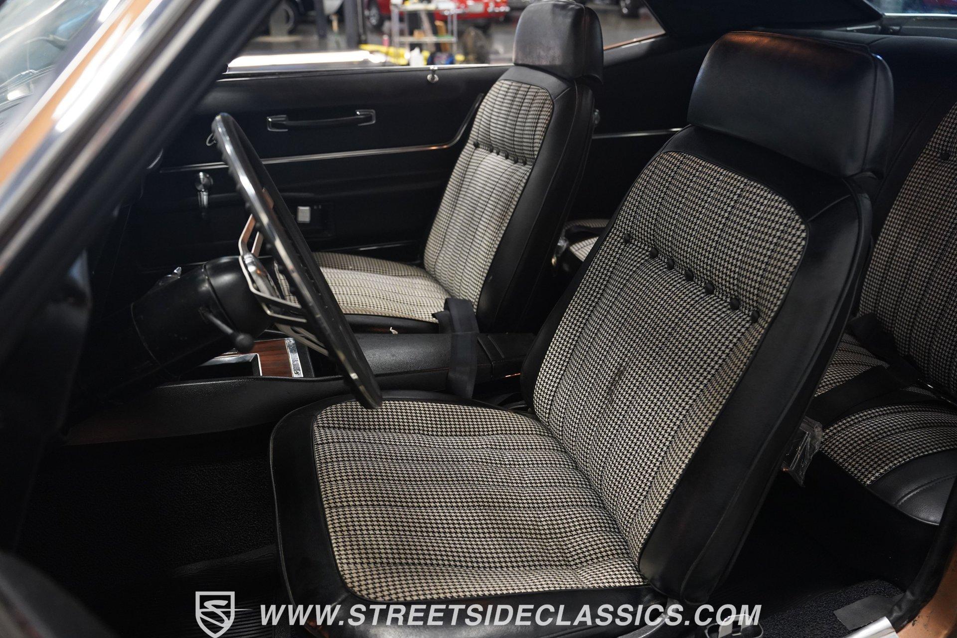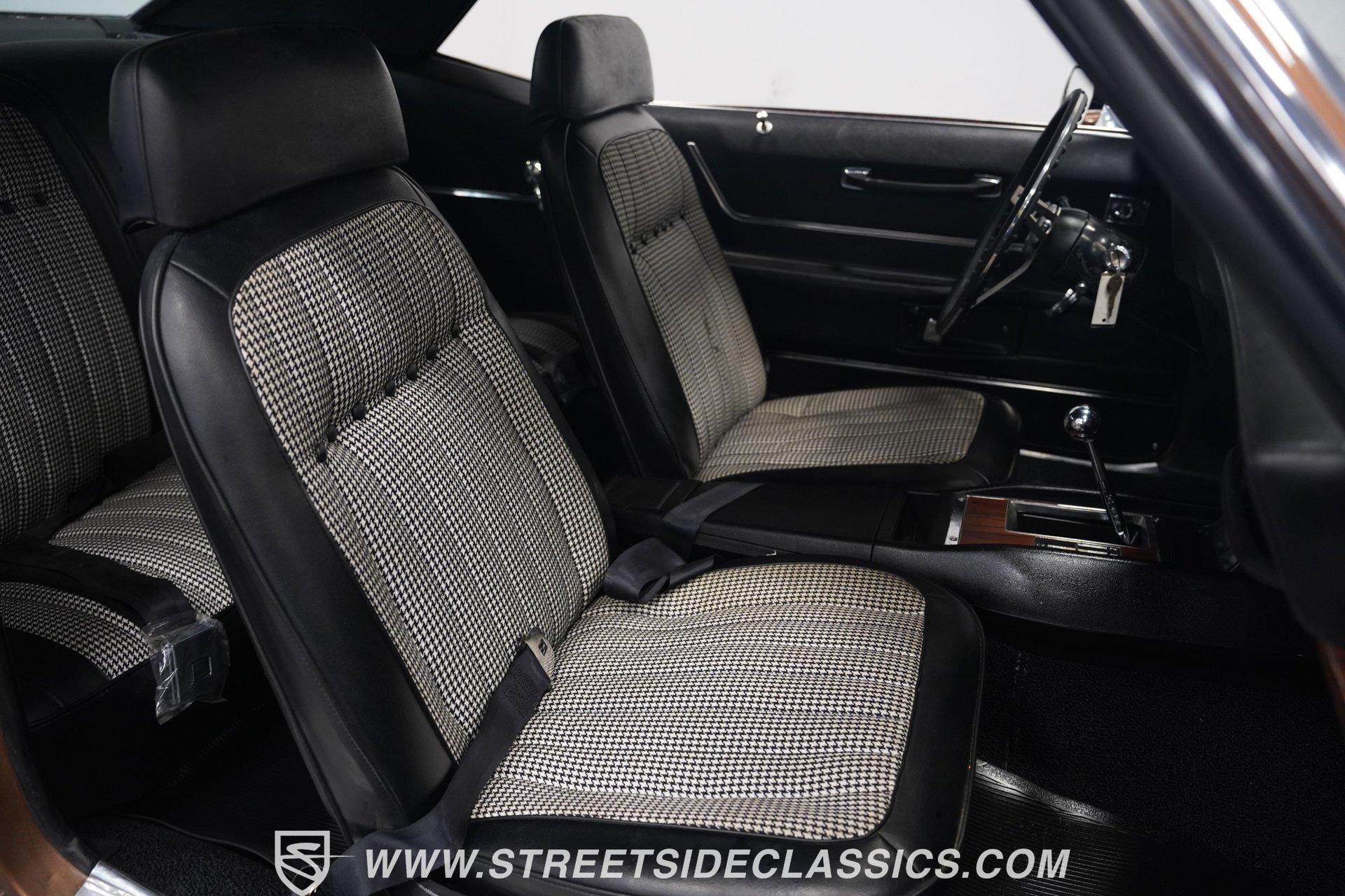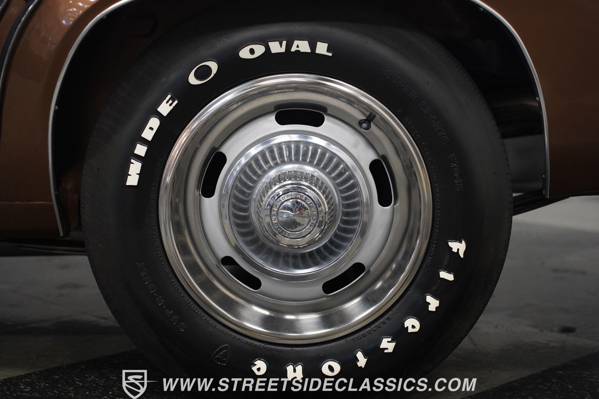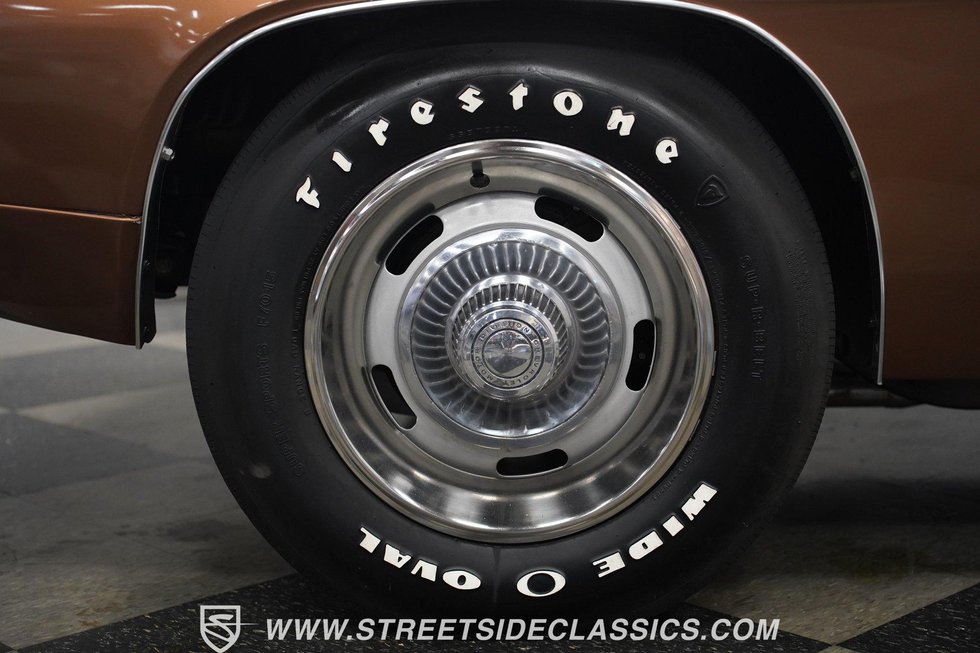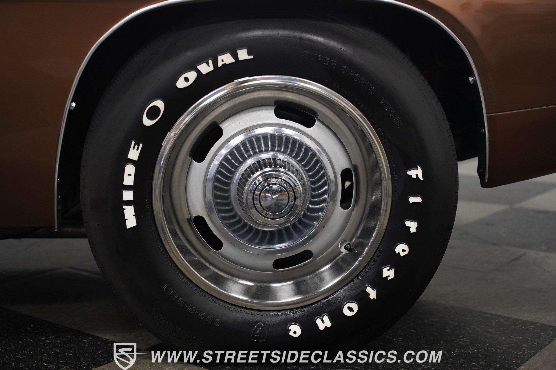 This 1969 Chevrolet Camaro SS 396 wears a bronze coat that reflects sunlight with intensity. Black stripes run the length of the body, emphasizing its muscular lines. The black vinyl top adds a touch of class, while SS badging and 396 emblems on the fenders announce its performance pedigree. Factory 15-inch hubcaps and F70-15 Coker wide oval bias ply tires complete the period-correct look. Chrome trim outlines the body, highlighting the iconic shape of this classic Chevy muscle car. Inside, black and white houndstooth upholstery creates a bold 1960s atmosphere. The bucket seats look fresh, showcasing the quality restoration. A flawless dash houses the factory gauges, complemented by the original steering wheel. The center console features the 4-speed manual shifter, inviting you to row through the gears. An AM radio sits ready to play your favorite tunes. The condition of the pedals and carpeting further illustrates the interior's excellent preservation. A freshly built big block 396 V8 lives in the engine bay. It's connected to a four-speed Muncie transmission, creating a powertrain that delivers serious muscle. Chrome valve covers and air cleaner add visual appeal. An Edelbrock performer RPM intake topped with a carburetor maximizes performance. Long tube headers feed into a dual exhaust system with FlowMaster mufflers, producing an aggressive sound. Power steering provides easy maneuverability, while power front disc brakes offer strong stopping ability. The 12-bolt rear end with 3.31 gears balances acceleration and cruising potential. HIGHLIGHTS: 396 V8 Engine 4-Speed Muncie Manual Transmission Edelbrock Performer RPM Intake Chrome Valve Covers and Air Cleaner Long Tube Headers Dual Exhaust with FlowMaster Mufflers Power Steering Power Front Disc Brakes 12-Bolt Rear End with 3.31 Gears Bronze Paint Black Vinyl Top Black Stripes SS Badging 396 Fender Emblems 15" Wheels with Factory Hubcaps F70-15 Coker Wide Oval Bias Ply Tires Black and White Houndstooth Upholstery Bucket Seats Center Console 4-Speed Manual Shifter AM Radio This 1969 Chevrolet Camaro SS 396 combines classic muscle car style with big block power. Its bronze paint, houndstooth interior, and potent 396/4-speed drivetrain make it a standout at shows and on the street. Call today!