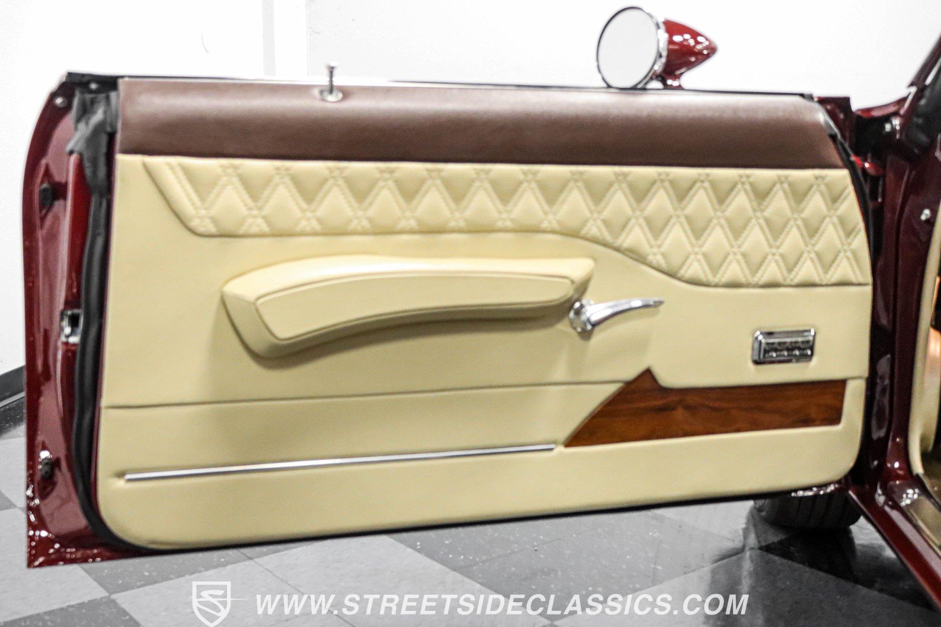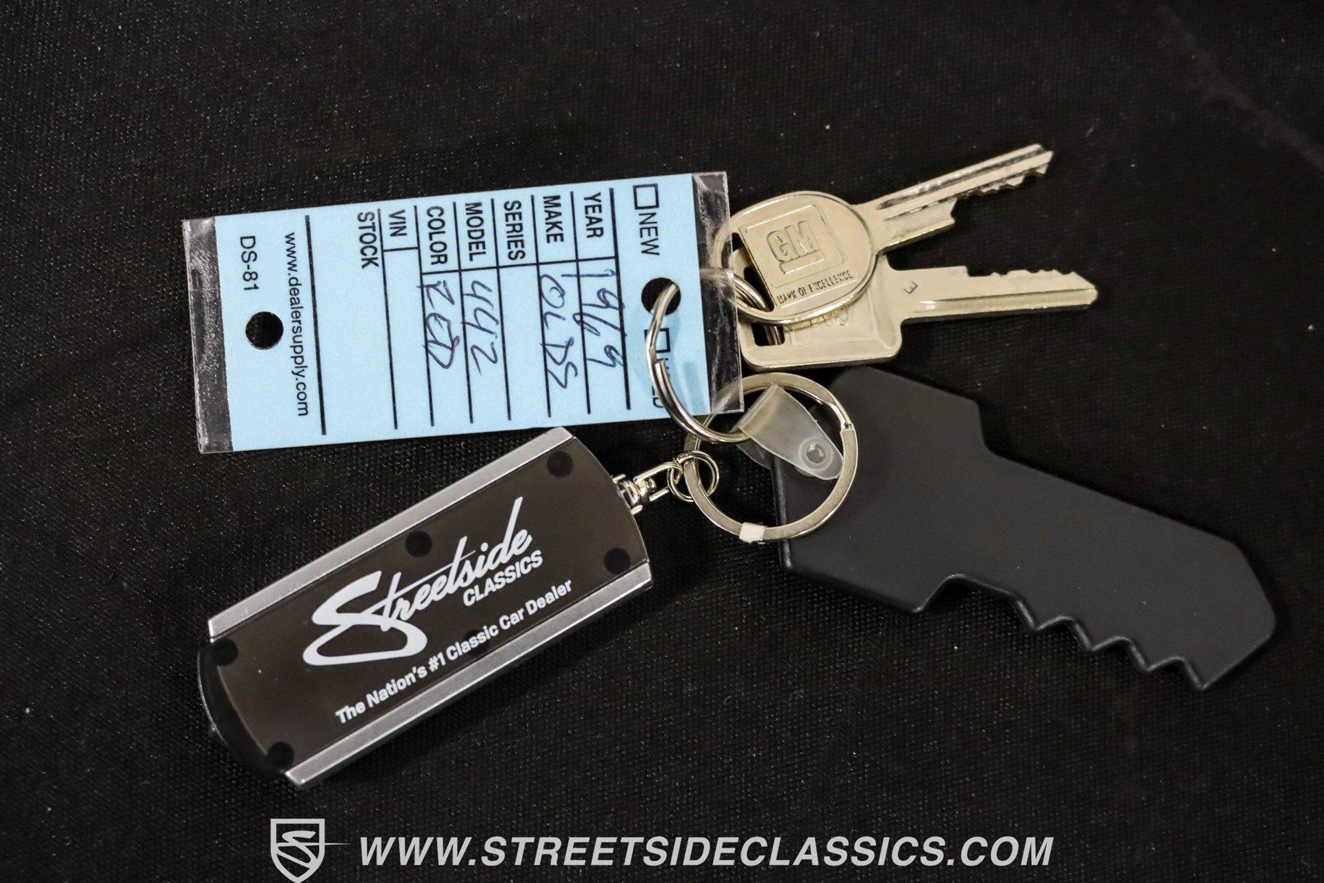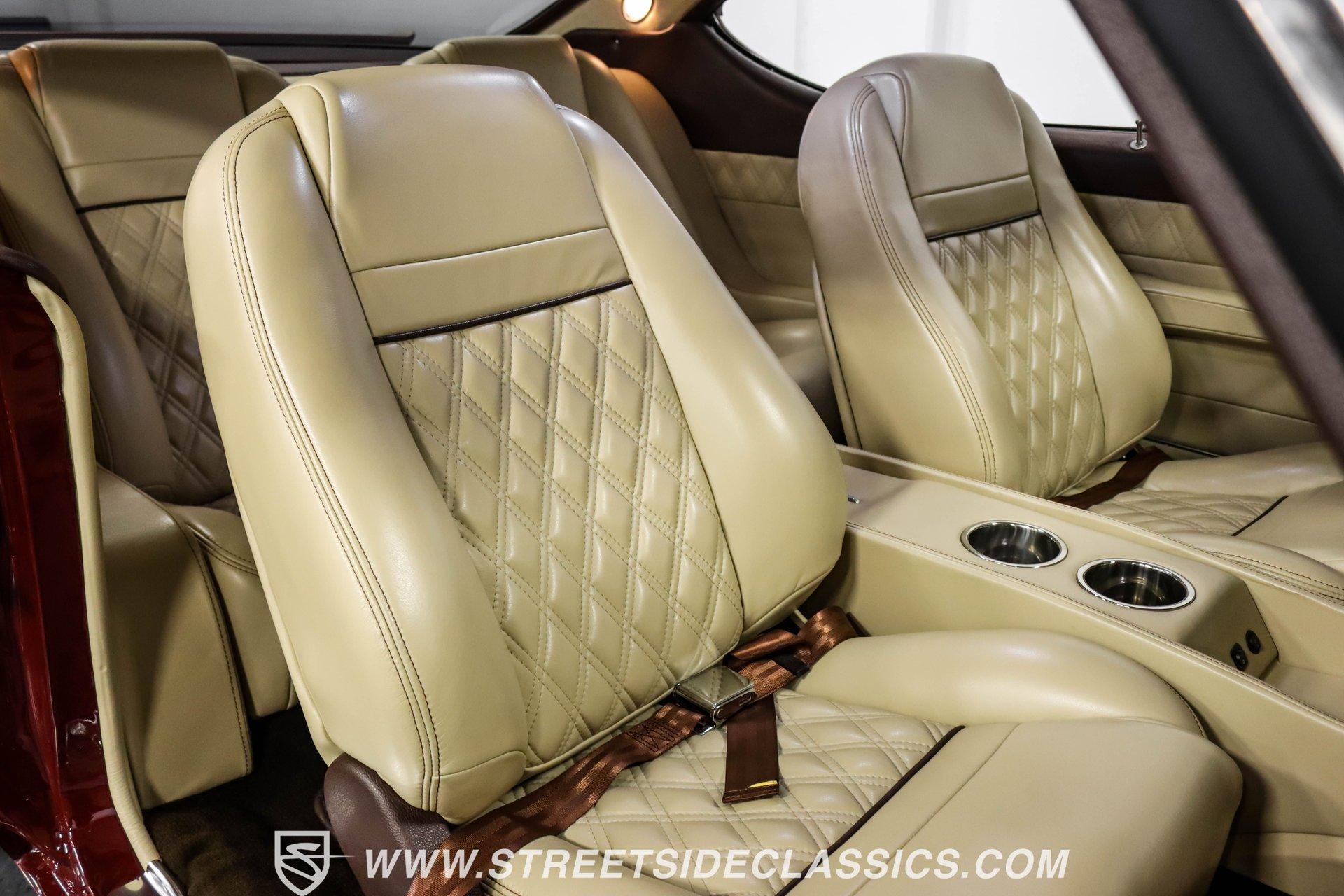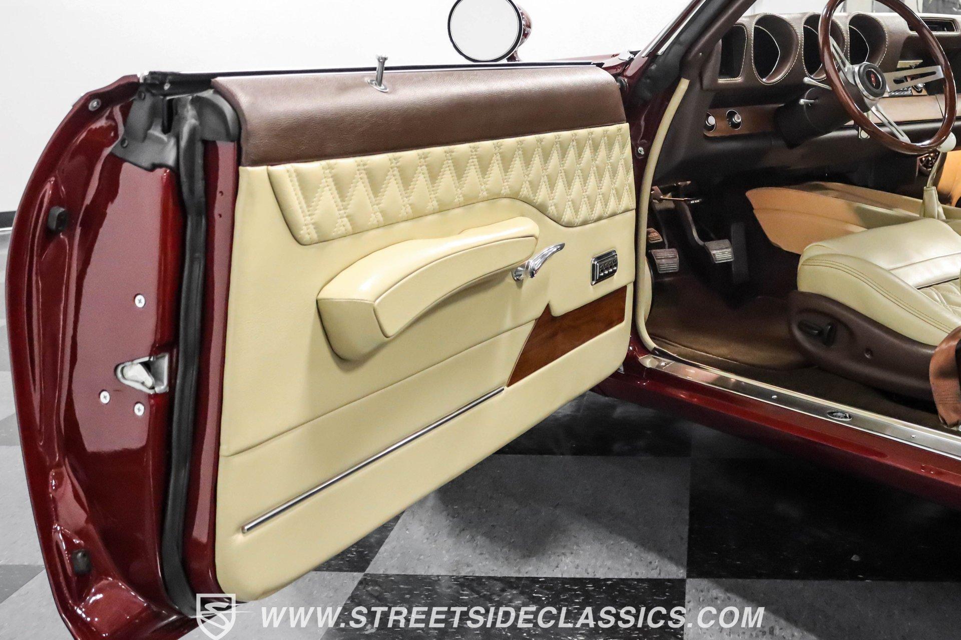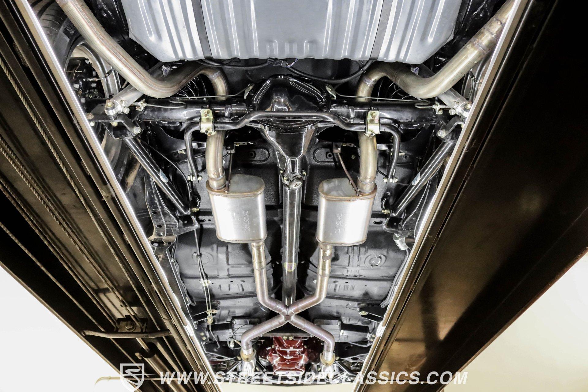 This exceptional 1969 Oldsmobile 442 has received a full frame-off restoration performed by the talented team at House of Hot Rods in Texas and has been driven a mere 826 miles since completion. Finished handsomely in deep Burgundy Metallic with Gold stripes over an arrow-straight body, this classic Oldsmobile is stunning. Rolling on chrome Foose wheels wrapped with Michelin tires staggered 215/50ZR17 front and 245/50ZR18 rear for the perfect stance, this car commands attention from its glistening chrome bumpers to its trunk-mounted rear wing. The interior is equally impressive, featuring comfortable, power adjustable, custom leather upholstered bucket seats front and rear with a custom-crafted full-length center console with beverage holders. The door panels are custom designed with wood inserts and the contrasting light brown dash pad is custom stitched. The dash is fitted with full instrumentation by Dakota Digital, Vintage air conditioning controls and a retro radio with Bluetooth. Additionally, there are power windows, a tilt steering column and a three-spoke wood-rimmed steering wheel. The trunk is completely trimmed to a high standard to match the beautiful interior. HIGHLIGHTS: Spectacular full frame-off restoration by House of Hot Rods in Texas 826 miles since build 455 Oldsmobile engine Tremec 5-speed Edelbrock aluminum heads and intake Holley Sniper EFI Be Cool aluminum radiator Foose wheels Vintage air conditioning Custom leather interior including detailed trunk Under the hood is a potent 455 cubic inch Oldsmobile engine paired with a Tremec 5-speed manual transmission. The engine features Edelbrock aluminum heads, Edelbrock aluminum high-rise intake manifold, Holley Sniper electronic fuel injection, CVF billet brackets, serpentine belt system, Be Cool aluminum radiator and electric fan, plus long-tube headers and a dual exhaust system with an X-pipe that rumbles back past Magnaflow mufflers that exit through chrome trumpet exhaust tips that are tucked up neatly in the factory 442 rear bumper exhaust cutouts. The engine bay is spectacular, with high-gloss body-color fender liners, air cleaner, firewall, engine block, oil pan and transmission. Other details include billet hood hinges and body-colored valve covers custom painted with "Olds 455". The underside of this 442 is as detailed as the rest of the car with high-gloss finishes and numerous upgrades that include a complete Wilwood 4-wheel disc brake system, including booster and master cylinder as well as drilled and slotted rotors. This classic handles great thanks to a CPP Pro Touring suspension kit that includes tubular control arms and sway bars front and rear. No expense was spared to make this 1969 Oldsmobile 442 restomod one of the best anywhere. Call today!
