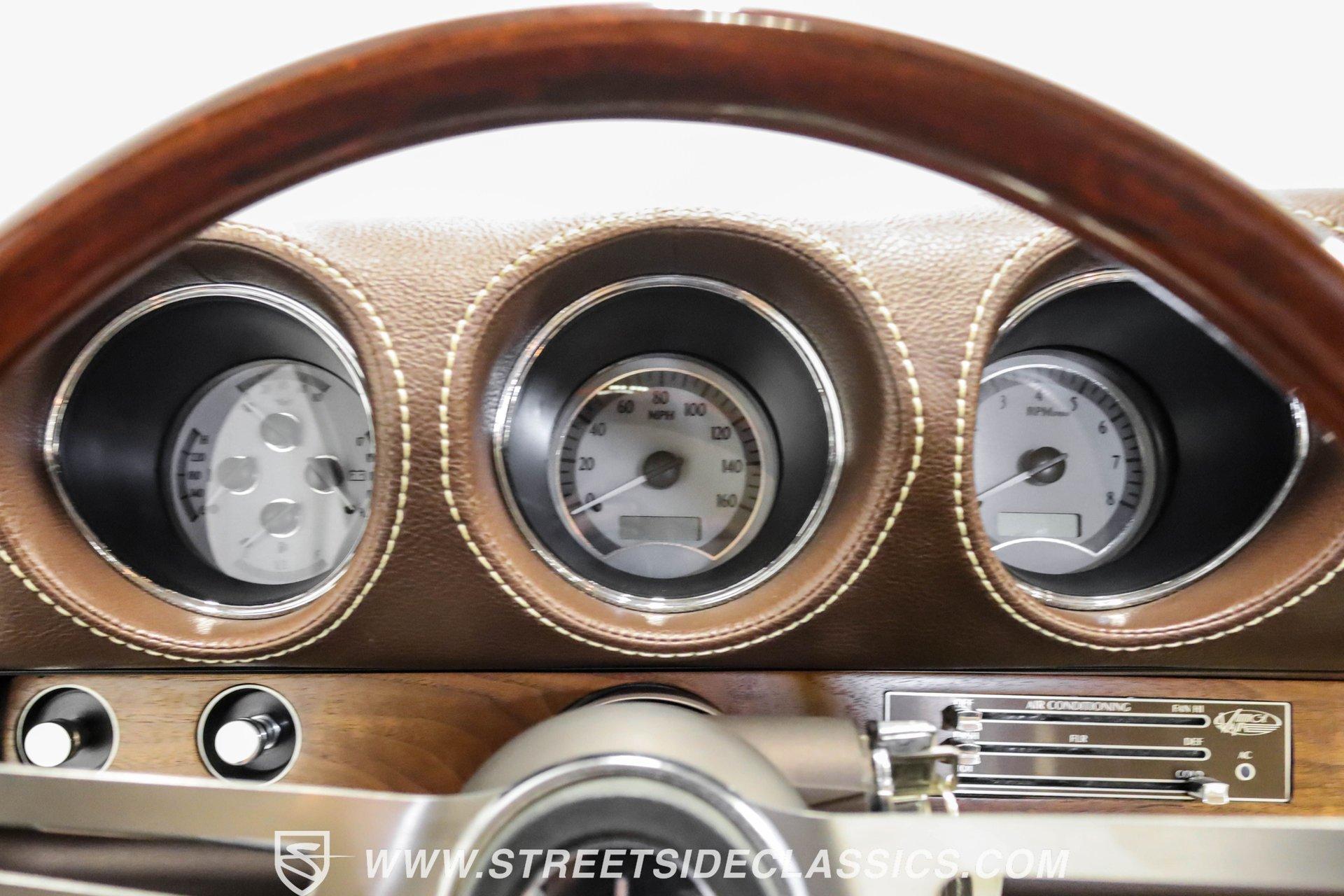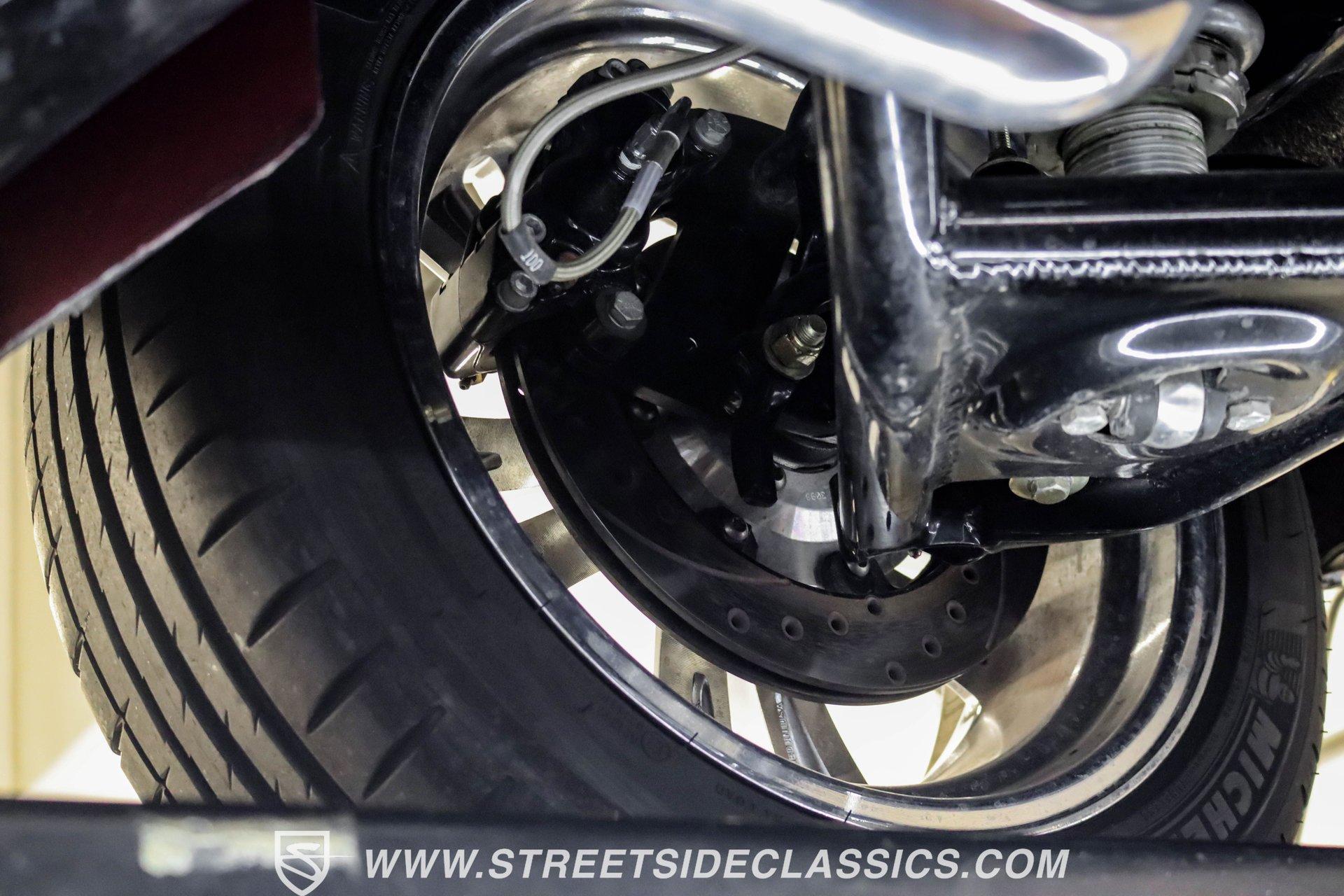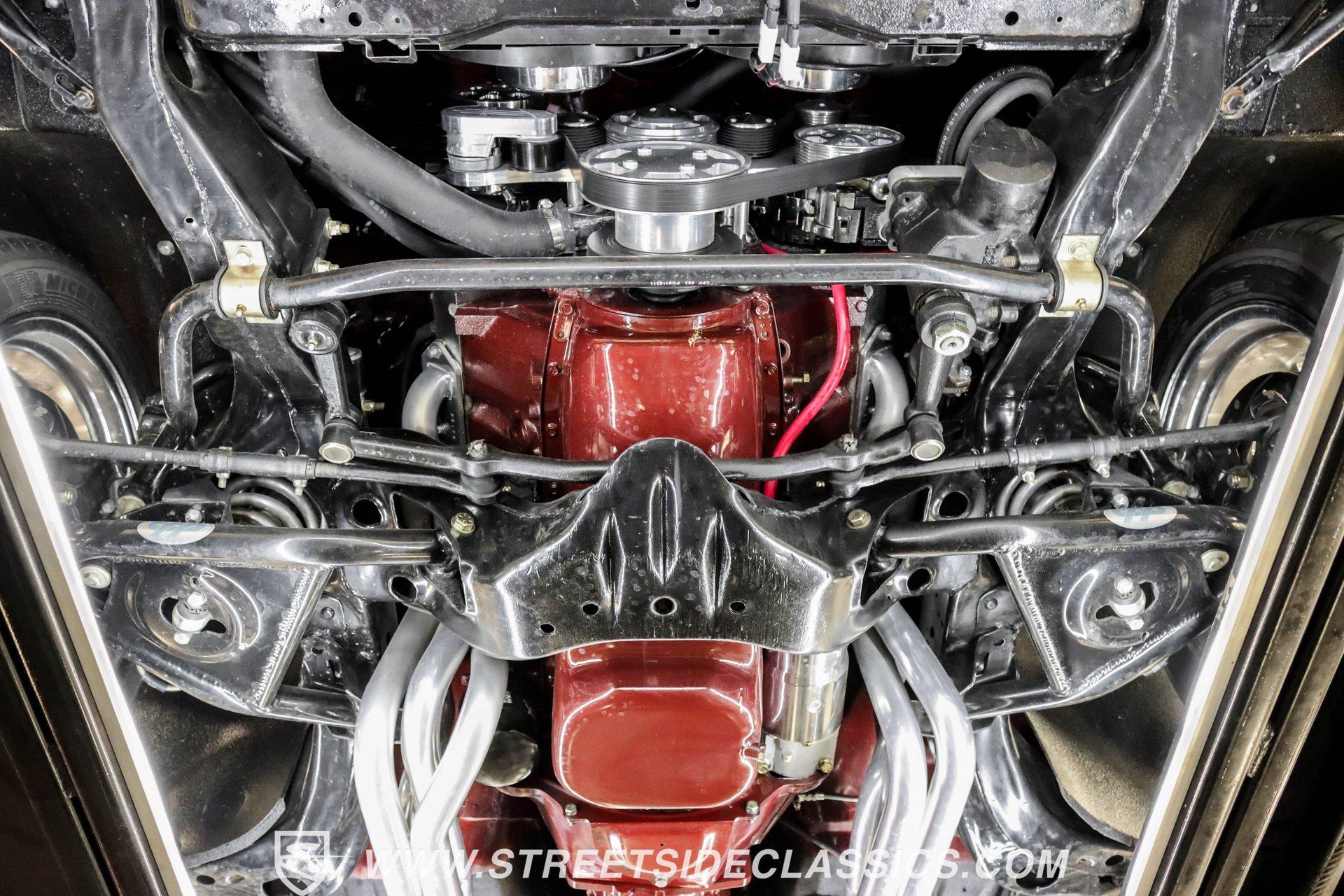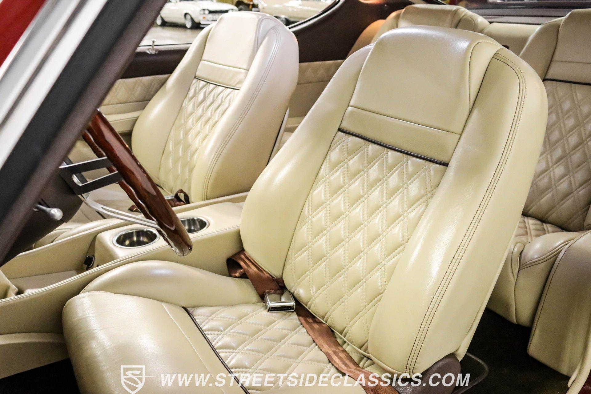 This exceptional 1969 Oldsmobile 442 has received a full frame-off restoration performed by the talented team at House of Hot Rods in Texas and has been driven a mere 826 miles since completion. Finished handsomely in deep Burgundy Metallic with Gold stripes over an arrow-straight body, this classic Oldsmobile is stunning. Rolling on chrome Foose wheels wrapped with Michelin tires staggered 215/50ZR17 front and 245/50ZR18 rear for the perfect stance, this car commands attention from its glistening chrome bumpers to its trunk-mounted rear wing. The interior is equally impressive, featuring comfortable, power adjustable, custom leather upholstered bucket seats front and rear with a custom-crafted full-length center console with beverage holders. The door panels are custom designed with wood inserts and the contrasting light brown dash pad is custom stitched. The dash is fitted with full instrumentation by Dakota Digital, Vintage air conditioning controls and a retro radio with Bluetooth. Additionally, there are power windows, a tilt steering column and a three-spoke wood-rimmed steering wheel. The trunk is completely trimmed to a high standard to match the beautiful interior. HIGHLIGHTS: Spectacular full frame-off restoration by House of Hot Rods in Texas 826 miles since build 455 Oldsmobile engine Tremec 5-speed Edelbrock aluminum heads and intake Holley Sniper EFI Be Cool aluminum radiator Foose wheels Vintage air conditioning Custom leather interior including detailed trunk Under the hood is a potent 455 cubic inch Oldsmobile engine paired with a Tremec 5-speed manual transmission. The engine features Edelbrock aluminum heads, Edelbrock aluminum high-rise intake manifold, Holley Sniper electronic fuel injection, CVF billet brackets, serpentine belt system, Be Cool aluminum radiator and electric fan, plus long-tube headers and a dual exhaust system with an X-pipe that rumbles back past Magnaflow mufflers that exit through chrome trumpet exhaust tips that are tucked up neatly in the factory 442 rear bumper exhaust cutouts. The engine bay is spectacular, with high-gloss body-color fender liners, air cleaner, firewall, engine block, oil pan and transmission. Other details include billet hood hinges and body-colored valve covers custom painted with "Olds 455". The underside of this 442 is as detailed as the rest of the car with high-gloss finishes and numerous upgrades that include a complete Wilwood 4-wheel disc brake system, including booster and master cylinder as well as drilled and slotted rotors. This classic handles great thanks to a CPP Pro Touring suspension kit that includes tubular control arms and sway bars front and rear. No expense was spared to make this 1969 Oldsmobile 442 restomod one of the best anywhere. Call today!