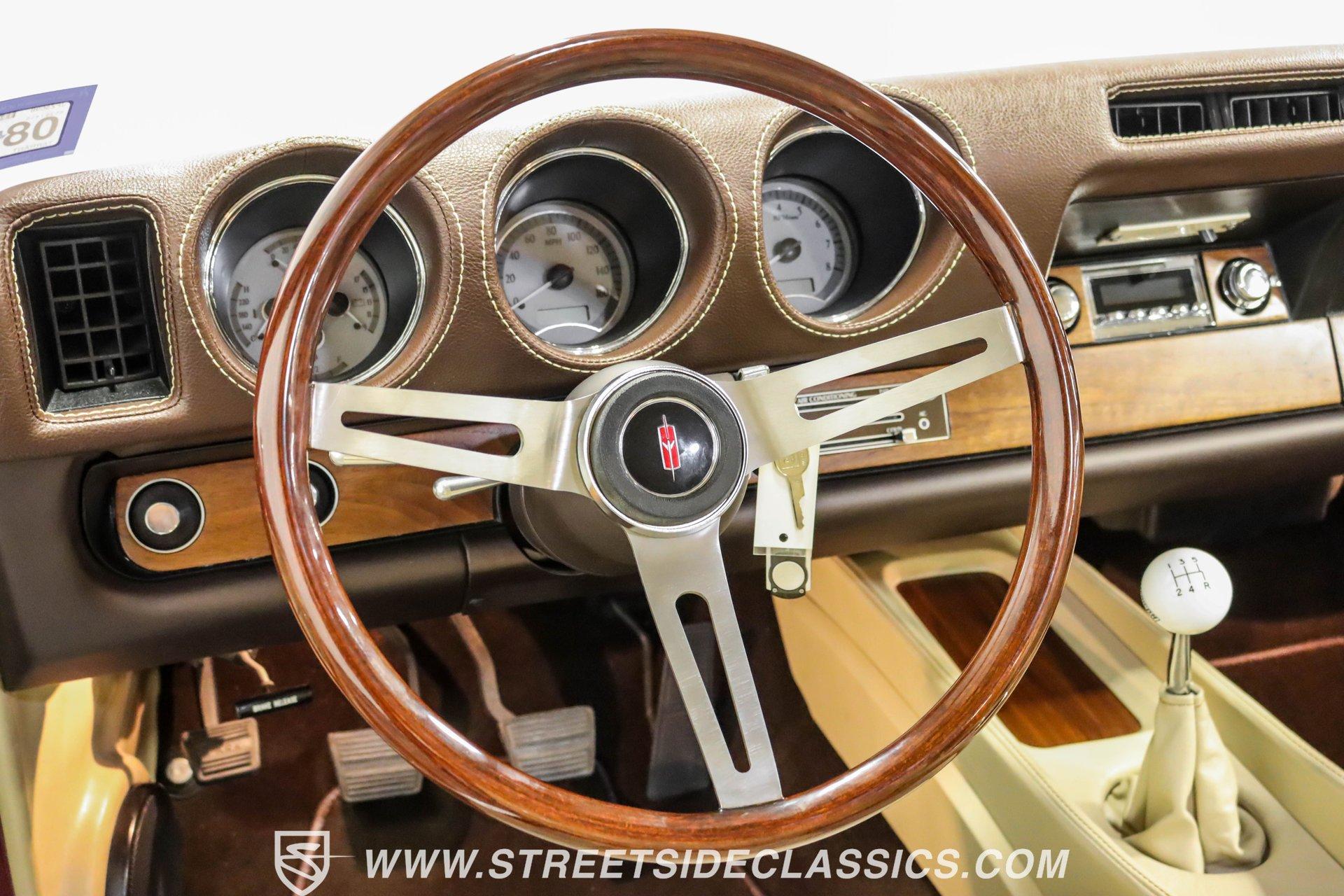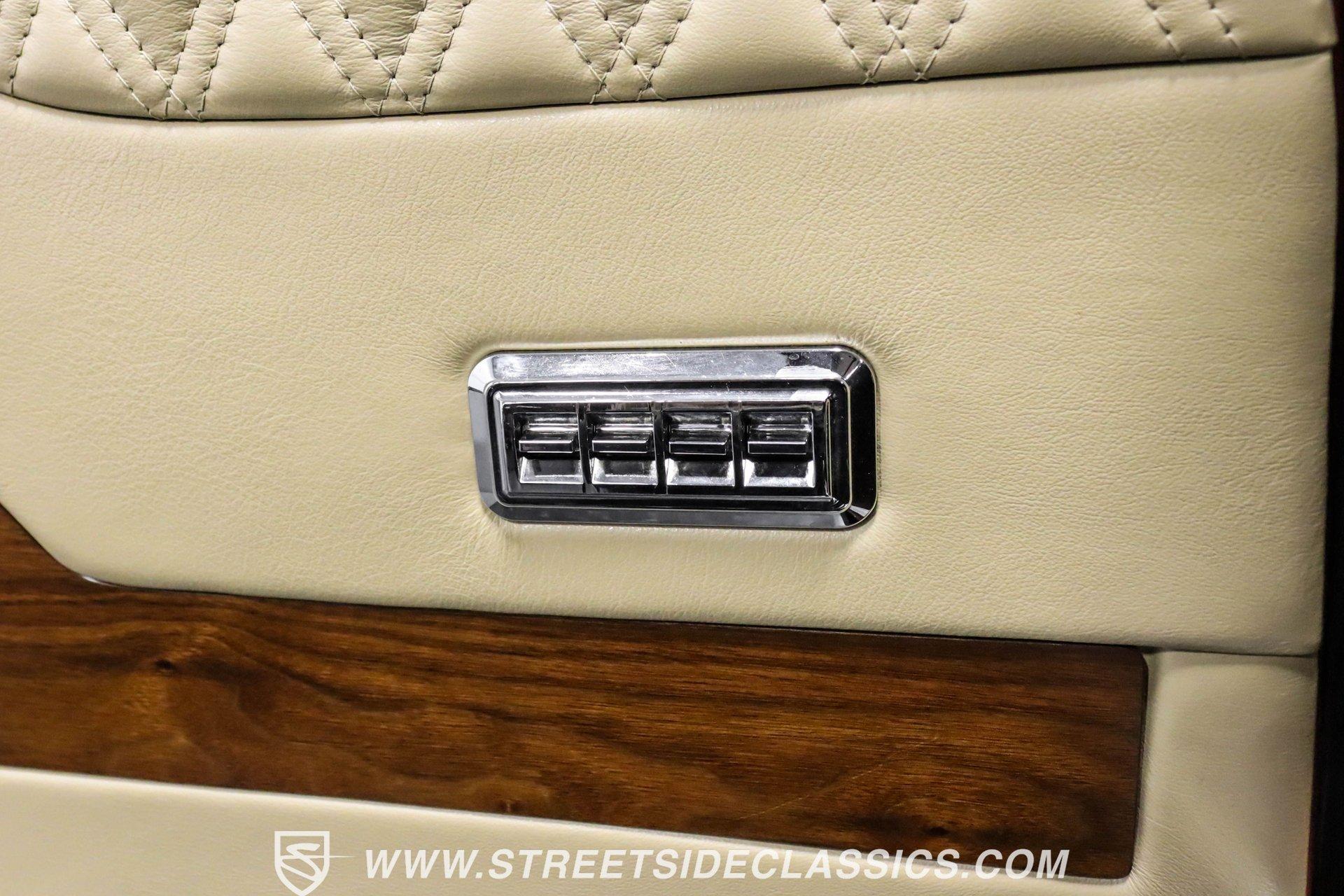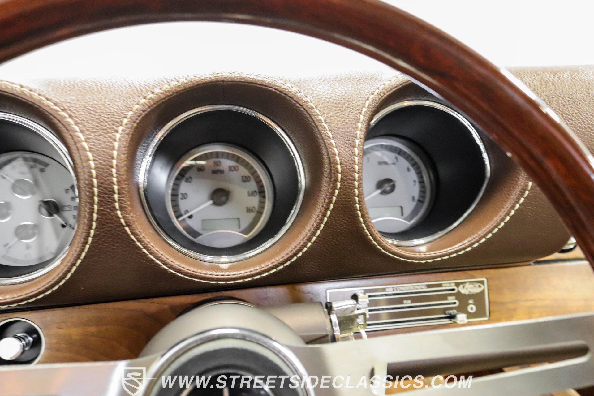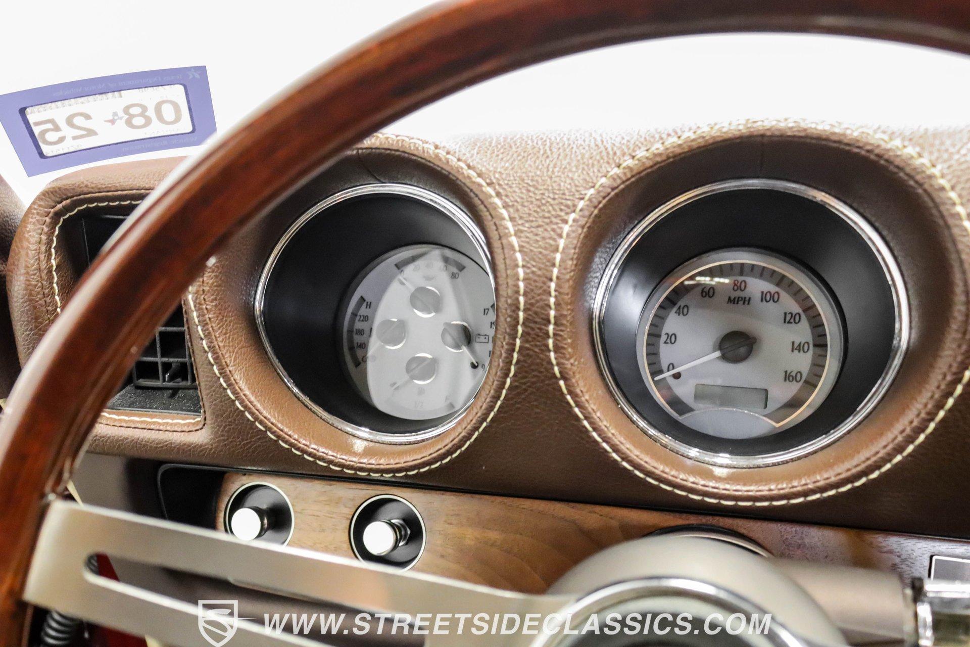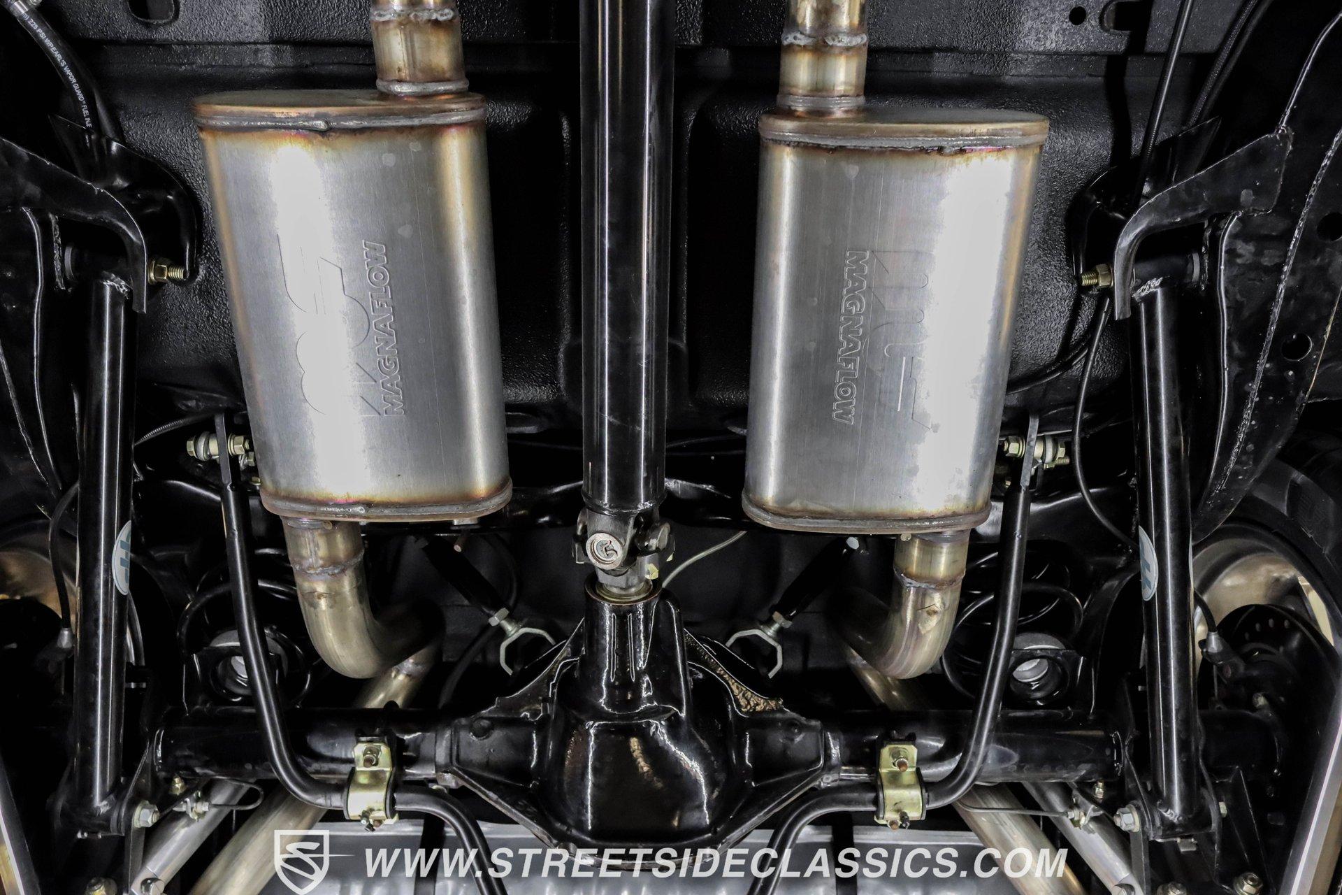 This exceptional 1969 Oldsmobile 442 has received a full frame-off restoration performed by the talented team at House of Hot Rods in Texas and has been driven a mere 826 miles since completion. Finished handsomely in deep Burgundy Metallic with Gold stripes over an arrow-straight body, this classic Oldsmobile is stunning. Rolling on chrome Foose wheels wrapped with Michelin tires staggered 215/50ZR17 front and 245/50ZR18 rear for the perfect stance, this car commands attention from its glistening chrome bumpers to its trunk-mounted rear wing. The interior is equally impressive, featuring comfortable, power adjustable, custom leather upholstered bucket seats front and rear with a custom-crafted full-length center console with beverage holders. The door panels are custom designed with wood inserts and the contrasting light brown dash pad is custom stitched. The dash is fitted with full instrumentation by Dakota Digital, Vintage air conditioning controls and a retro radio with Bluetooth. Additionally, there are power windows, a tilt steering column and a three-spoke wood-rimmed steering wheel. The trunk is completely trimmed to a high standard to match the beautiful interior. HIGHLIGHTS: Spectacular full frame-off restoration by House of Hot Rods in Texas 826 miles since build 455 Oldsmobile engine Tremec 5-speed Edelbrock aluminum heads and intake Holley Sniper EFI Be Cool aluminum radiator Foose wheels Vintage air conditioning Custom leather interior including detailed trunk Under the hood is a potent 455 cubic inch Oldsmobile engine paired with a Tremec 5-speed manual transmission. The engine features Edelbrock aluminum heads, Edelbrock aluminum high-rise intake manifold, Holley Sniper electronic fuel injection, CVF billet brackets, serpentine belt system, Be Cool aluminum radiator and electric fan, plus long-tube headers and a dual exhaust system with an X-pipe that rumbles back past Magnaflow mufflers that exit through chrome trumpet exhaust tips that are tucked up neatly in the factory 442 rear bumper exhaust cutouts. The engine bay is spectacular, with high-gloss body-color fender liners, air cleaner, firewall, engine block, oil pan and transmission. Other details include billet hood hinges and body-colored valve covers custom painted with "Olds 455". The underside of this 442 is as detailed as the rest of the car with high-gloss finishes and numerous upgrades that include a complete Wilwood 4-wheel disc brake system, including booster and master cylinder as well as drilled and slotted rotors. This classic handles great thanks to a CPP Pro Touring suspension kit that includes tubular control arms and sway bars front and rear. No expense was spared to make this 1969 Oldsmobile 442 restomod one of the best anywhere. Call today!