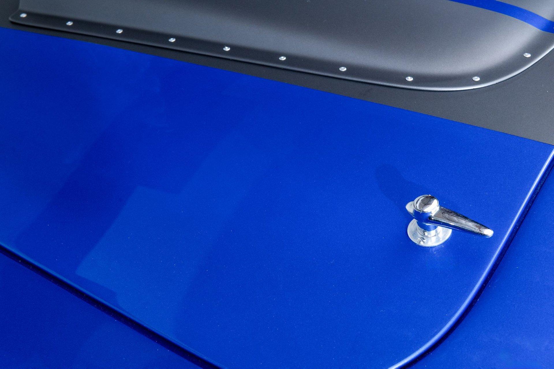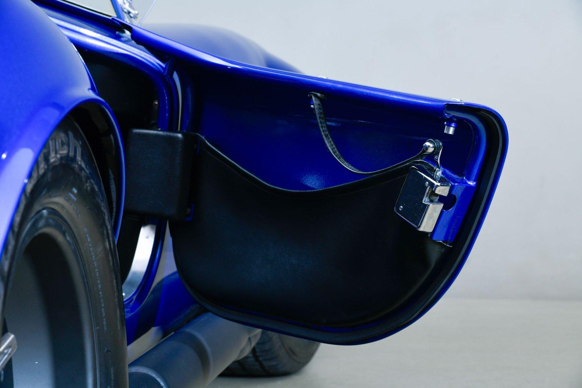 Click here to view high resolution photos Aluminum Body Early production #014 Vehicle 3,489 miles Has California SB100 Licensing / Registration Extensive Care & Maintenance History Dyno Results show 507.5 H.P. at 6100 rpms \ 514 ft-lbs at 3900 rpms 427ci Shelby Aluminum Block V8 Four-Speed Manual Transmission Canepa upgrades: Custom Canepa Magnesium finish on wheels Dual Racing Stripes Adjusted the angle of the windshield by 4 degrees to comply with FIA regulations New wall-to-wall Wilton wool carpet Refinished Headers Applied a high-quality Tera Coat in black for a stunning hot coat finish The vehicle includes an extensive list of mechanical service history, which includes a R&R intake manifold and transmission, a set of daily brake pads as well as track pads, PTFE fuel-line upgrade, and other maintenance records as well as a Certificate of Origin from Kirkham Motorsports. The Kirkham 427 KMS/SC is a standout – a vivid demonstration of how meticulous engineering can resurrect a legend. David Kirkham's team, known for their unparalleled precision, has brought the Shelby Cobra back to life. This isn't just about remaking a classic; it's about elevating it with superior materials like aircraft-grade aluminum, blending the past's charm with today's engineering marvels. Collaboration with Shelby American is the cherry on top. It's not just a seal of authenticity; it’s a nod to the Cobra's storied past. For collectors and enthusiasts, this car is more than a vehicle; it's a piece of history, a tangible link to a golden era of motoring. For some, it is the sound of a big block FE engine rumbling through the ceramic-coated side pipes and the brutal acceleration that pushes you back when you hit the gas. Others can’t help but stare at the curvaceous fenders and are drawn in by the beautiful craftsmanship of the metallic blue aluminum body with 2 matte grey racing stripes down the center. From the oil cooler and hood scoop to the roll bar and fender flares, this car is all about performance. Power comes from a 427ci Shelby aluminum-block V8 paired with a four-speed manual transmission. The engine was dyno’d and produced 514 LB-FT Torque and 507 H.P. The vehicle features quick-jack bumperettes, aluminum fuel filler cap, a roll hoop, Cobra-branded wind wings, side-exit exhausts, and 427 Cobra fender badges. The cockpit features black bucket seats with matching black wool carpets and door liners, along with Simpson lap belts. Features include a dashboard-mounted rear-view mirror as well as a fire extinguisher and a power cutoff switch located behind the seats. The wood-rimmed steering wheel features a Cobra center cap and fronts Smiths and Lucas instrumentation including an 8k-rpm tachometer, a 180-mph reverse-sweep speedometer, and auxiliary gauges. Upon arrival at Canepa, every collector car for sale is put through an extensive and diligent process called the “Canepa Difference.” This includes a major and comprehensive mechanical inspection where all systems are checked, serviced, and restored as needed. They also receive award-winning concours-level detailing, including a thorough cleaning of each and every surface.