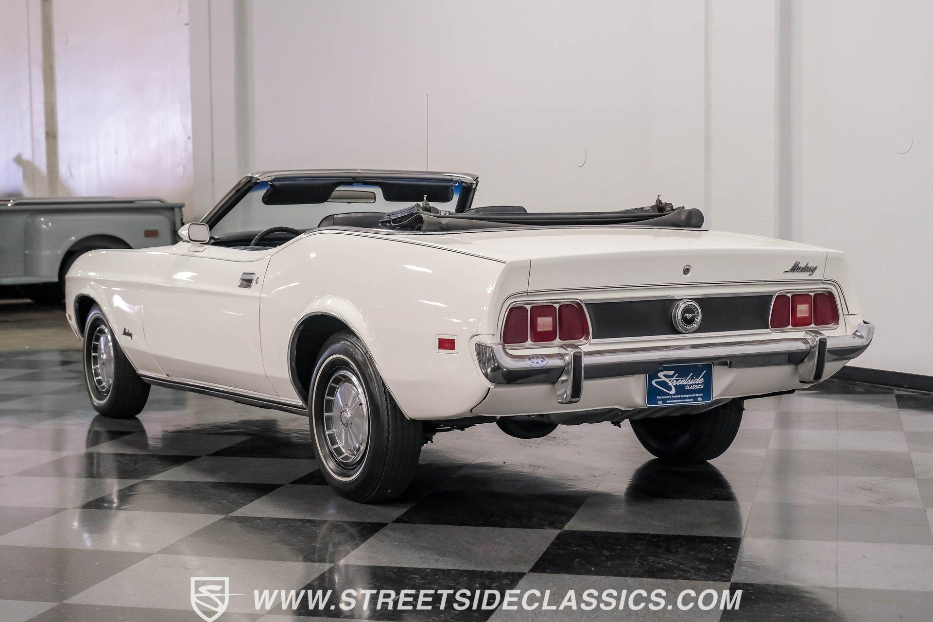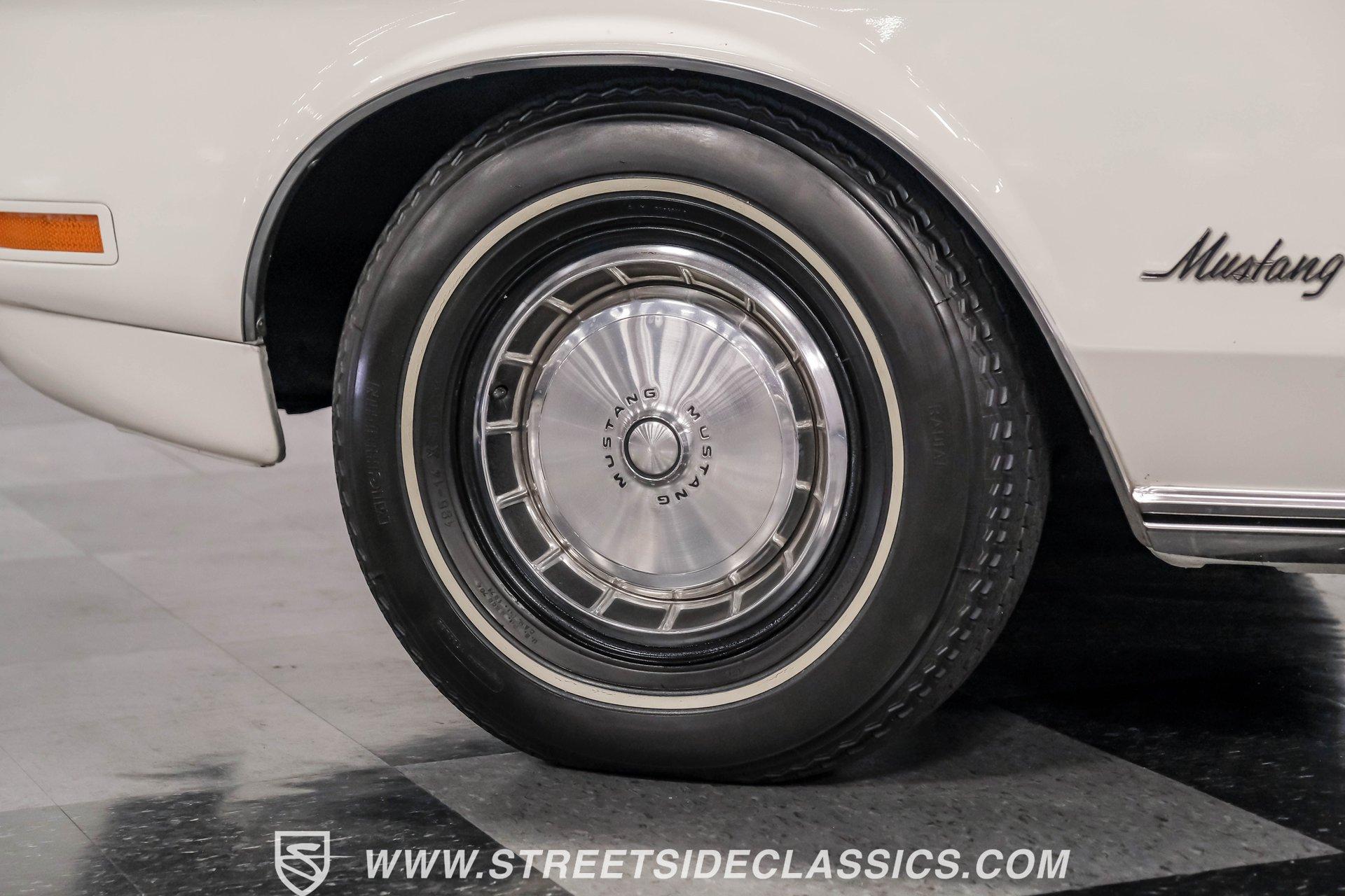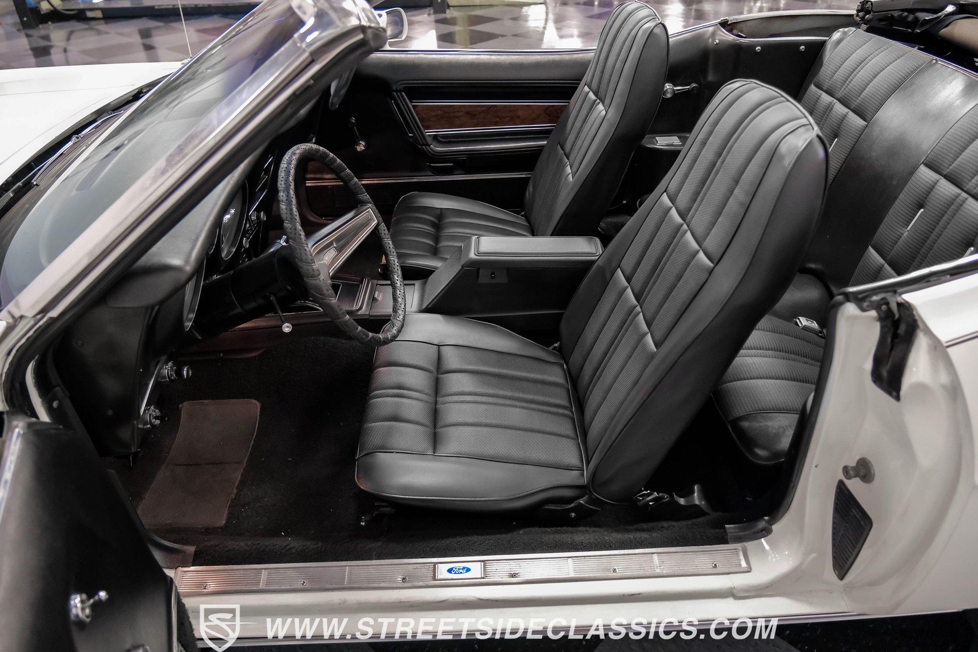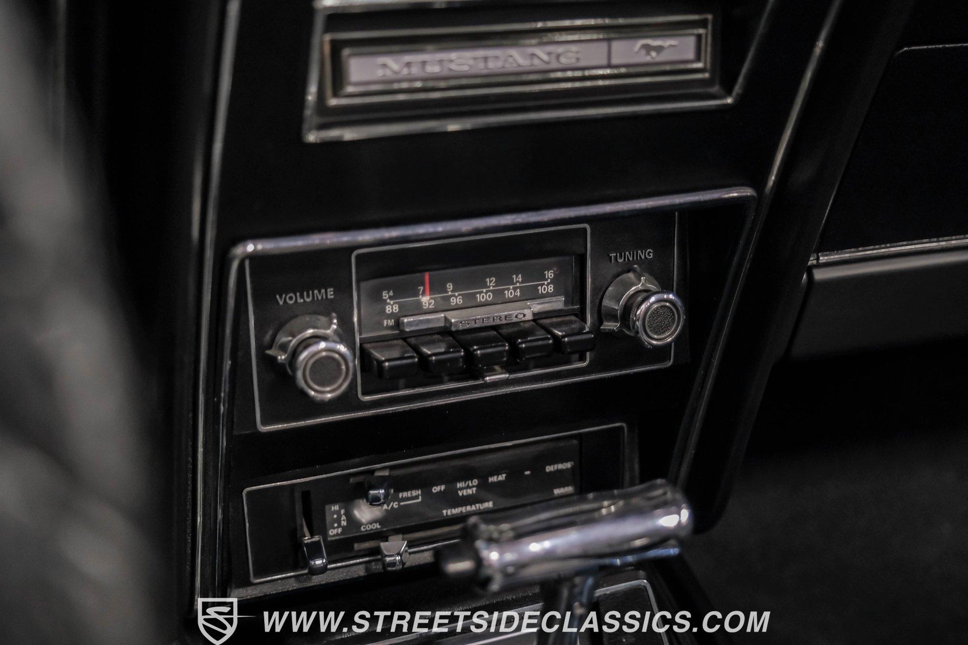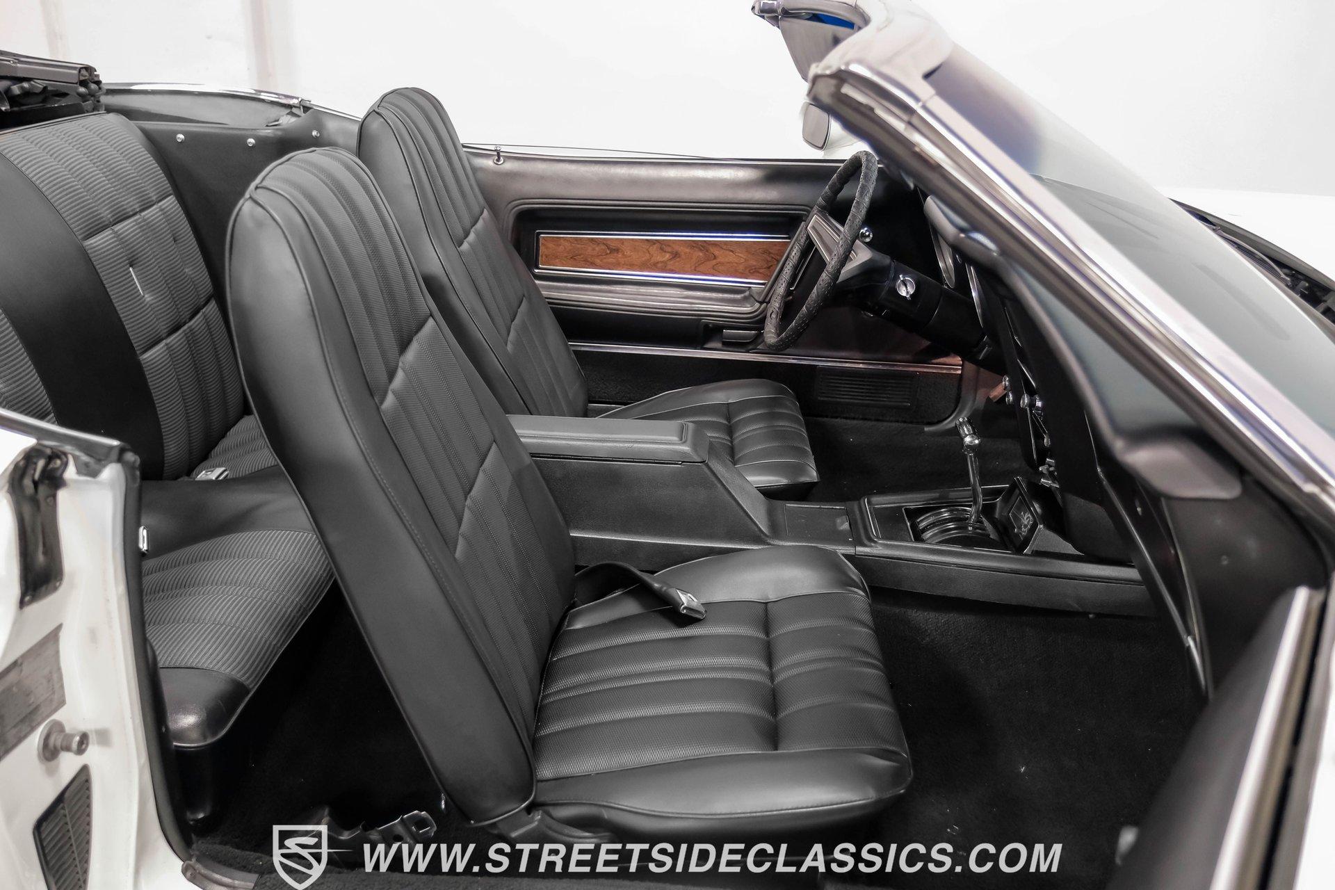This 1973 Ford Mustang Convertible marks the final year of the first-generation pony car. The white exterior paired with black pinstriping creates a bold visual impact, amplified by its factory-correct black vinyl convertible top with clear plastic rear window. The classic styling cues include the distinctive front grille and refined tail section. Rolling on 14-inch factory wheels wrapped in Michelin 195-14 tires, this convertible exhibits Ford's premium approach to the final year of production. The black vinyl interior delivers classic muscle car style with bucket seats divided by a center console. The floor-mounted shifter adds a sporty touch while air conditioning and power steering provide driving comfort. The factory AM/FM radio supplies the soundtrack, while the power convertible top mechanism offers open-air convenience. Custom floor mats protect the newer black carpeting, completing the well-appointed cabin. The muscular 351 Cleveland V8 cranks out plenty of Detroit muscle through the FMX 3-speed automatic transmission. Enhanced control comes from the power front disc brake setup, while the aftermarket muffler adds a deep exhaust note. The engineering team at Ford dialed in the handling with a performance-minded suspension - coil springs and sway bar up front working in concert with the beefy 9-inch rear axle and leaf springs out back. HIGHLIGHTS: 351 Cleveland V8 Engine FMX 3-Speed Automatic Transmission Power Front Disc Brakes 9-inch Rear Axle White Paint with Black Pinstriping Black Convertible Top 14-inch Factory Wheels in Michelin 195-14 Tires Power Convertible Top Black Vinyl Interior Bucket Seats w/ Center Console Floor-Mounted Shifter Power Steering Air Conditioning Factory AM/FM Radio Maintenance Records Service Documentation This 1973 Ford Mustang Convertible showcases the refined evolution of the first-generation platform, featuring a 351 Cleveland V8, power accessories, and classic white-over-black color combination. Call today!