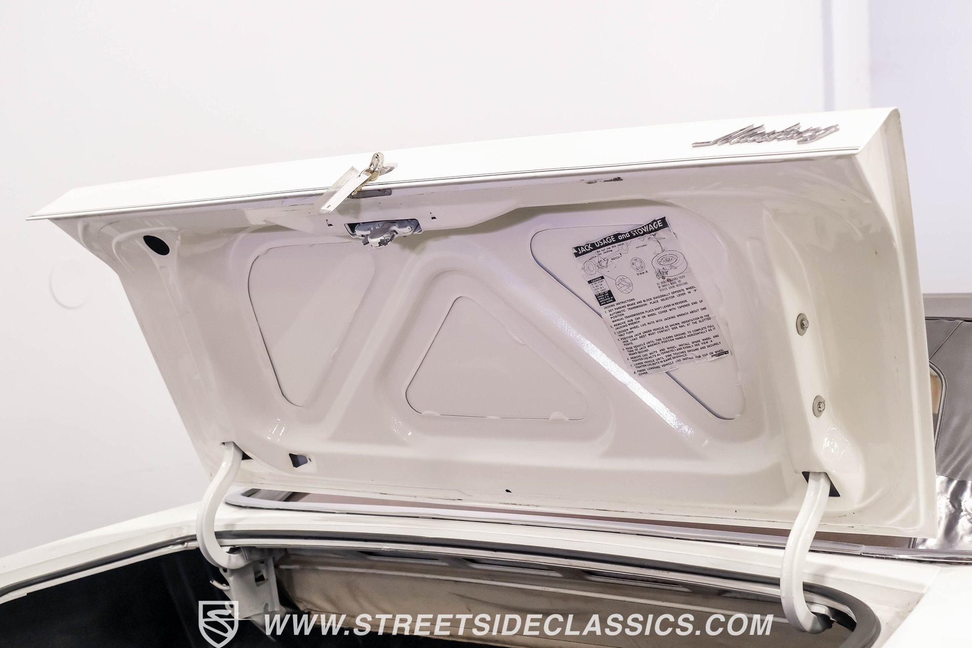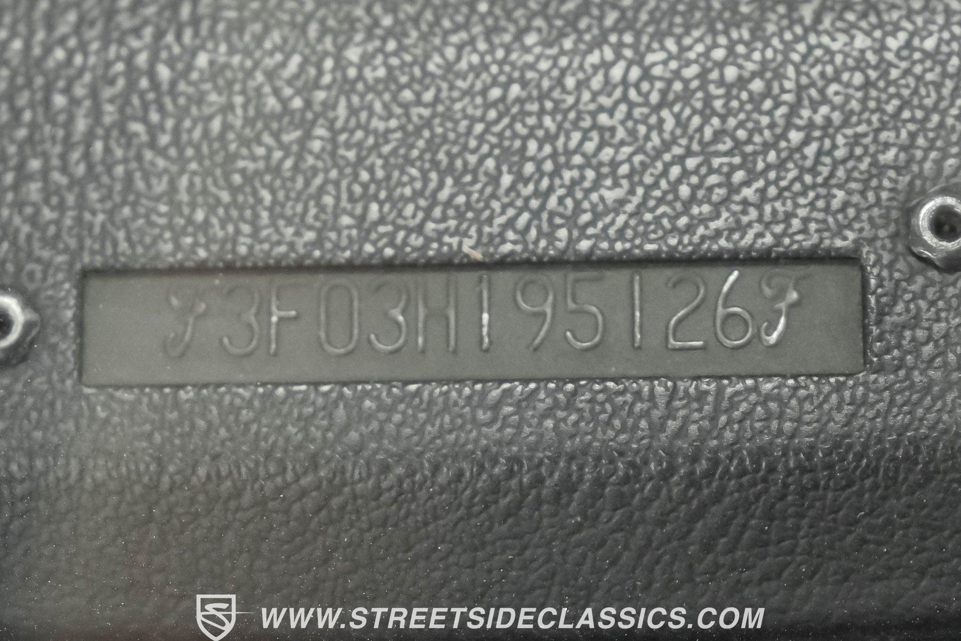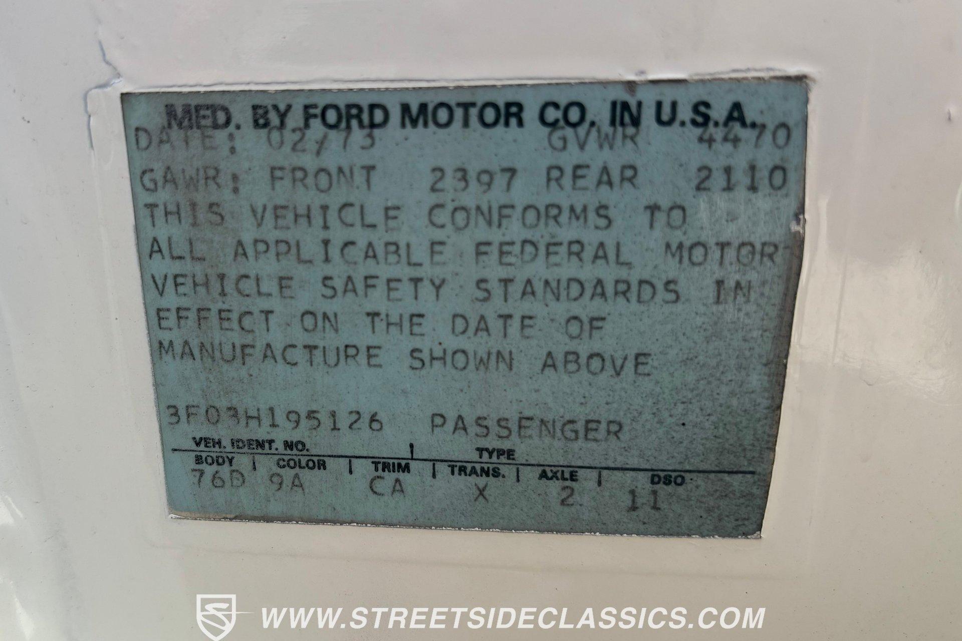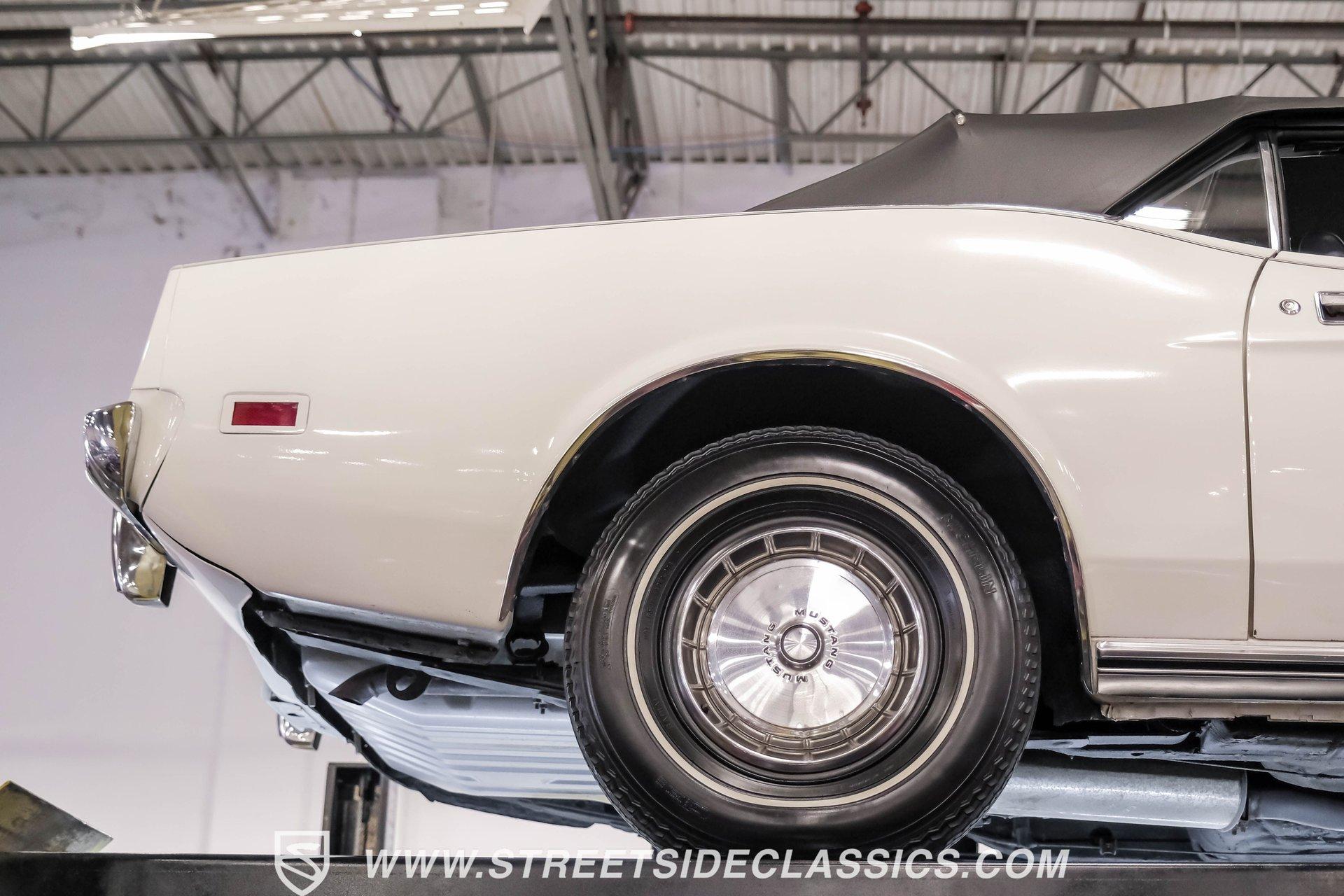 This 1973 Ford Mustang Convertible marks the final year of the first-generation pony car. The white exterior paired with black pinstriping creates a bold visual impact, amplified by its factory-correct black vinyl convertible top with clear plastic rear window. The classic styling cues include the distinctive front grille and refined tail section. Rolling on 14-inch factory wheels wrapped in Michelin 195-14 tires, this convertible exhibits Ford's premium approach to the final year of production. The black vinyl interior delivers classic muscle car style with bucket seats divided by a center console. The floor-mounted shifter adds a sporty touch while air conditioning and power steering provide driving comfort. The factory AM/FM radio supplies the soundtrack, while the power convertible top mechanism offers open-air convenience. Custom floor mats protect the newer black carpeting, completing the well-appointed cabin. The muscular 351 Cleveland V8 cranks out plenty of Detroit muscle through the FMX 3-speed automatic transmission. Enhanced control comes from the power front disc brake setup, while the aftermarket muffler adds a deep exhaust note. The engineering team at Ford dialed in the handling with a performance-minded suspension - coil springs and sway bar up front working in concert with the beefy 9-inch rear axle and leaf springs out back. HIGHLIGHTS: 351 Cleveland V8 Engine FMX 3-Speed Automatic Transmission Power Front Disc Brakes 9-inch Rear Axle White Paint with Black Pinstriping Black Convertible Top 14-inch Factory Wheels in Michelin 195-14 Tires Power Convertible Top Black Vinyl Interior Bucket Seats w/ Center Console Floor-Mounted Shifter Power Steering Air Conditioning Factory AM/FM Radio Maintenance Records Service Documentation This 1973 Ford Mustang Convertible showcases the refined evolution of the first-generation platform, featuring a 351 Cleveland V8, power accessories, and classic white-over-black color combination. Call today!