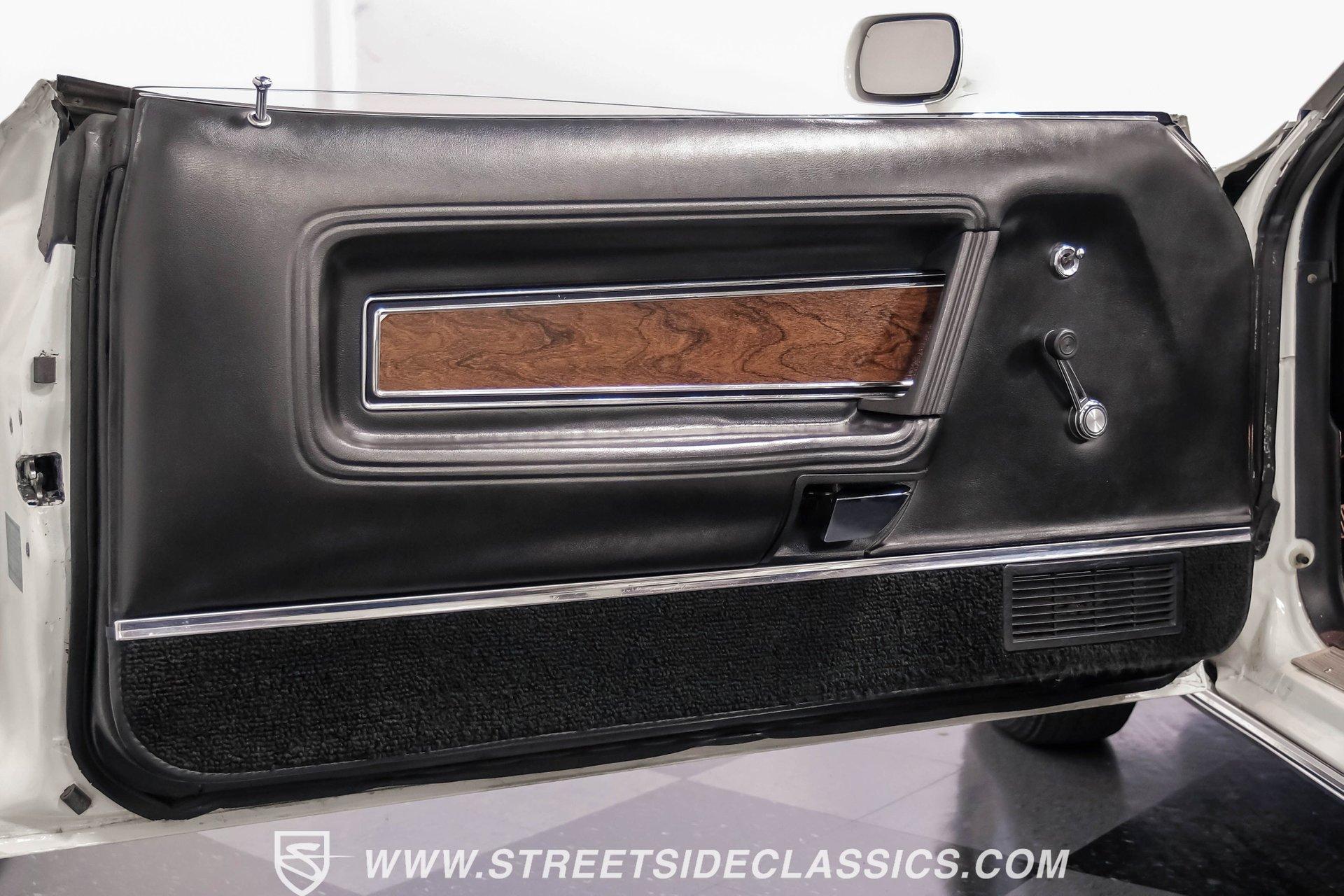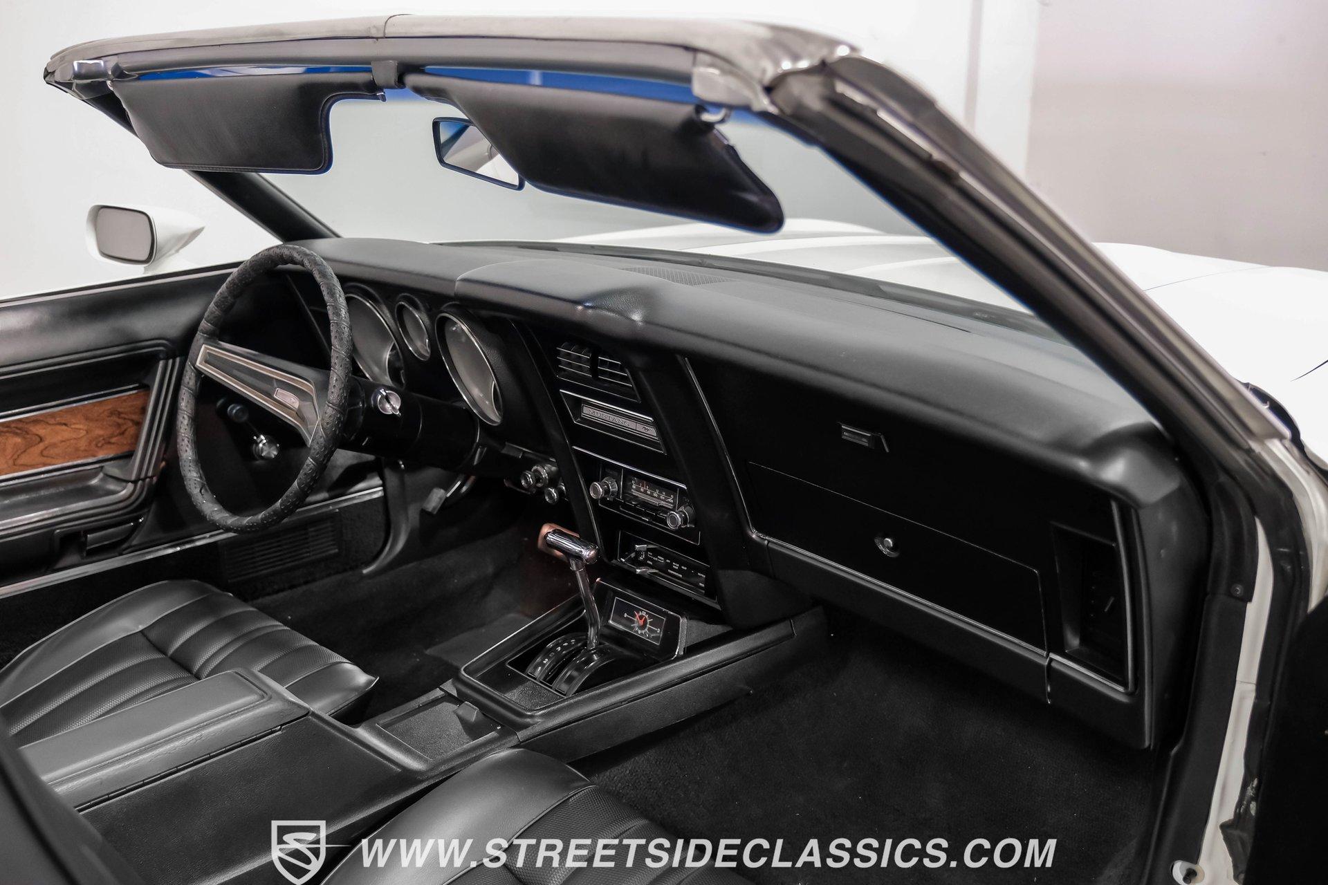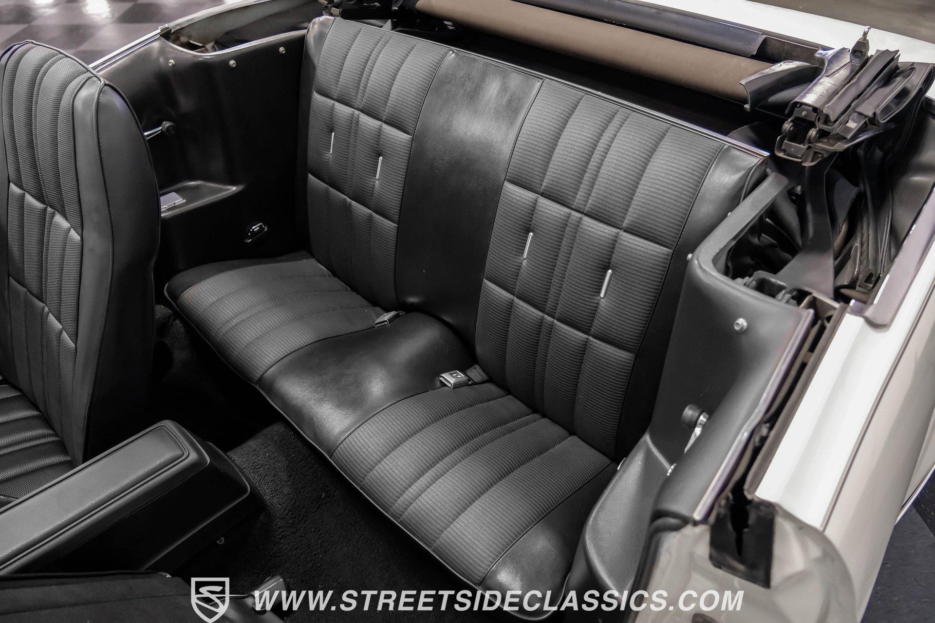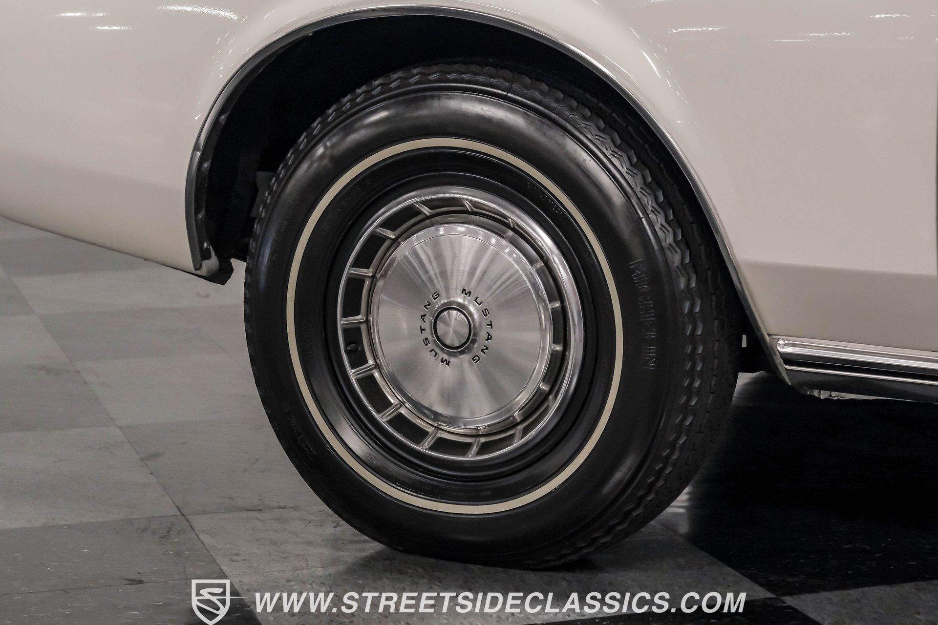 This 1973 Ford Mustang Convertible marks the final year of the first-generation pony car. The white exterior paired with black pinstriping creates a bold visual impact, amplified by its factory-correct black vinyl convertible top with clear plastic rear window. The classic styling cues include the distinctive front grille and refined tail section. Rolling on 14-inch factory wheels wrapped in Michelin 195-14 tires, this convertible exhibits Ford's premium approach to the final year of production. The black vinyl interior delivers classic muscle car style with bucket seats divided by a center console. The floor-mounted shifter adds a sporty touch while air conditioning and power steering provide driving comfort. The factory AM/FM radio supplies the soundtrack, while the power convertible top mechanism offers open-air convenience. Custom floor mats protect the newer black carpeting, completing the well-appointed cabin. The muscular 351 Cleveland V8 cranks out plenty of Detroit muscle through the FMX 3-speed automatic transmission. Enhanced control comes from the power front disc brake setup, while the aftermarket muffler adds a deep exhaust note. The engineering team at Ford dialed in the handling with a performance-minded suspension - coil springs and sway bar up front working in concert with the beefy 9-inch rear axle and leaf springs out back. HIGHLIGHTS: 351 Cleveland V8 Engine FMX 3-Speed Automatic Transmission Power Front Disc Brakes 9-inch Rear Axle White Paint with Black Pinstriping Black Convertible Top 14-inch Factory Wheels in Michelin 195-14 Tires Power Convertible Top Black Vinyl Interior Bucket Seats w/ Center Console Floor-Mounted Shifter Power Steering Air Conditioning Factory AM/FM Radio Maintenance Records Service Documentation This 1973 Ford Mustang Convertible showcases the refined evolution of the first-generation platform, featuring a 351 Cleveland V8, power accessories, and classic white-over-black color combination. Call today!