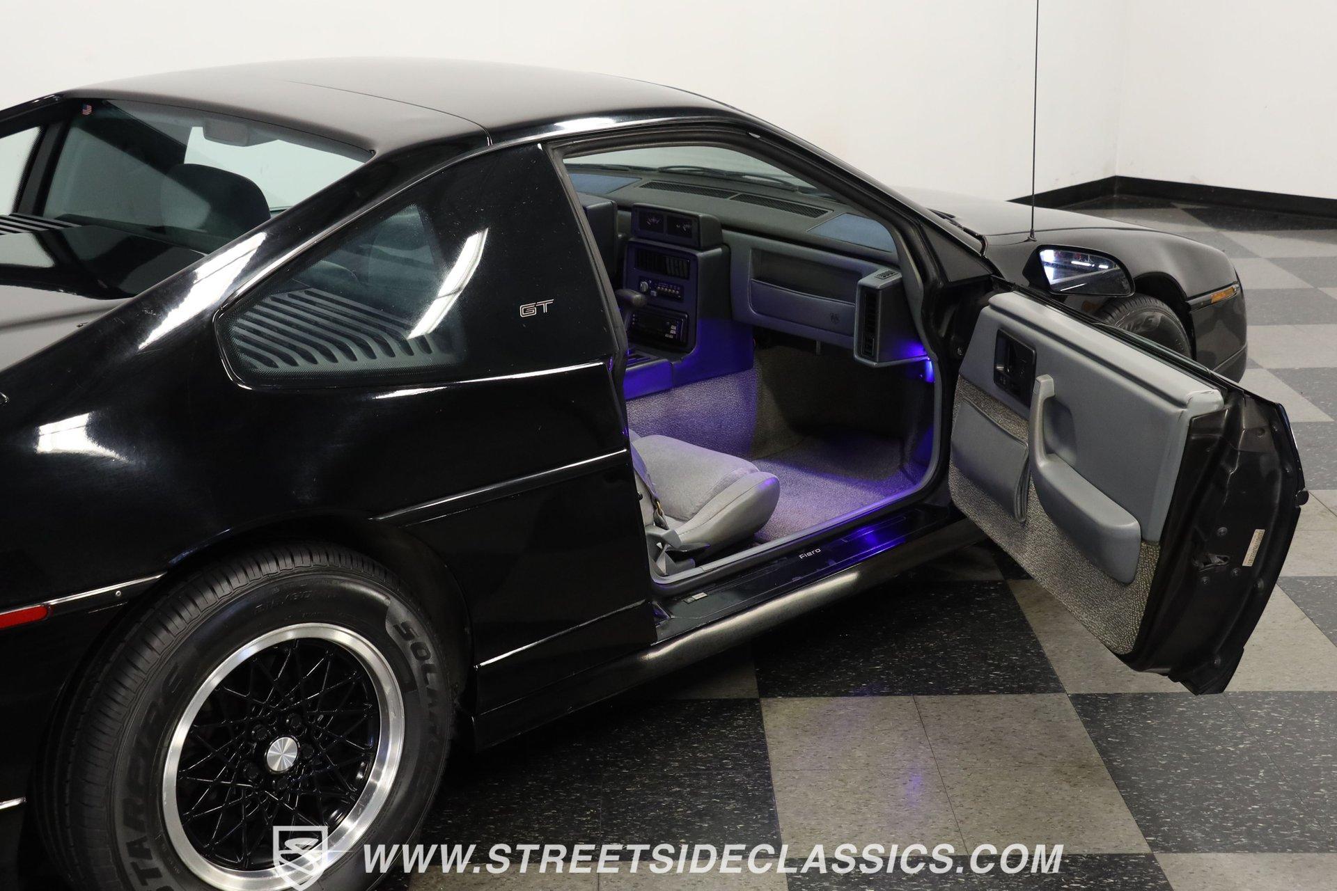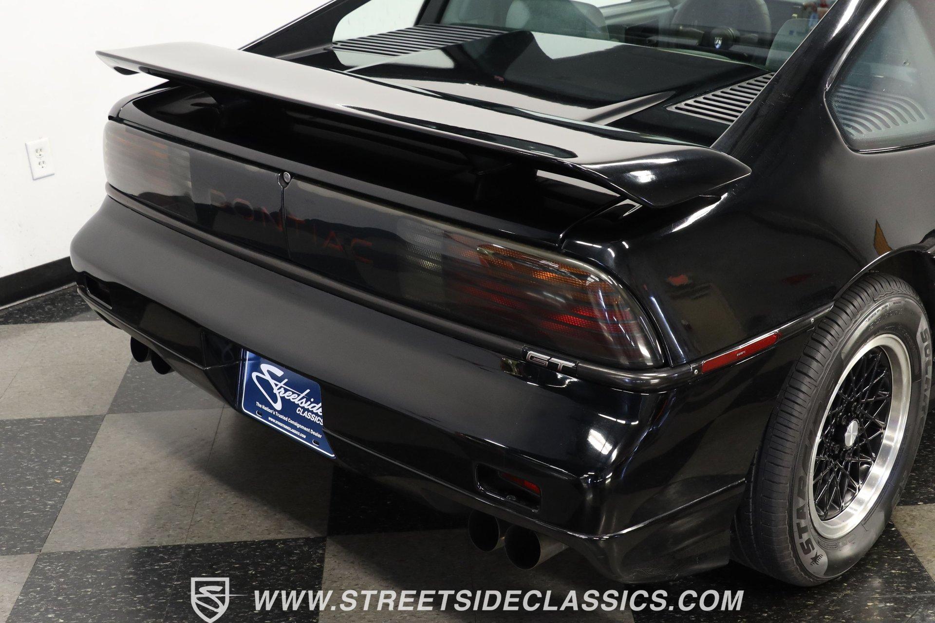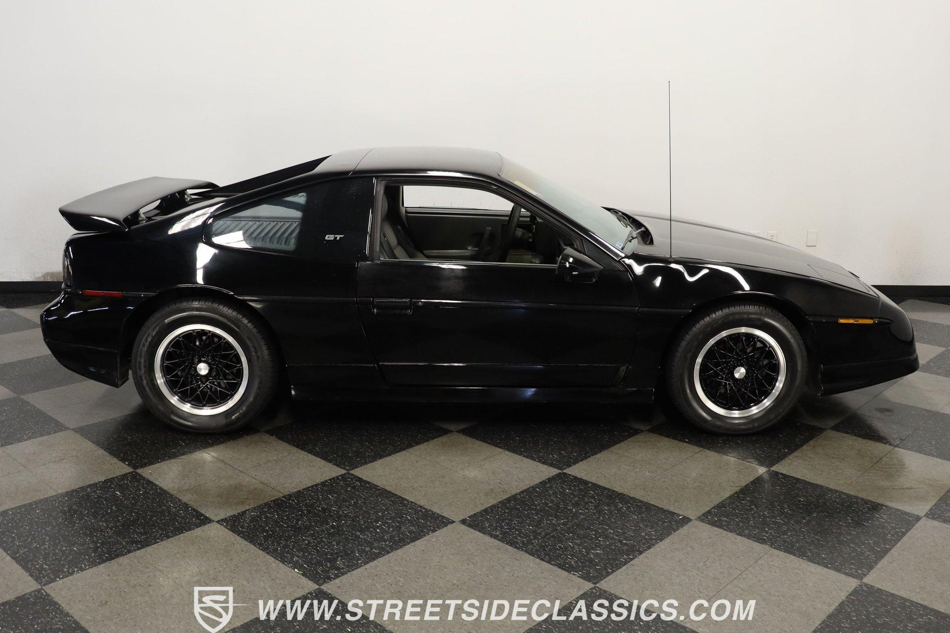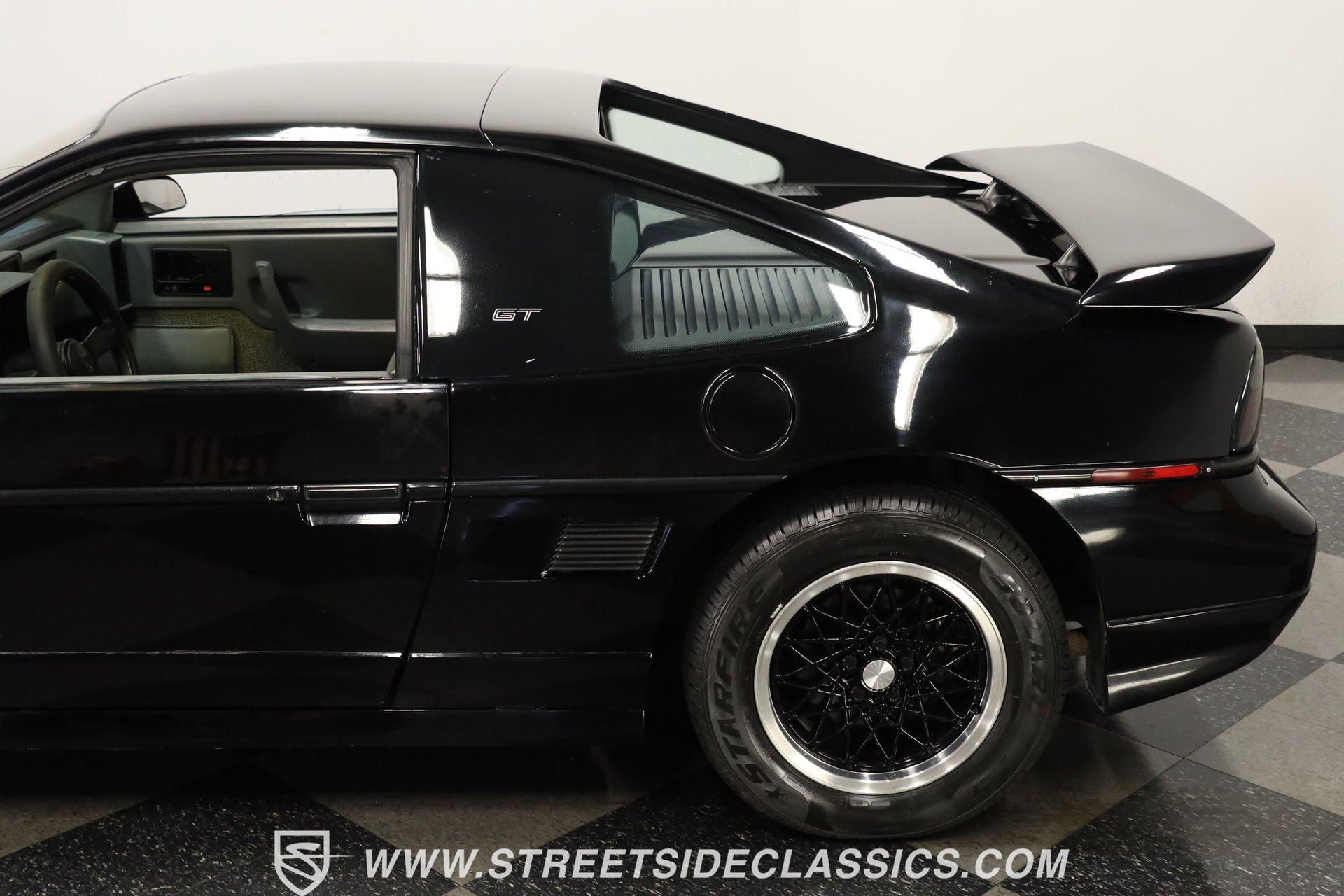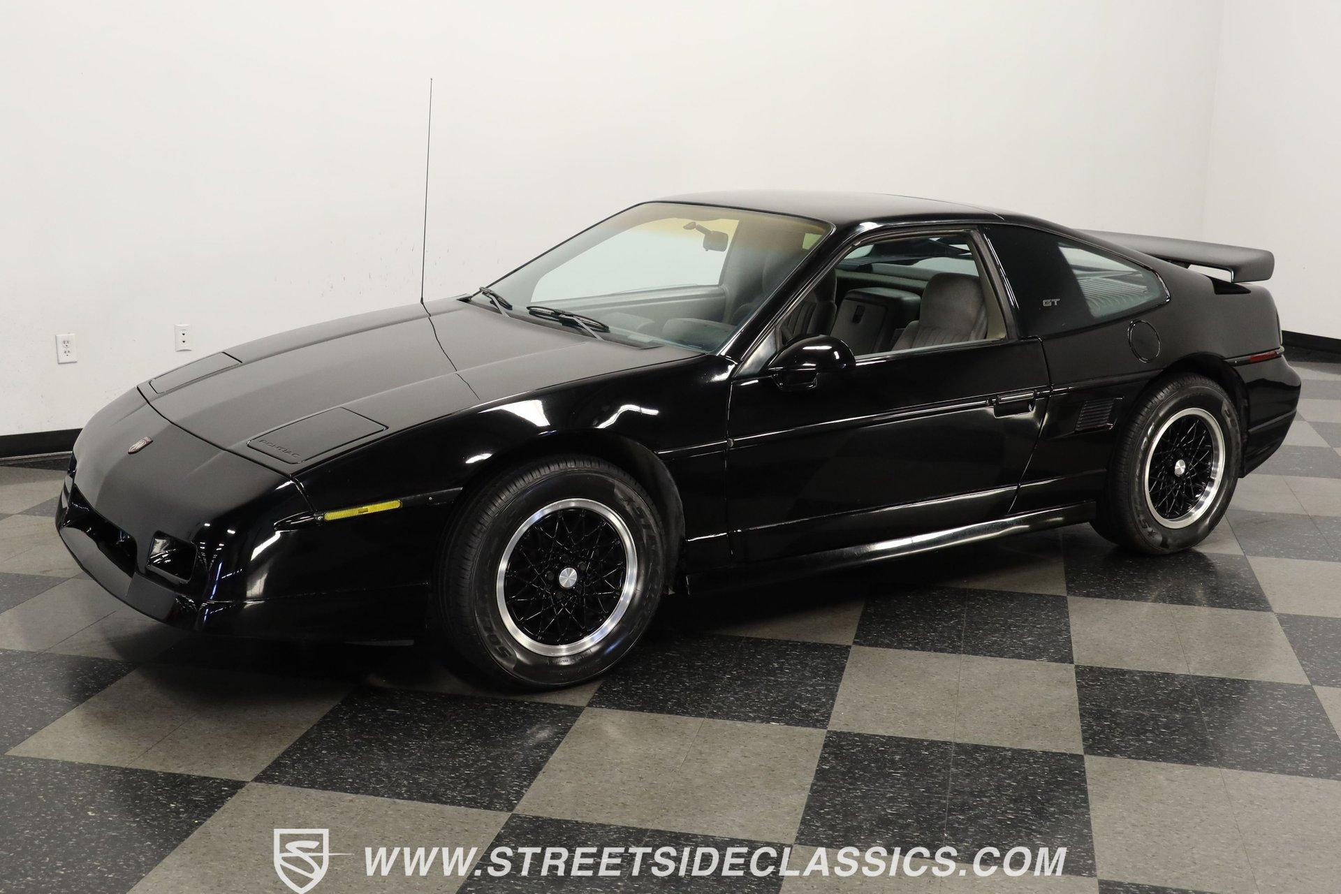 4994-TPA 1988 PONTIAC FIERO GT Only about 3,000 Fiero GTs with automatic transmission rolled off the assembly line in 1988, making this black beauty a rare final-year model. The sleek mid-engine design showcases clean urethane bumpers, distinctive GT body panels, and a purposeful stance. Black/alloy 15-inch wheels wrapped in 205/60R15 tires complete the performance-oriented profile. The glass, lights, and weatherstripping maintain their factory appearance, while the fastback roofline amplifies the car's angular wedge design. The medium dark gray interior creates a driver-focused cockpit environment. Velour bucket seats show minimal wear, complemented by a clean dash hosting clear gauges and controls. The center console houses both the automatic shifter and storage space. Modern touches include a Koss CD receiver for entertainment, while air conditioning keeps the cabin temperature ideal. Custom blue accent lighting adds a subtle glow to the dashboard. The 2.8 Liter V6 delivers power through a TH125 3-speed automatic transmission. This drivetrain combination offers spirited acceleration and reliable cruising capability. The refined suspension system features independent components at all four corners, working in concert with power disc brakes. A single-to-dual exhaust system produces an appropriate V6 sound signature. HIGHLIGHTS: 2.8 Liter V6 Engine 3-Speed Automatic Transmission (TH125) Fuel Injection Independent Suspension Power 4-Wheel Disc Brakes Single-to-Dual Exhaust System Black Exterior Paint GT Body Package 15-inch Black/Alloy Wheels in 205/60R15 Tires Urethane Bumpers Medium Dark Gray Velour Interior with Bucket Seats Air Conditioning Koss CD Receiver Center Console Custom Blue Dashboard Lighting Original Catalytic Converter (Included) Space Saver Spare Tire with Jack Front Storage Compartment This 1988 Pontiac Fiero GT represents the culmination of Pontiac's mid-engine experiment. With its V6 power, refined suspension, and limited production numbers, this black GT delivers an engaging driving experience. Call today! We can assist you with getting an Extended Vehicle Service Plan from Freedom Warranty, which provides comprehensive coverage that can save thousands of dollars on unexpected repairs. Inquire for more details and pricing!
