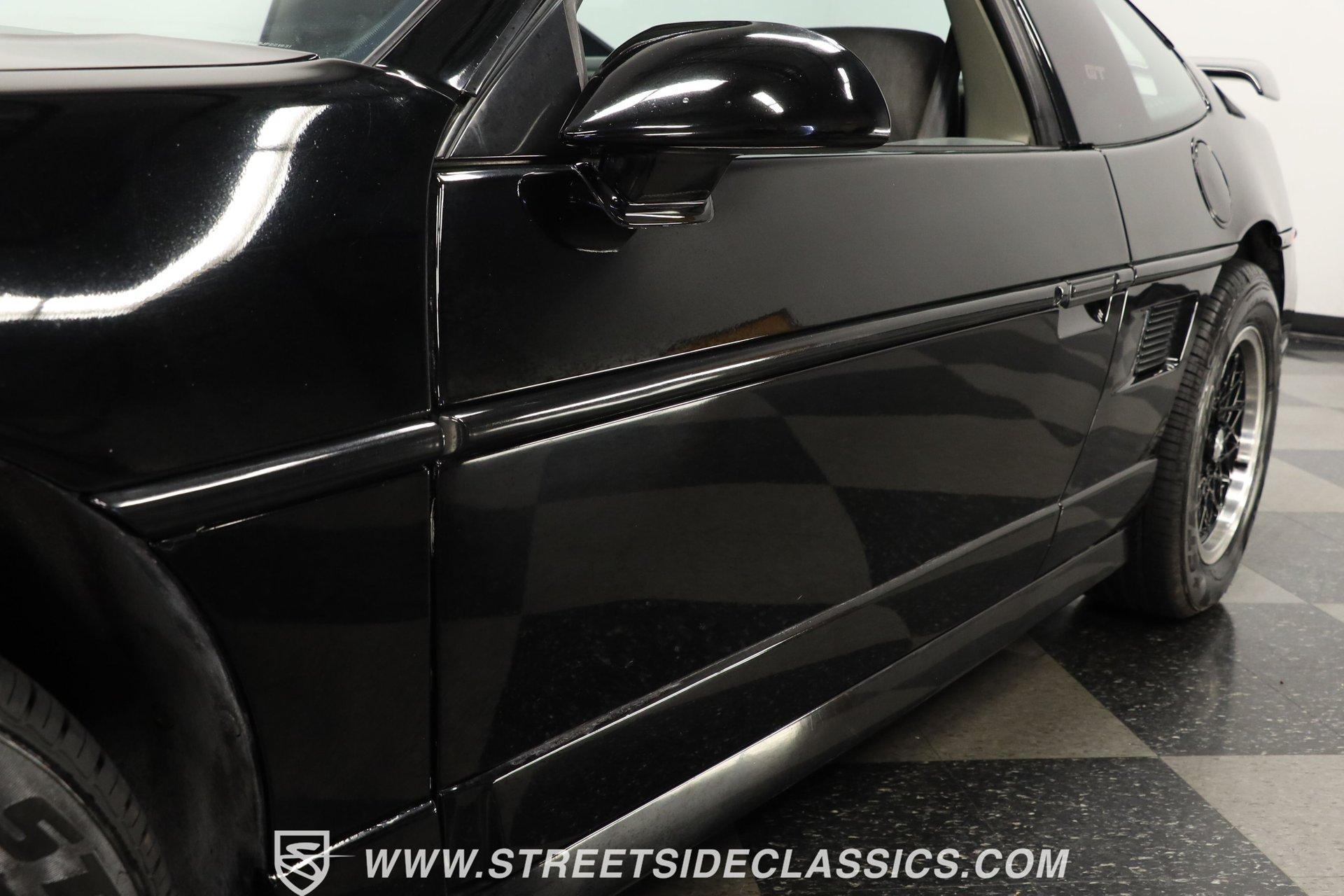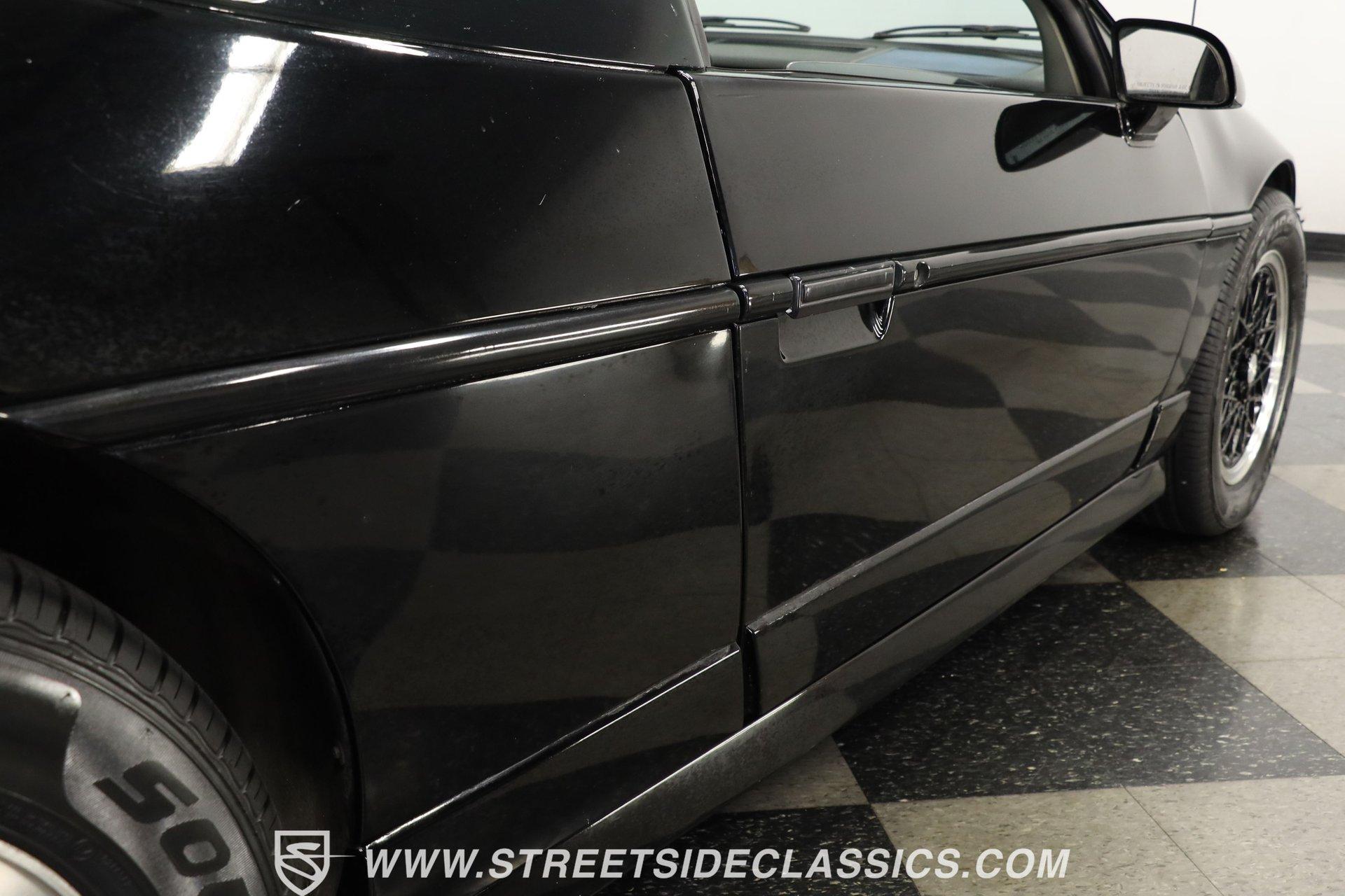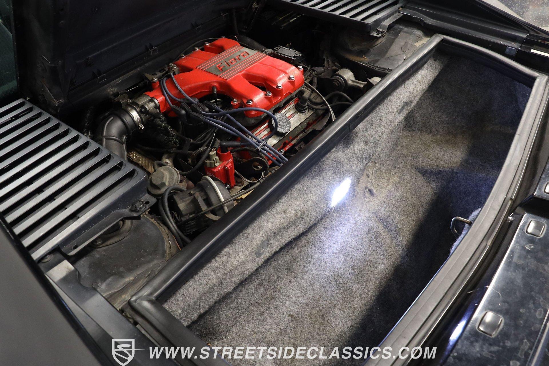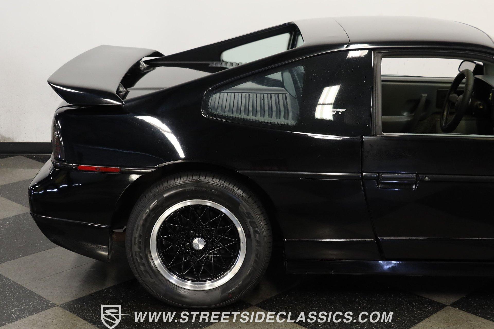 4994-TPA 1988 PONTIAC FIERO GT Only about 3,000 Fiero GTs with automatic transmission rolled off the assembly line in 1988, making this black beauty a rare final-year model. The sleek mid-engine design showcases clean urethane bumpers, distinctive GT body panels, and a purposeful stance. Black/alloy 15-inch wheels wrapped in 205/60R15 tires complete the performance-oriented profile. The glass, lights, and weatherstripping maintain their factory appearance, while the fastback roofline amplifies the car's angular wedge design. The medium dark gray interior creates a driver-focused cockpit environment. Velour bucket seats show minimal wear, complemented by a clean dash hosting clear gauges and controls. The center console houses both the automatic shifter and storage space. Modern touches include a Koss CD receiver for entertainment, while air conditioning keeps the cabin temperature ideal. Custom blue accent lighting adds a subtle glow to the dashboard. The 2.8 Liter V6 delivers power through a TH125 3-speed automatic transmission. This drivetrain combination offers spirited acceleration and reliable cruising capability. The refined suspension system features independent components at all four corners, working in concert with power disc brakes. A single-to-dual exhaust system produces an appropriate V6 sound signature. HIGHLIGHTS: 2.8 Liter V6 Engine 3-Speed Automatic Transmission (TH125) Fuel Injection Independent Suspension Power 4-Wheel Disc Brakes Single-to-Dual Exhaust System Black Exterior Paint GT Body Package 15-inch Black/Alloy Wheels in 205/60R15 Tires Urethane Bumpers Medium Dark Gray Velour Interior with Bucket Seats Air Conditioning Koss CD Receiver Center Console Custom Blue Dashboard Lighting Original Catalytic Converter (Included) Space Saver Spare Tire with Jack Front Storage Compartment This 1988 Pontiac Fiero GT represents the culmination of Pontiac's mid-engine experiment. With its V6 power, refined suspension, and limited production numbers, this black GT delivers an engaging driving experience. Call today! We can assist you with getting an Extended Vehicle Service Plan from Freedom Warranty, which provides comprehensive coverage that can save thousands of dollars on unexpected repairs. Inquire for more details and pricing!