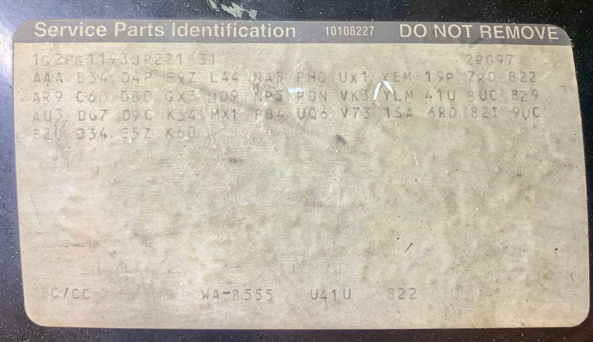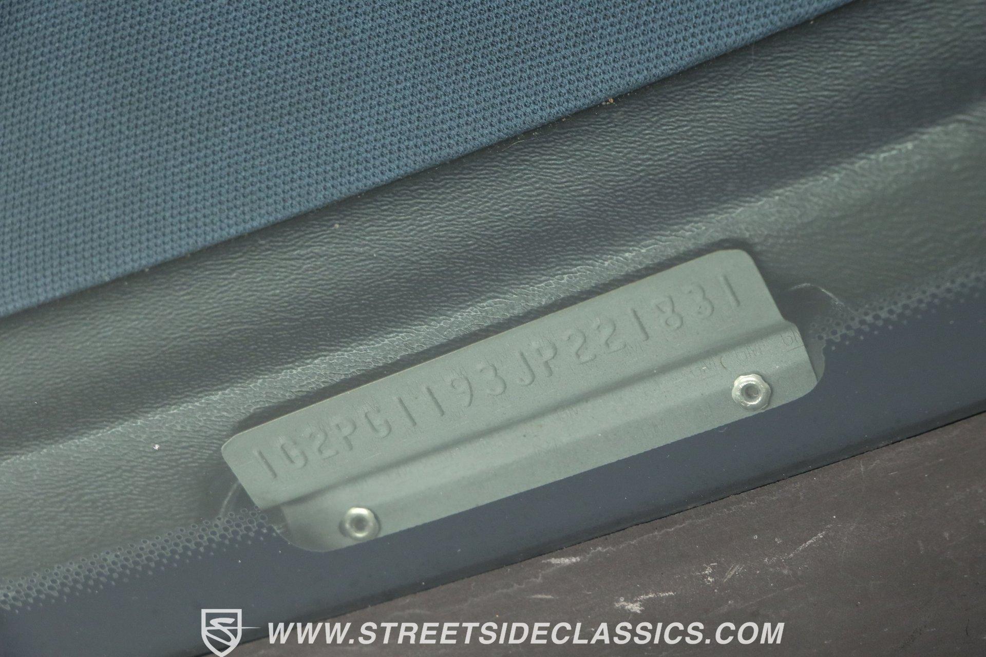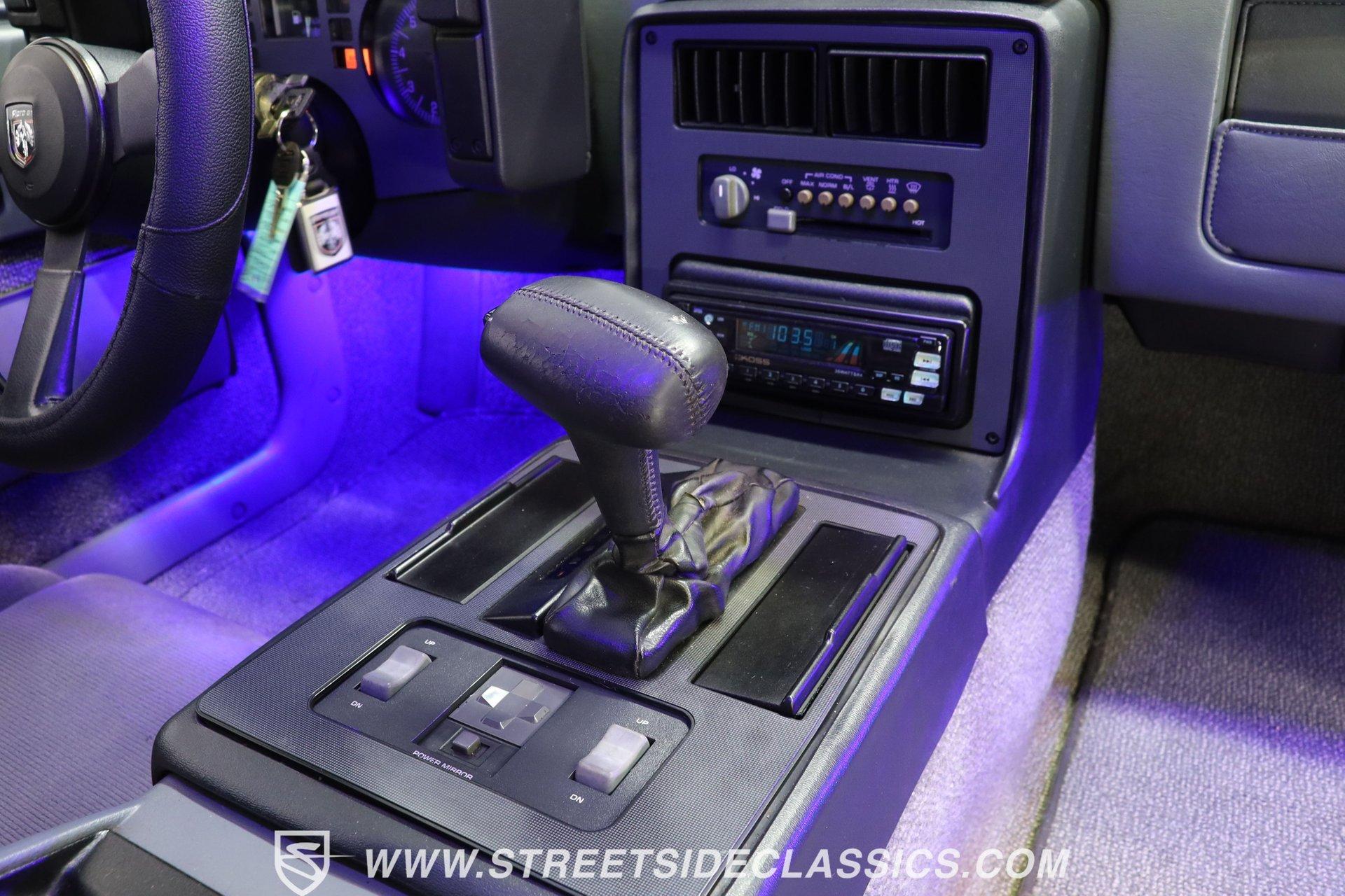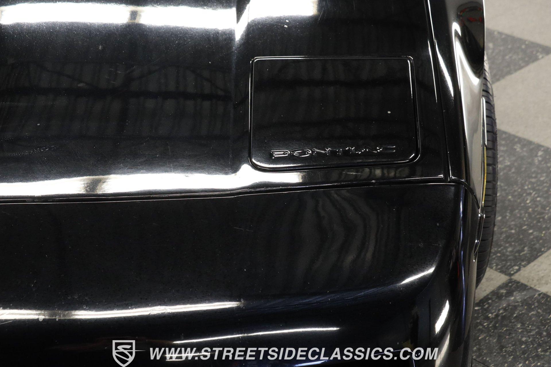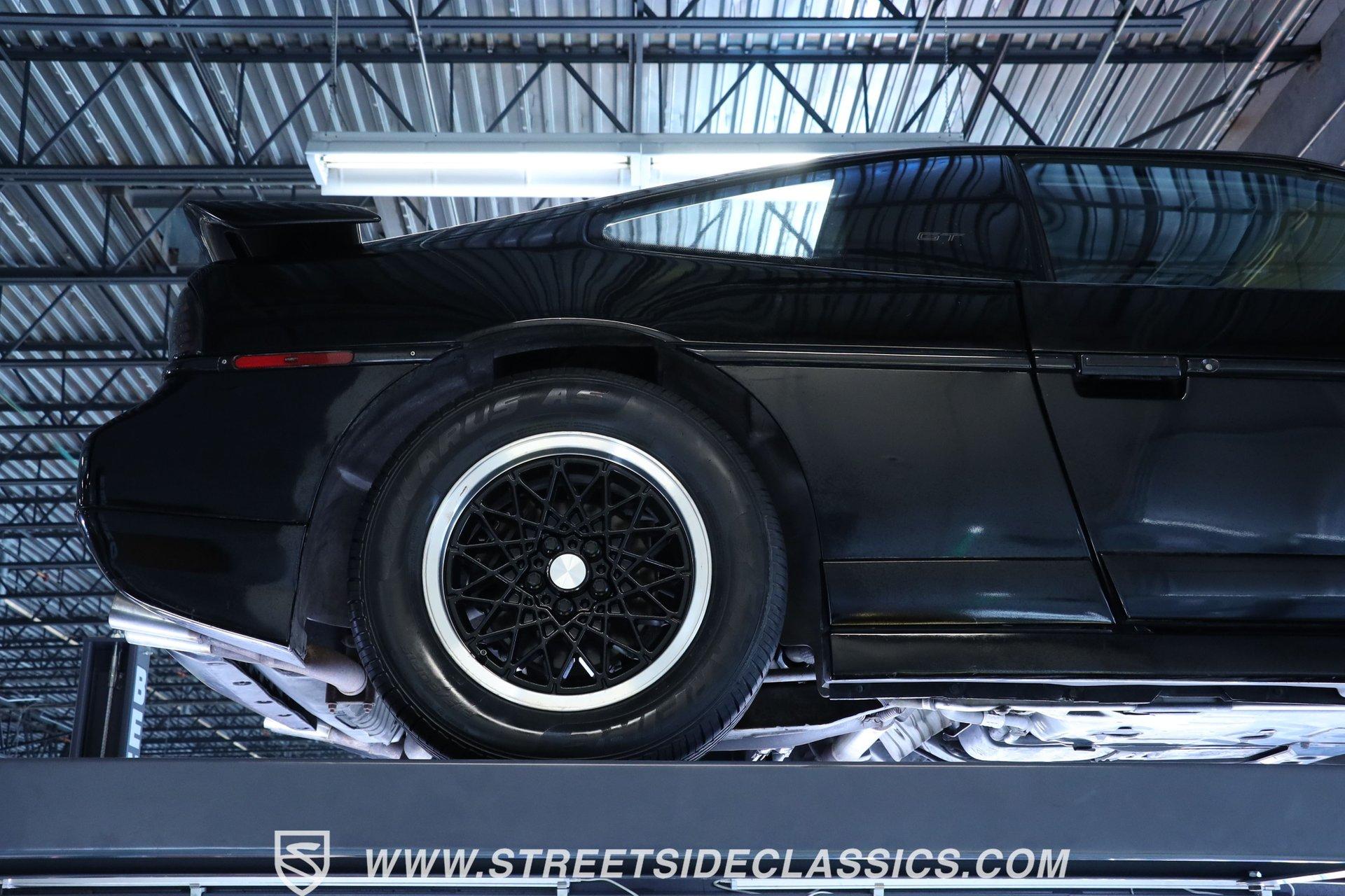 4994-TPA 1988 PONTIAC FIERO GT Only about 3,000 Fiero GTs with automatic transmission rolled off the assembly line in 1988, making this black beauty a rare final-year model. The sleek mid-engine design showcases clean urethane bumpers, distinctive GT body panels, and a purposeful stance. Black/alloy 15-inch wheels wrapped in 205/60R15 tires complete the performance-oriented profile. The glass, lights, and weatherstripping maintain their factory appearance, while the fastback roofline amplifies the car's angular wedge design. The medium dark gray interior creates a driver-focused cockpit environment. Velour bucket seats show minimal wear, complemented by a clean dash hosting clear gauges and controls. The center console houses both the automatic shifter and storage space. Modern touches include a Koss CD receiver for entertainment, while air conditioning keeps the cabin temperature ideal. Custom blue accent lighting adds a subtle glow to the dashboard. The 2.8 Liter V6 delivers power through a TH125 3-speed automatic transmission. This drivetrain combination offers spirited acceleration and reliable cruising capability. The refined suspension system features independent components at all four corners, working in concert with power disc brakes. A single-to-dual exhaust system produces an appropriate V6 sound signature. HIGHLIGHTS: 2.8 Liter V6 Engine 3-Speed Automatic Transmission (TH125) Fuel Injection Independent Suspension Power 4-Wheel Disc Brakes Single-to-Dual Exhaust System Black Exterior Paint GT Body Package 15-inch Black/Alloy Wheels in 205/60R15 Tires Urethane Bumpers Medium Dark Gray Velour Interior with Bucket Seats Air Conditioning Koss CD Receiver Center Console Custom Blue Dashboard Lighting Original Catalytic Converter (Included) Space Saver Spare Tire with Jack Front Storage Compartment This 1988 Pontiac Fiero GT represents the culmination of Pontiac's mid-engine experiment. With its V6 power, refined suspension, and limited production numbers, this black GT delivers an engaging driving experience. Call today! We can assist you with getting an Extended Vehicle Service Plan from Freedom Warranty, which provides comprehensive coverage that can save thousands of dollars on unexpected repairs. Inquire for more details and pricing!