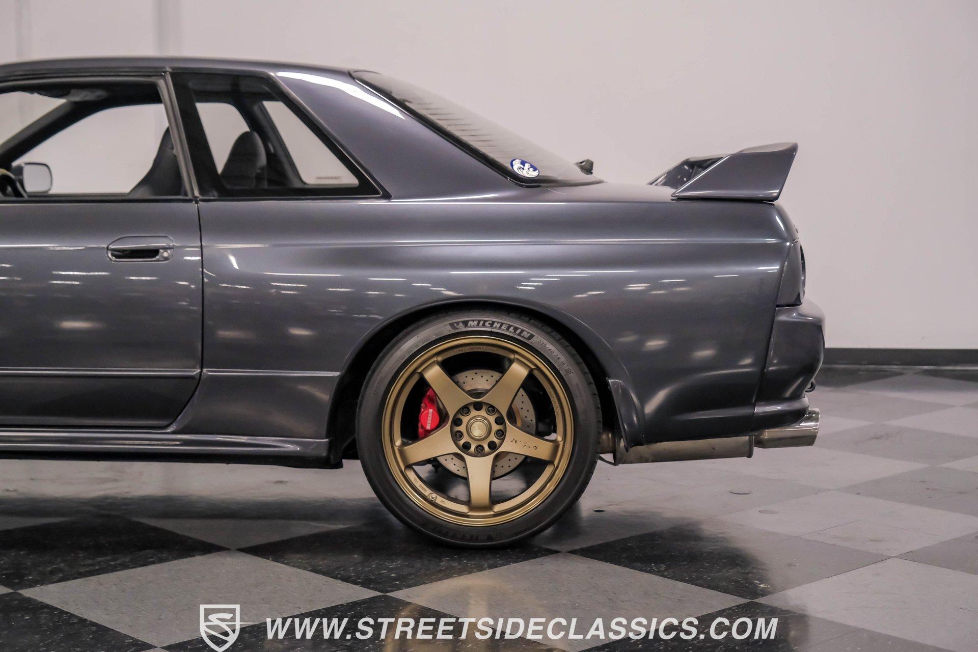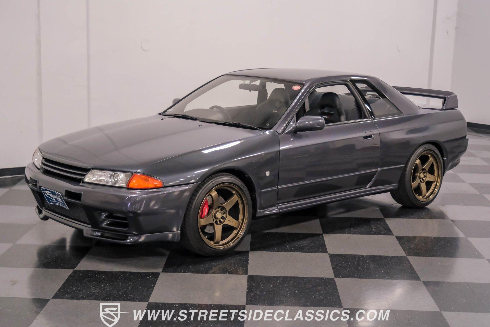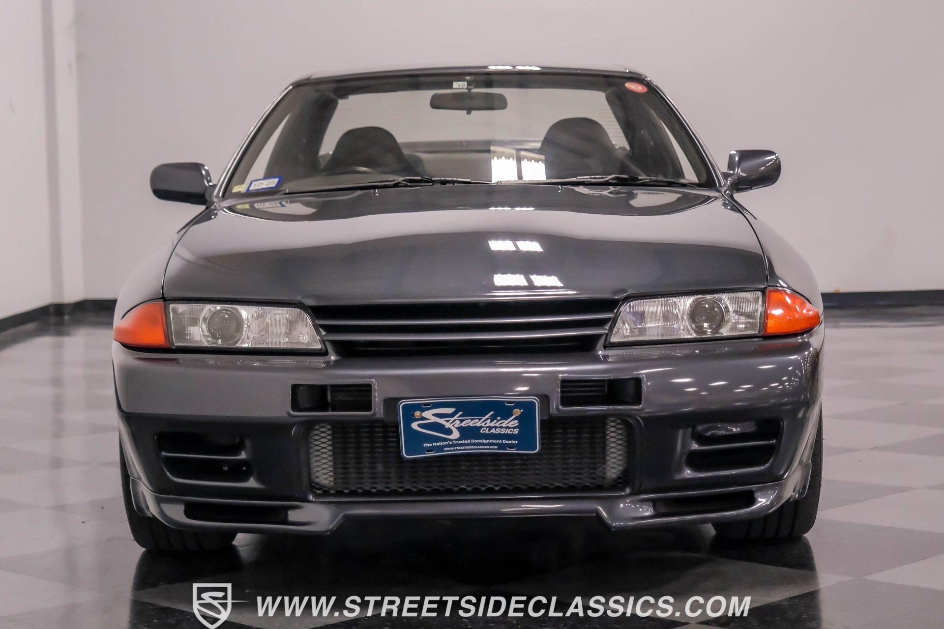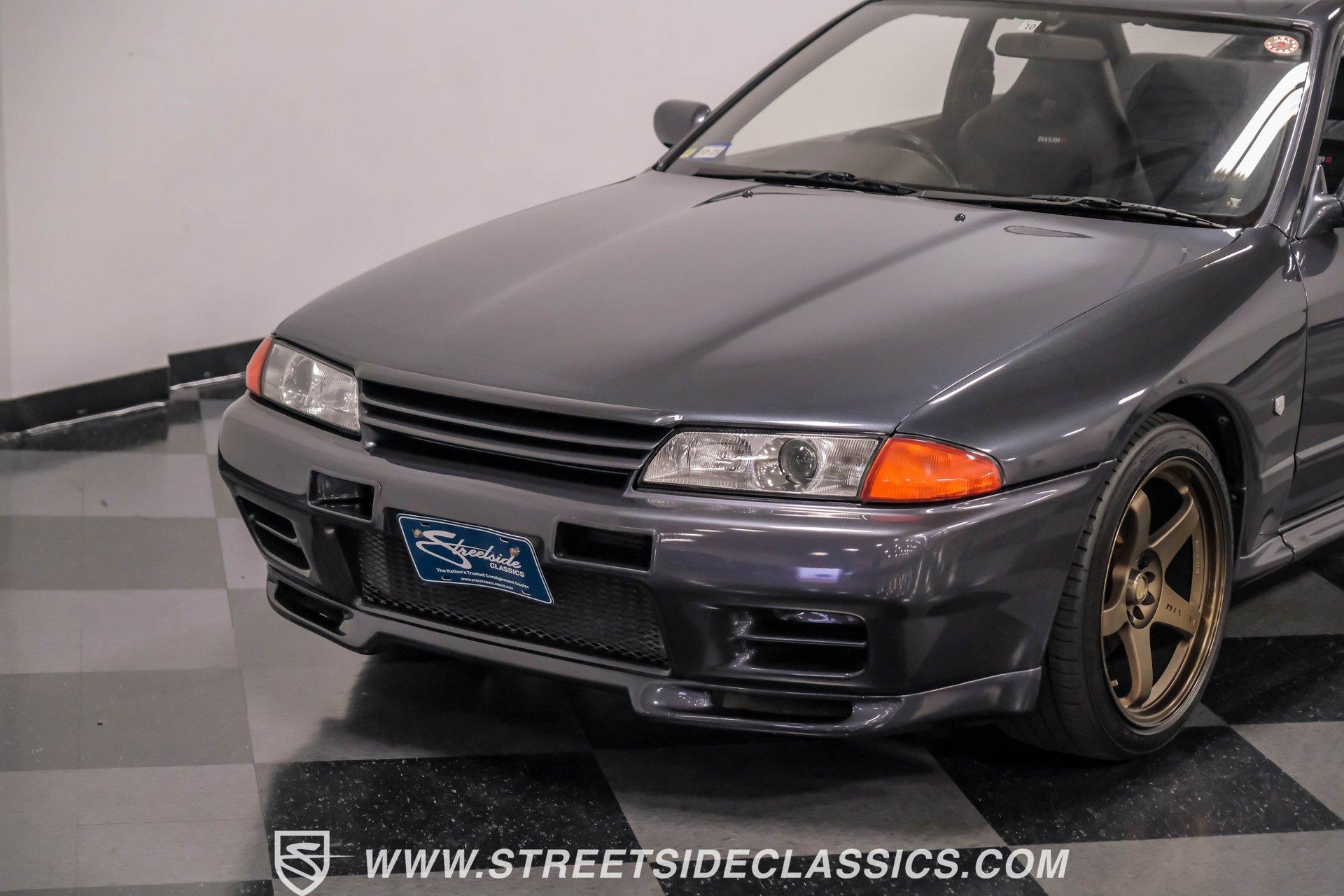 Fresh from Okinawa, Japan, this 1992 Nissan Skyline GT-R R32 showcases the raw power that made these machines legendary. The gunmetal gray metallic exterior amplifies the R32's muscular lines, while gold 18-inch Nismo one-piece forged wheels provide an exceptional contrast. A rear spoiler adds aerodynamic function, while the 235/40ZR18 Michelin tires on all four corners plant this Japanese performance icon firmly on the pavement. The black interior features authentic Nismo leather bucket seats that keep you anchored during high-speed maneuvers. A Momo steering wheel puts all the control at your fingertips, while power windows and locks add convenience. The fold-out touchscreen radio and upgraded sound system bring modern audio performance, supported by air conditioning that maintains your comfort zone during intense driving sessions. The legendary RB26DETT 2.6-liter twin-turbo inline-six engine links to a 5-speed manual transmission and 4-wheel steering system, creating pure automotive excellence. Nismo struts enhance the handling characteristics, working in concert with the strut suspension and sway bars front and rear. Power disc brakes at all corners deliver strong stopping ability, while the upgraded exhaust system announces your arrival with authority. HIGHLIGHTS: RB26DETT 2.6L Twin-Turbo Inline-6 Engine 5-Speed Manual Transmission Electronic Fuel Injection 4-Wheel Steering System Nismo Struts Power Disc Brakes Front and Rear Strut Suspension with Sway Bars Upgraded Exhaust System All-Wheel Drive System Gunmetal Gray Metallic Paint 18-inch Nismo One-Piece Forged Wheels 235/40ZR18 Michelin Tires Rear Spoiler Factory Glass Black Leather Interior with Nismo Bucket Seats Momo Steering Wheel Power Windows and Locks Air Conditioning Fold-Out Touchscreen Radio Upgraded Sound System Wheel Lock This 1992 Nissan Skyline GT-R R32, restored in and imported directly from Japan, combines the legendary RB26DETT engine with authentic Nismo upgrades and modern audio equipment to create an exceptional Japanese performance machine. Call today!