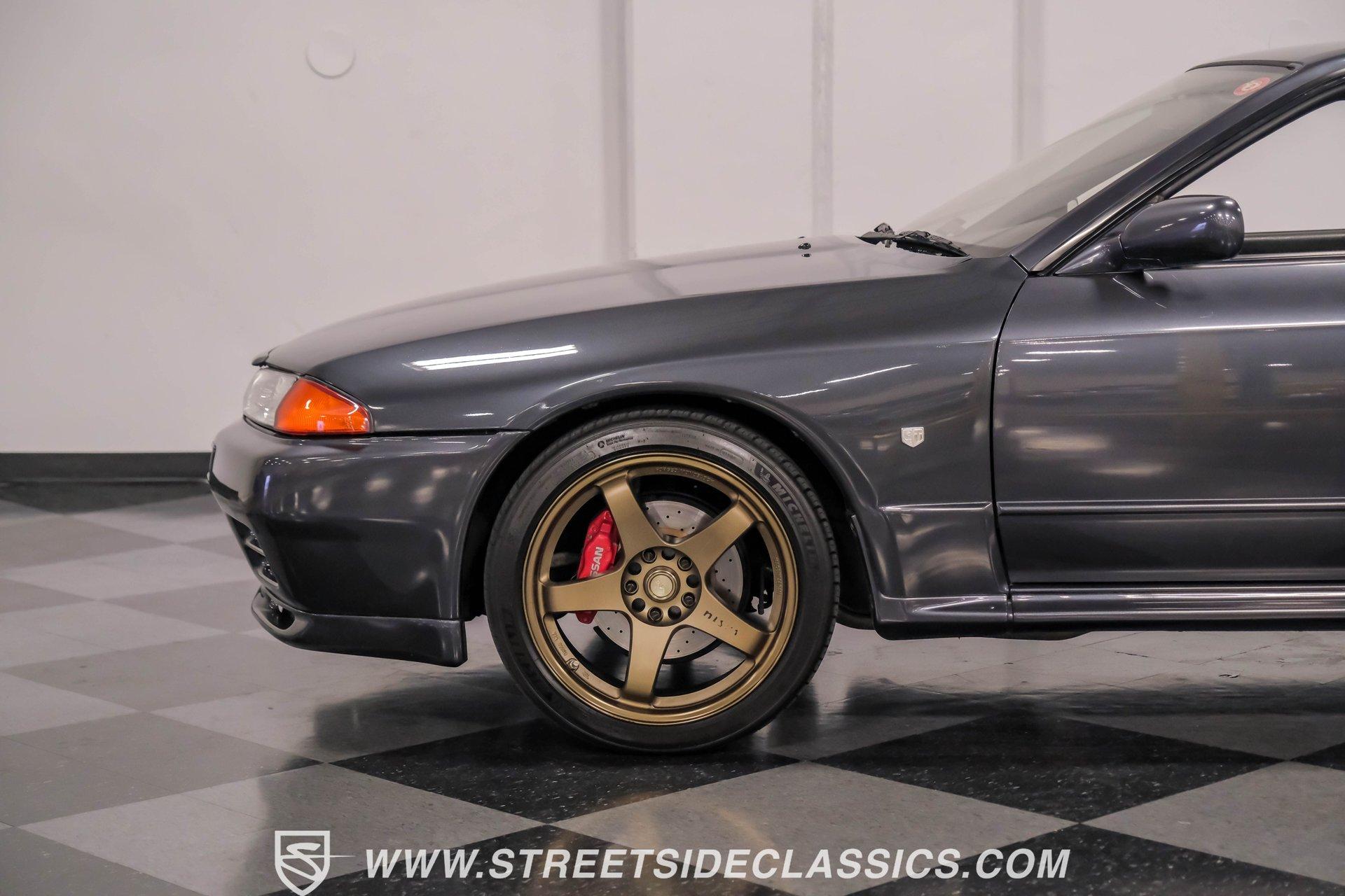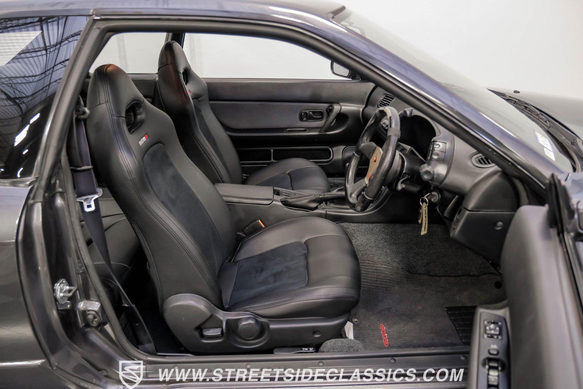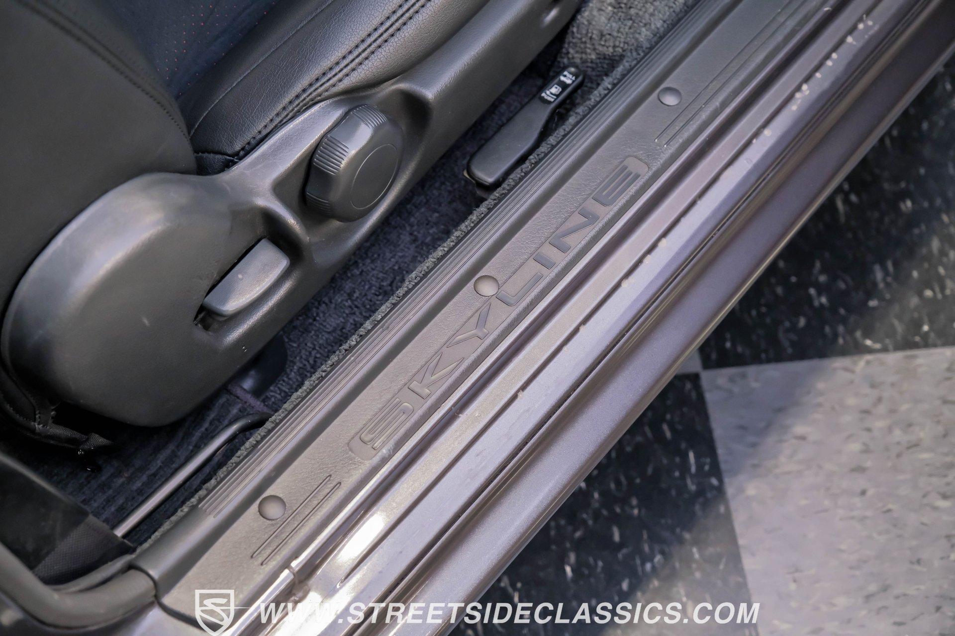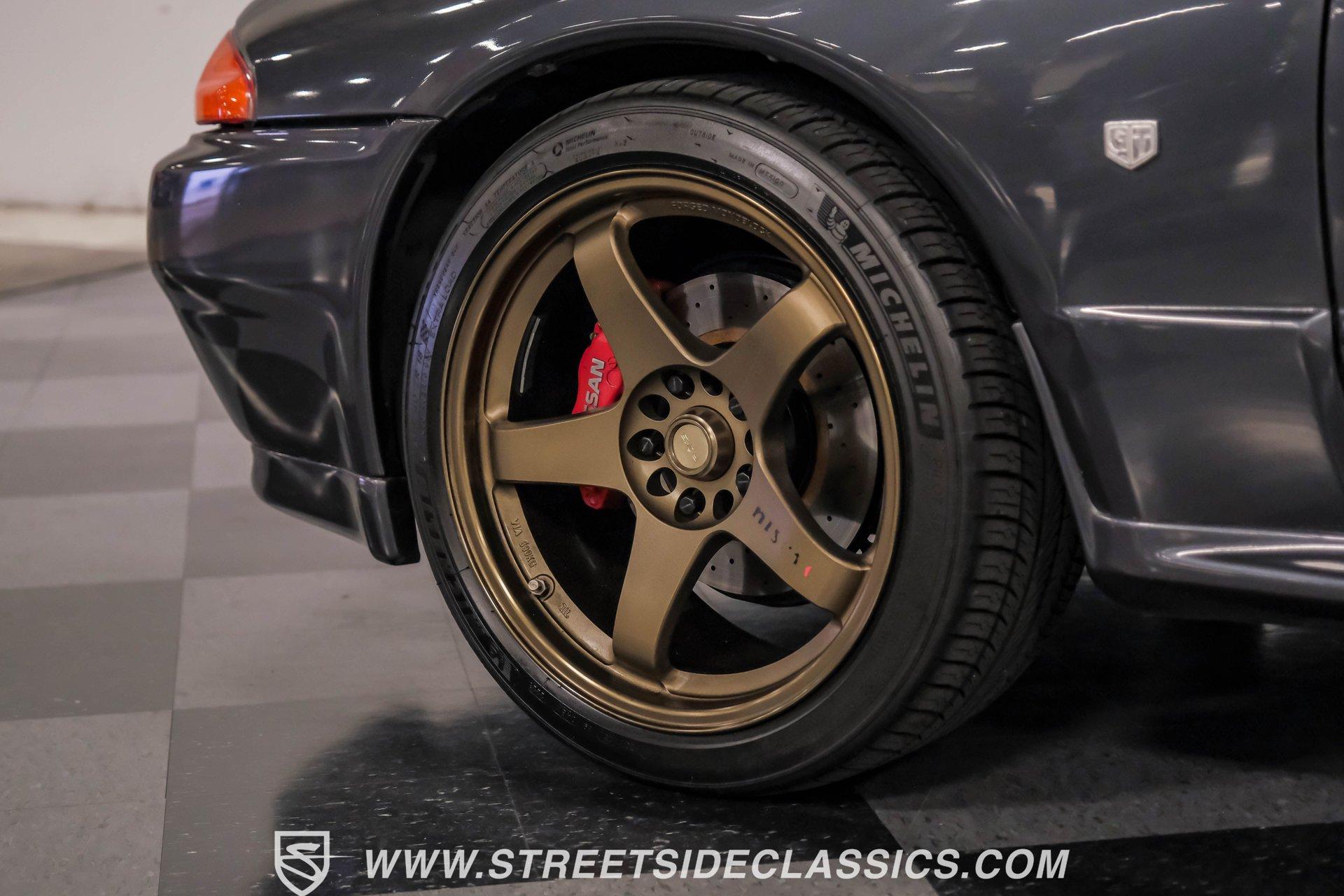 Fresh from Okinawa, Japan, this 1992 Nissan Skyline GT-R R32 showcases the raw power that made these machines legendary. The gunmetal gray metallic exterior amplifies the R32's muscular lines, while gold 18-inch Nismo one-piece forged wheels provide an exceptional contrast. A rear spoiler adds aerodynamic function, while the 235/40ZR18 Michelin tires on all four corners plant this Japanese performance icon firmly on the pavement. The black interior features authentic Nismo leather bucket seats that keep you anchored during high-speed maneuvers. A Momo steering wheel puts all the control at your fingertips, while power windows and locks add convenience. The fold-out touchscreen radio and upgraded sound system bring modern audio performance, supported by air conditioning that maintains your comfort zone during intense driving sessions. The legendary RB26DETT 2.6-liter twin-turbo inline-six engine links to a 5-speed manual transmission and 4-wheel steering system, creating pure automotive excellence. Nismo struts enhance the handling characteristics, working in concert with the strut suspension and sway bars front and rear. Power disc brakes at all corners deliver strong stopping ability, while the upgraded exhaust system announces your arrival with authority. HIGHLIGHTS: RB26DETT 2.6L Twin-Turbo Inline-6 Engine 5-Speed Manual Transmission Electronic Fuel Injection 4-Wheel Steering System Nismo Struts Power Disc Brakes Front and Rear Strut Suspension with Sway Bars Upgraded Exhaust System All-Wheel Drive System Gunmetal Gray Metallic Paint 18-inch Nismo One-Piece Forged Wheels 235/40ZR18 Michelin Tires Rear Spoiler Factory Glass Black Leather Interior with Nismo Bucket Seats Momo Steering Wheel Power Windows and Locks Air Conditioning Fold-Out Touchscreen Radio Upgraded Sound System Wheel Lock This 1992 Nissan Skyline GT-R R32, restored in and imported directly from Japan, combines the legendary RB26DETT engine with authentic Nismo upgrades and modern audio equipment to create an exceptional Japanese performance machine. Call today!