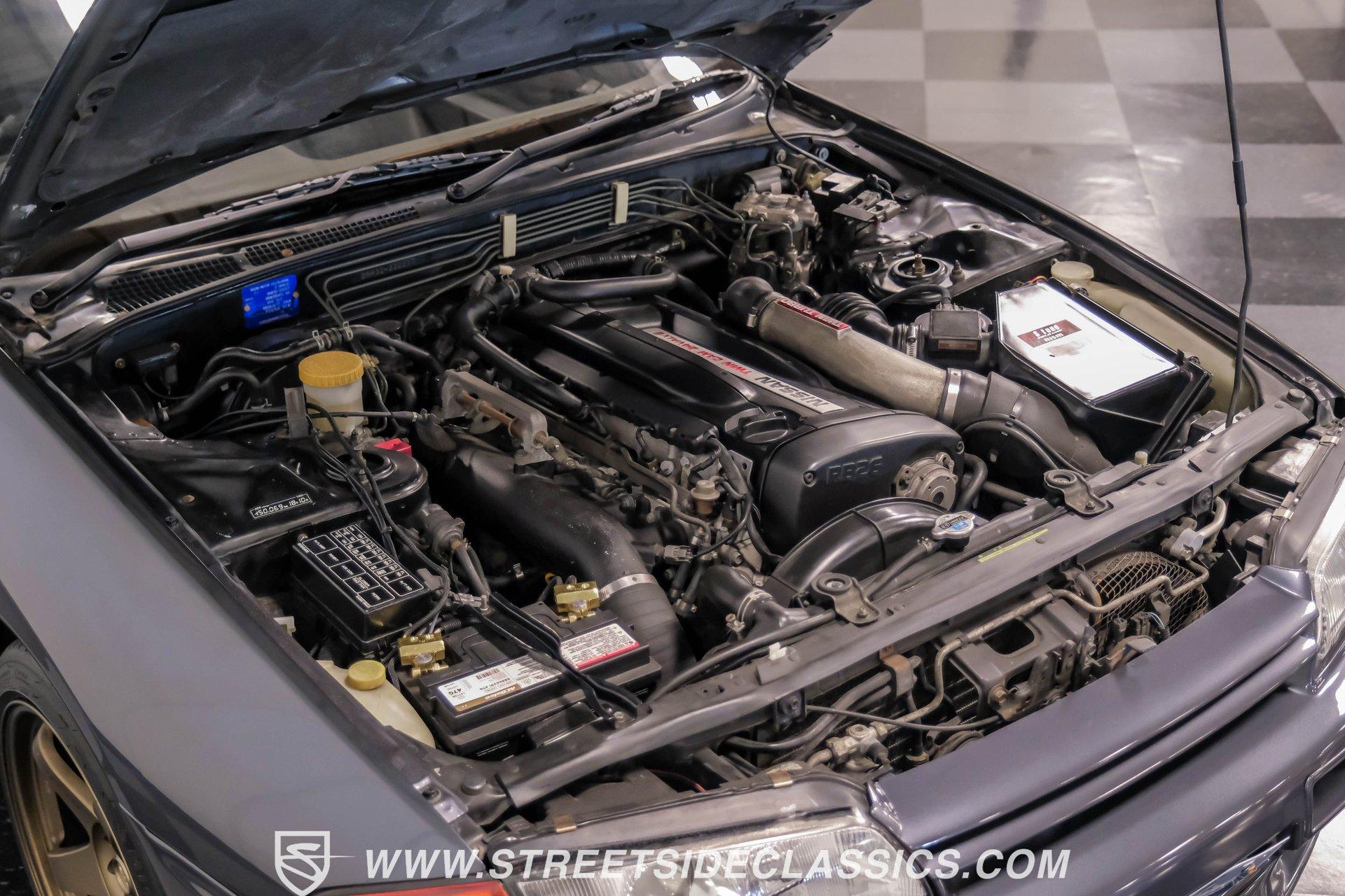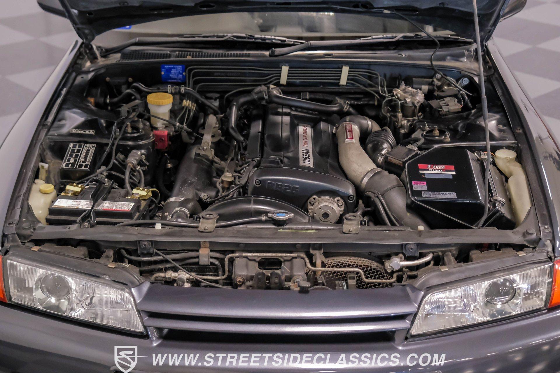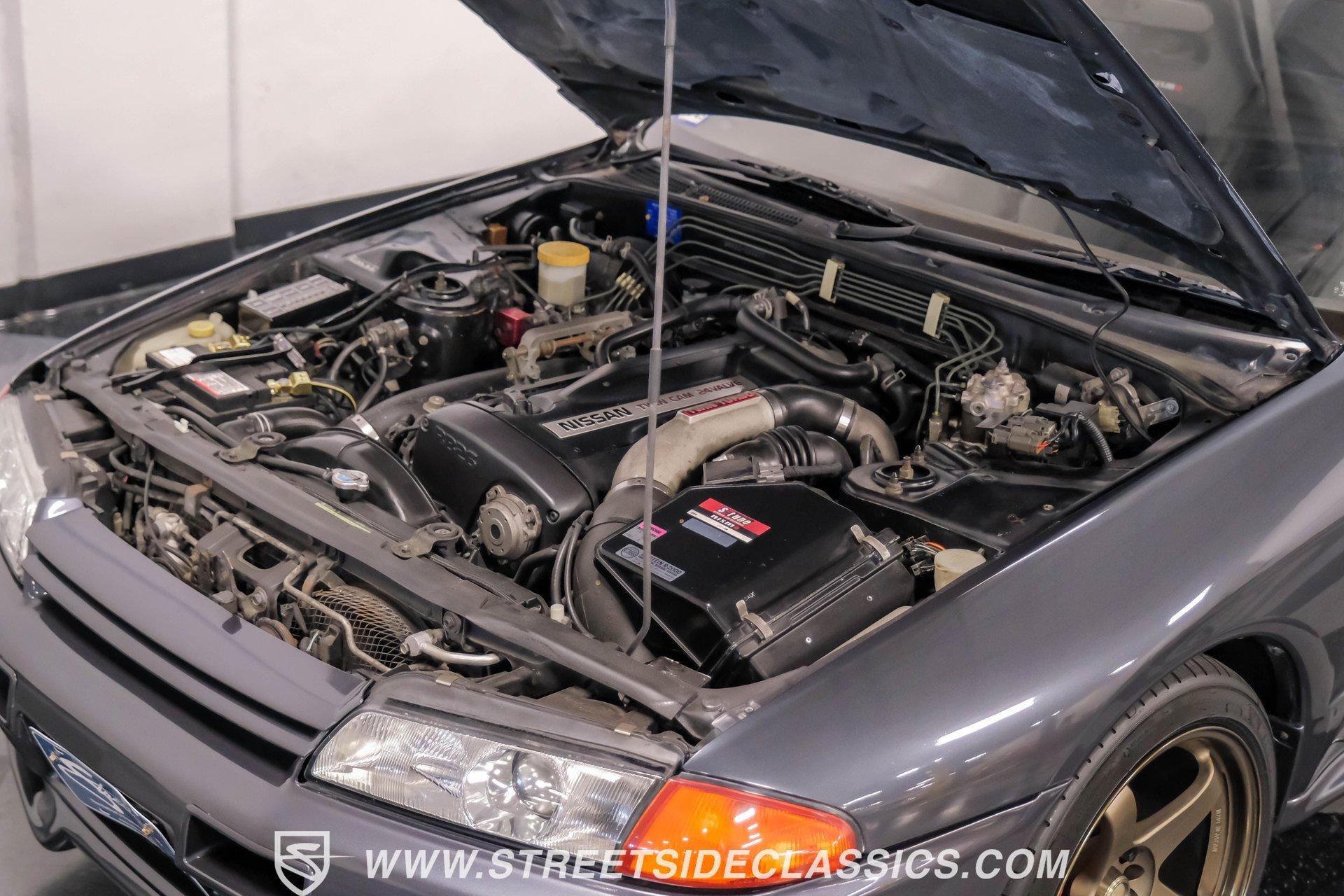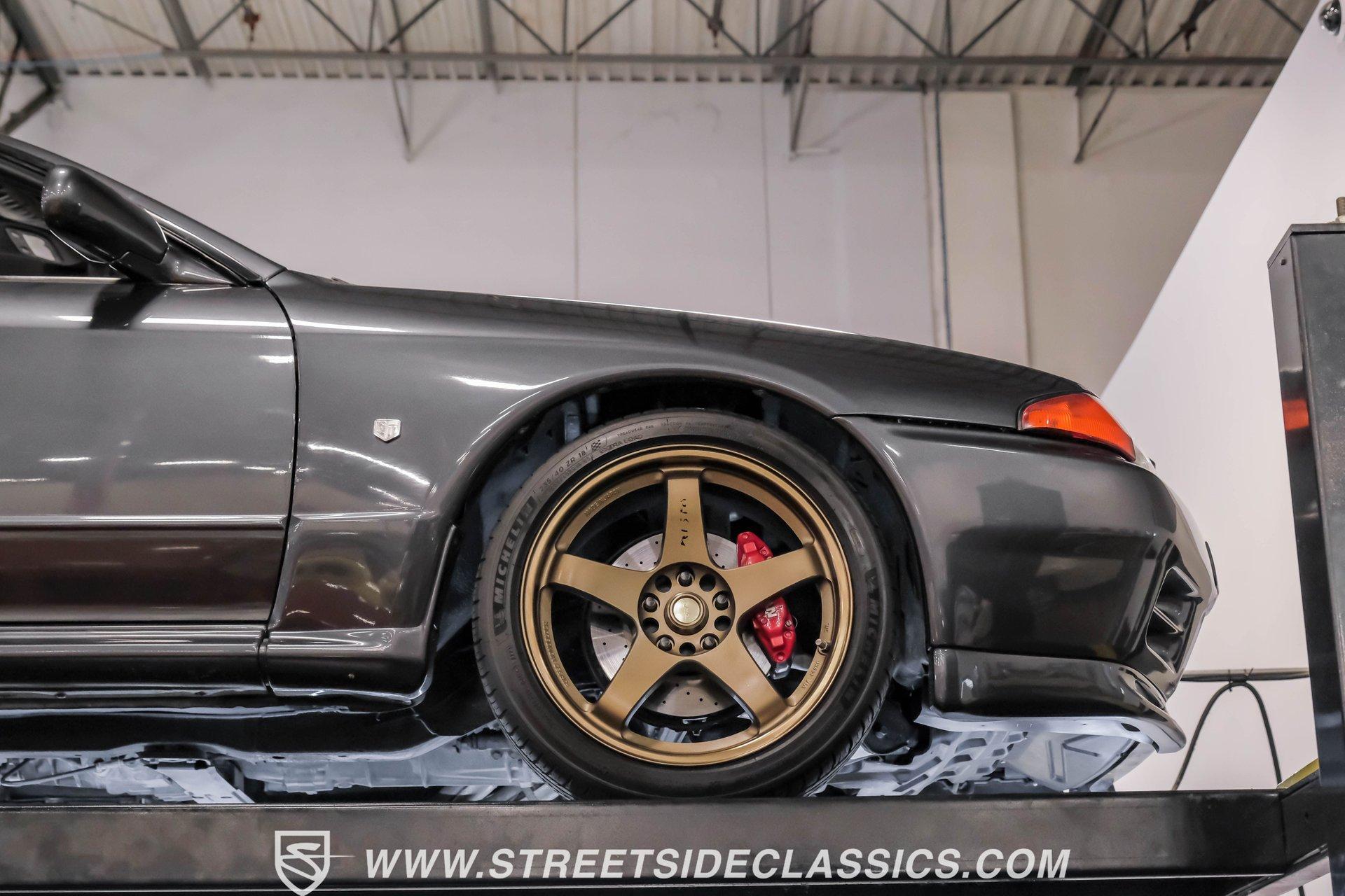 Fresh from Okinawa, Japan, this 1992 Nissan Skyline GT-R R32 showcases the raw power that made these machines legendary. The gunmetal gray metallic exterior amplifies the R32's muscular lines, while gold 18-inch Nismo one-piece forged wheels provide an exceptional contrast. A rear spoiler adds aerodynamic function, while the 235/40ZR18 Michelin tires on all four corners plant this Japanese performance icon firmly on the pavement. The black interior features authentic Nismo leather bucket seats that keep you anchored during high-speed maneuvers. A Momo steering wheel puts all the control at your fingertips, while power windows and locks add convenience. The fold-out touchscreen radio and upgraded sound system bring modern audio performance, supported by air conditioning that maintains your comfort zone during intense driving sessions. The legendary RB26DETT 2.6-liter twin-turbo inline-six engine links to a 5-speed manual transmission and 4-wheel steering system, creating pure automotive excellence. Nismo struts enhance the handling characteristics, working in concert with the strut suspension and sway bars front and rear. Power disc brakes at all corners deliver strong stopping ability, while the upgraded exhaust system announces your arrival with authority. HIGHLIGHTS: RB26DETT 2.6L Twin-Turbo Inline-6 Engine 5-Speed Manual Transmission Electronic Fuel Injection 4-Wheel Steering System Nismo Struts Power Disc Brakes Front and Rear Strut Suspension with Sway Bars Upgraded Exhaust System All-Wheel Drive System Gunmetal Gray Metallic Paint 18-inch Nismo One-Piece Forged Wheels 235/40ZR18 Michelin Tires Rear Spoiler Factory Glass Black Leather Interior with Nismo Bucket Seats Momo Steering Wheel Power Windows and Locks Air Conditioning Fold-Out Touchscreen Radio Upgraded Sound System Wheel Lock This 1992 Nissan Skyline GT-R R32, restored in and imported directly from Japan, combines the legendary RB26DETT engine with authentic Nismo upgrades and modern audio equipment to create an exceptional Japanese performance machine. Call today!