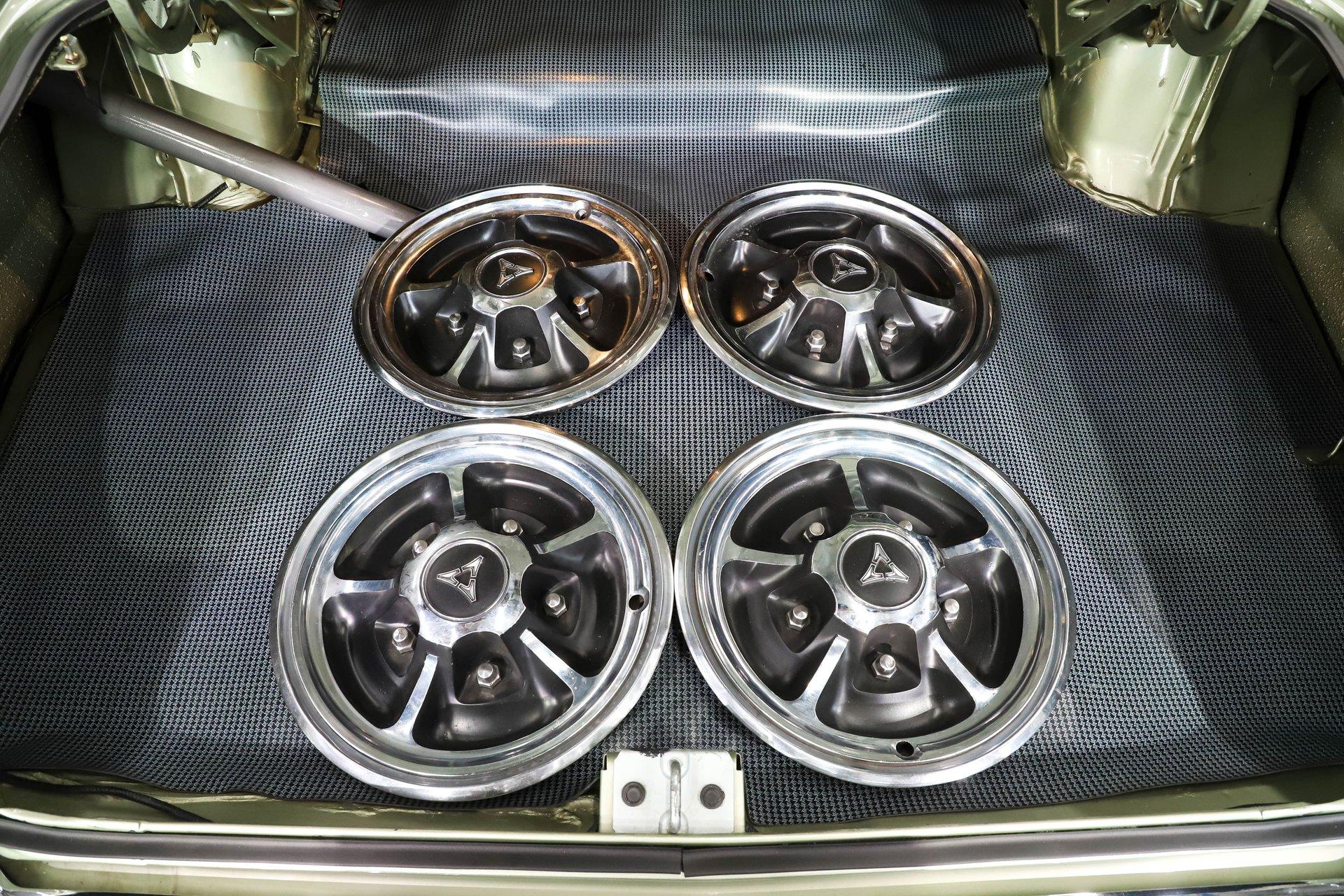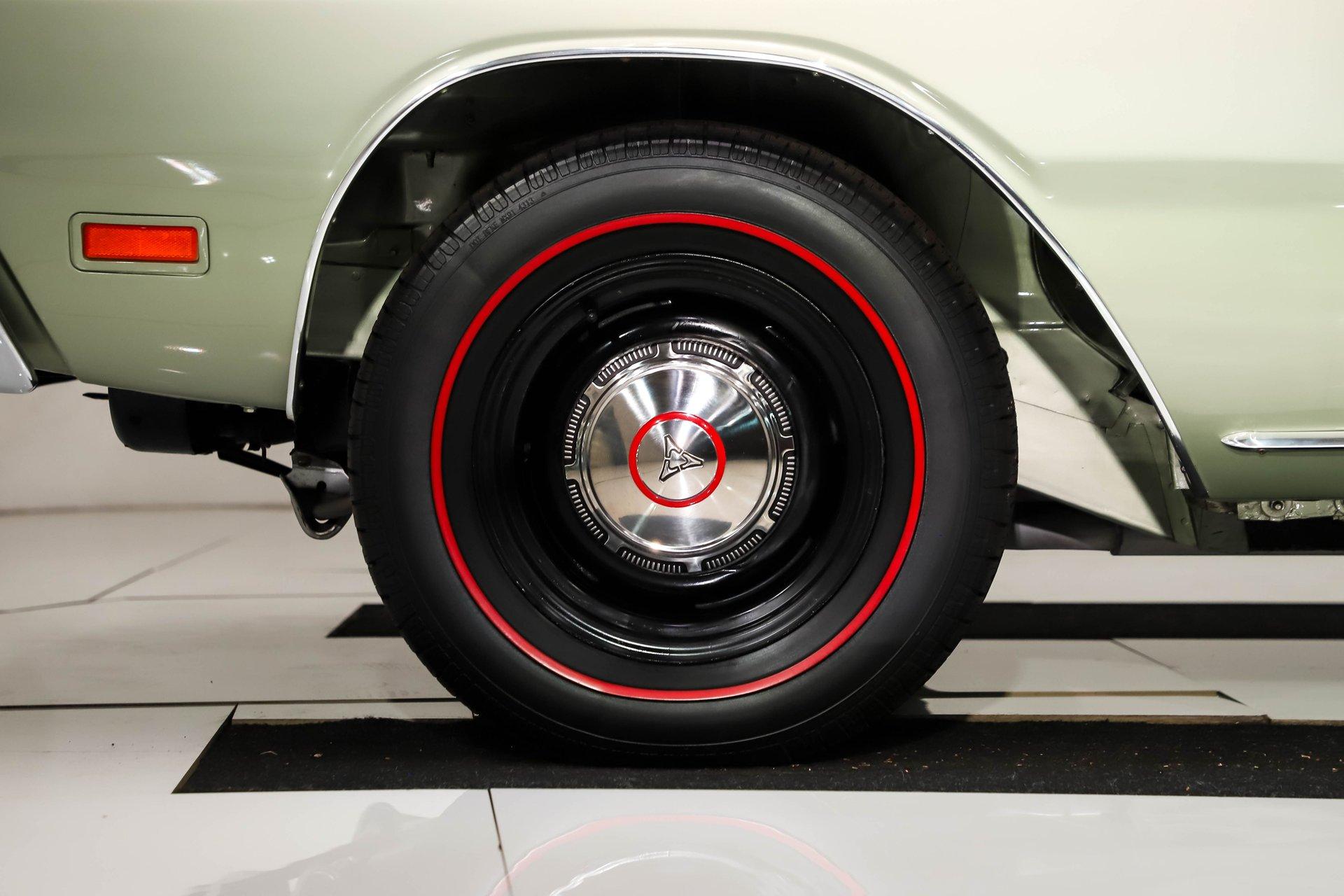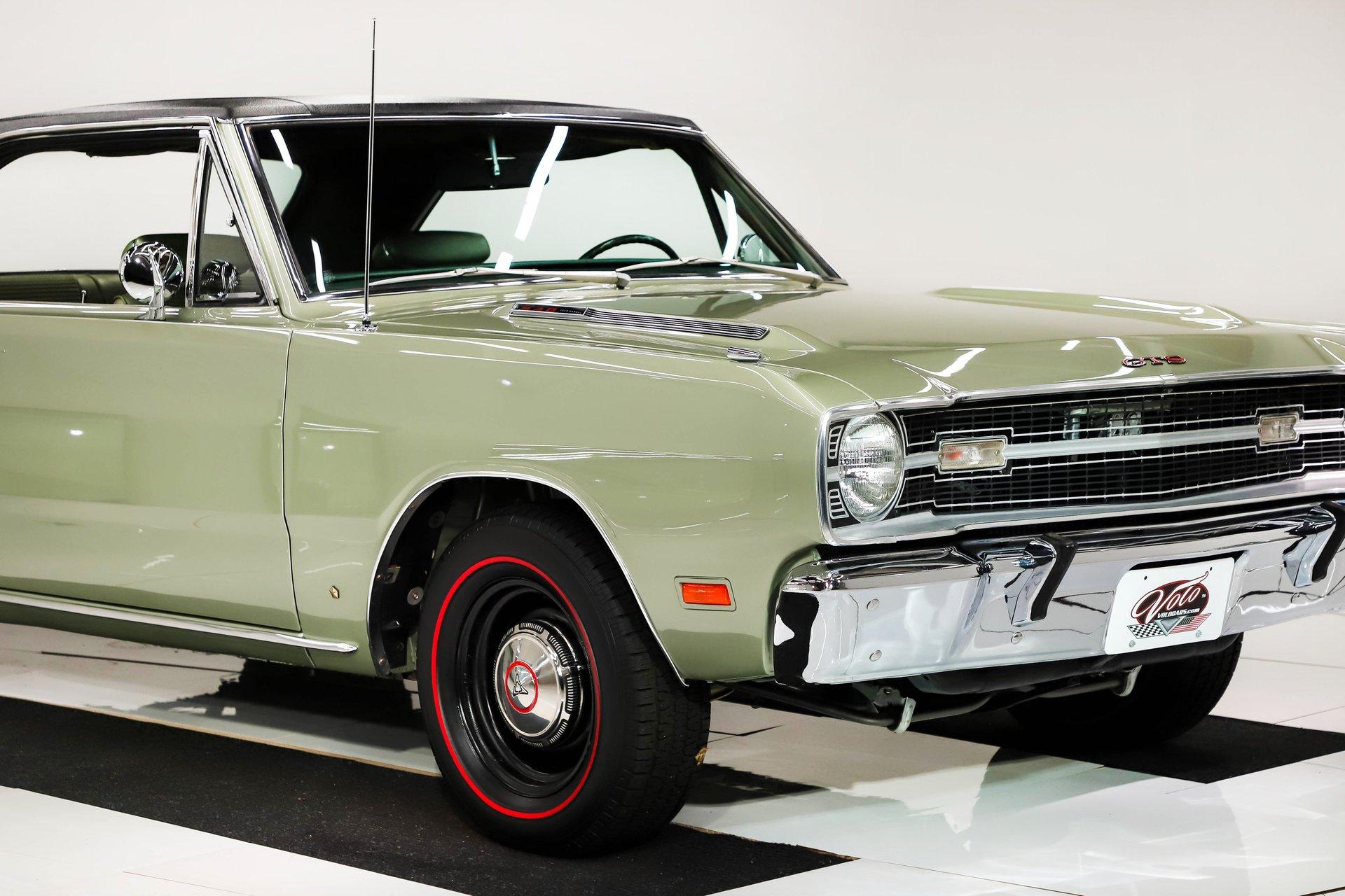 From the very prestigious Wellborn collection! This is one of the cleanest Darts I've ever seen. It features very desirable bucket seats with a center console plus the original #’s matching 340 engine purrs like a kitten. The fit and finishes throughout are as good as new or better. If you are searching for the best, look no further! EXTERIOR: This one's exceptional folks! The fit and finish are better than when it rolled off the assembly line. The paint is like smooth glass. The gaps are square and flush and they're very precise. It even has the Pentastar emblem on the fender like it's supposed to. 100% arrow straight and the doors close easily like a new car. The Light Green Poly has some metal flake that is laid out evenly. The clear coat finish is wet looking. I love the bulges on the hood and the 340 4 Barrel call outs that came with the GTS. It also has the optional fender mounted turn signals. The trim and front grille both look to be very nice original. The windshield and rear window are crystal clear. It has the deluxe mirrors on both sides. The door handles look new, and the vinyl top is pristine. Also has the optional bumblebee stripe that's a vinyl decal. The bumpers were rechromed and the tail panel looks to be very good original. It has the poverty hubcaps with steel rims. New redline tires are actually BFGoodrich with custom red lines put on. INTERIOR: The top of the door metal is all nicely painted. The door panels and armrests were all replaced. I really like the GT Sport emblem on the door panels too. It has a new dash pad and the entire instrument panel is very clean. The lenses, gauges, knobs, heater controls are all fantastic. Original style thumbwheel radio is in place. All the lights work. A center console with shifter and bucket seats are an oddity in these Darts, most were bench with a column shifter. The seats have been rebuilt and the upholstery is tight like a drum with a nice spring cushion too. Upholstered headrests look great. The rear seat was also redone and has a set of original seatbelts. The rear shelf has a fairly rare rear defroster blower. The headliner is replaced with no wrinkles and the carpet looks great. The visors and mirror look like new. Also has an authentic style steering wheel. ENGINE COMPARTMENT: Every component was restored. It has 2 very desirable features: power steering and brakes! At the heart of it is the VIN # matching 340 engine rated at 275 horsepower which is quite potent for such a little car. All very stock looking with the manifolds and valve covers. It's an upgraded carburetor with an electric choke that is topped off with a crinkle finish air cleaner and the pie tin on top. It has the correct hoses, and the plug wires are dated and run properly. The horns are hooked up and it has the right radiator cap, fan shroud, and hose clamps. The Mopar battery topper gives an authentic look. Three speed wiper motor is restored, squirters are hooked up. The engine bay is painted as nice as the exterior. Assembly line paint dabs were even duplicated. The original fender tag is still in place. Under the hood is complete with insulation. TRUNK COMPARTMENT: It is a completely restored trunk compartment like it just rolled off the assembly line. Underneath the trunk lid is painted real nicely to match the exterior. This car has the optional light package so it's a working trunk lamp. The deluxe hubcaps stored in the trunk will go with the car. Also comes with a spare tire, jack assembly and rubber mat. UNDERSIDE: Underneath this car is really clean and the floors are spotless metal. It is a factory undercoat car that was cleaned and dusted with black paint to make it look fresh again. The entire front-end steering and suspension was rebuilt and detailed. looks fresh. The rear springs and bushings look fresh, it has upgraded air shocks. The brake system was all checked out and the emergency brake is hooked up. Looking up at the VIN #’s matching motor, it's clean with a fresh starter. The correct 727 Torqueflite automatic trans is shifting great. In back is an 8 ¾ rear end with 3.23 gears. SERVICE: Our shop manager thoroughly inspected this car, and we tightened the trans pan, installed a trim piece, and serviced the brakes. It was very dialed in when we purchased it! This car is from one of the most prestigious Mopar collections in the world, the Wellborn Collection. We sell a lot of Darts, the condition of this one is one of the best and the option list is desirable. Buckets, console, power steering and brakes are not commonly found on the Dart. Act fast!! There will be other Darts, but they won't be this one! For nearly 30 years, I, Jay Grams, have personally written the highlights for almost every car in our collection. What I provide is my professional opinion based on my experience with these vehicles. However, opinions can vary, and I strongly recommend a personal inspection to form your own view. Our sales team is always available to answer any questions you may have. One great option is to request a personalized walk-around video, where we can showcase the car and share our team’s insights. **Our cars are displayed within a museum setting. If you are interested in a specific vehicle, please schedule an appointment with a salesperson to view it. Without an appointment, there is an admission fee to enter the showroom. If you decide to purchase a car, your admission will be refunded, and you'll receive a one-year museum membership. ☎️ 815 385 3644 9-5 central ? Sales@volocars.com Power steering Power brakes Bucket seats Headrests Center console Light package Factory gauges Tachometer Remote mirror Rear defrost Poverty hubcaps Radial redlines Dual mirrors Vinyl top Bumblebee stripe Bumper guards Fender turn signals