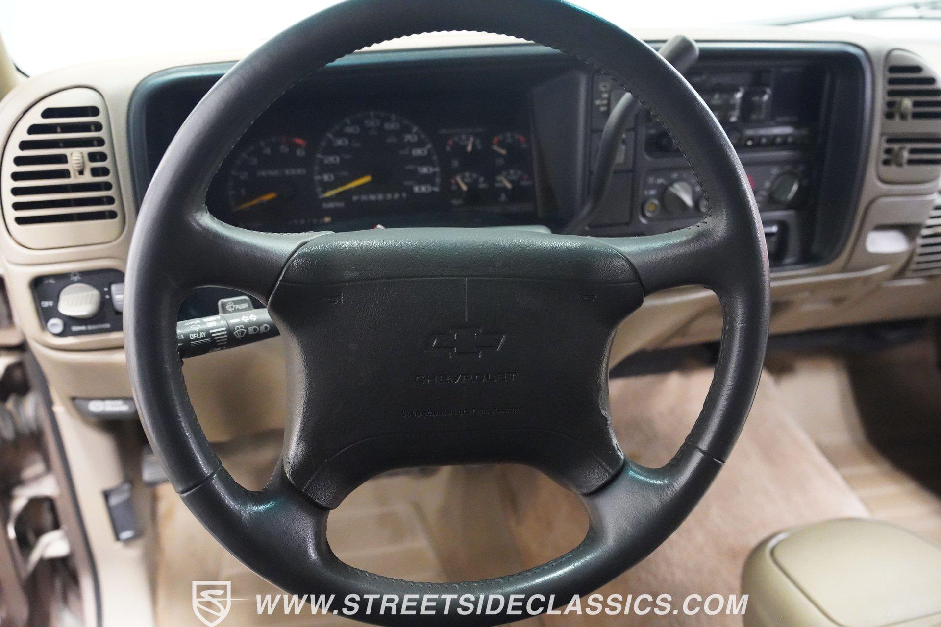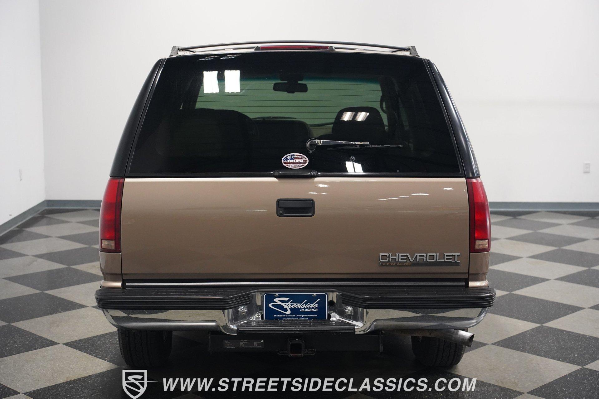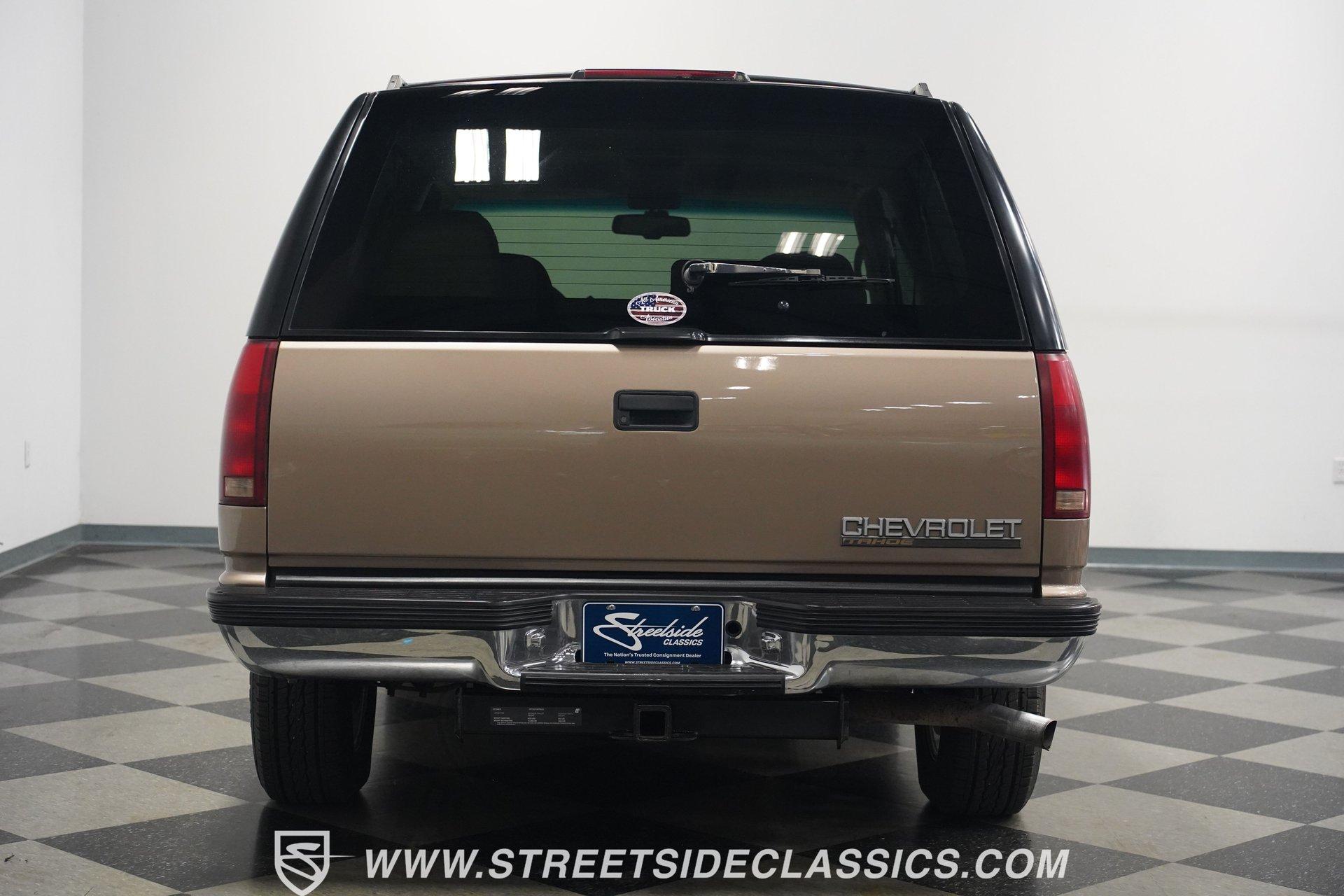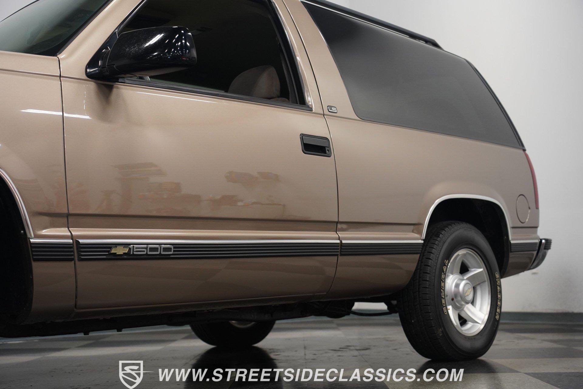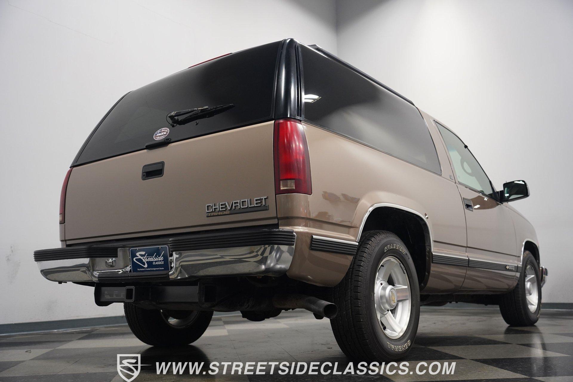The two-door configuration of this 1996 Chevrolet Tahoe makes it an exclusive find, designed for those who value both style and capability. The Light Autumnwood Metallic finish amplifies its bold presence, achieved through a complete professional respray. The elevated stance, supported by 16-inch alloy wheels and 235/70R16 tires, gives this SUV its trail-ready posture. The clean lines of the two-door body style create an athletic profile that's perfect for both city streets and backroad adventures. The neutral cloth interior welcomes occupants with supportive bucket seats that offer excellent visibility of the terrain ahead. The thoughtfully laid out cockpit places every control within easy reach, from the column shifter to the tilt steering wheel. Power windows and locks add convenience, while the AM/FM cassette player provides the soundtrack for your next expedition. The center console offers additional storage for essential gear. The 5.7-liter V8 engine delivers power through the responsive 4L60E 4-speed automatic transmission. The combination of power steering and front disc brakes translates to precise control on any surface. The factory-style dual-to-single exhaust system provides the right note for this capable machine. Coil springs with shocks up front and leaf springs in the rear maintain stability, while the 3.42 rear axle ratio balances performance and efficiency. HIGHLIGHTS: 5.7 Liter V8 Engine 4L60E 4-Speed Automatic Transmission Electronic Fuel Injection Power Steering Front Disc Brakes 3.42 Rear Axle Ratio Coil Spring Front Suspension Leaf Spring Rear Suspension Dual to Single Exhaust Light Autumnwood Metallic Paint 16-inch Alloy Wheels in 235/70R16 Tires Full Professional Respray Neutral Interior with Bucket Seats Column Shift Power Windows Power Locks Tilt Steering Wheel Center Console AM/FM Cassette Player Owner's Manual This 1996 Chevrolet Tahoe two-door combines V8 power, impressive capability, and comfort into one versatile package. Perfect for both daily driving and weekend exploration, this SUV delivers exactly what you need. Call today!