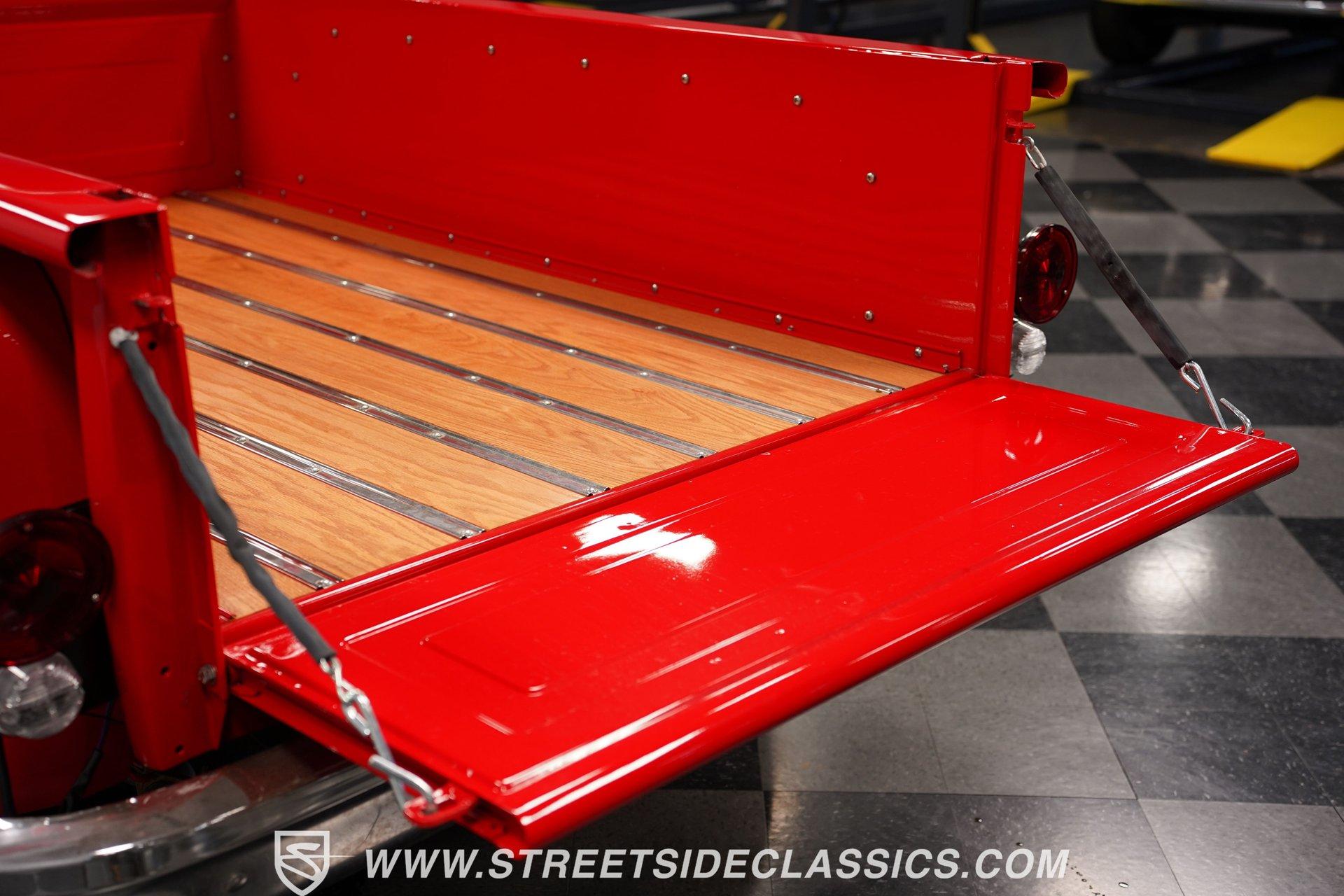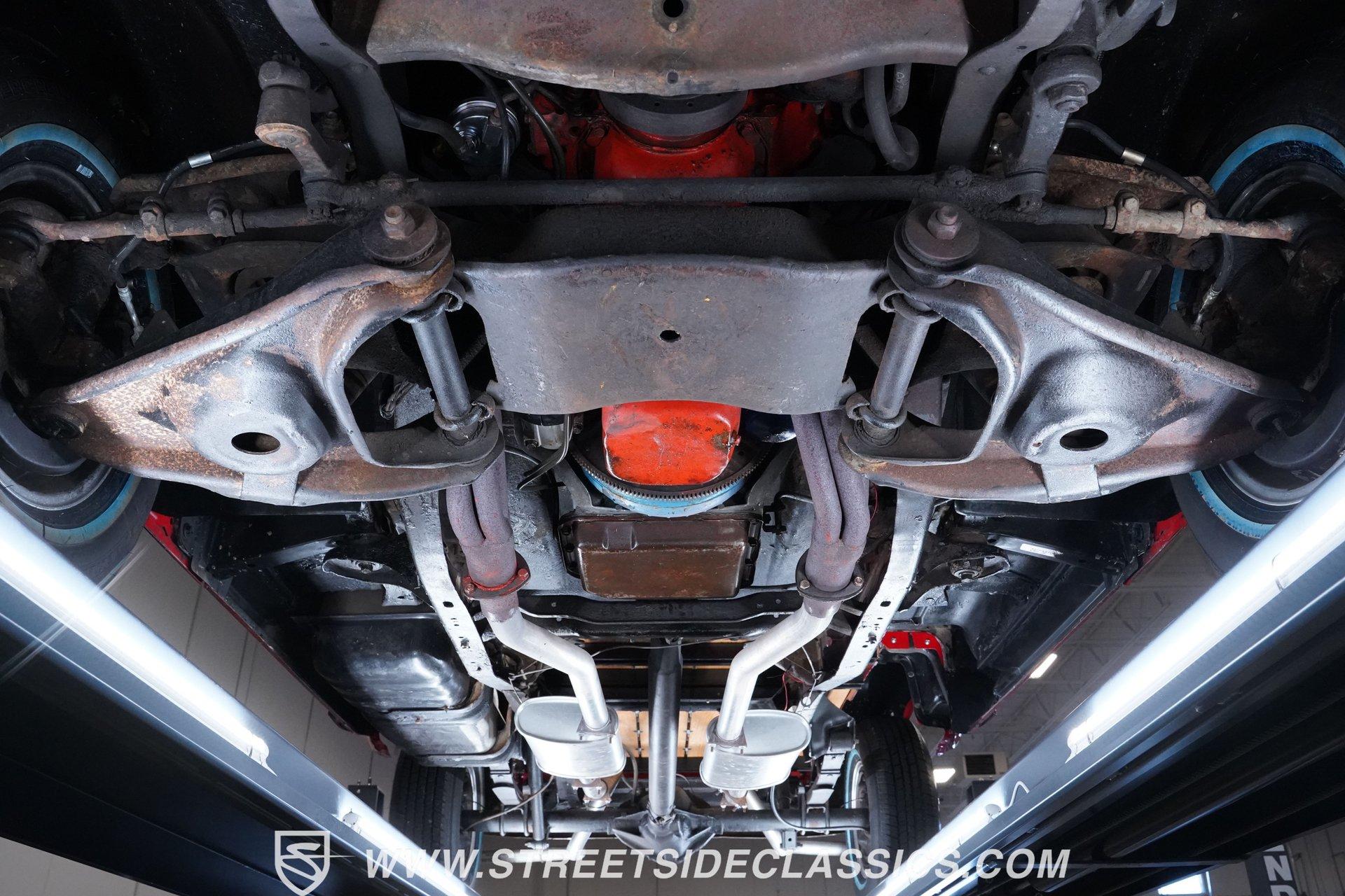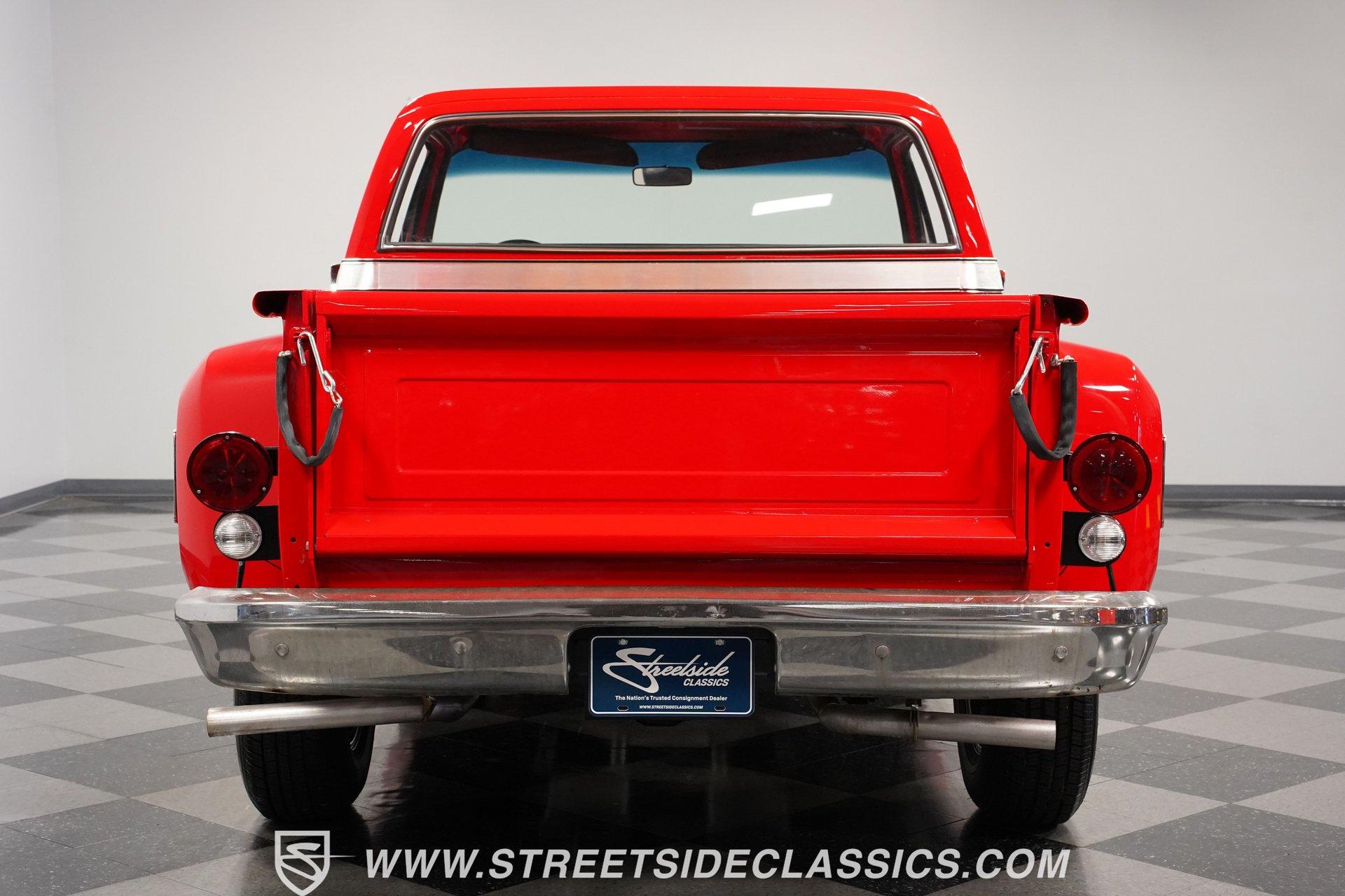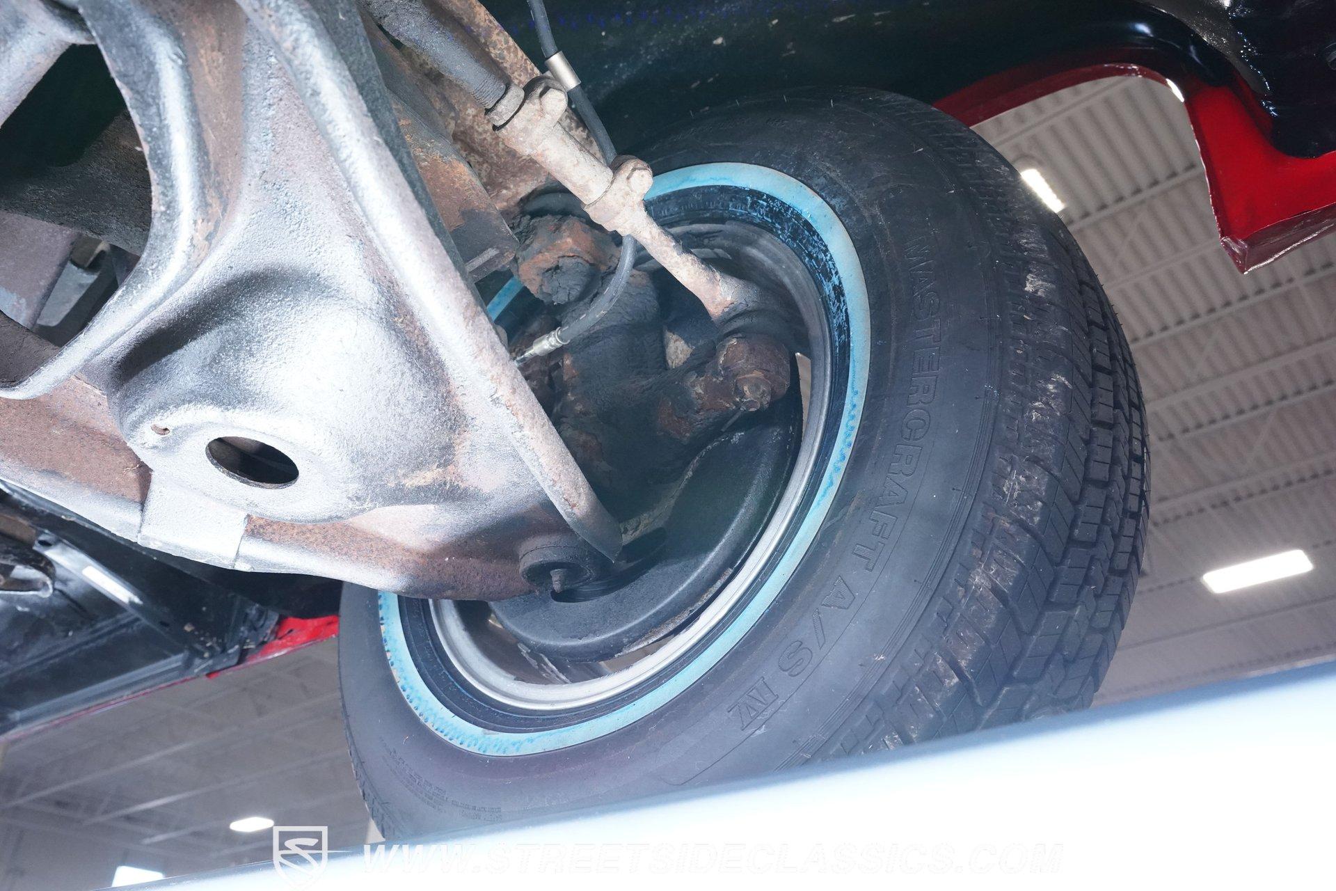 This 1973 Chevrolet C10 rolls with bold red paint and style, marking the first year of the iconic "Squarebody" design. The custom wood bed adds a rugged yet refined element, while 15-inch American Racing wheels fill the wheel wells with authority. The clean lines are amplified by long tube headers extending through the sides, accompanied by 235/75R15 tires on all four corners. The red finish plays well against the chrome bumpers and trim, creating a classic pickup aesthetic. The red and white vinyl interior brings the cabin a clean, two-tone look. A bench seat provides ample room, while the column shifter keeps the floor clear. The dash features original gauges beneath a newer dash pad, complemented by factory heat controls and an AM radio. Power steering makes maneuvering effortless, while rubber floor mats protect the cabin's foundation. A 350 V8 engine, bored .030 over, teams with a TH350 automatic transmission to deliver impressive performance. The powerplant breathes through an Edelbrock four-barrel carburetor and wears matching valve covers. Long tube headers feed into an aftermarket exhaust system for added output. Power disc brakes up front provide strong stopping capability, while the 12-bolt rear end puts the power down effectively. The suspension utilizes control arms with coil springs up front and traditional leaf springs in the rear. HIGHLIGHTS: 350 V8 (.bored .030) TH350 Automatic Transmission Edelbrock 4-Barrel Carburetor Long Tube Headers and aftermarket exhaust 12-Bolt Rear End Power Disc Brakes 15" American Racing Wheels in 235/75R15 Tires Custom Wood Bed Power Steering AM Radio New Dash Pad This 1973 Chevrolet C10 combines classic truck capability with the power of a 350 V8. The red paint, custom wood bed, and American Racing wheels create a strong street presence. Get behind the wheel of this first-year Squarebody. Call today!