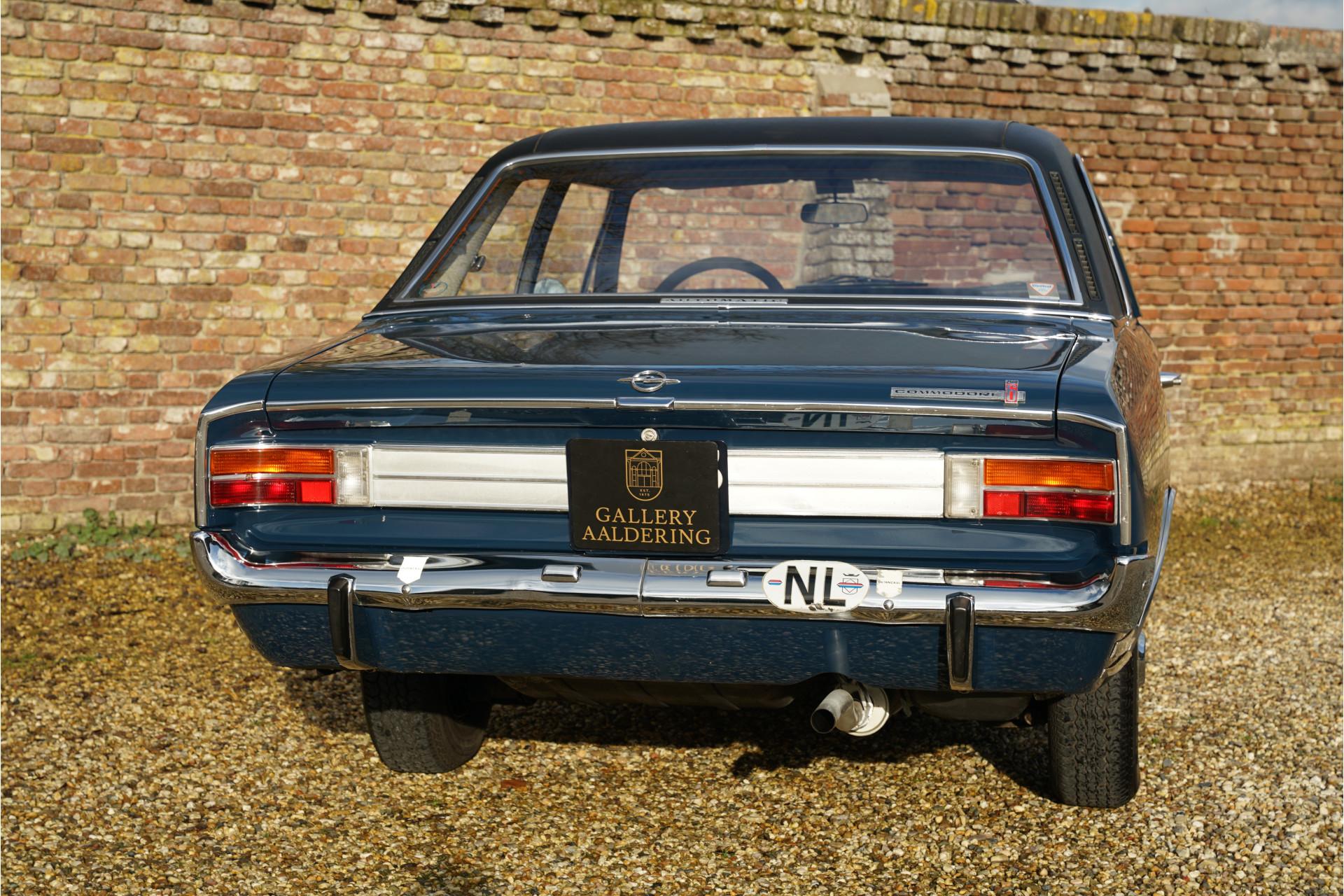 This is an originally Dutch-delivered vehicle, fortunately with its original license plate. The previous owner was a genuine enthusiast and cherished this Commodore. In the past, this car was restored and overhauled, and as a result, the car is in good condition. With a neat vinyl roof and a beautiful body color, it is a handsome sight. The brightwork, along with the decorative strips, presents well.