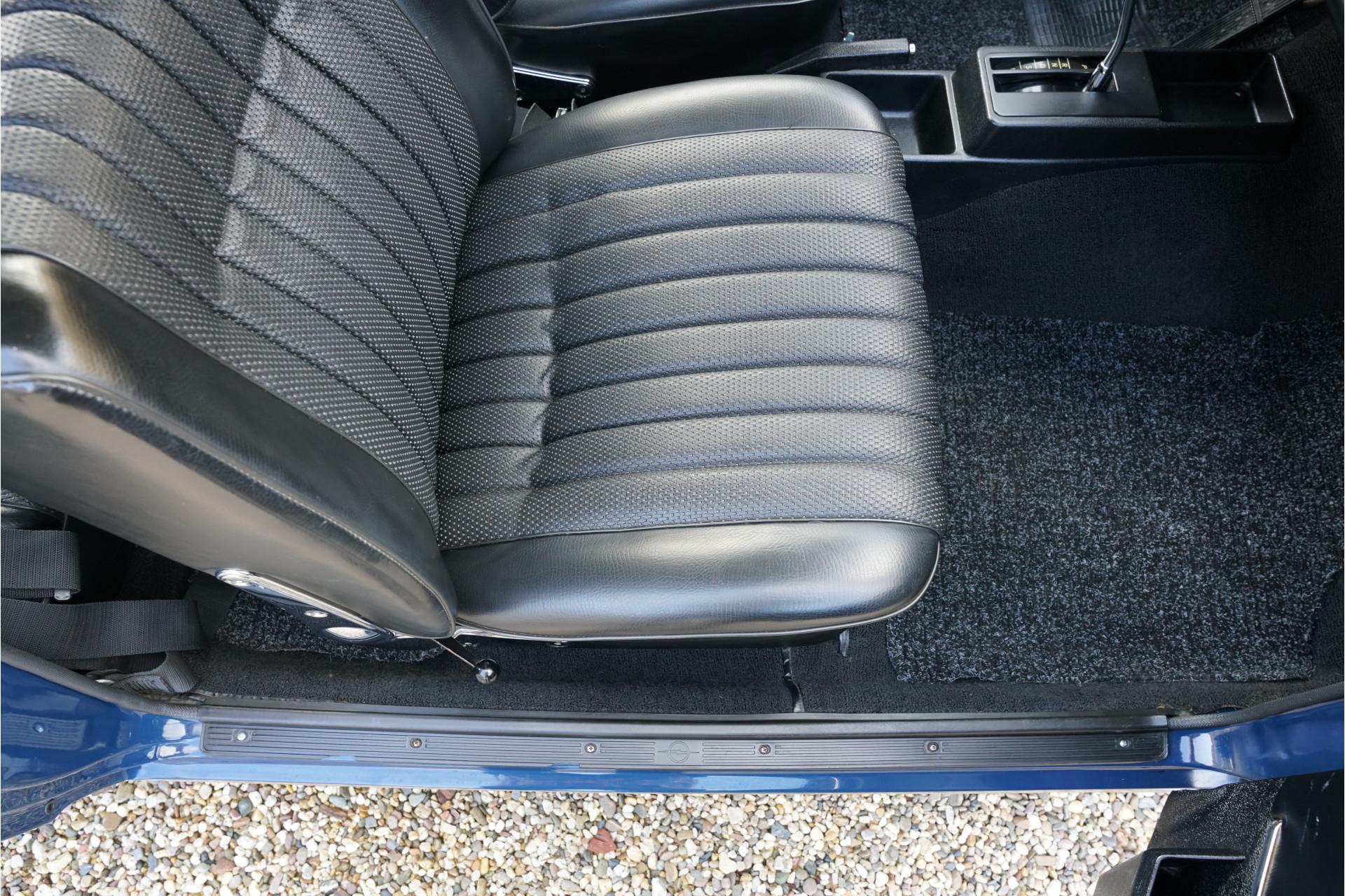 The same applies to the interior. The upholstery is truly very attractive, and the overall impression is of a well-kept cabin. The headliner appears to be original, and since this car is not over-restored, the various authentic parts form a good combination with the whole. Additionally, the dashboard is neat, along with the instrumentation.